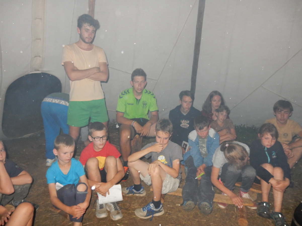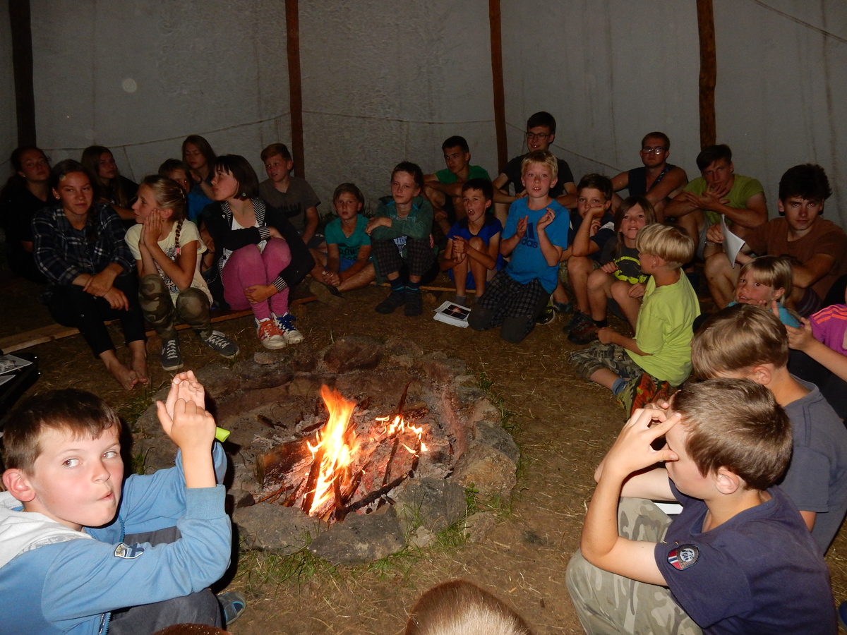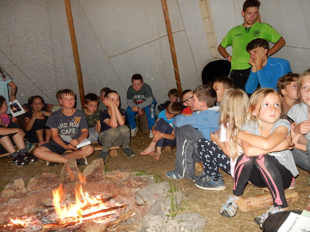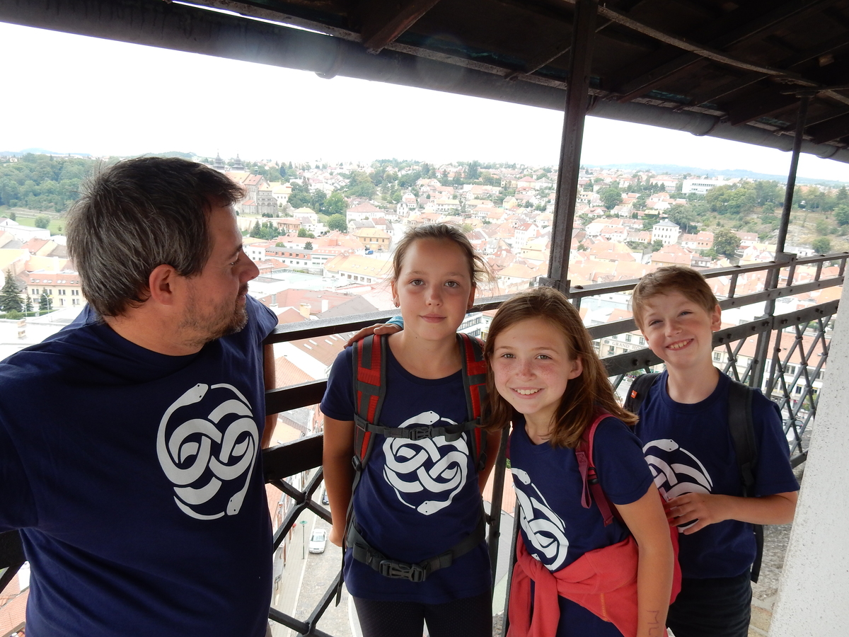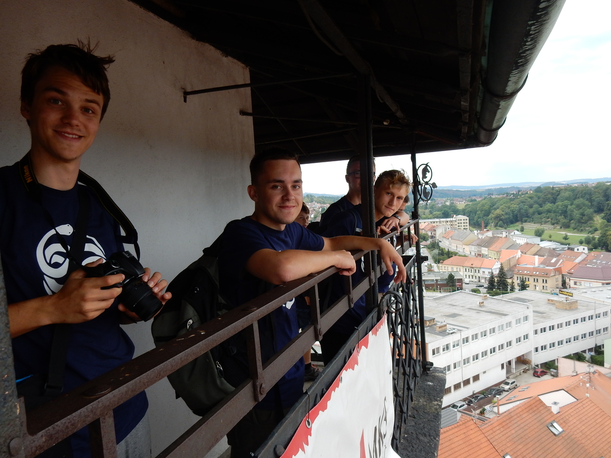 Zajímavý den. V plánu byla výprava do Jindřichova Hradce, nicméně vyšplouchl nás dopravce, u kterého jsme měli objednány dva autobusy. Nakonec se podařilo narychlo plán pozměnit a tak nás dva autobusy jiného dopravce dovezly do Třebíče. Interaktivní výstava na zámku, vyhlídková věž Kostela st. Martina, rozchod a ve finále akvapark Laguna. Myslím, že všichni si to moc pěkně užili. A krásnou tečkou za vydařeným dnem byly večerní písničky na přání u ohně ve sněmovním týpí. Přál bych vám slyšet ten "syrovej sbor hlasů"... Jura