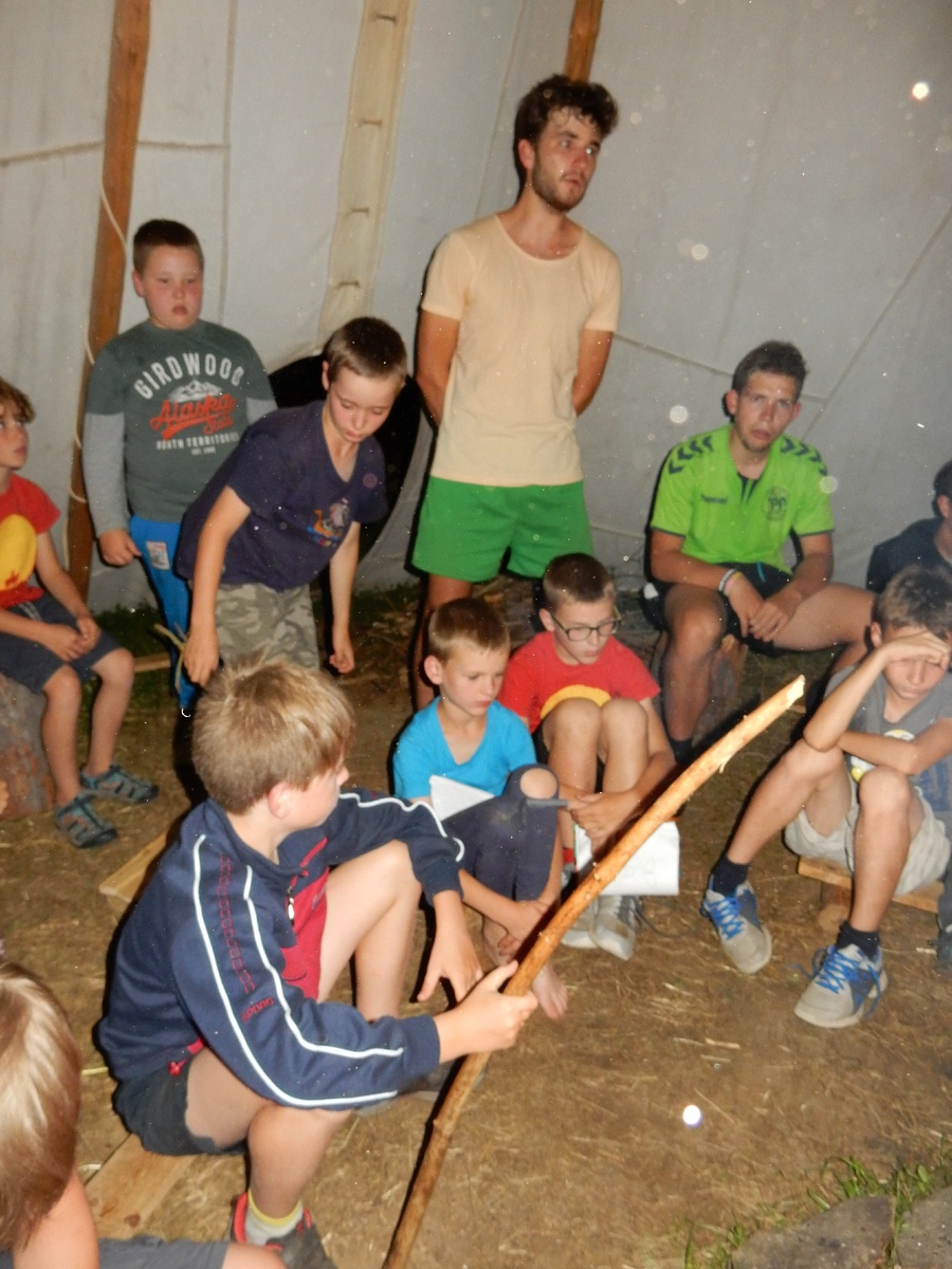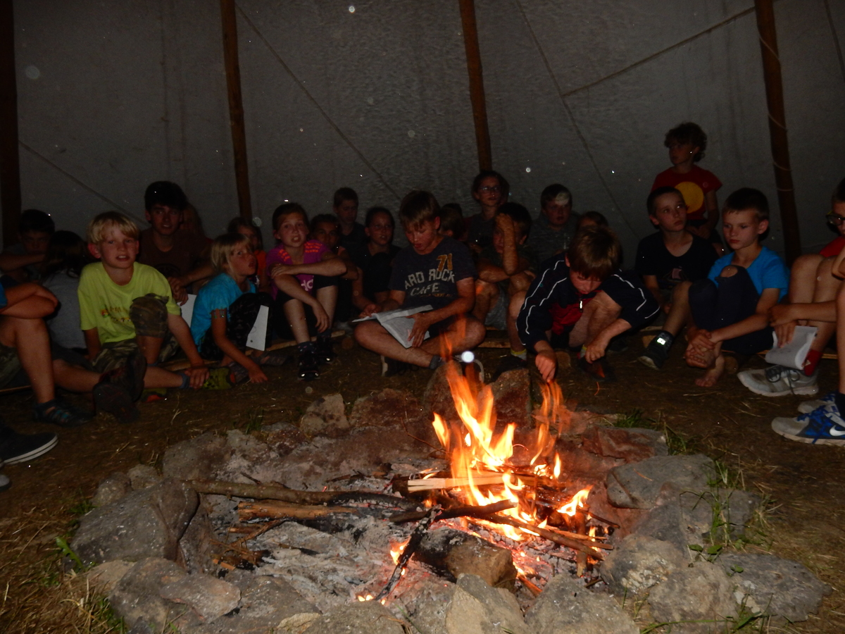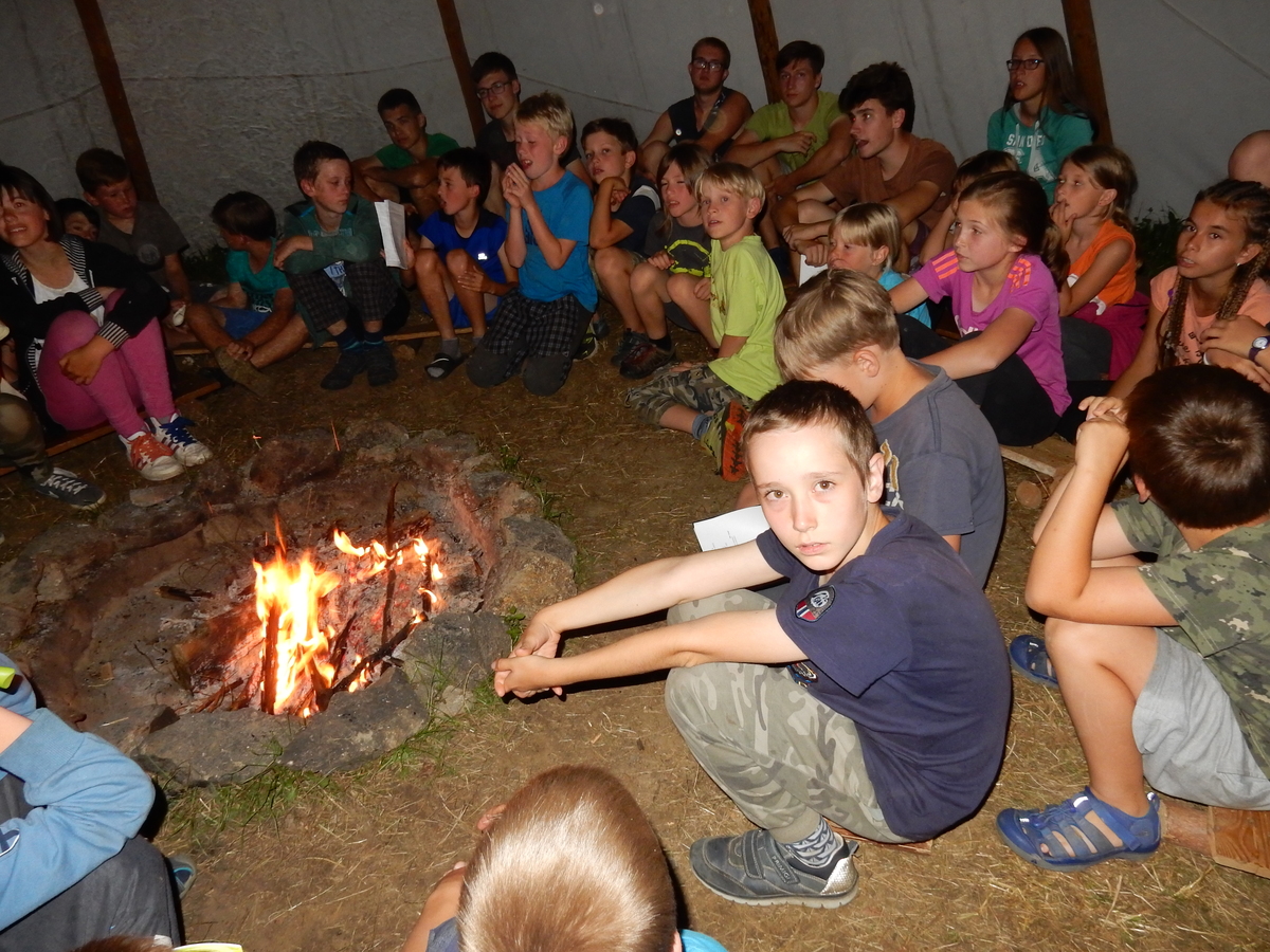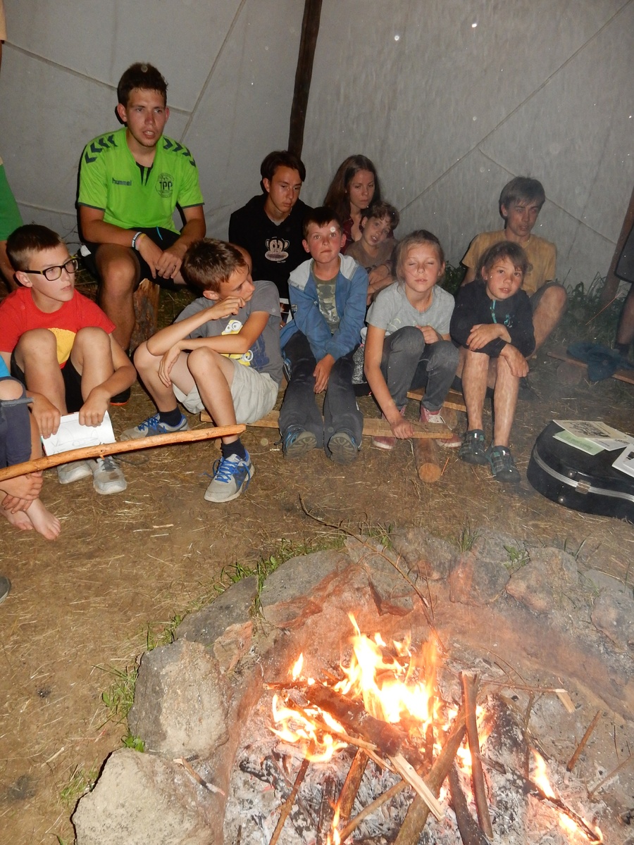 Zajímavý den. V plánu byla výprava do Jindřichova Hradce, nicméně vyšplouchl nás dopravce, u kterého jsme měli objednány dva autobusy. Nakonec se podařilo narychlo plán pozměnit a tak nás dva autobusy jiného dopravce dovezly do Třebíče. Interaktivní výstava na zámku, vyhlídková věž Kostela st. Martina, rozchod a ve finále akvapark Laguna. Myslím, že všichni si to moc pěkně užili. A krásnou tečkou za vydařeným dnem byly večerní písničky na přání u ohně ve sněmovním týpí. Přál bych vám slyšet ten "syrovej sbor hlasů"... Jura