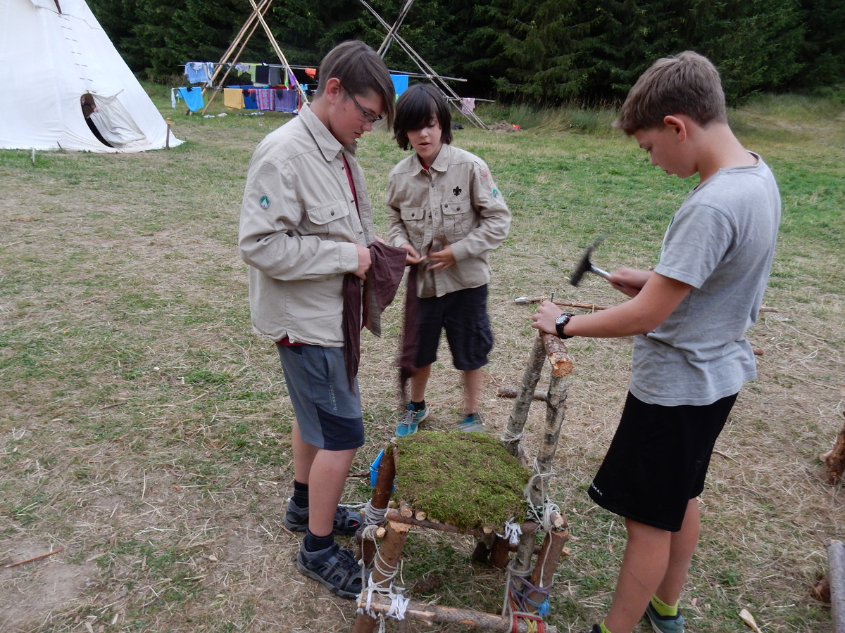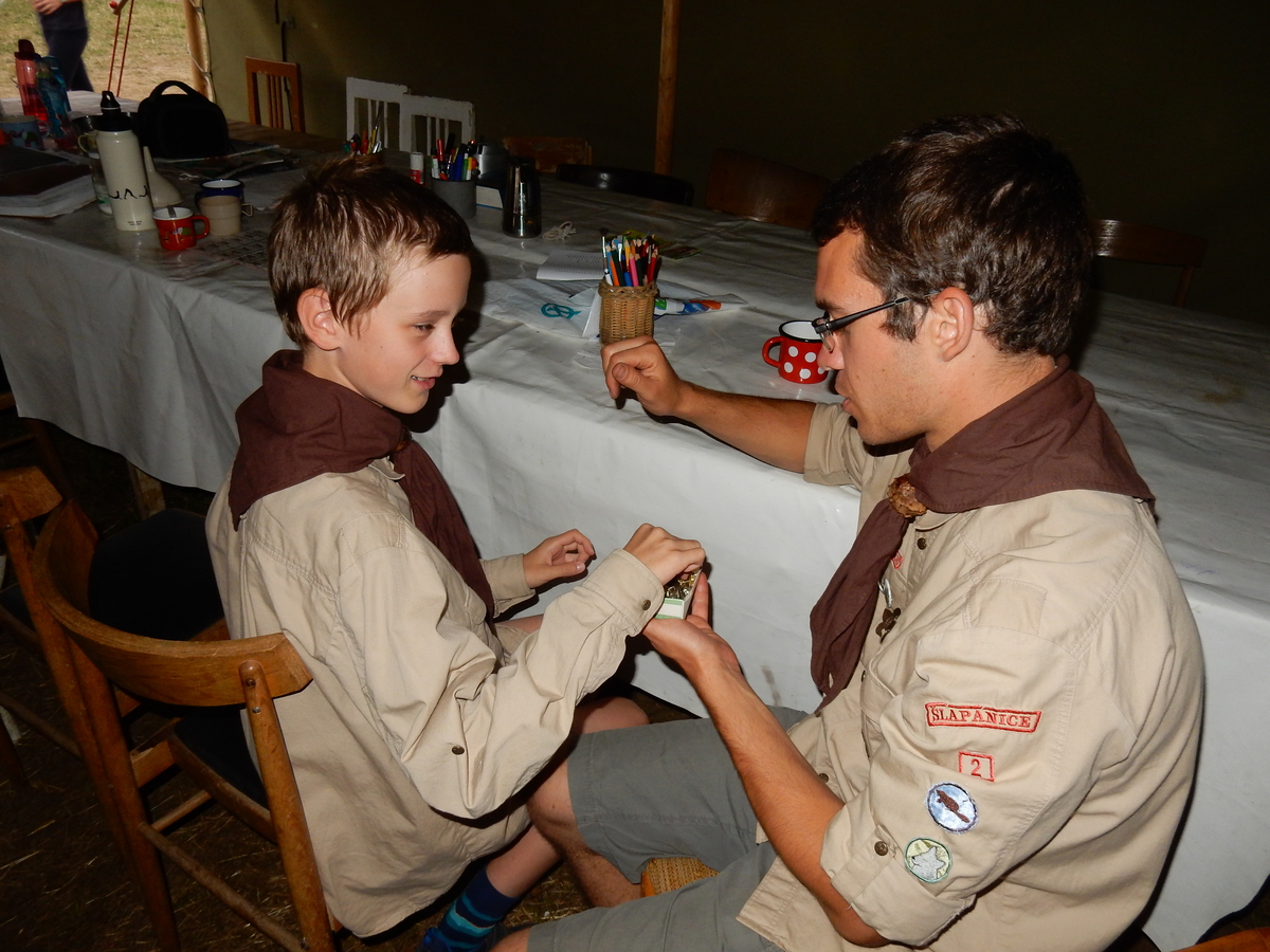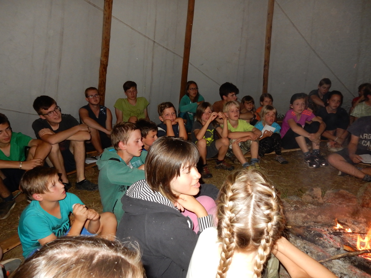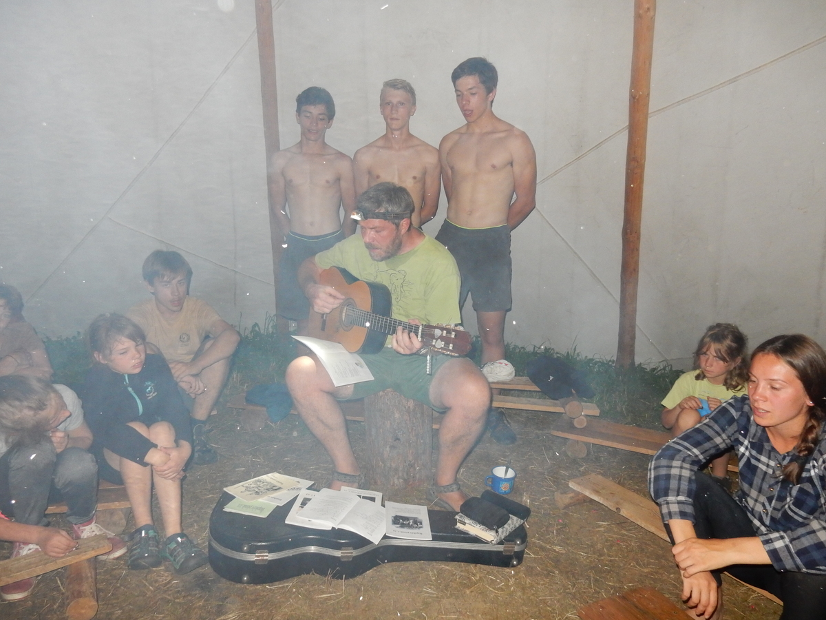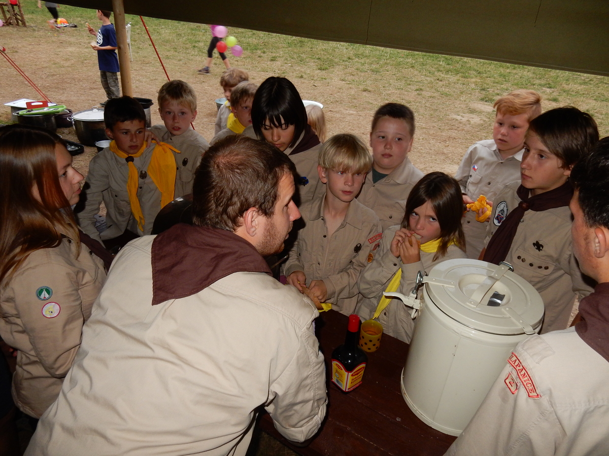 Zajímavý den. V plánu byla výprava do Jindřichova Hradce, nicméně vyšplouchl nás dopravce, u kterého jsme měli objednány dva autobusy. Nakonec se podařilo narychlo plán pozměnit a tak nás dva autobusy jiného dopravce dovezly do Třebíče. Interaktivní výstava na zámku, vyhlídková věž Kostela st. Martina, rozchod a ve finále akvapark Laguna. Myslím, že všichni si to moc pěkně užili. A krásnou tečkou za vydařeným dnem byly večerní písničky na přání u ohně ve sněmovním týpí. Přál bych vám slyšet ten "syrovej sbor hlasů"... Jura