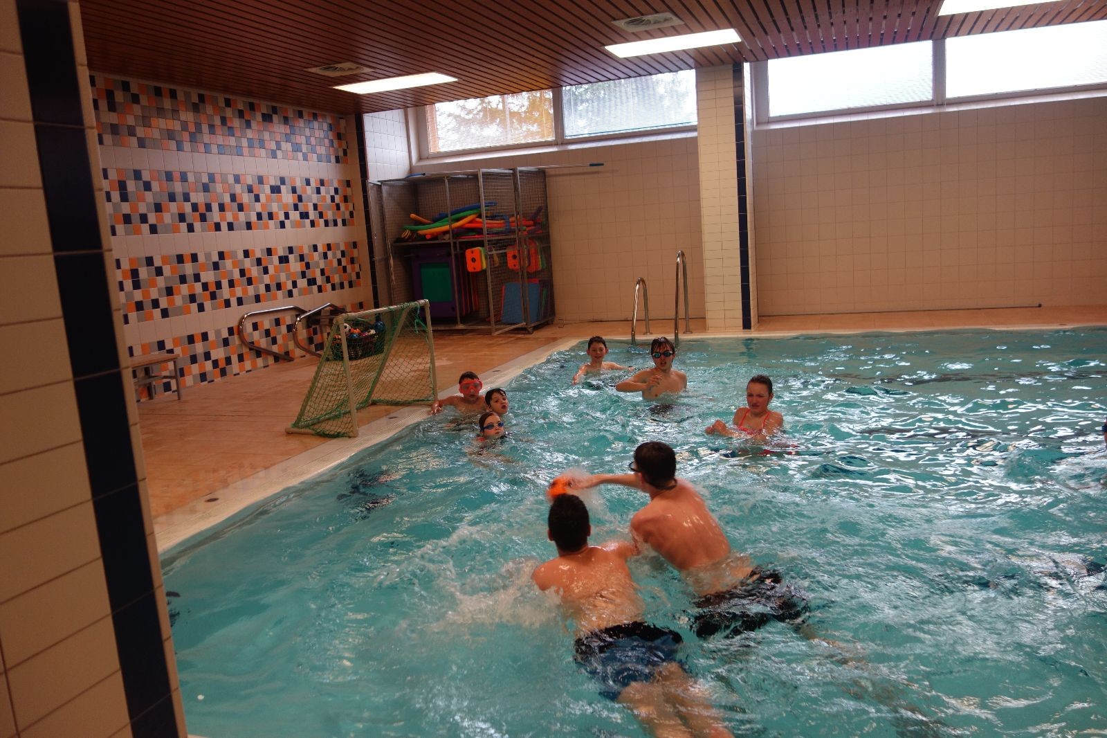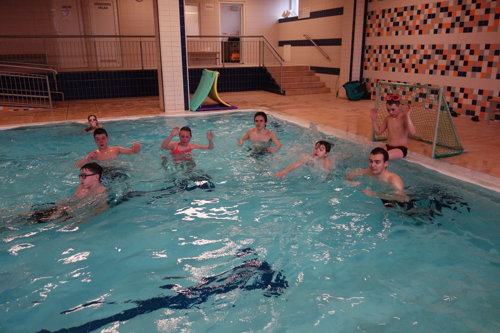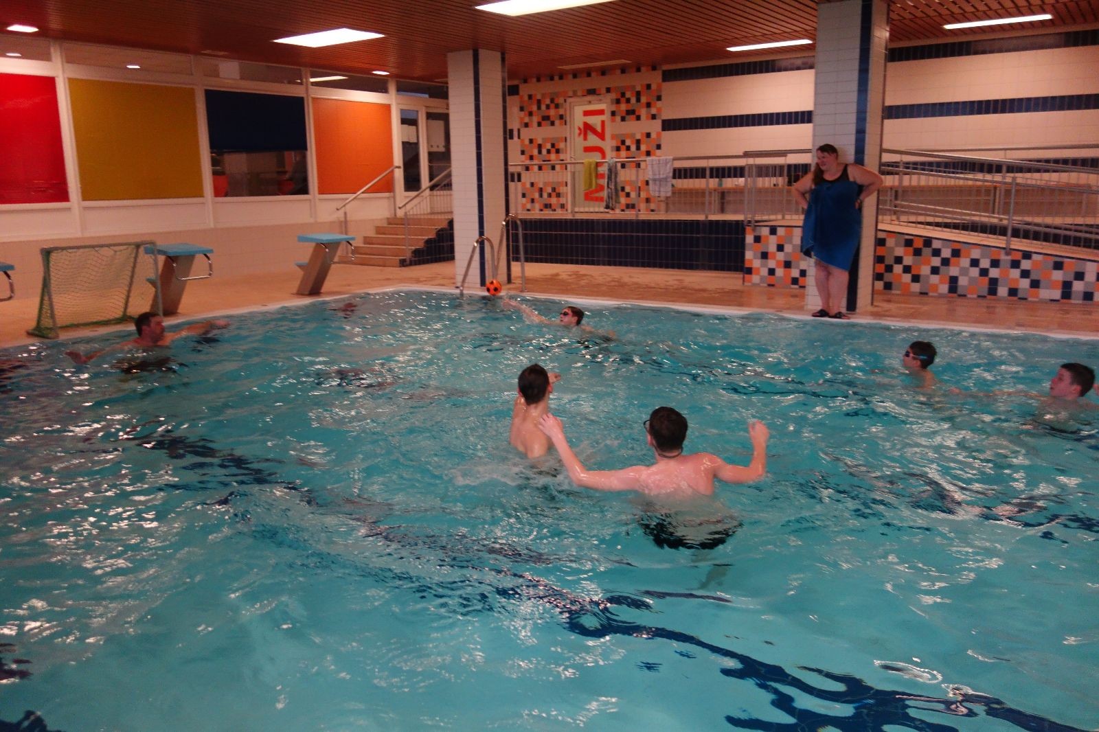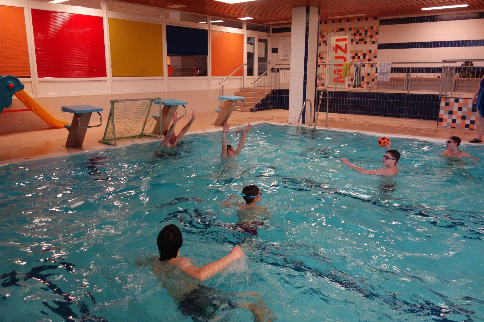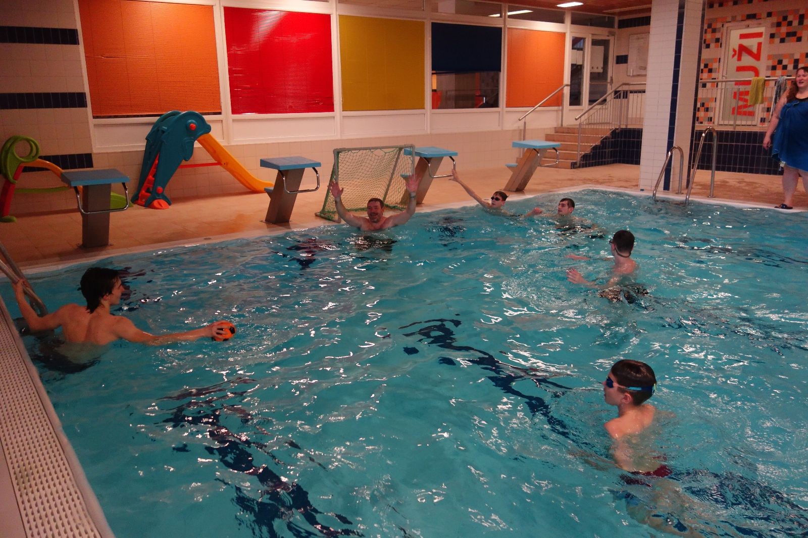 Starších přišlo na druhou hodinu o něco méně a hrálo se vodní pólo. Myslím, že se i při této hře všichni dobře bavili, ocenil jsem zejména, že si družstva vzájemně přihrávala a že to celé bylo pěkně týmové. Nakonec výsledné skóre hovoří za vše: 22:18.