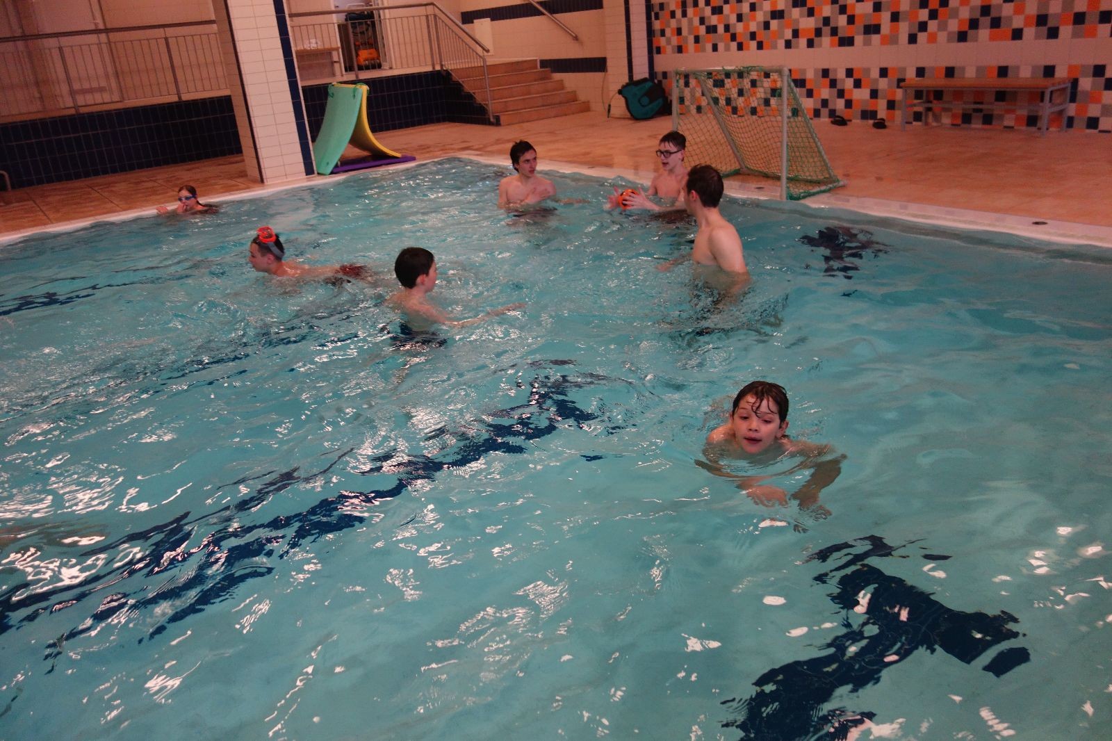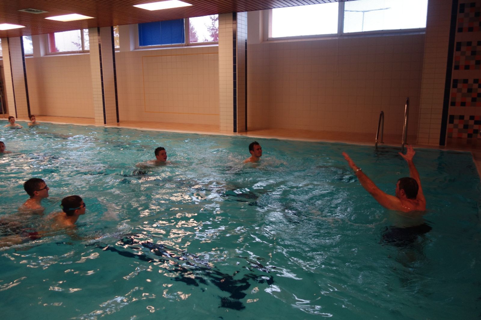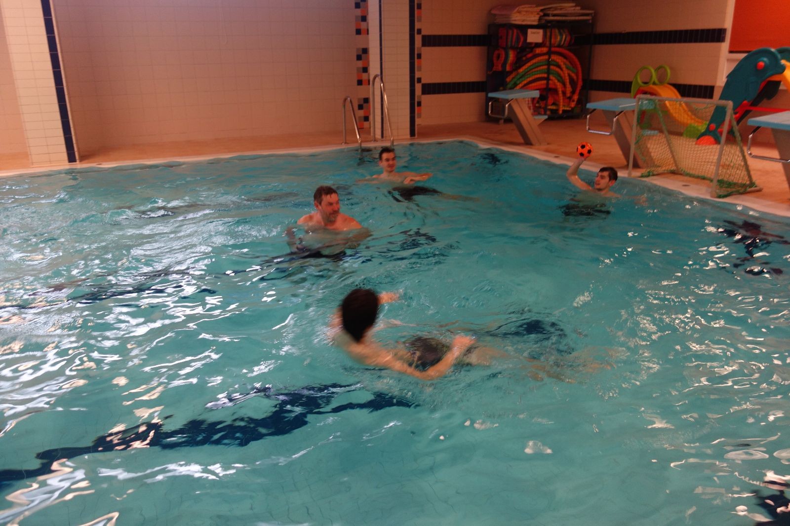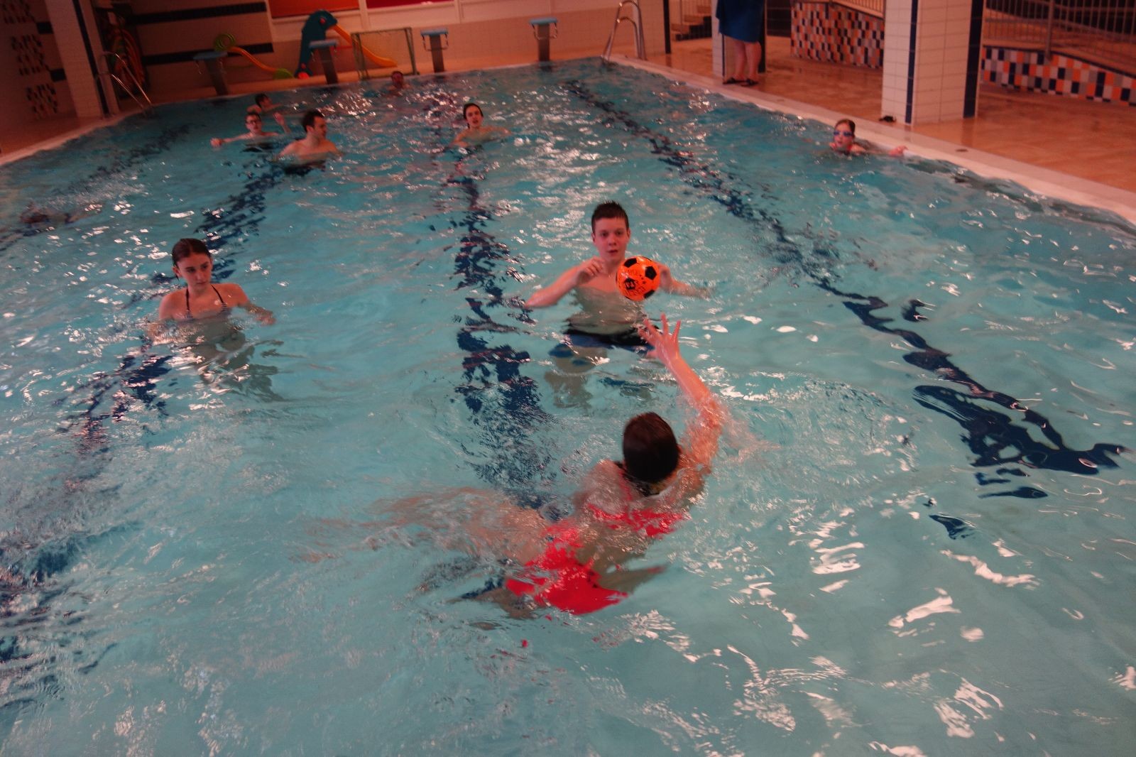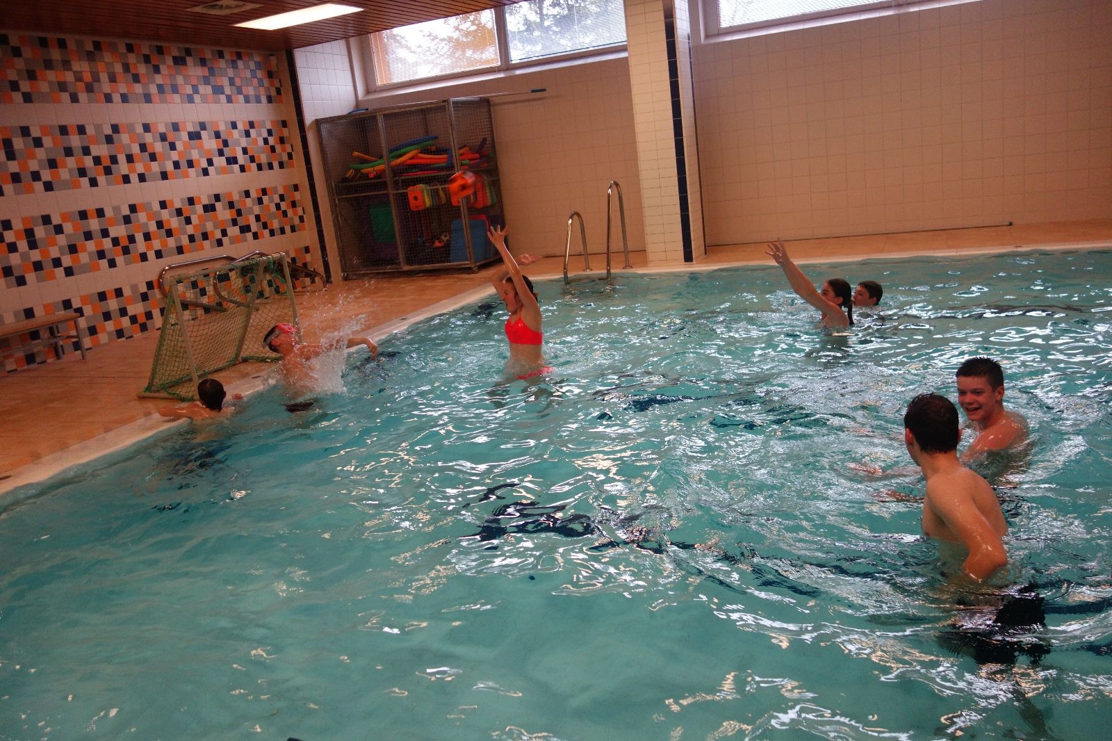 Starších přišlo na druhou hodinu o něco méně a hrálo se vodní pólo. Myslím, že se i při této hře všichni dobře bavili, ocenil jsem zejména, že si družstva vzájemně přihrávala a že to celé bylo pěkně týmové. Nakonec výsledné skóre hovoří za vše: 22:18.
