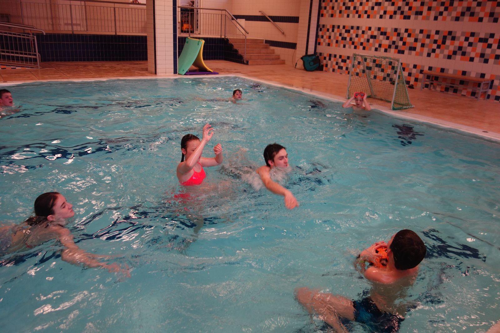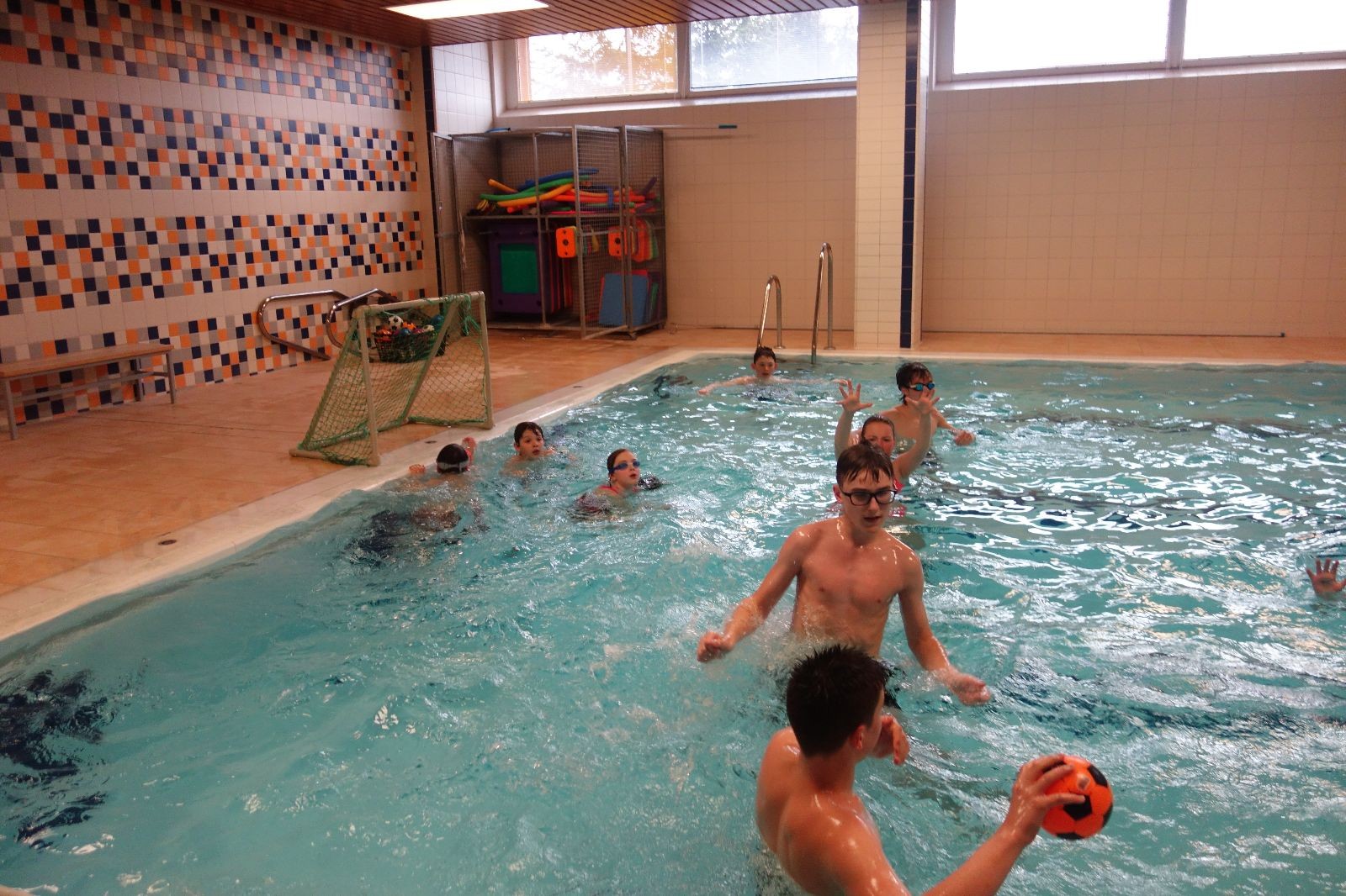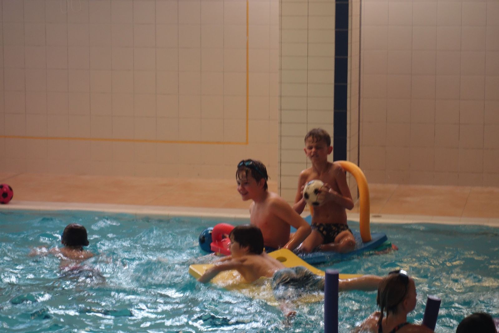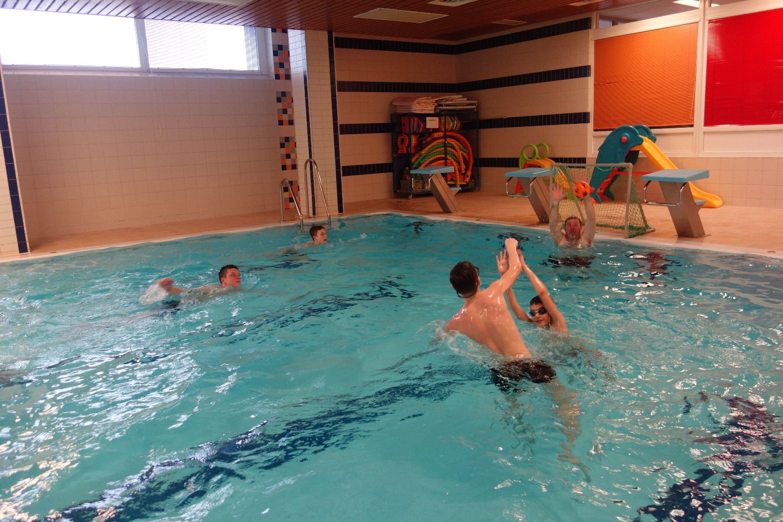 Starších přišlo na druhou hodinu o něco méně a hrálo se vodní pólo. Myslím, že se i při této hře všichni dobře bavili, ocenil jsem zejména, že si družstva vzájemně přihrávala a že to celé bylo pěkně týmové. Nakonec výsledné skóre hovoří za vše: 22:18.