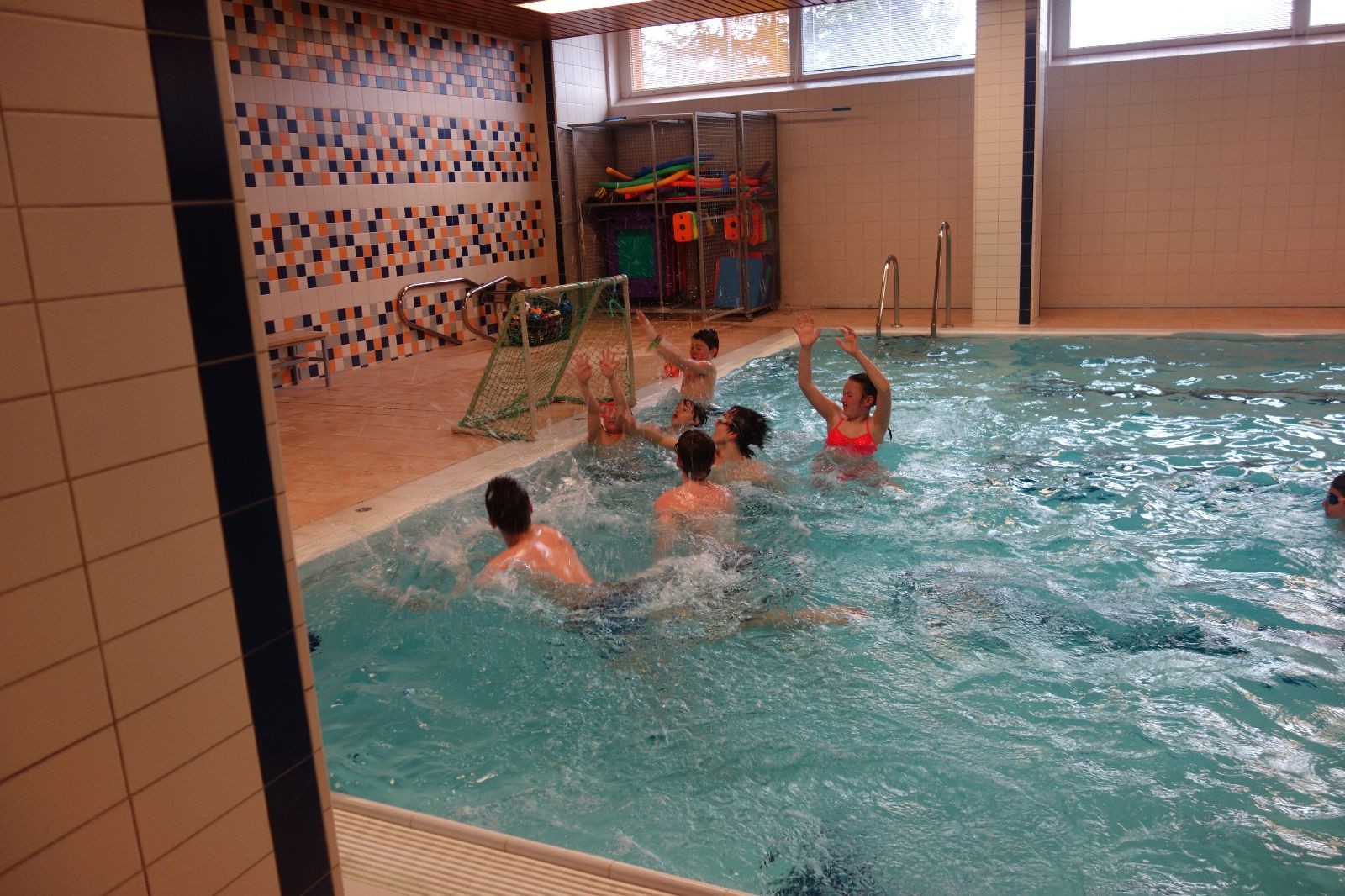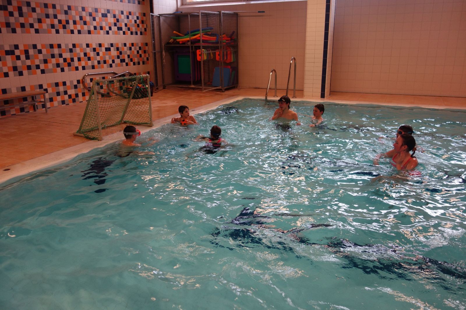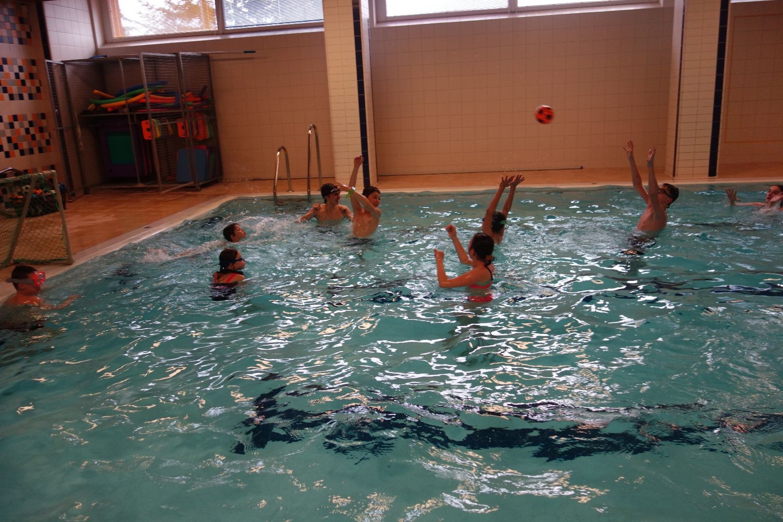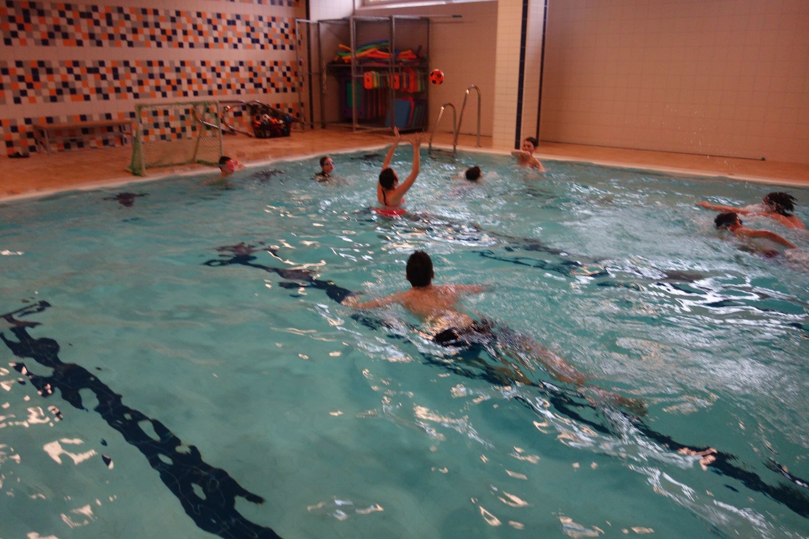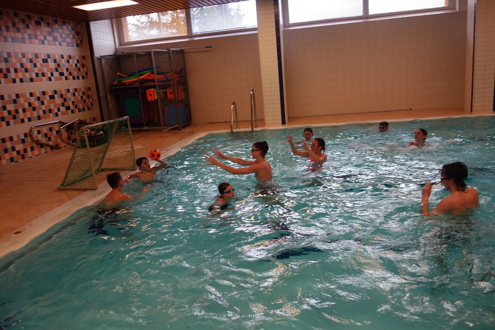 Starších přišlo na druhou hodinu o něco méně a hrálo se vodní pólo. Myslím, že se i při této hře všichni dobře bavili, ocenil jsem zejména, že si družstva vzájemně přihrávala a že to celé bylo pěkně týmové. Nakonec výsledné skóre hovoří za vše: 22:18.