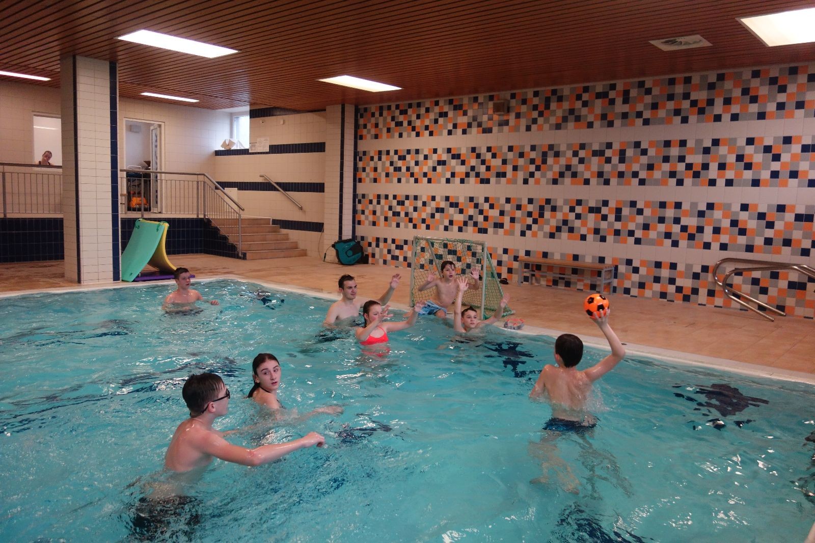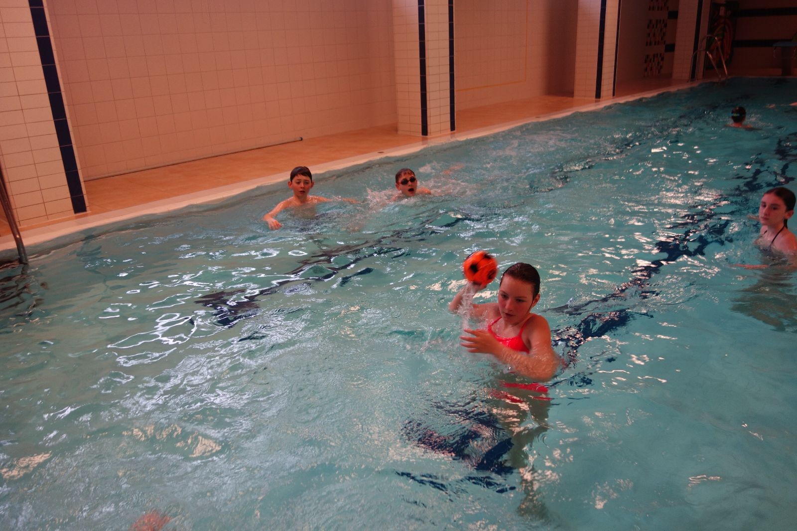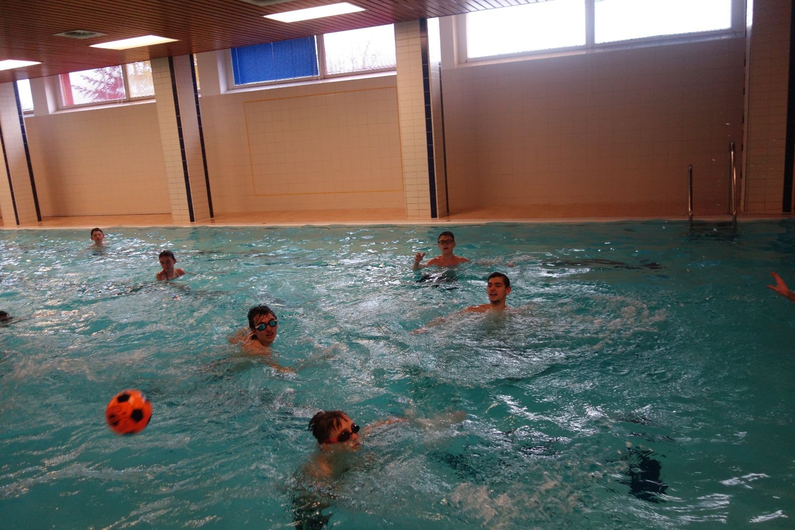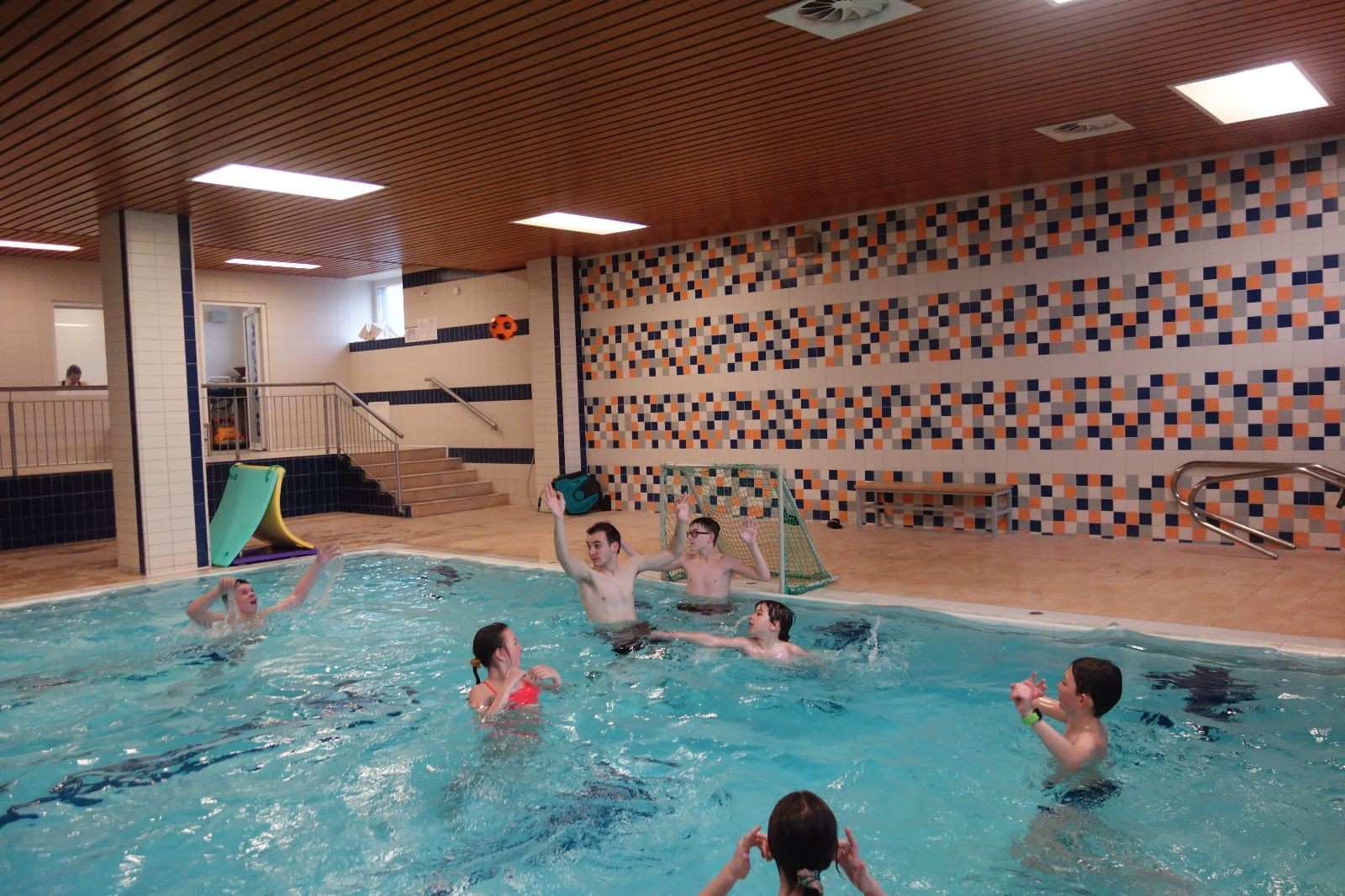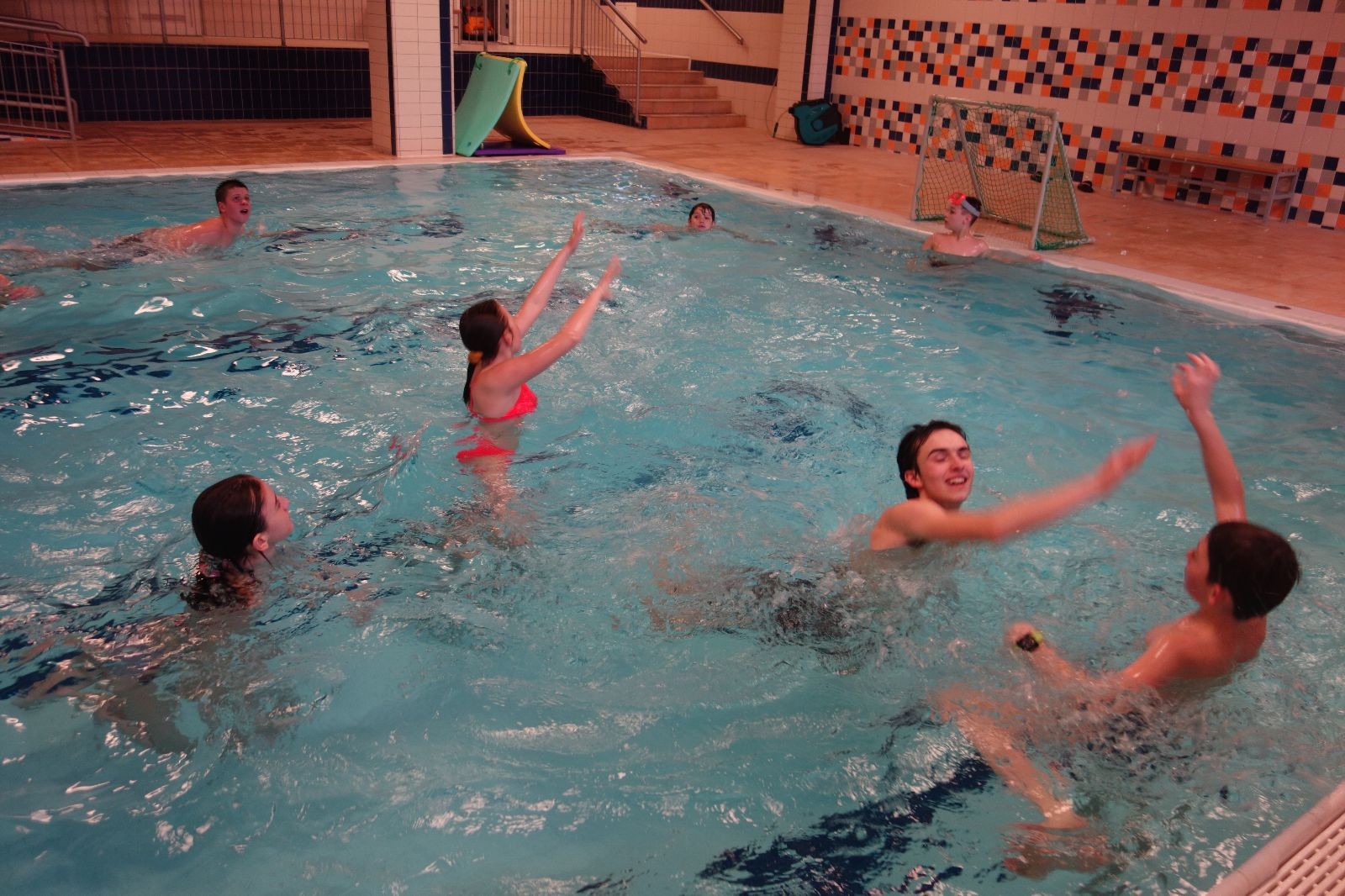 Starších přišlo na druhou hodinu o něco méně a hrálo se vodní pólo. Myslím, že se i při této hře všichni dobře bavili, ocenil jsem zejména, že si družstva vzájemně přihrávala a že to celé bylo pěkně týmové. Nakonec výsledné skóre hovoří za vše: 22:18.