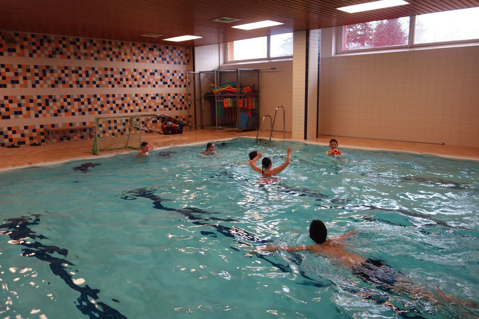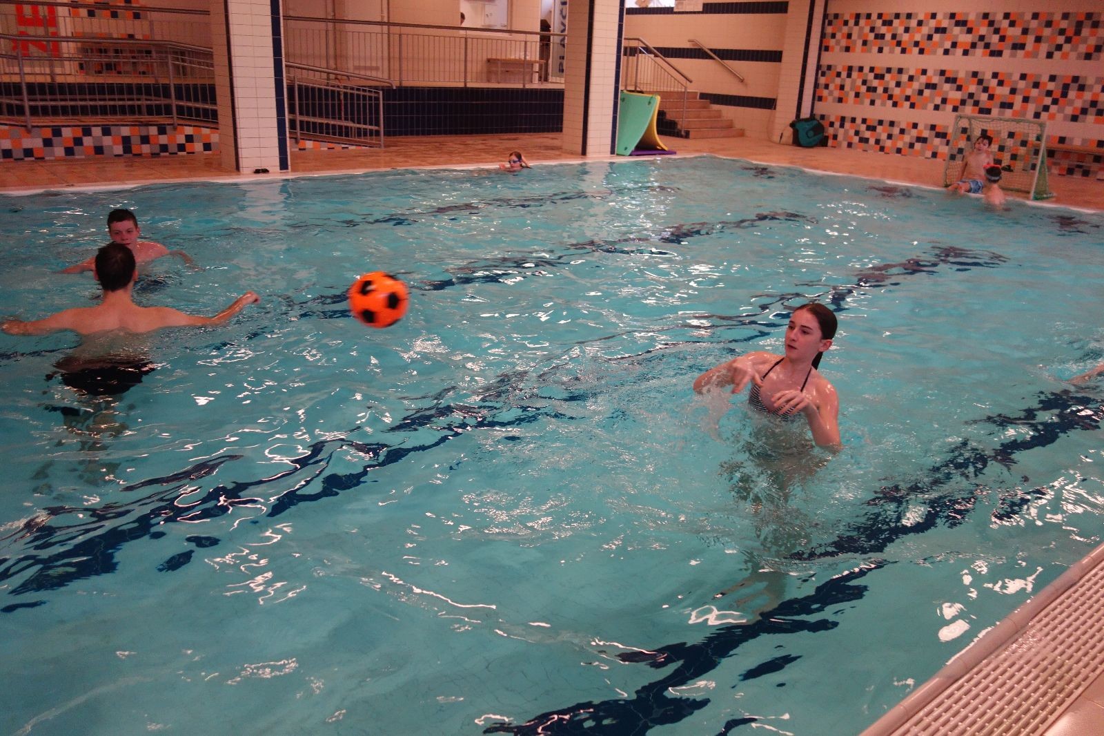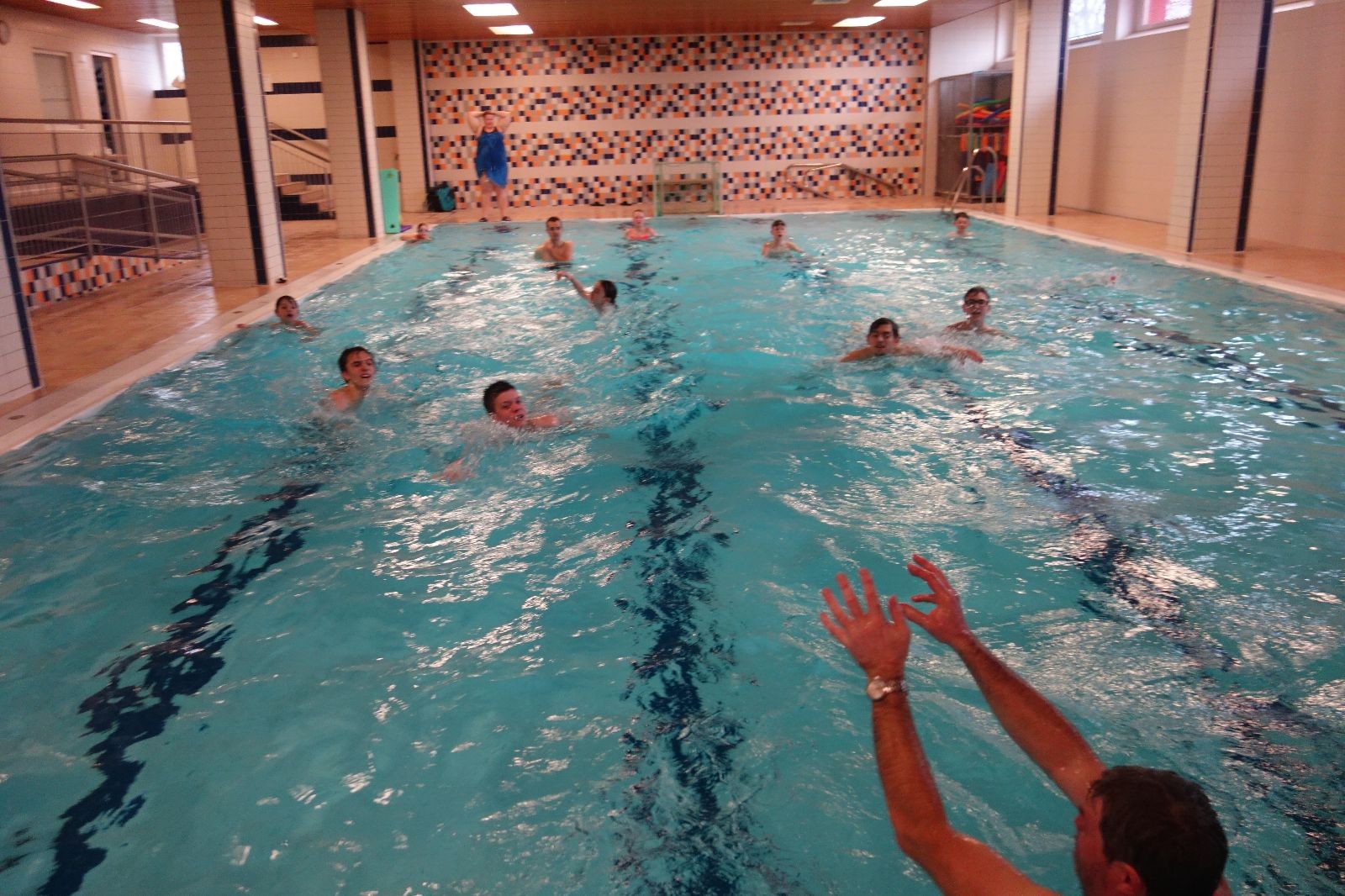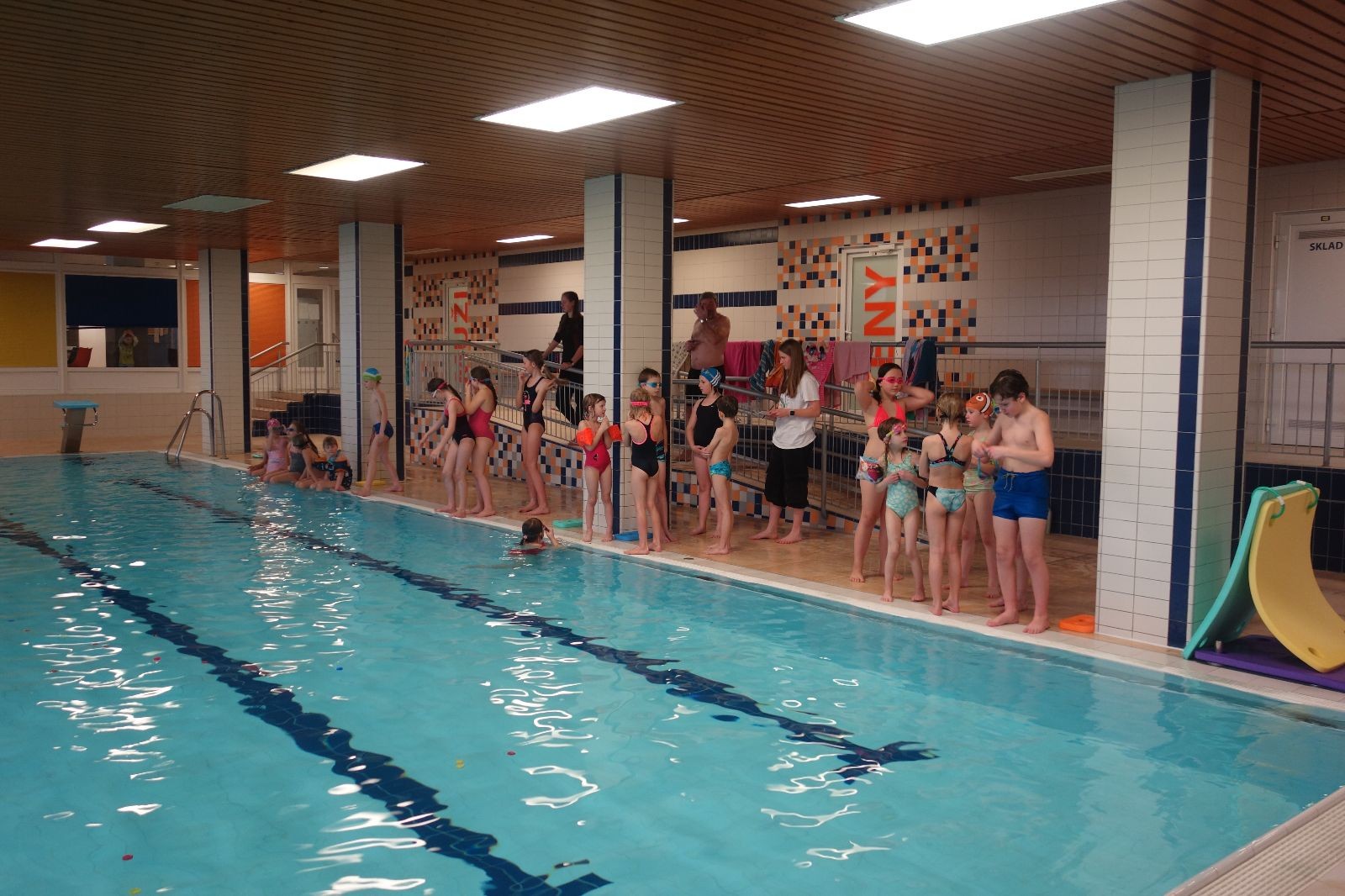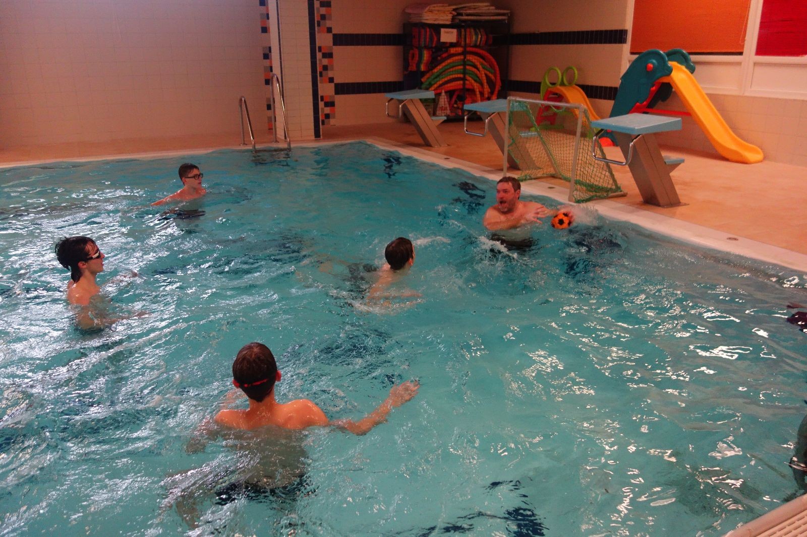 Starších přišlo na druhou hodinu o něco méně a hrálo se vodní pólo. Myslím, že se i při této hře všichni dobře bavili, ocenil jsem zejména, že si družstva vzájemně přihrávala a že to celé bylo pěkně týmové. Nakonec výsledné skóre hovoří za vše: 22:18.
