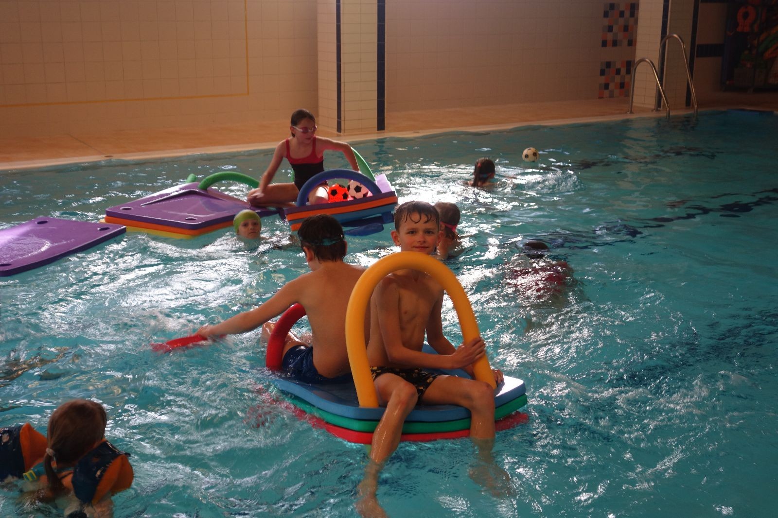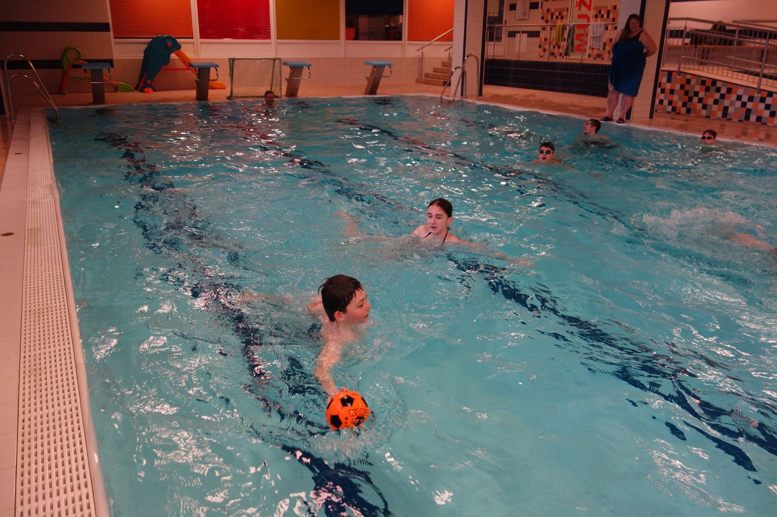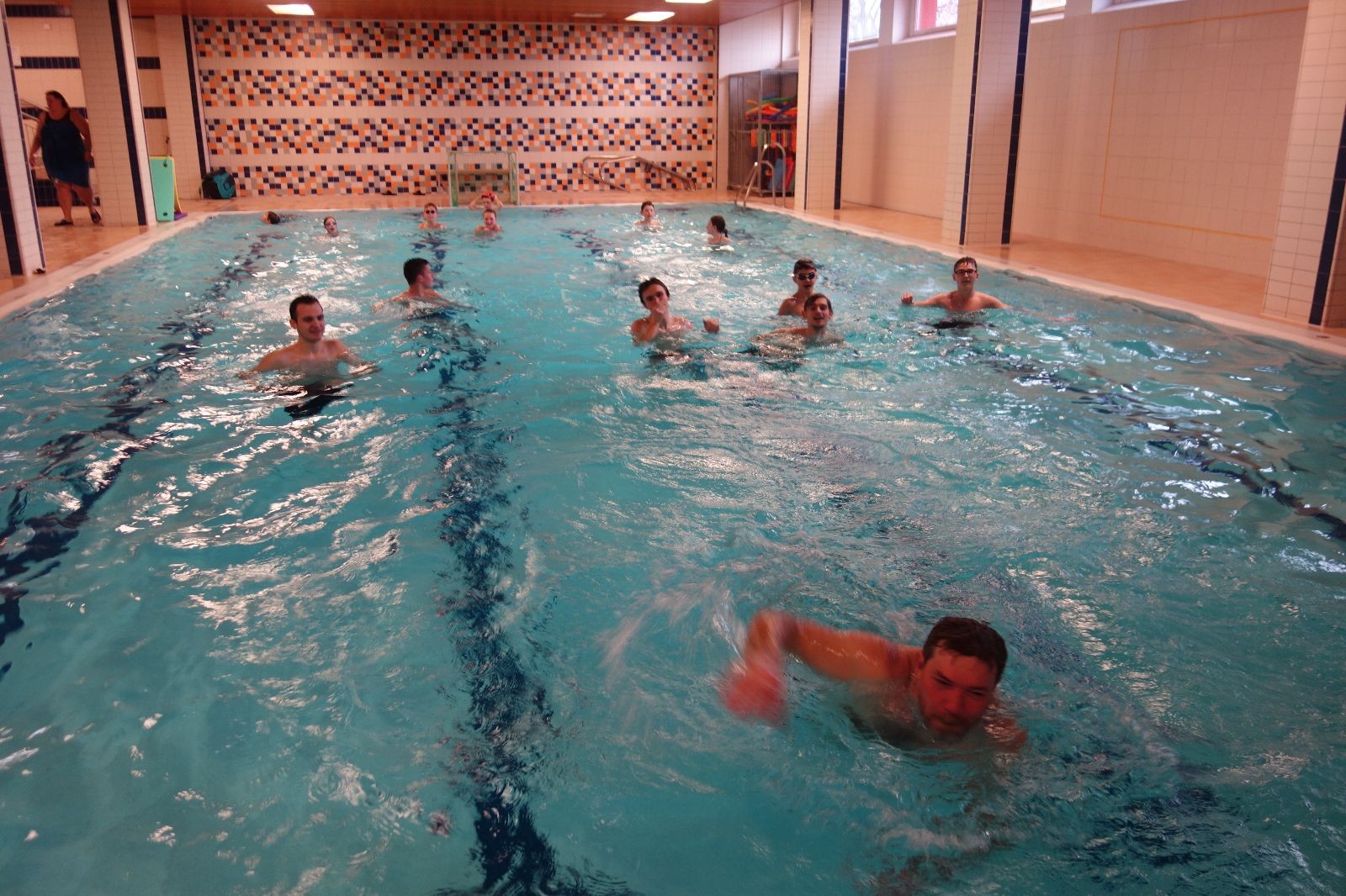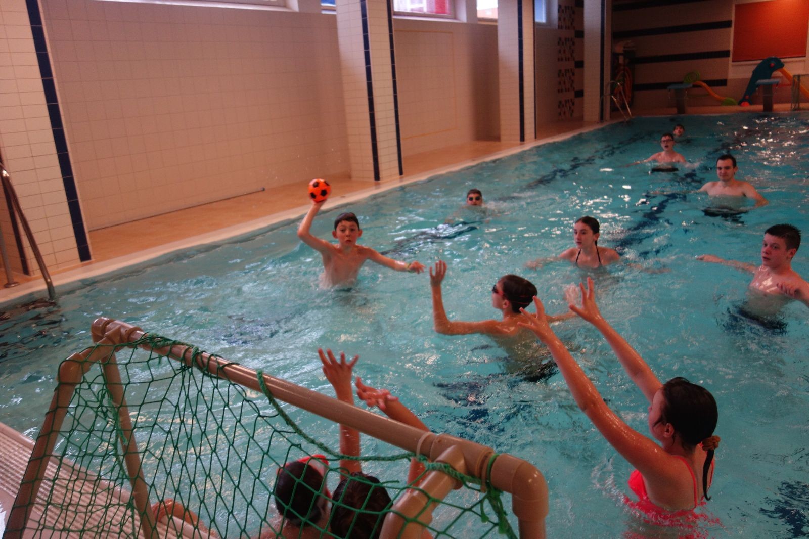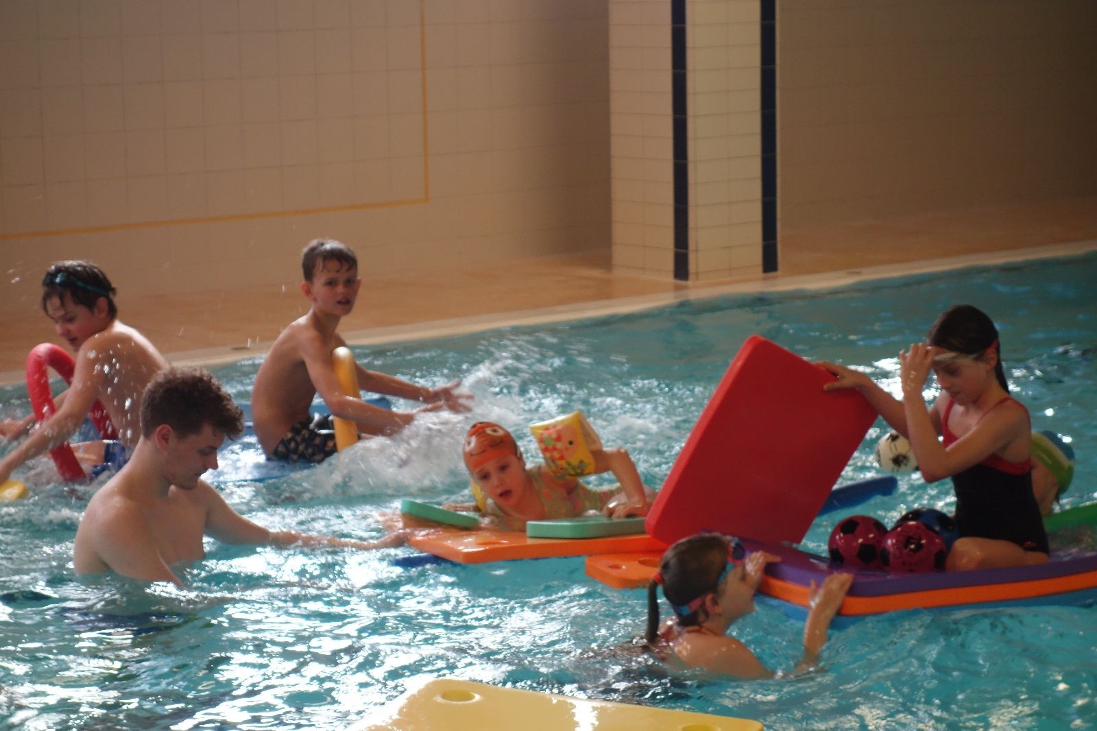 Starších přišlo na druhou hodinu o něco méně a hrálo se vodní pólo. Myslím, že se i při této hře všichni dobře bavili, ocenil jsem zejména, že si družstva vzájemně přihrávala a že to celé bylo pěkně týmové. Nakonec výsledné skóre hovoří za vše: 22:18.
