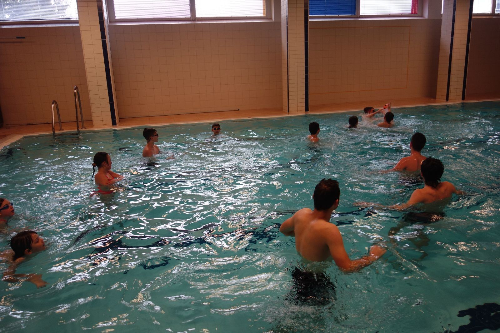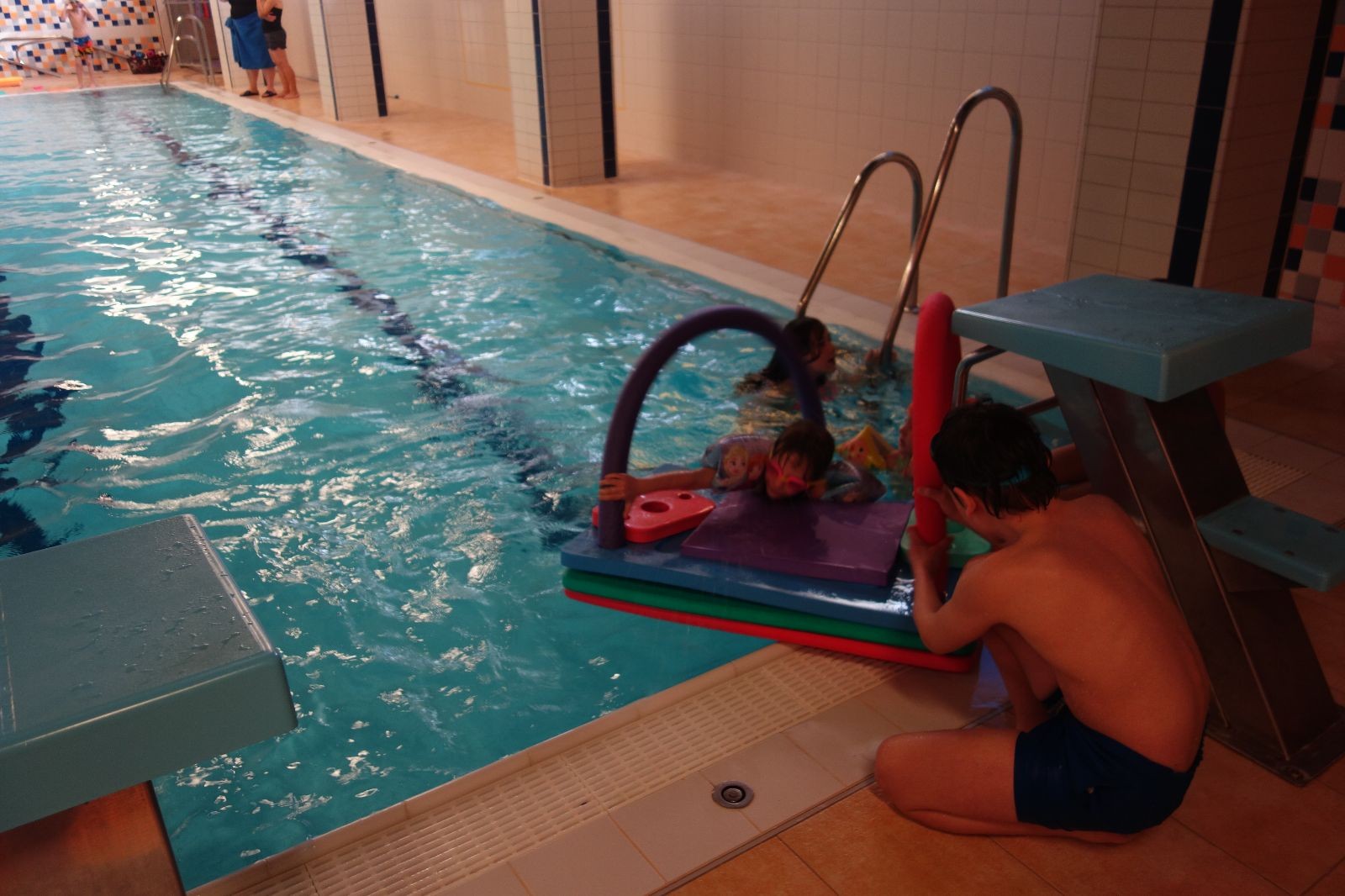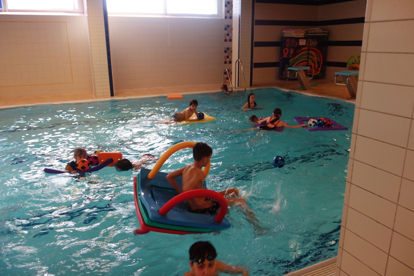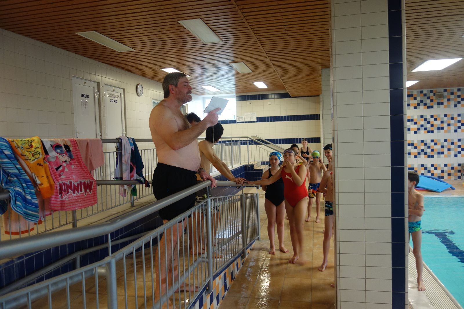 Starších přišlo na druhou hodinu o něco méně a hrálo se vodní pólo. Myslím, že se i při této hře všichni dobře bavili, ocenil jsem zejména, že si družstva vzájemně přihrávala a že to celé bylo pěkně týmové. Nakonec výsledné skóre hovoří za vše: 22:18.