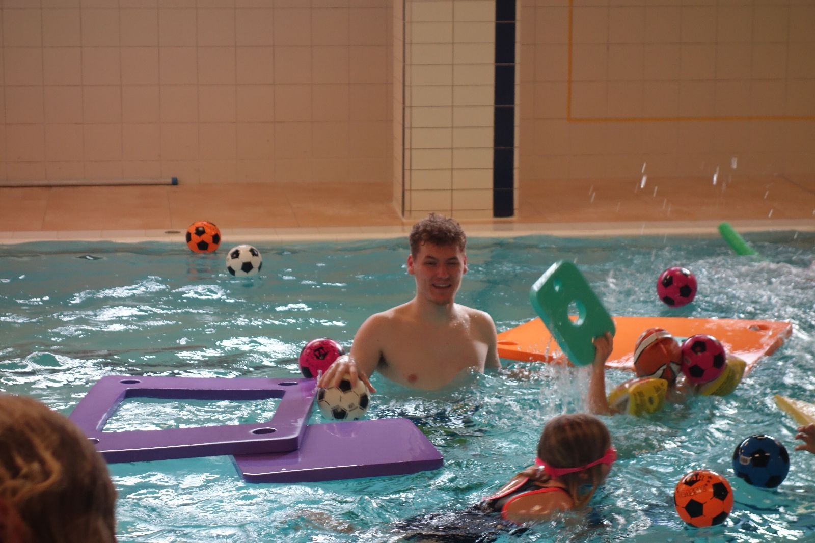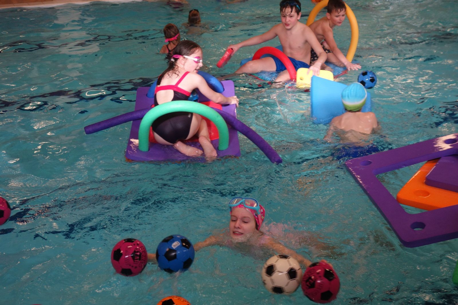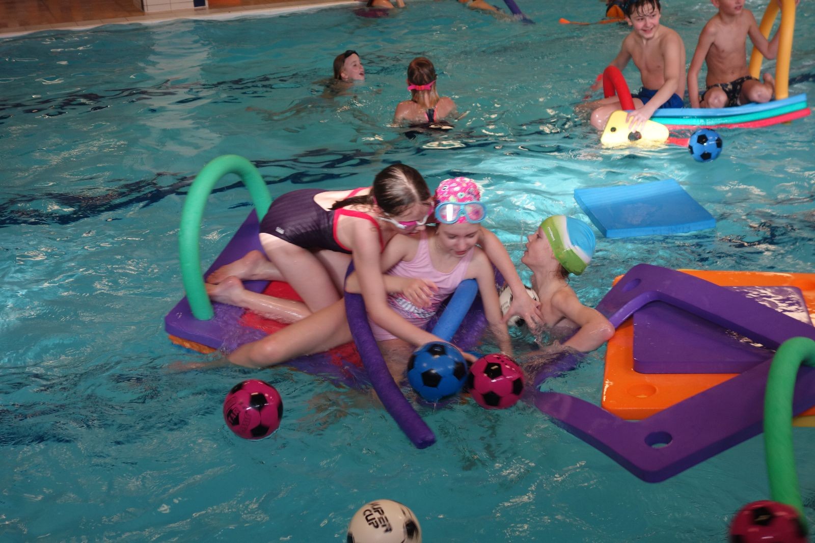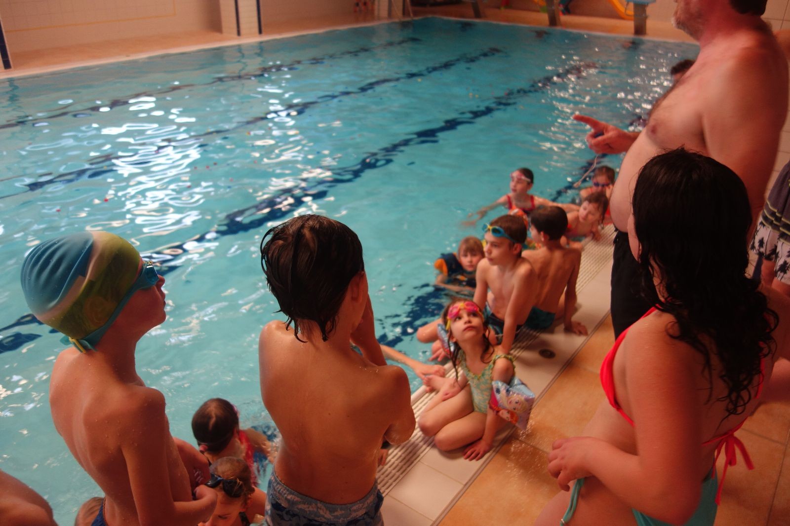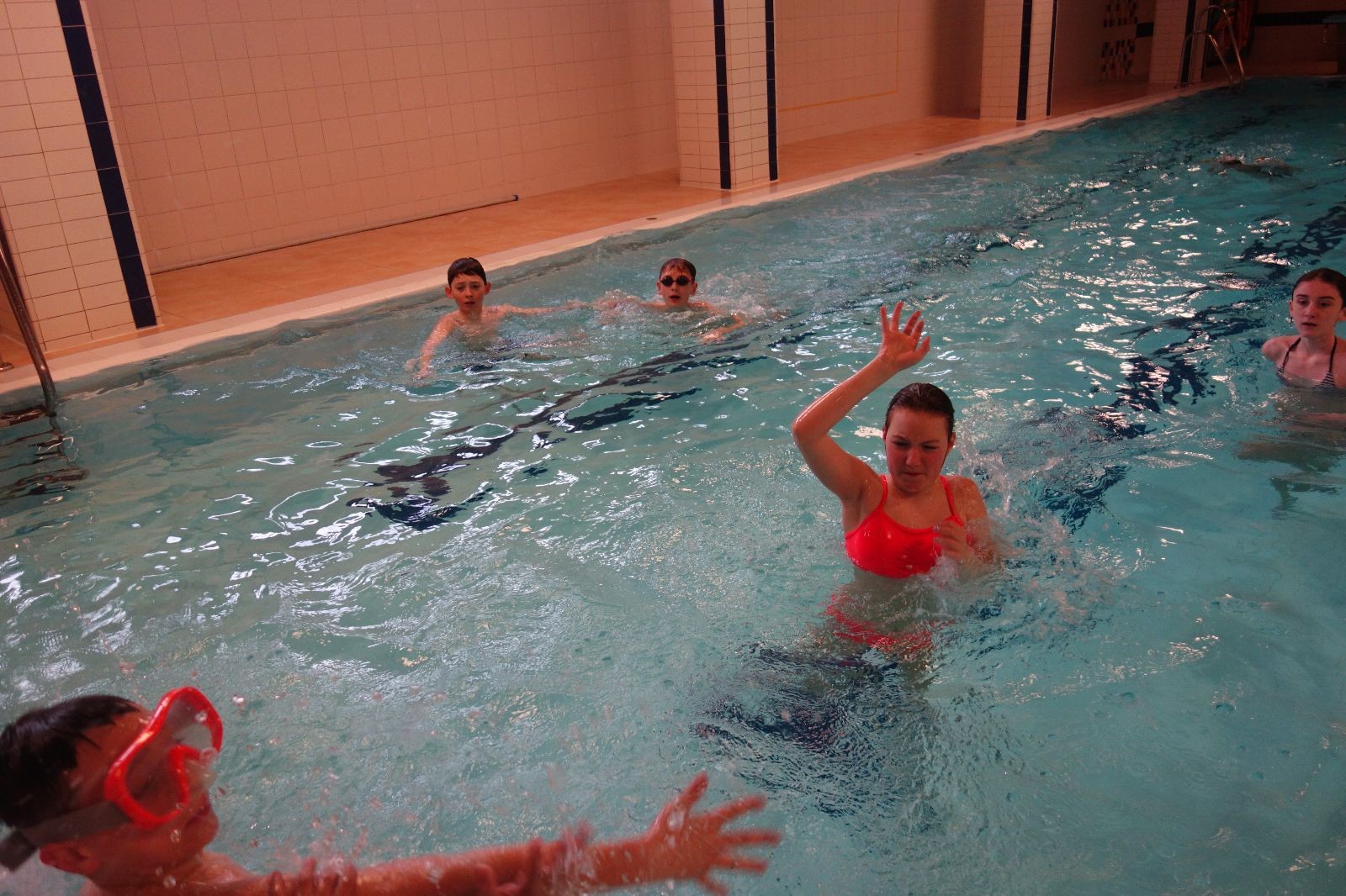 Starších přišlo na druhou hodinu o něco méně a hrálo se vodní pólo. Myslím, že se i při této hře všichni dobře bavili, ocenil jsem zejména, že si družstva vzájemně přihrávala a že to celé bylo pěkně týmové. Nakonec výsledné skóre hovoří za vše: 22:18.