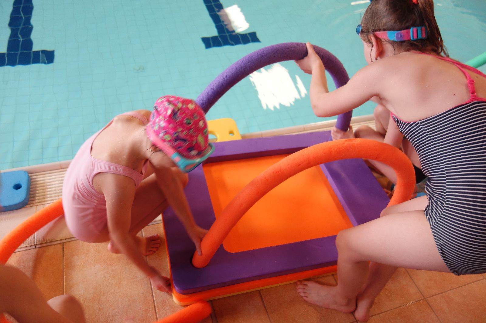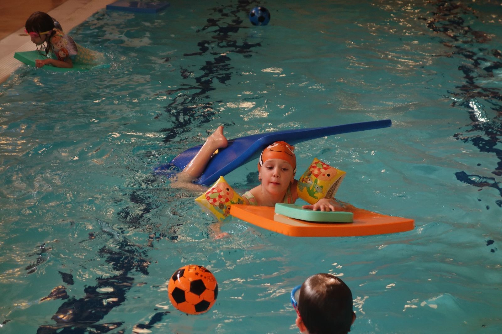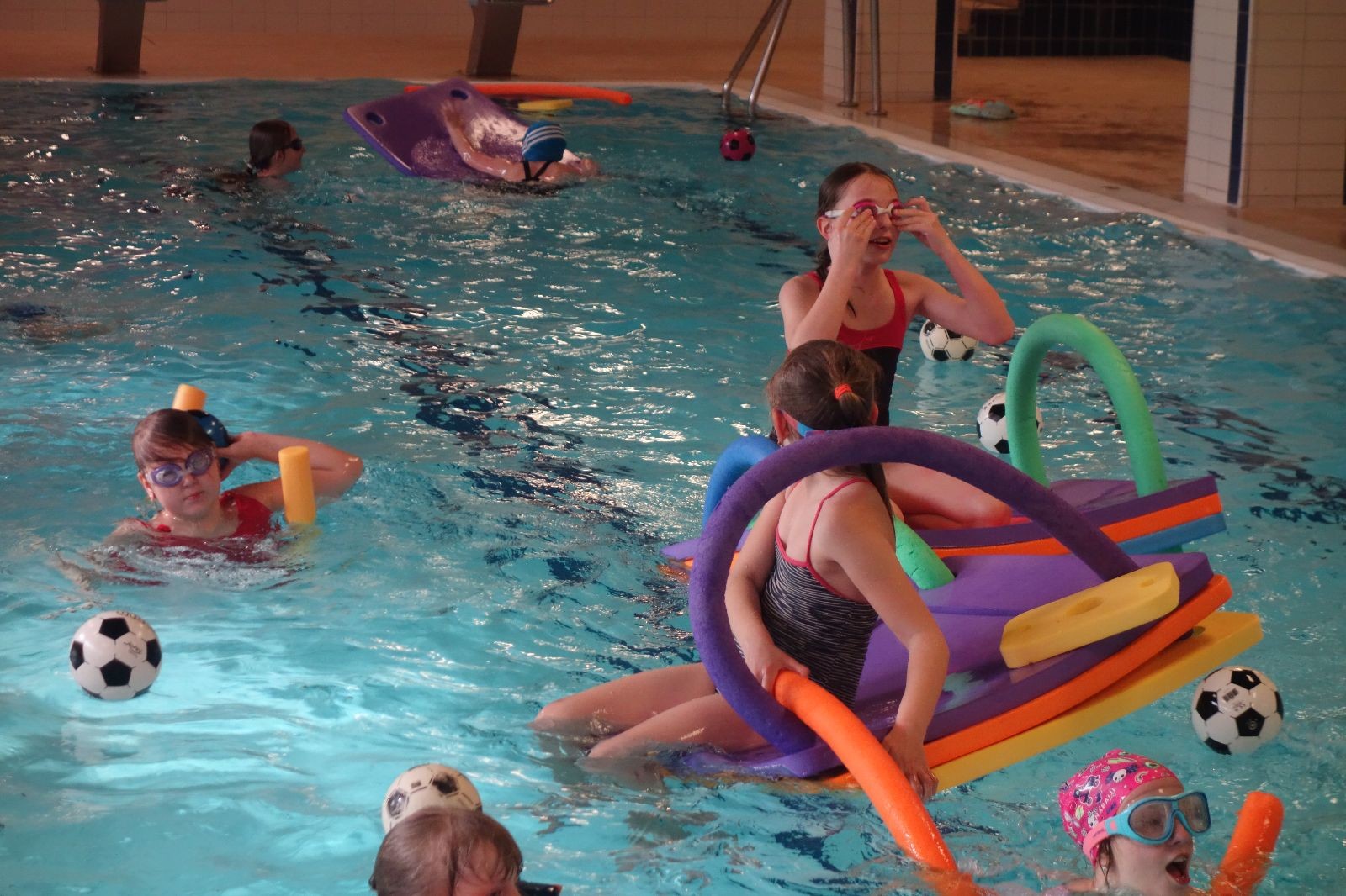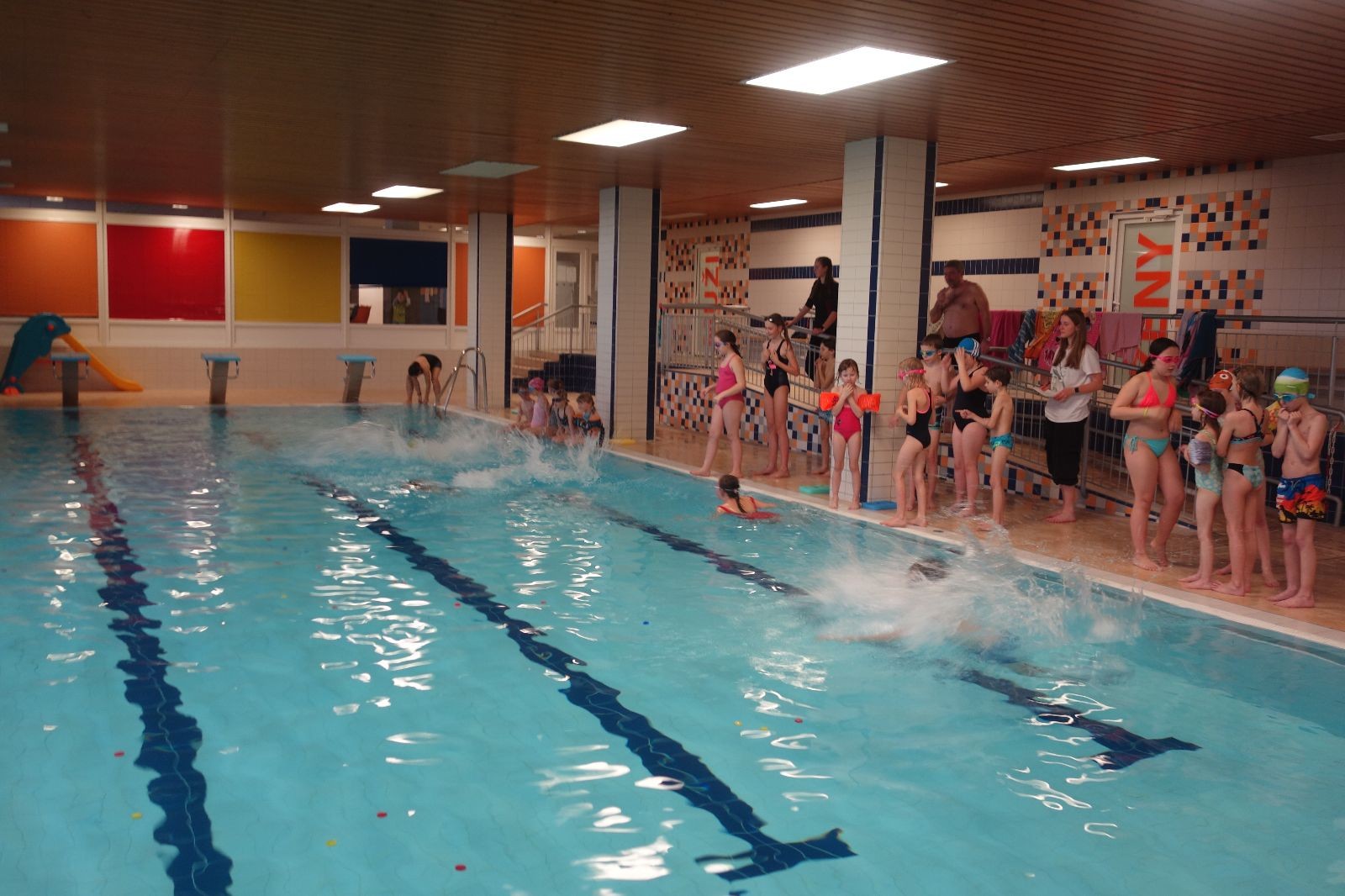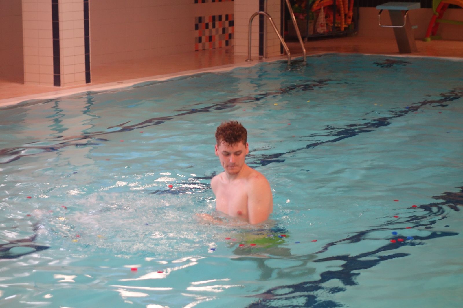 Starších přišlo na druhou hodinu o něco méně a hrálo se vodní pólo. Myslím, že se i při této hře všichni dobře bavili, ocenil jsem zejména, že si družstva vzájemně přihrávala a že to celé bylo pěkně týmové. Nakonec výsledné skóre hovoří za vše: 22:18.