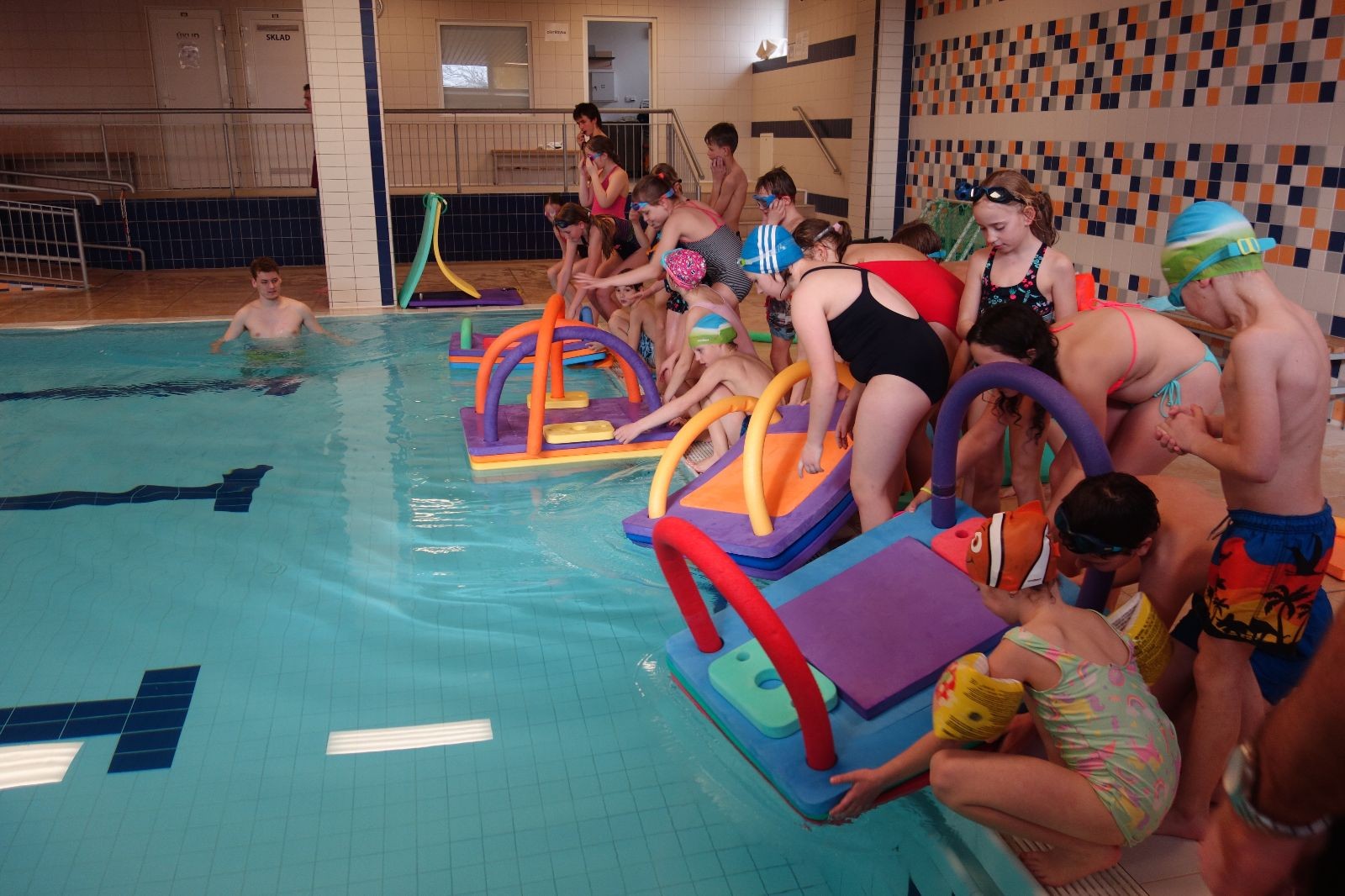 Už je to takřka tradice, březnová oddílovka se i letos konala v bazéně a to v pátek 31.3.2023. První hodinka patřila mladším členům oddílu, kterých se sešlo kolem 25. Lovila se štafetově víčka od PETek, stavěly se vory a závodili v plavbě na nich, vybíjelo se gumovými míči a vůbec byla zábava.