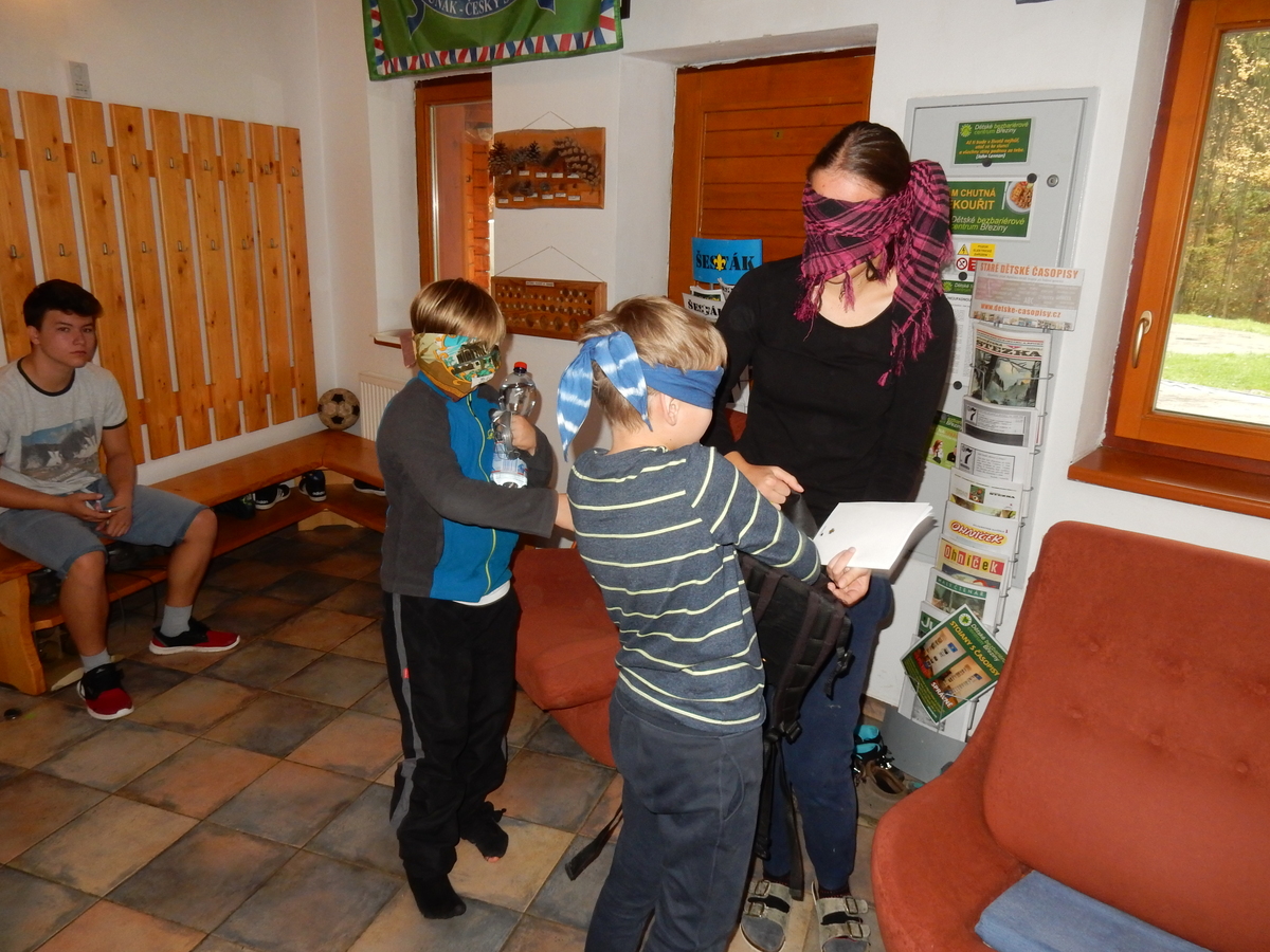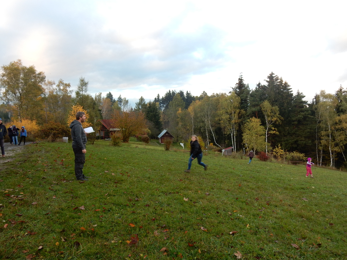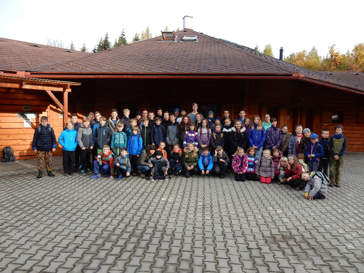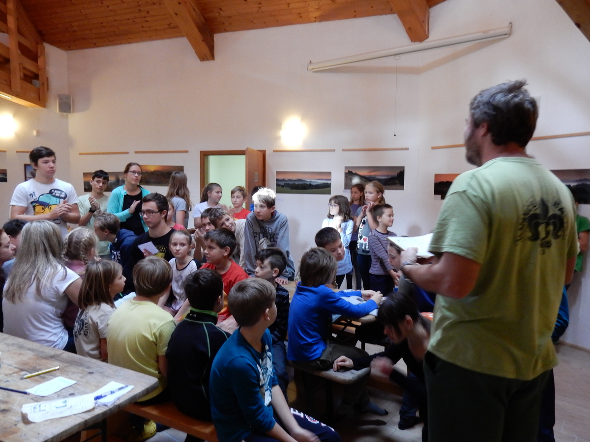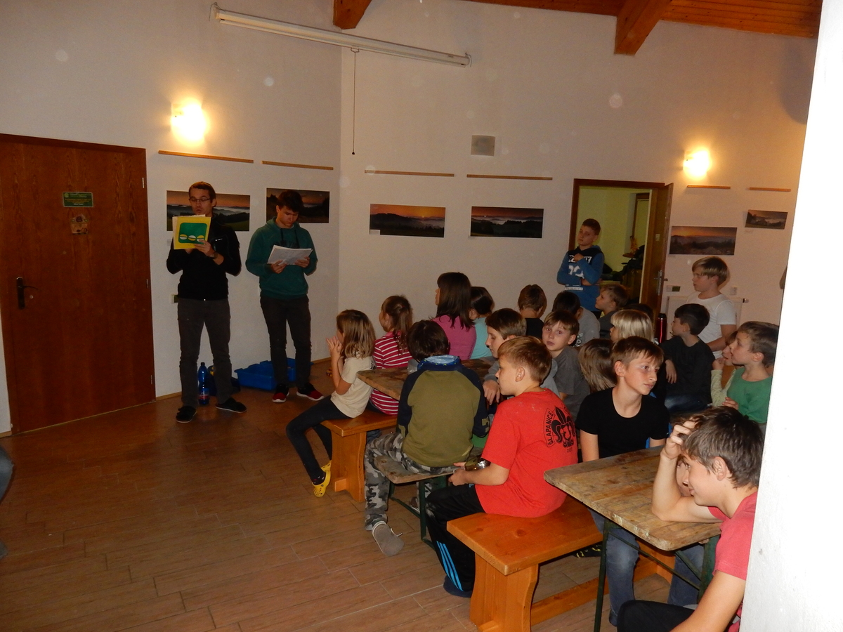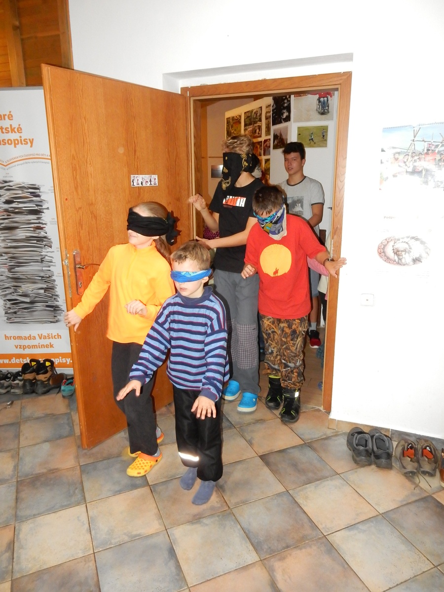 Je čtvrtek 26.10., 8:30 ráno. Zatímco dospělí míří za svými pracovními povinnostmi, školákům začíná první den podzimních prázdnin. A druhooddíláci se začínají pomalu ale jistě scházet na základně. Něco po tři čtvrtě na 9 přijíždí autobus, v tu chvíli už je na Boudě docela živo. Straší skauti skládají batohy do zavazadlového prostoru, Renča odškrtává seznam účastníků. 56 fajfek v seznamu, poslední zamávání rodičům a můžeme vyrazit směr Hostýnské vrchy. Sluníčko svítí a na palubě autobusu je (i díky "osvědčenému" řidiči Michalovi) skvělá atmosféra. V Kroměříži máme zastávku. Zatímco autobus parkuje kdesi na předměstí, my jdeme přímo do centra na historické náměstí. Petr účastníky dělí do 6 skupin po 8, každá skupina obdrží list s 8 úkoly a můžou vyrazit. Cílem zjišťovací soutěže je navštívit ta nejhezčí místa, která Kroměříž nabízí a zde něco zjistit. Je na to 45 minut a zvládají to všichni. Následuje hodinový rozchod. Cukrárna, zrcadlové bludiště, ZOOkoutek v zámecké zahradě, muzeum čokolády...to je jen několik málo z mnoha cílů, kam zvídaví členové oddílu míří. Dál pokračujeme cestou autobusem. Jedeme do Kateřinic, což je vesnice kousek od Vsetína. Nejhorší je úsek mezi Bystřicí a Hošťálkovou, kde je spousta semaforů... Na základně se všichni nejprve ubytují. Veverky v klubovně v levé části stavby, Draci s Pumami v levé zadní místnosti, Vlci s Tygry v pravé zadní místnosti, Kudlanky, Kobry a Sršni v podkroví. Následuje klasika jako vybírání účastnických poplatků, společného jídla... A protože je venku hezky, další etapa celovýpravové hry na sebe nedá dlouho čekat. Hraje se za slunečného počasí a její téma je pašování (co jiného také můžou ZBOJNÍCI dělat :-). Na večeři máme polévku s chlebem a před spaním se ještě hraje několik kol hry NA SARDELE. Kdo tu hru nezná, ten má těžkou mezeru ve vzdělání :-). V průběhu hry přijíždí autem čtveřice dalších vedoucích, kterým povinnosti neumožnily jet s námi už ráno autobusem: Brácha, Babů, Kanec a Kačka. No a kolem desáté se páše hygiena a uléhá k spánku. Někteří mladší mají trošku problém pochopit, co se skrývá pod pojmem "noční klid", hrozba noční hlídky venku ve tmě je však nakonec silnější než touha mluvit. A tak později již velkou místností zní jen tichý zpěv vedoucích a ještě později jen slastné oddechování spících skautíků a skautic. Páteční ráno začíná rozcvičkou. Petr s Kancem to berou poctivě i když se jim nad hlavou houfují temné černé mraky. Babů s Veverkami zatím chystají společnou snídaní. Po ní šestníci fasují pro svoje družiny jídlo na cestu, balíme se a připravujeme k odchodu směr Pržno a rozhledna u Holáňů. Pohled z okna nám ale plány poněkud hatí - začíná pršet a v momentě leje jako z konve. No a následný pohled na displej chytrého telefonu není o nic optimističtější než pohled z okna. Má pršet celý den. Tak se zase pěkně vybalujeme a Kloub rozjíždí další etapu celovýpravovky. Skupiny zbojníků v ní se zavázanýma očima hledají v místnosti rozmístěné předměty a skládají je do batůžku. Je zajímavé sledovat, jak o úspěchu rozhoduje nejen náhoda, ale mnohdy spíše schopnost fungovat jako tým a navzájem spolu komunikovat. V kuchyni zatím Kiki s Hihňou připravují oběd (který mel být původně večeří po návratu) a to těstoviny s omáčkou a sýrem. Po jídle se počasí malinko lepší, mraky se rozestupují a dokonce vykoukne i sluníčko. Vyrážíme tedy alespoň na necelé dva kilometry vzdálenou rozhlednu U Holáňů. Cesta vede do pěkného kopce, rozhledna je pak součástí přilehlé hospůdky, kde vládne vlídný a pohodový personál. Mrňousci se posilují sladkostmi, vedoucí jakbysmet. A rozhled je odtud opravdu skvělý. Na zpáteční cestě hrajeme na louce u lesa další etapu. I zbojnické děti musí umět počítat, podstatou hry je štafetové hledání lístků s čísly podle určitých pravidel. I zde hraje roli spolupráce, rychlá reakce a dobrá paměť. Která skupina zvítězila si už moc nepamatuju, ale co si pamatuju dobře je skutečnost, že mnohdy mladší vlčata i světlušky uspěli proti starším skautům či skautkám. Než se vrátíme zpět na základnu, začíná opět pršet. Náladu nám zlepšuje několik tácků s chleby se salámem a horký čaj. A po večeři rozjíždí Petr, Babů a Kiki další etapu AKTIVITY. Před spaním stíháme ještě jedno kolo oblíbených SARDELÍ, po hygieně a následné večerce se zpívá a radí. Sobotní ráno začíná tradičně rozcvičkou, tentokráte v režii Klouba a Kosti. Na snídani jsou buchty všeho druhu s čajem. Šestníci doplňují u Cyrila zásoby na cestu, společné foto před odchodem a může se jít. Dnes nás Pržno nemine! Cestou pozorujeme krásné barvy podzimu a taky nespočet druhů hub v lese. A někteří digitální maniaci pozorují displej svého mobilu. První (a poslední) výprava, kdy jsme vsadili na přirozenou inteligenci členů oddílu a nezakázali mobily. Výsledek? Špatná sázka. Většina je v pohodě, ale najdou se vyslovení závisláci. Když si jeden z Tygrů pustí hlasitou skřehotavou hudbu v lese, vybavím si vtipy a povídky z poloviny minulého století. Tehdy si "mastňáci" nosili do lesa pro změnu tranzistorová rádia k veliké nelibosti normálních lidí. Jak se nám ta historie opakuje... Obchůdek v Pržnu je bohužel zavřený, paní vedoucí ctí i bez Bublanova dementního zákona státní svátek. Do vzdálenější Jablůnky, kde obchodují Vietnamci, se nám nechce a tak kroky stáčíme do kopců směr Holáňovi. Cestou na louce se hraje etapa RUKA NOHA, kterou organizuje Kiki. Všichni se p