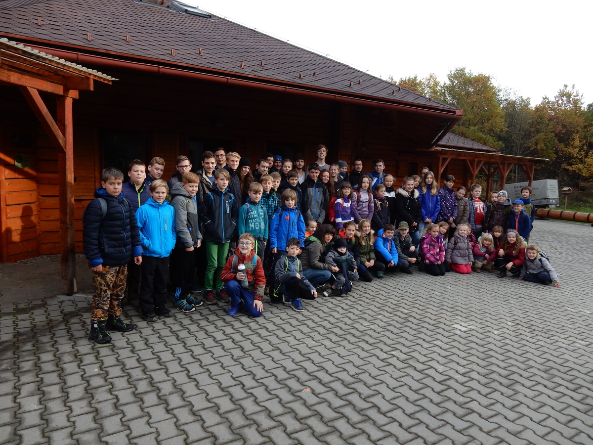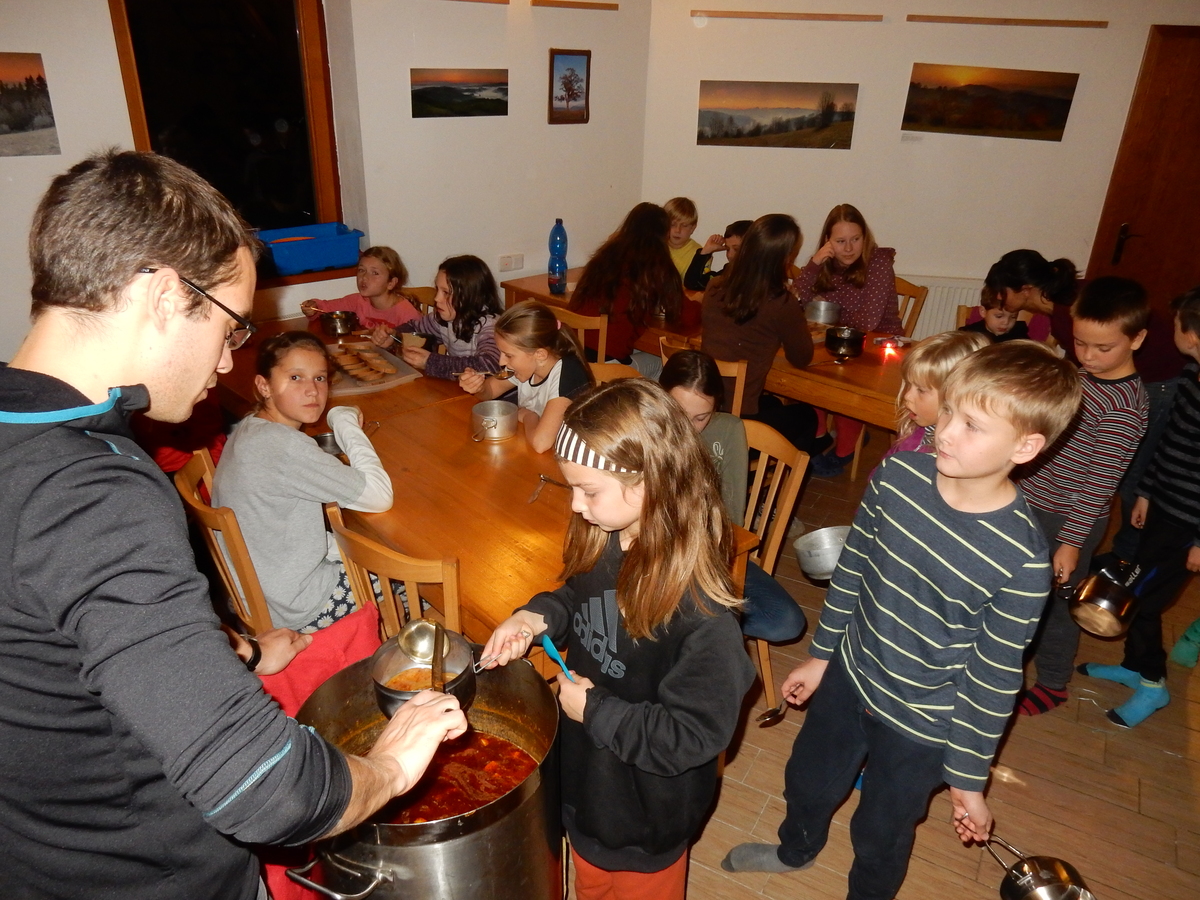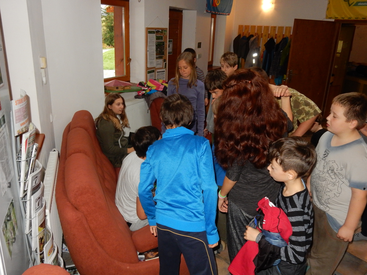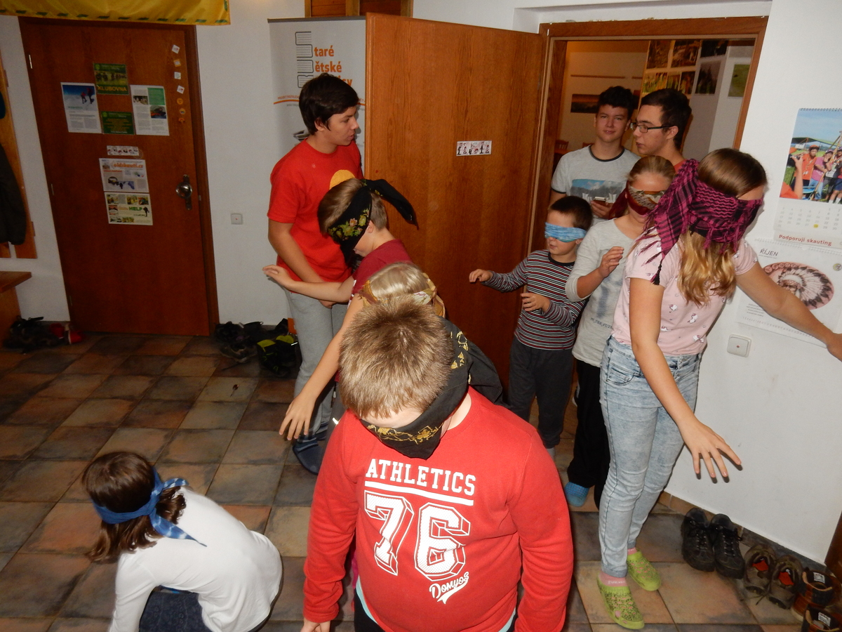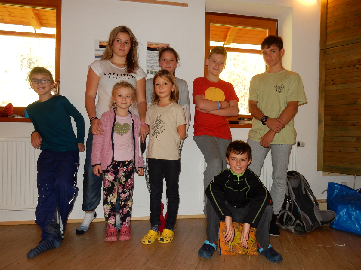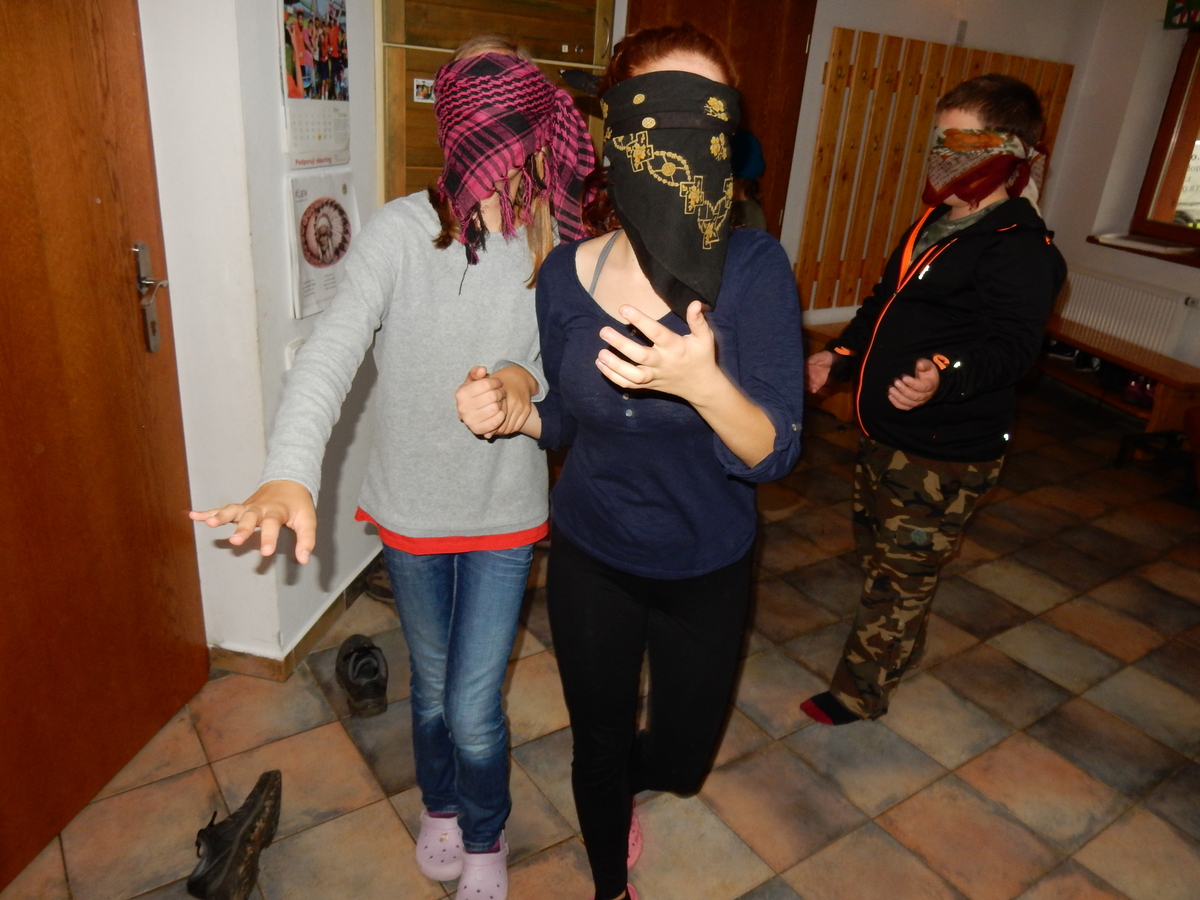 Je čtvrtek 26.10., 8:30 ráno. Zatímco dospělí míří za svými pracovními povinnostmi, školákům začíná první den podzimních prázdnin. A druhooddíláci se začínají pomalu ale jistě scházet na základně. Něco po tři čtvrtě na 9 přijíždí autobus, v tu chvíli už je na Boudě docela živo. Straší skauti skládají batohy do zavazadlového prostoru, Renča odškrtává seznam účastníků. 56 fajfek v seznamu, poslední zamávání rodičům a můžeme vyrazit směr Hostýnské vrchy. Sluníčko svítí a na palubě autobusu je (i díky "osvědčenému" řidiči Michalovi) skvělá atmosféra. V Kroměříži máme zastávku. Zatímco autobus parkuje kdesi na předměstí, my jdeme přímo do centra na historické náměstí. Petr účastníky dělí do 6 skupin po 8, každá skupina obdrží list s 8 úkoly a můžou vyrazit. Cílem zjišťovací soutěže je navštívit ta nejhezčí místa, která Kroměříž nabízí a zde něco zjistit. Je na to 45 minut a zvládají to všichni. Následuje hodinový rozchod. Cukrárna, zrcadlové bludiště, ZOOkoutek v zámecké zahradě, muzeum čokolády...to je jen několik málo z mnoha cílů, kam zvídaví členové oddílu míří. Dál pokračujeme cestou autobusem. Jedeme do Kateřinic, což je vesnice kousek od Vsetína. Nejhorší je úsek mezi Bystřicí a Hošťálkovou, kde je spousta semaforů... Na základně se všichni nejprve ubytují. Veverky v klubovně v levé části stavby, Draci s Pumami v levé zadní místnosti, Vlci s Tygry v pravé zadní místnosti, Kudlanky, Kobry a Sršni v podkroví. Následuje klasika jako vybírání účastnických poplatků, společného jídla... A protože je venku hezky, další etapa celovýpravové hry na sebe nedá dlouho čekat. Hraje se za slunečného počasí a její téma je pašování (co jiného také můžou ZBOJNÍCI dělat :-). Na večeři máme polévku s chlebem a před spaním se ještě hraje několik kol hry NA SARDELE. Kdo tu hru nezná, ten má těžkou mezeru ve vzdělání :-). V průběhu hry přijíždí autem čtveřice dalších vedoucích, kterým povinnosti neumožnily jet s námi už ráno autobusem: Brácha, Babů, Kanec a Kačka. No a kolem desáté se páše hygiena a uléhá k spánku. Někteří mladší mají trošku problém pochopit, co se skrývá pod pojmem "noční klid", hrozba noční hlídky venku ve tmě je však nakonec silnější než touha mluvit. A tak později již velkou místností zní jen tichý zpěv vedoucích a ještě později jen slastné oddechování spících skautíků a skautic. Páteční ráno začíná rozcvičkou. Petr s Kancem to berou poctivě i když se jim nad hlavou houfují temné černé mraky. Babů s Veverkami zatím chystají společnou snídaní. Po ní šestníci fasují pro svoje družiny jídlo na cestu, balíme se a připravujeme k odchodu směr Pržno a rozhledna u Holáňů. Pohled z okna nám ale plány poněkud hatí - začíná pršet a v momentě leje jako z konve. No a následný pohled na displej chytrého telefonu není o nic optimističtější než pohled z okna. Má pršet celý den. Tak se zase pěkně vybalujeme a Kloub rozjíždí další etapu celovýpravovky. Skupiny zbojníků v ní se zavázanýma očima hledají v místnosti rozmístěné předměty a skládají je do batůžku. Je zajímavé sledovat, jak o úspěchu rozhoduje nejen náhoda, ale mnohdy spíše schopnost fungovat jako tým a navzájem spolu komunikovat. V kuchyni zatím Kiki s Hihňou připravují oběd (který mel být původně večeří po návratu) a to těstoviny s omáčkou a sýrem. Po jídle se počasí malinko lepší, mraky se rozestupují a dokonce vykoukne i sluníčko. Vyrážíme tedy alespoň na necelé dva kilometry vzdálenou rozhlednu U Holáňů. Cesta vede do pěkného kopce, rozhledna je pak součástí přilehlé hospůdky, kde vládne vlídný a pohodový personál. Mrňousci se posilují sladkostmi, vedoucí jakbysmet. A rozhled je odtud opravdu skvělý. Na zpáteční cestě hrajeme na louce u lesa další etapu. I zbojnické děti musí umět počítat, podstatou hry je štafetové hledání lístků s čísly podle určitých pravidel. I zde hraje roli spolupráce, rychlá reakce a dobrá paměť. Která skupina zvítězila si už moc nepamatuju, ale co si pamatuju dobře je skutečnost, že mnohdy mladší vlčata i světlušky uspěli proti starším skautům či skautkám. Než se vrátíme zpět na základnu, začíná opět pršet. Náladu nám zlepšuje několik tácků s chleby se salámem a horký čaj. A po večeři rozjíždí Petr, Babů a Kiki další etapu AKTIVITY. Před spaním stíháme ještě jedno kolo oblíbených SARDELÍ, po hygieně a následné večerce se zpívá a radí. Sobotní ráno začíná tradičně rozcvičkou, tentokráte v režii Klouba a Kosti. Na snídani jsou buchty všeho druhu s čajem. Šestníci doplňují u Cyrila zásoby na cestu, společné foto před odchodem a může se jít. Dnes nás Pržno nemine! Cestou pozorujeme krásné barvy podzimu a taky nespočet druhů hub v lese. A někteří digitální maniaci pozorují displej svého mobilu. První (a poslední) výprava, kdy jsme vsadili na přirozenou inteligenci členů oddílu a nezakázali mobily. Výsledek? Špatná sázka. Většina je v pohodě, ale najdou se vyslovení závisláci. Když si jeden z Tygrů pustí hlasitou skřehotavou hudbu v lese, vybavím si vtipy a povídky z poloviny minulého století. Tehdy si "mastňáci" nosili do lesa pro změnu tranzistorová rádia k veliké nelibosti normálních lidí. Jak se nám ta historie opakuje... Obchůdek v Pržnu je bohužel zavřený, paní vedoucí ctí i bez Bublanova dementního zákona státní svátek. Do vzdálenější Jablůnky, kde obchodují Vietnamci, se nám nechce a tak kroky stáčíme do kopců směr Holáňovi. Cestou na louce se hraje etapa RUKA NOHA, kterou organizuje Kiki. Všichni se p