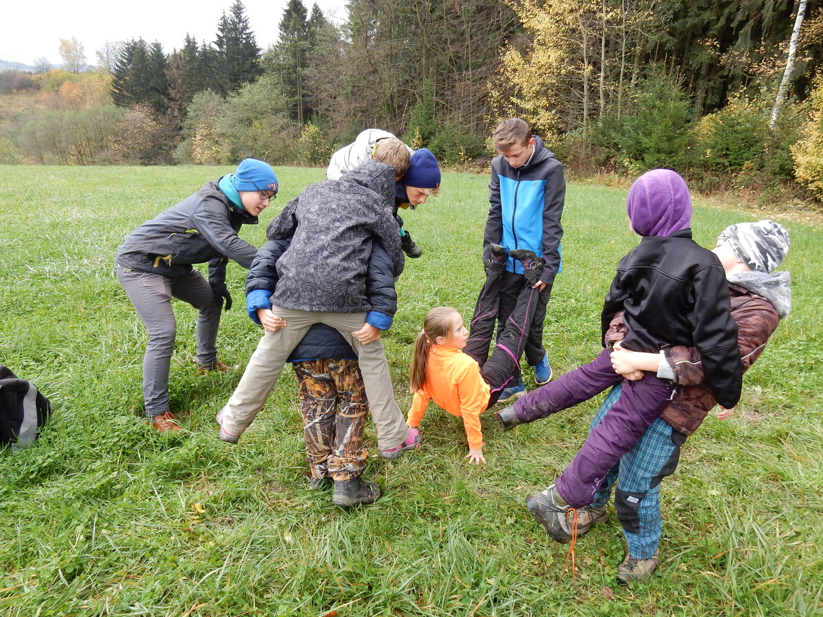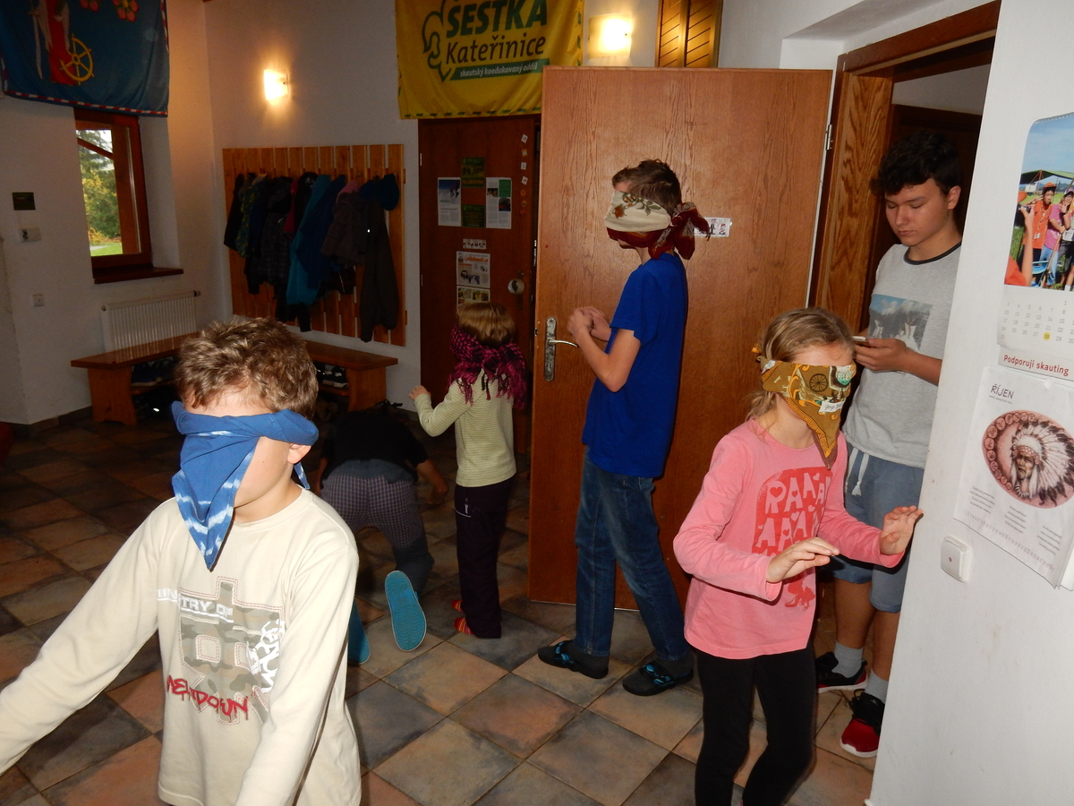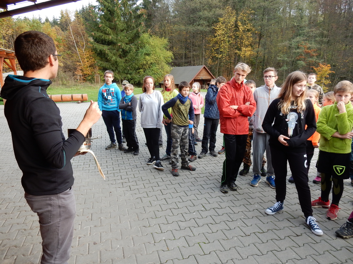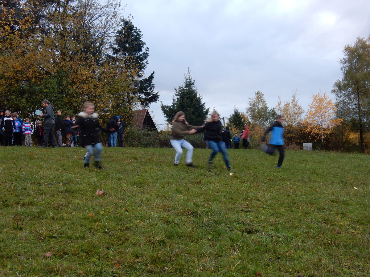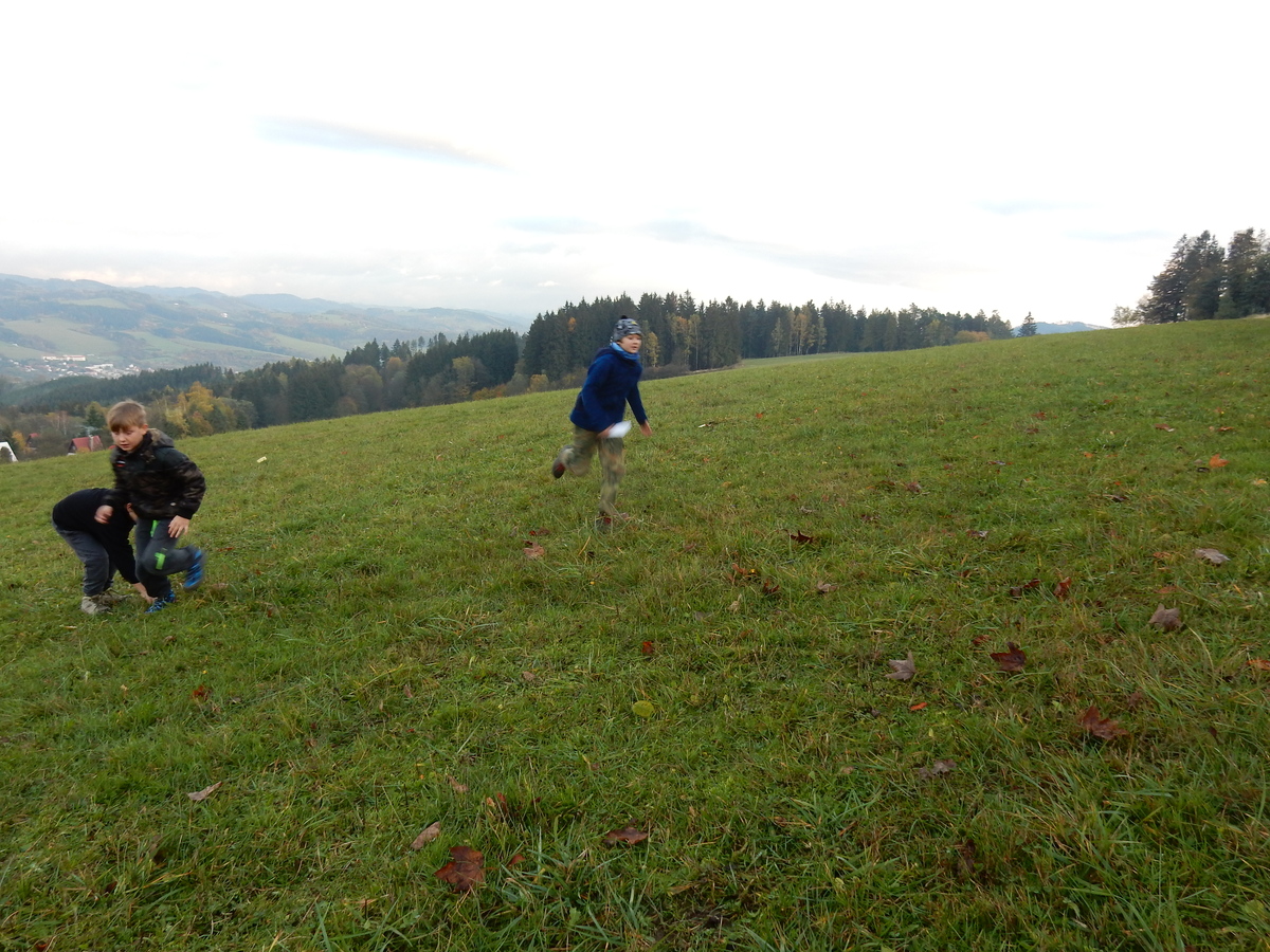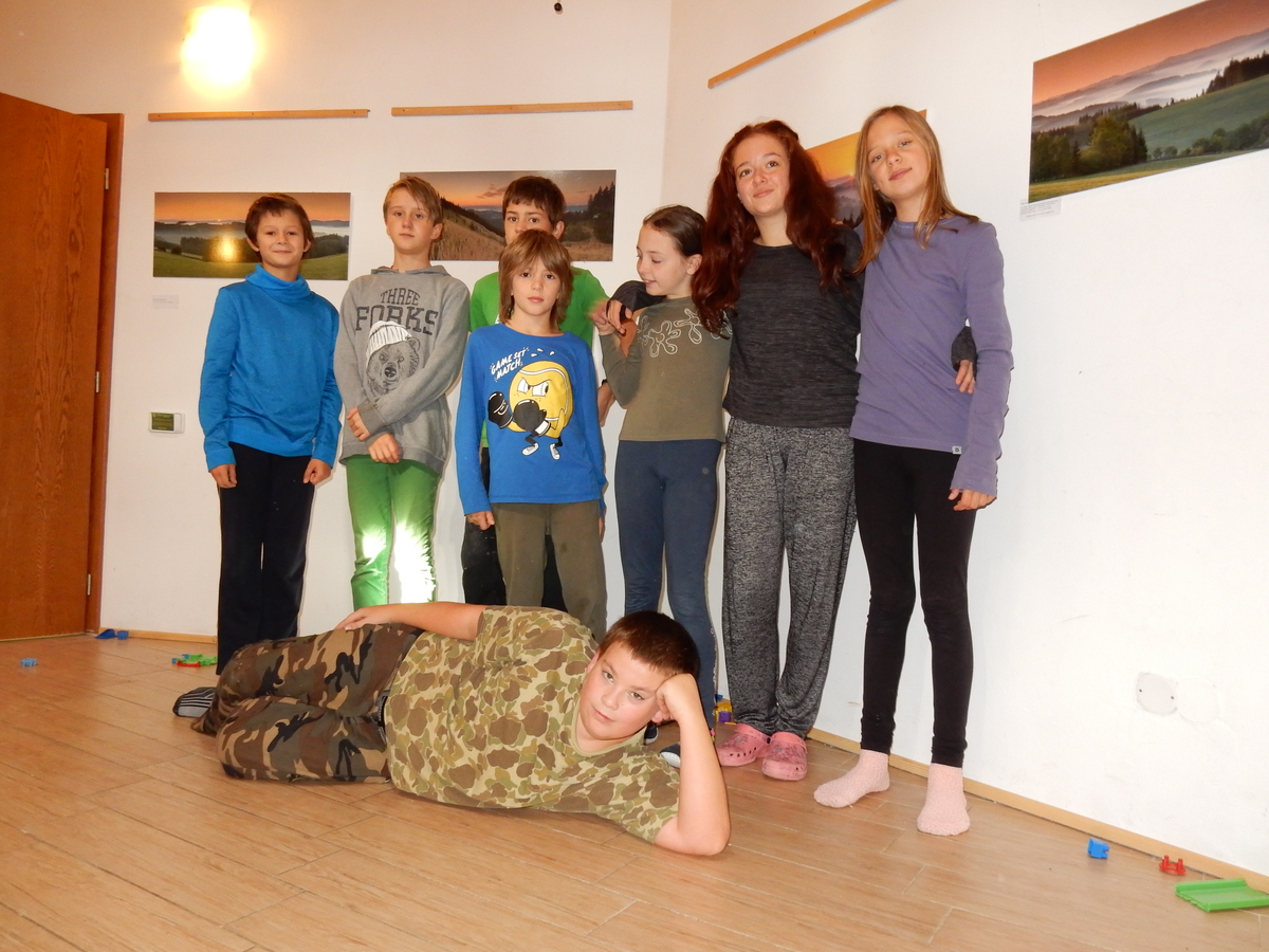Je čtvrtek 26.10., 8:30 ráno. Zatímco dospělí míří za svými pracovními povinnostmi, školákům začíná první den podzimních prázdnin. A druhooddíláci se začínají pomalu ale jistě scházet na základně. Něco po tři čtvrtě na 9 přijíždí autobus, v tu chvíli už je na Boudě docela živo. Straší skauti skládají batohy do zavazadlového prostoru, Renča odškrtává seznam účastníků. 56 fajfek v seznamu, poslední zamávání rodičům a můžeme vyrazit směr Hostýnské vrchy. Sluníčko svítí a na palubě autobusu je (i díky "osvědčenému" řidiči Michalovi) skvělá atmosféra. V Kroměříži máme zastávku. Zatímco autobus parkuje kdesi na předměstí, my jdeme přímo do centra na historické náměstí. Petr účastníky dělí do 6 skupin po 8, každá skupina obdrží list s 8 úkoly a můžou vyrazit. Cílem zjišťovací soutěže je navštívit ta nejhezčí místa, která Kroměříž nabízí a zde něco zjistit. Je na to 45 minut a zvládají to všichni. Následuje hodinový rozchod. Cukrárna, zrcadlové bludiště, ZOOkoutek v zámecké zahradě, muzeum čokolády...to je jen několik málo z mnoha cílů, kam zvídaví členové oddílu míří. Dál pokračujeme cestou autobusem. Jedeme do Kateřinic, což je vesnice kousek od Vsetína. Nejhorší je úsek mezi Bystřicí a Hošťálkovou, kde je spousta semaforů... Na základně se všichni nejprve ubytují. Veverky v klubovně v levé části stavby, Draci s Pumami v levé zadní místnosti, Vlci s Tygry v pravé zadní místnosti, Kudlanky, Kobry a Sršni v podkroví. Následuje klasika jako vybírání účastnických poplatků, společného jídla... A protože je venku hezky, další etapa celovýpravové hry na sebe nedá dlouho čekat. Hraje se za slunečného počasí a její téma je pašování (co jiného také můžou ZBOJNÍCI dělat :-). Na večeři máme polévku s chlebem a před spaním se ještě hraje několik kol hry NA SARDELE. Kdo tu hru nezná, ten má těžkou mezeru ve vzdělání :-). V průběhu hry přijíždí autem čtveřice dalších vedoucích, kterým povinnosti neumožnily jet s námi už ráno autobusem: Brácha, Babů, Kanec a Kačka. No a kolem desáté se páše hygiena a uléhá k spánku. Někteří mladší mají trošku problém pochopit, co se skrývá pod pojmem "noční klid", hrozba noční hlídky venku ve tmě je však nakonec silnější než touha mluvit. A tak později již velkou místností zní jen tichý zpěv vedoucích a ještě později jen slastné oddechování spících skautíků a skautic. Páteční ráno začíná rozcvičkou. Petr s Kancem to berou poctivě i když se jim nad hlavou houfují temné černé mraky. Babů s Veverkami zatím chystají společnou snídaní. Po ní šestníci fasují pro svoje družiny jídlo na cestu, balíme se a připravujeme k odchodu směr Pržno a rozhledna u Holáňů. Pohled z okna nám ale plány poněkud hatí - začíná pršet a v momentě leje jako z konve. No a následný pohled na displej chytrého telefonu není o nic optimističtější než pohled z okna. Má pršet celý den. Tak se zase pěkně vybalujeme a Kloub rozjíždí další etapu celovýpravovky. Skupiny zbojníků v ní se zavázanýma očima hledají v místnosti rozmístěné předměty a skládají je do batůžku. Je zajímavé sledovat, jak o úspěchu rozhoduje nejen náhoda, ale mnohdy spíše schopnost fungovat jako tým a navzájem spolu komunikovat. V kuchyni zatím Kiki s Hihňou připravují oběd (který mel být původně večeří po návratu) a to těstoviny s omáčkou a sýrem. Po jídle se počasí malinko lepší, mraky se rozestupují a dokonce vykoukne i sluníčko. Vyrážíme tedy alespoň na necelé dva kilometry vzdálenou rozhlednu U Holáňů. Cesta vede do pěkného kopce, rozhledna je pak součástí přilehlé hospůdky, kde vládne vlídný a pohodový personál. Mrňousci se posilují sladkostmi, vedoucí jakbysmet. A rozhled je odtud opravdu skvělý. Na zpáteční cestě hrajeme na louce u lesa další etapu. I zbojnické děti musí umět počítat, podstatou hry je štafetové hledání lístků s čísly podle určitých pravidel. I zde hraje roli spolupráce, rychlá reakce a dobrá paměť. Která skupina zvítězila si už moc nepamatuju, ale co si pamatuju dobře je skutečnost, že mnohdy mladší vlčata i světlušky uspěli proti starším skautům či skautkám. Než se vrátíme zpět na základnu, začíná opět pršet. Náladu nám zlepšuje několik tácků s chleby se salámem a horký čaj. A po večeři rozjíždí Petr, Babů a Kiki další etapu AKTIVITY. Před spaním stíháme ještě jedno kolo oblíbených SARDELÍ, po hygieně a následné večerce se zpívá a radí. Sobotní ráno začíná tradičně rozcvičkou, tentokráte v režii Klouba a Kosti. Na snídani jsou buchty všeho druhu s čajem. Šestníci doplňují u Cyrila zásoby na cestu, společné foto před odchodem a může se jít. Dnes nás Pržno nemine! Cestou pozorujeme krásné barvy podzimu a taky nespočet druhů hub v lese. A někteří digitální maniaci pozorují displej svého mobilu. První (a poslední) výprava, kdy jsme vsadili na přirozenou inteligenci členů oddílu a nezakázali mobily. Výsledek? Špatná sázka. Většina je v pohodě, ale najdou se vyslovení závisláci. Když si jeden z Tygrů pustí hlasitou skřehotavou hudbu v lese, vybavím si vtipy a povídky z poloviny minulého století. Tehdy si "mastňáci" nosili do lesa pro změnu tranzistorová rádia k veliké nelibosti normálních lidí. Jak se nám ta historie opakuje... Obchůdek v Pržnu je bohužel zavřený, paní vedoucí ctí i bez Bublanova dementního zákona státní svátek. Do vzdálenější Jablůnky, kde obchodují Vietnamci, se nám nechce a tak kroky stáčíme do kopců směr Holáňovi. Cestou na louce se hraje etapa RUKA NOHA, kterou organizuje Kiki. Všichni se p
