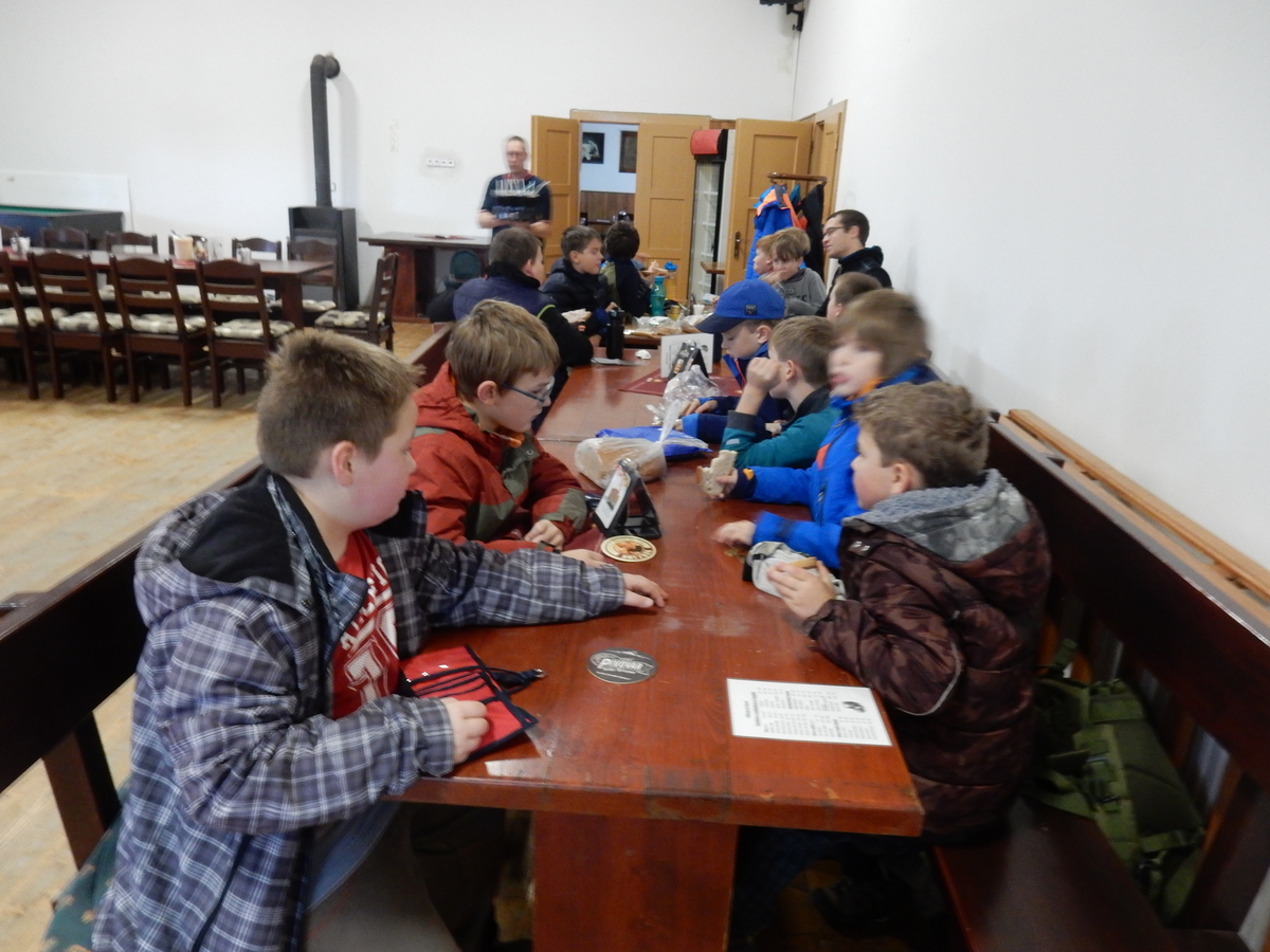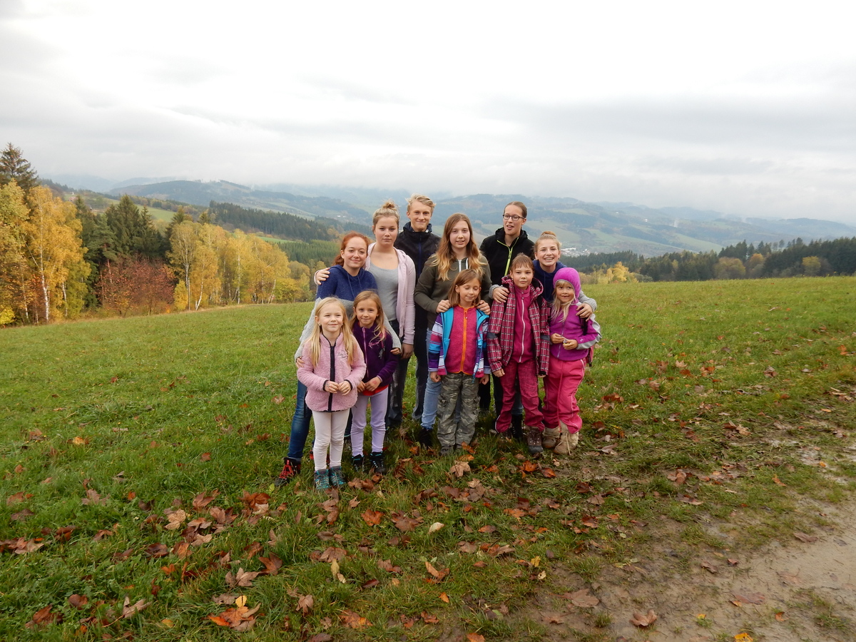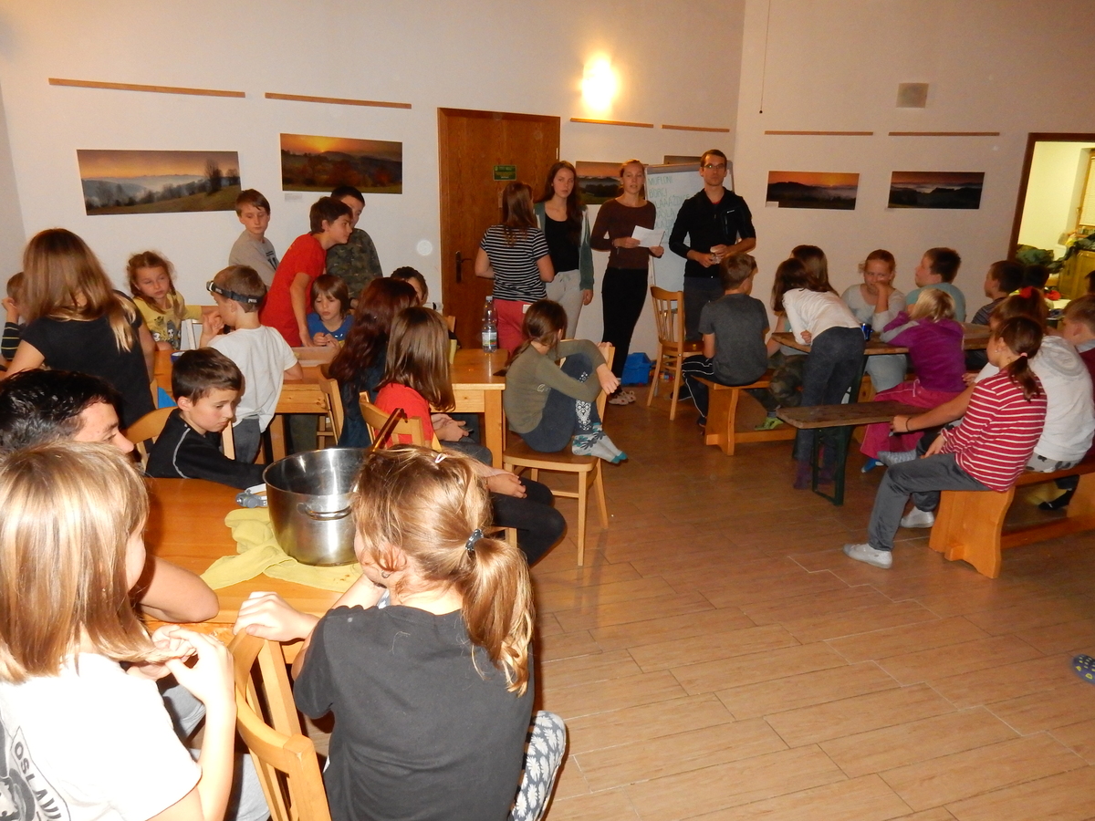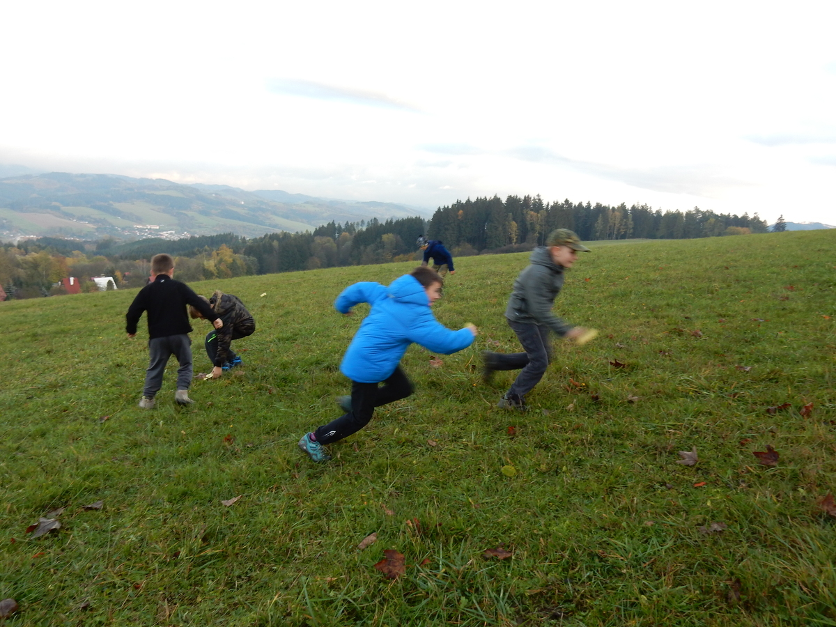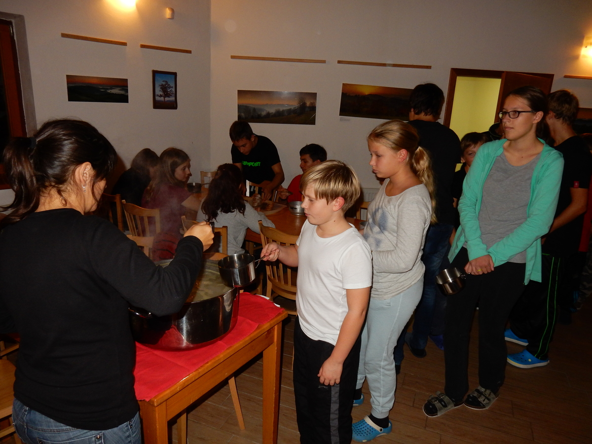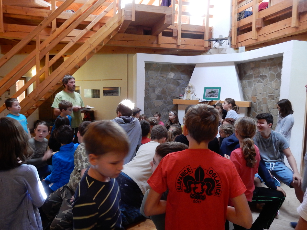 Je čtvrtek 26.10., 8:30 ráno. Zatímco dospělí míří za svými pracovními povinnostmi, školákům začíná první den podzimních prázdnin. A druhooddíláci se začínají pomalu ale jistě scházet na základně. Něco po tři čtvrtě na 9 přijíždí autobus, v tu chvíli už je na Boudě docela živo. Straší skauti skládají batohy do zavazadlového prostoru, Renča odškrtává seznam účastníků. 56 fajfek v seznamu, poslední zamávání rodičům a můžeme vyrazit směr Hostýnské vrchy. Sluníčko svítí a na palubě autobusu je (i díky "osvědčenému" řidiči Michalovi) skvělá atmosféra. V Kroměříži máme zastávku. Zatímco autobus parkuje kdesi na předměstí, my jdeme přímo do centra na historické náměstí. Petr účastníky dělí do 6 skupin po 8, každá skupina obdrží list s 8 úkoly a můžou vyrazit. Cílem zjišťovací soutěže je navštívit ta nejhezčí místa, která Kroměříž nabízí a zde něco zjistit. Je na to 45 minut a zvládají to všichni. Následuje hodinový rozchod. Cukrárna, zrcadlové bludiště, ZOOkoutek v zámecké zahradě, muzeum čokolády...to je jen několik málo z mnoha cílů, kam zvídaví členové oddílu míří. Dál pokračujeme cestou autobusem. Jedeme do Kateřinic, což je vesnice kousek od Vsetína. Nejhorší je úsek mezi Bystřicí a Hošťálkovou, kde je spousta semaforů... Na základně se všichni nejprve ubytují. Veverky v klubovně v levé části stavby, Draci s Pumami v levé zadní místnosti, Vlci s Tygry v pravé zadní místnosti, Kudlanky, Kobry a Sršni v podkroví. Následuje klasika jako vybírání účastnických poplatků, společného jídla... A protože je venku hezky, další etapa celovýpravové hry na sebe nedá dlouho čekat. Hraje se za slunečného počasí a její téma je pašování (co jiného také můžou ZBOJNÍCI dělat :-). Na večeři máme polévku s chlebem a před spaním se ještě hraje několik kol hry NA SARDELE. Kdo tu hru nezná, ten má těžkou mezeru ve vzdělání :-). V průběhu hry přijíždí autem čtveřice dalších vedoucích, kterým povinnosti neumožnily jet s námi už ráno autobusem: Brácha, Babů, Kanec a Kačka. No a kolem desáté se páše hygiena a uléhá k spánku. Někteří mladší mají trošku problém pochopit, co se skrývá pod pojmem "noční klid", hrozba noční hlídky venku ve tmě je však nakonec silnější než touha mluvit. A tak později již velkou místností zní jen tichý zpěv vedoucích a ještě později jen slastné oddechování spících skautíků a skautic. Páteční ráno začíná rozcvičkou. Petr s Kancem to berou poctivě i když se jim nad hlavou houfují temné černé mraky. Babů s Veverkami zatím chystají společnou snídaní. Po ní šestníci fasují pro svoje družiny jídlo na cestu, balíme se a připravujeme k odchodu směr Pržno a rozhledna u Holáňů. Pohled z okna nám ale plány poněkud hatí - začíná pršet a v momentě leje jako z konve. No a následný pohled na displej chytrého telefonu není o nic optimističtější než pohled z okna. Má pršet celý den. Tak se zase pěkně vybalujeme a Kloub rozjíždí další etapu celovýpravovky. Skupiny zbojníků v ní se zavázanýma očima hledají v místnosti rozmístěné předměty a skládají je do batůžku. Je zajímavé sledovat, jak o úspěchu rozhoduje nejen náhoda, ale mnohdy spíše schopnost fungovat jako tým a navzájem spolu komunikovat. V kuchyni zatím Kiki s Hihňou připravují oběd (který mel být původně večeří po návratu) a to těstoviny s omáčkou a sýrem. Po jídle se počasí malinko lepší, mraky se rozestupují a dokonce vykoukne i sluníčko. Vyrážíme tedy alespoň na necelé dva kilometry vzdálenou rozhlednu U Holáňů. Cesta vede do pěkného kopce, rozhledna je pak součástí přilehlé hospůdky, kde vládne vlídný a pohodový personál. Mrňousci se posilují sladkostmi, vedoucí jakbysmet. A rozhled je odtud opravdu skvělý. Na zpáteční cestě hrajeme na louce u lesa další etapu. I zbojnické děti musí umět počítat, podstatou hry je štafetové hledání lístků s čísly podle určitých pravidel. I zde hraje roli spolupráce, rychlá reakce a dobrá paměť. Která skupina zvítězila si už moc nepamatuju, ale co si pamatuju dobře je skutečnost, že mnohdy mladší vlčata i světlušky uspěli proti starším skautům či skautkám. Než se vrátíme zpět na základnu, začíná opět pršet. Náladu nám zlepšuje několik tácků s chleby se salámem a horký čaj. A po večeři rozjíždí Petr, Babů a Kiki další etapu AKTIVITY. Před spaním stíháme ještě jedno kolo oblíbených SARDELÍ, po hygieně a následné večerce se zpívá a radí. Sobotní ráno začíná tradičně rozcvičkou, tentokráte v režii Klouba a Kosti. Na snídani jsou buchty všeho druhu s čajem. Šestníci doplňují u Cyrila zásoby na cestu, společné foto před odchodem a může se jít. Dnes nás Pržno nemine! Cestou pozorujeme krásné barvy podzimu a taky nespočet druhů hub v lese. A někteří digitální maniaci pozorují displej svého mobilu. První (a poslední) výprava, kdy jsme vsadili na přirozenou inteligenci členů oddílu a nezakázali mobily. Výsledek? Špatná sázka. Většina je v pohodě, ale najdou se vyslovení závisláci. Když si jeden z Tygrů pustí hlasitou skřehotavou hudbu v lese, vybavím si vtipy a povídky z poloviny minulého století. Tehdy si "mastňáci" nosili do lesa pro změnu tranzistorová rádia k veliké nelibosti normálních lidí. Jak se nám ta historie opakuje... Obchůdek v Pržnu je bohužel zavřený, paní vedoucí ctí i bez Bublanova dementního zákona státní svátek. Do vzdálenější Jablůnky, kde obchodují Vietnamci, se nám nechce a tak kroky stáčíme do kopců směr Holáňovi. Cestou na louce se hraje etapa RUKA NOHA, kterou organizuje Kiki. Všichni se p