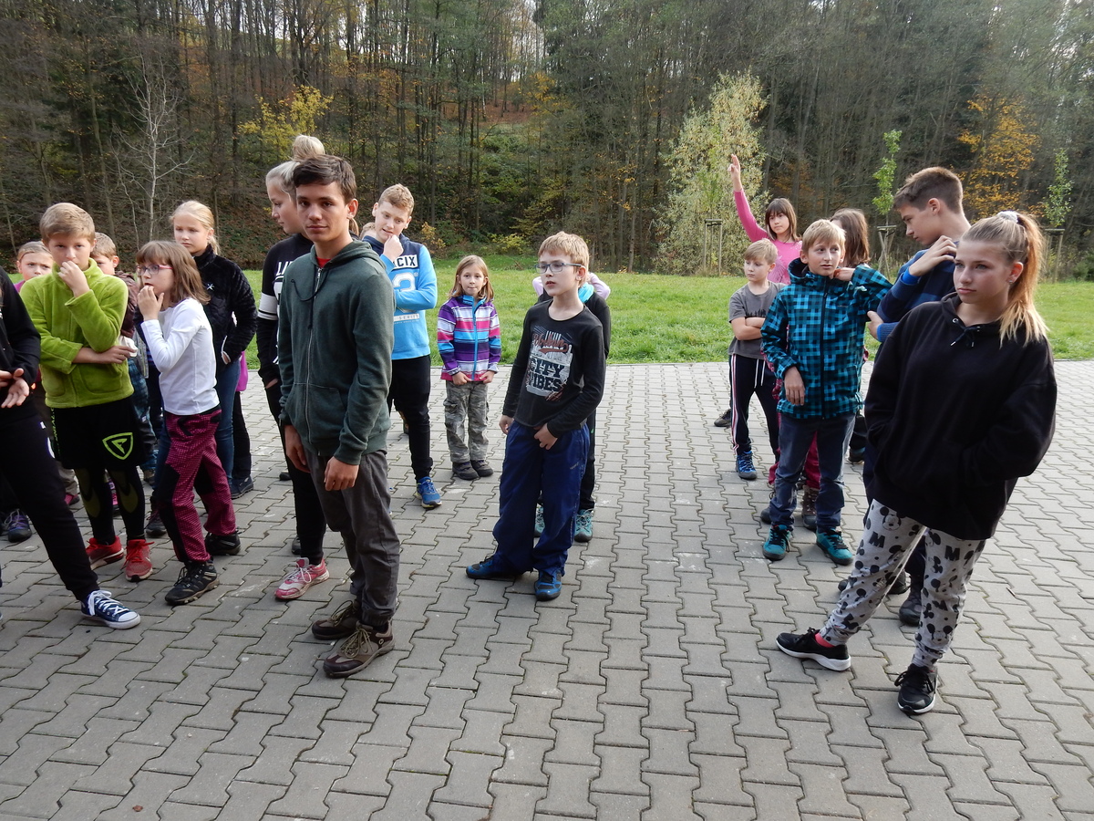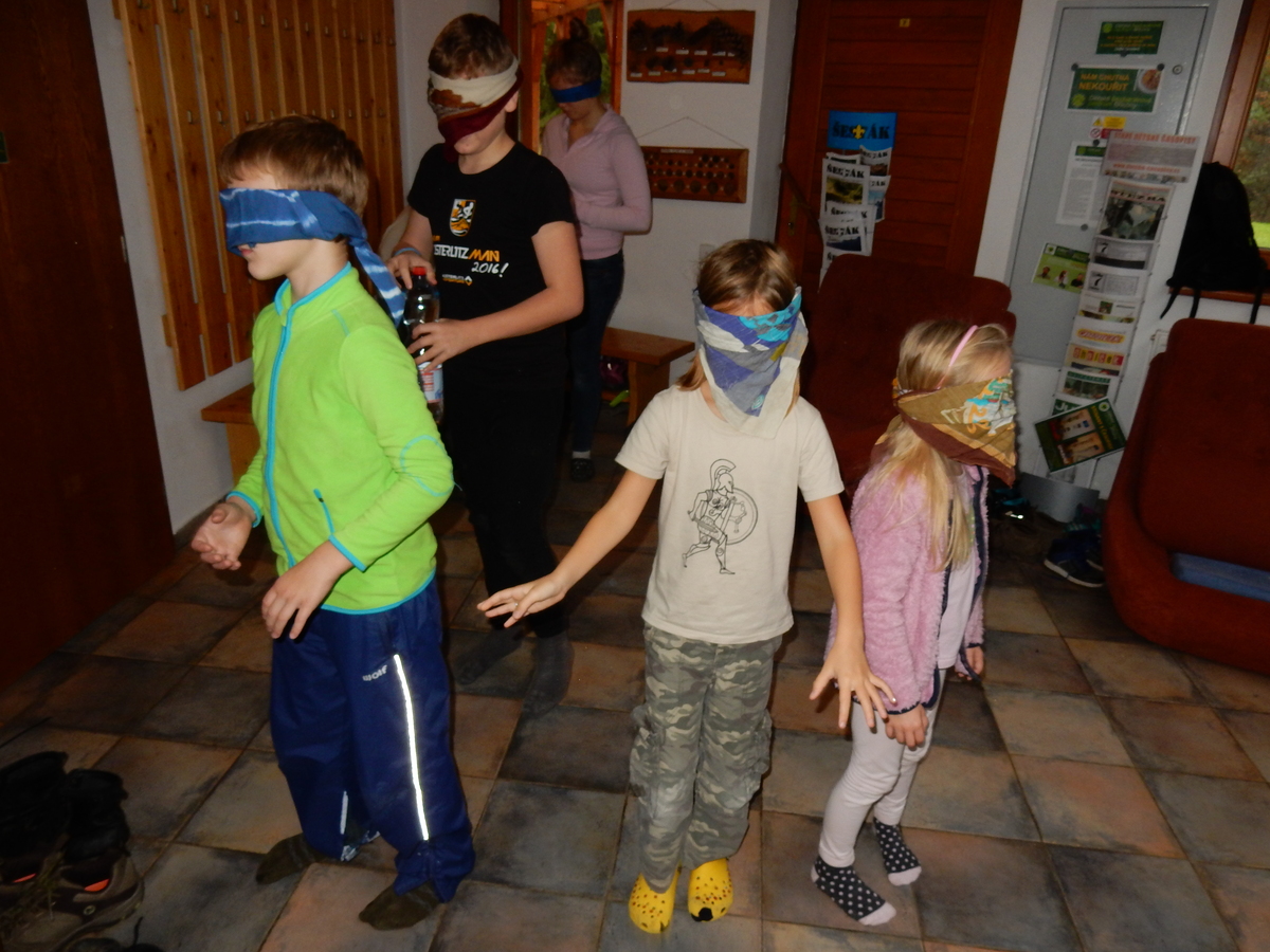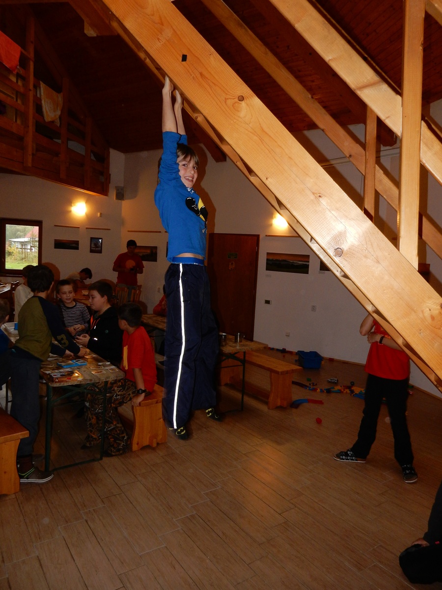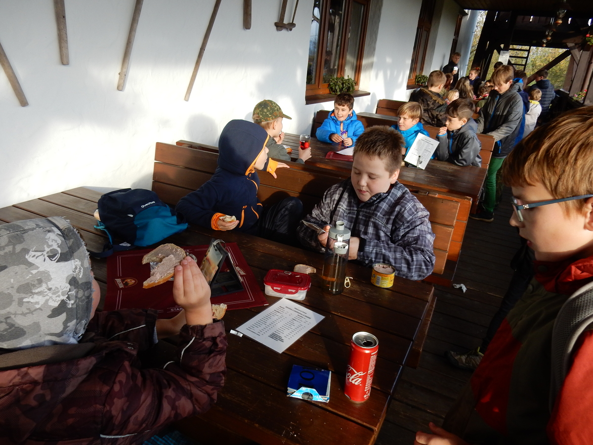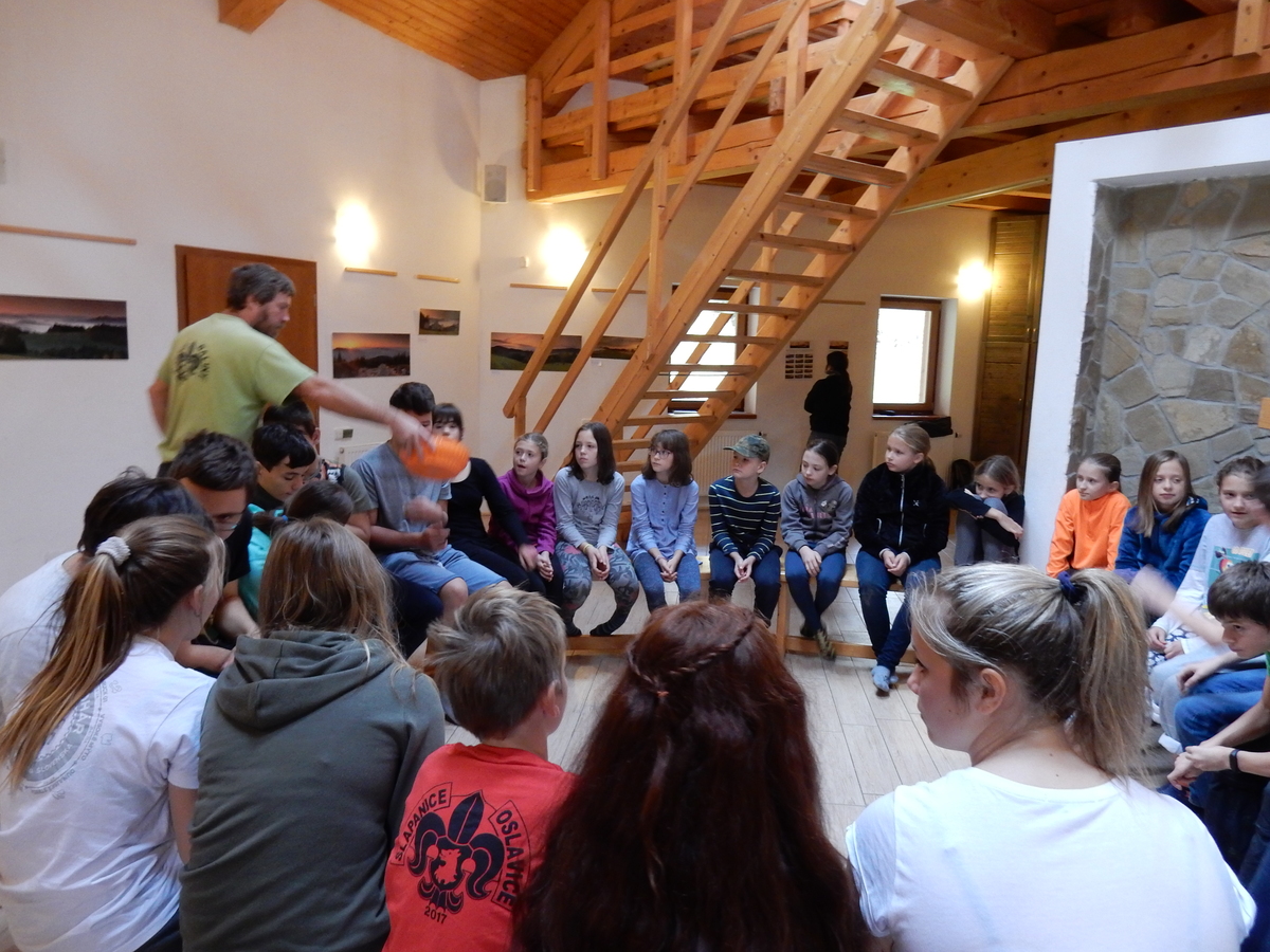 Je čtvrtek 26.10., 8:30 ráno. Zatímco dospělí míří za svými pracovními povinnostmi, školákům začíná první den podzimních prázdnin. A druhooddíláci se začínají pomalu ale jistě scházet na základně. Něco po tři čtvrtě na 9 přijíždí autobus, v tu chvíli už je na Boudě docela živo. Straší skauti skládají batohy do zavazadlového prostoru, Renča odškrtává seznam účastníků. 56 fajfek v seznamu, poslední zamávání rodičům a můžeme vyrazit směr Hostýnské vrchy. Sluníčko svítí a na palubě autobusu je (i díky "osvědčenému" řidiči Michalovi) skvělá atmosféra. V Kroměříži máme zastávku. Zatímco autobus parkuje kdesi na předměstí, my jdeme přímo do centra na historické náměstí. Petr účastníky dělí do 6 skupin po 8, každá skupina obdrží list s 8 úkoly a můžou vyrazit. Cílem zjišťovací soutěže je navštívit ta nejhezčí místa, která Kroměříž nabízí a zde něco zjistit. Je na to 45 minut a zvládají to všichni. Následuje hodinový rozchod. Cukrárna, zrcadlové bludiště, ZOOkoutek v zámecké zahradě, muzeum čokolády...to je jen několik málo z mnoha cílů, kam zvídaví členové oddílu míří. Dál pokračujeme cestou autobusem. Jedeme do Kateřinic, což je vesnice kousek od Vsetína. Nejhorší je úsek mezi Bystřicí a Hošťálkovou, kde je spousta semaforů... Na základně se všichni nejprve ubytují. Veverky v klubovně v levé části stavby, Draci s Pumami v levé zadní místnosti, Vlci s Tygry v pravé zadní místnosti, Kudlanky, Kobry a Sršni v podkroví. Následuje klasika jako vybírání účastnických poplatků, společného jídla... A protože je venku hezky, další etapa celovýpravové hry na sebe nedá dlouho čekat. Hraje se za slunečného počasí a její téma je pašování (co jiného také můžou ZBOJNÍCI dělat :-). Na večeři máme polévku s chlebem a před spaním se ještě hraje několik kol hry NA SARDELE. Kdo tu hru nezná, ten má těžkou mezeru ve vzdělání :-). V průběhu hry přijíždí autem čtveřice dalších vedoucích, kterým povinnosti neumožnily jet s námi už ráno autobusem: Brácha, Babů, Kanec a Kačka. No a kolem desáté se páše hygiena a uléhá k spánku. Někteří mladší mají trošku problém pochopit, co se skrývá pod pojmem "noční klid", hrozba noční hlídky venku ve tmě je však nakonec silnější než touha mluvit. A tak později již velkou místností zní jen tichý zpěv vedoucích a ještě později jen slastné oddechování spících skautíků a skautic. Páteční ráno začíná rozcvičkou. Petr s Kancem to berou poctivě i když se jim nad hlavou houfují temné černé mraky. Babů s Veverkami zatím chystají společnou snídaní. Po ní šestníci fasují pro svoje družiny jídlo na cestu, balíme se a připravujeme k odchodu směr Pržno a rozhledna u Holáňů. Pohled z okna nám ale plány poněkud hatí - začíná pršet a v momentě leje jako z konve. No a následný pohled na displej chytrého telefonu není o nic optimističtější než pohled z okna. Má pršet celý den. Tak se zase pěkně vybalujeme a Kloub rozjíždí další etapu celovýpravovky. Skupiny zbojníků v ní se zavázanýma očima hledají v místnosti rozmístěné předměty a skládají je do batůžku. Je zajímavé sledovat, jak o úspěchu rozhoduje nejen náhoda, ale mnohdy spíše schopnost fungovat jako tým a navzájem spolu komunikovat. V kuchyni zatím Kiki s Hihňou připravují oběd (který mel být původně večeří po návratu) a to těstoviny s omáčkou a sýrem. Po jídle se počasí malinko lepší, mraky se rozestupují a dokonce vykoukne i sluníčko. Vyrážíme tedy alespoň na necelé dva kilometry vzdálenou rozhlednu U Holáňů. Cesta vede do pěkného kopce, rozhledna je pak součástí přilehlé hospůdky, kde vládne vlídný a pohodový personál. Mrňousci se posilují sladkostmi, vedoucí jakbysmet. A rozhled je odtud opravdu skvělý. Na zpáteční cestě hrajeme na louce u lesa další etapu. I zbojnické děti musí umět počítat, podstatou hry je štafetové hledání lístků s čísly podle určitých pravidel. I zde hraje roli spolupráce, rychlá reakce a dobrá paměť. Která skupina zvítězila si už moc nepamatuju, ale co si pamatuju dobře je skutečnost, že mnohdy mladší vlčata i světlušky uspěli proti starším skautům či skautkám. Než se vrátíme zpět na základnu, začíná opět pršet. Náladu nám zlepšuje několik tácků s chleby se salámem a horký čaj. A po večeři rozjíždí Petr, Babů a Kiki další etapu AKTIVITY. Před spaním stíháme ještě jedno kolo oblíbených SARDELÍ, po hygieně a následné večerce se zpívá a radí. Sobotní ráno začíná tradičně rozcvičkou, tentokráte v režii Klouba a Kosti. Na snídani jsou buchty všeho druhu s čajem. Šestníci doplňují u Cyrila zásoby na cestu, společné foto před odchodem a může se jít. Dnes nás Pržno nemine! Cestou pozorujeme krásné barvy podzimu a taky nespočet druhů hub v lese. A někteří digitální maniaci pozorují displej svého mobilu. První (a poslední) výprava, kdy jsme vsadili na přirozenou inteligenci členů oddílu a nezakázali mobily. Výsledek? Špatná sázka. Většina je v pohodě, ale najdou se vyslovení závisláci. Když si jeden z Tygrů pustí hlasitou skřehotavou hudbu v lese, vybavím si vtipy a povídky z poloviny minulého století. Tehdy si "mastňáci" nosili do lesa pro změnu tranzistorová rádia k veliké nelibosti normálních lidí. Jak se nám ta historie opakuje... Obchůdek v Pržnu je bohužel zavřený, paní vedoucí ctí i bez Bublanova dementního zákona státní svátek. Do vzdálenější Jablůnky, kde obchodují Vietnamci, se nám nechce a tak kroky stáčíme do kopců směr Holáňovi. Cestou na louce se hraje etapa RUKA NOHA, kterou organizuje Kiki. Všichni se p