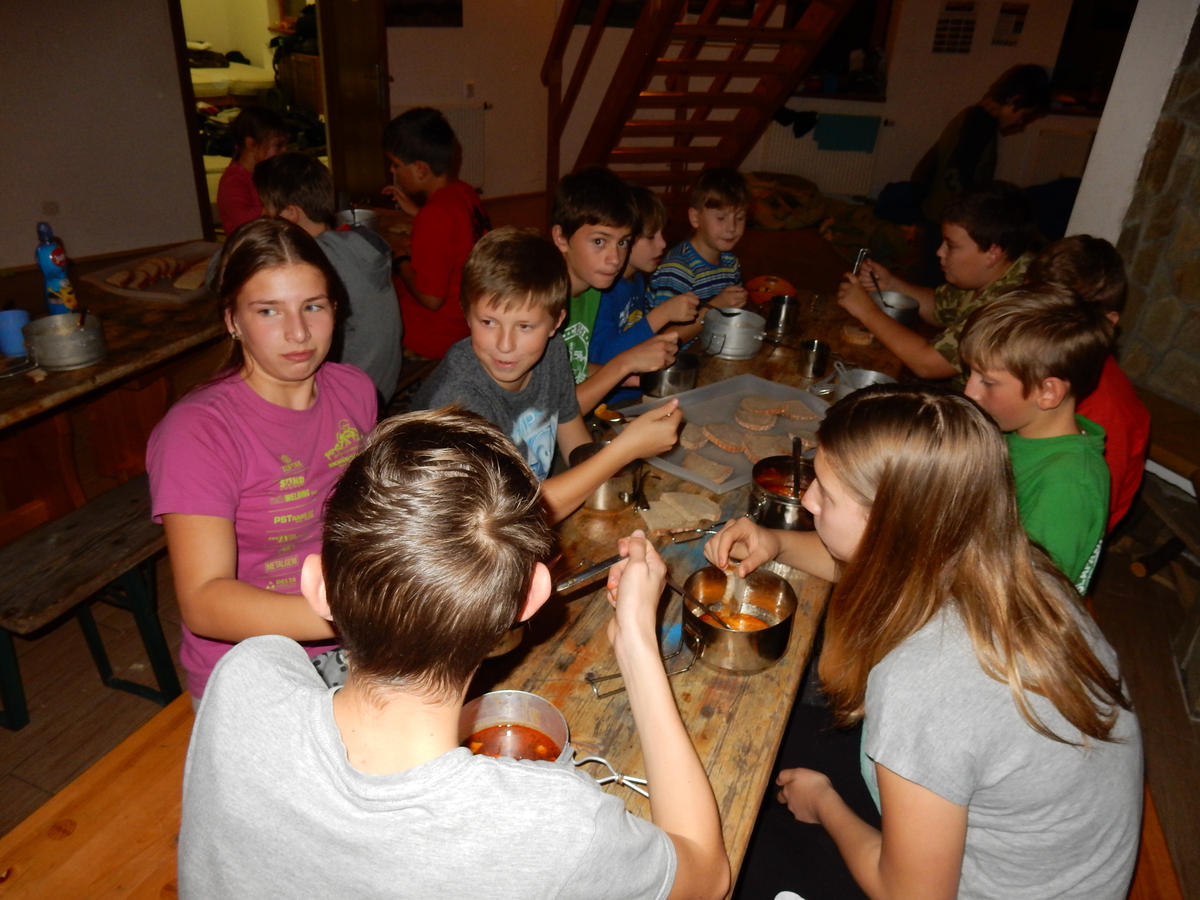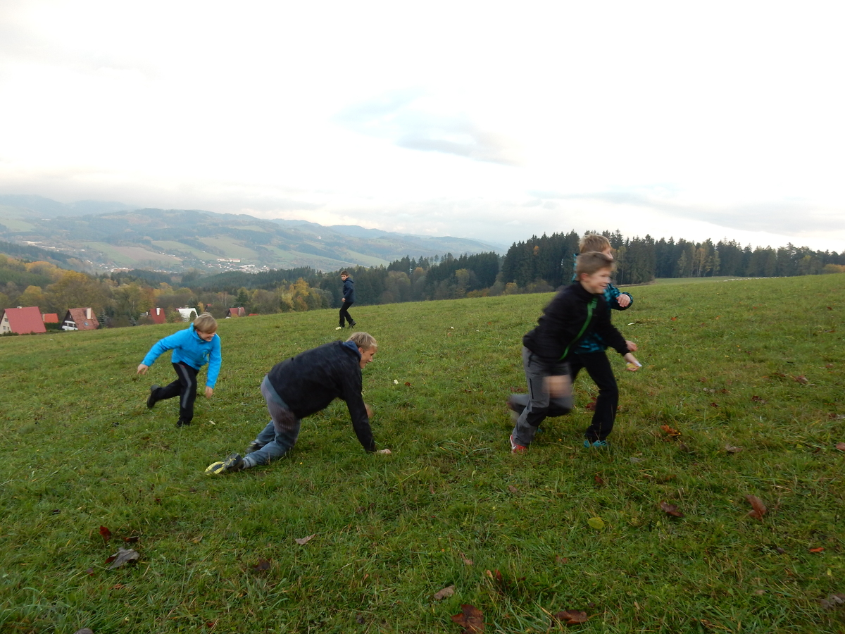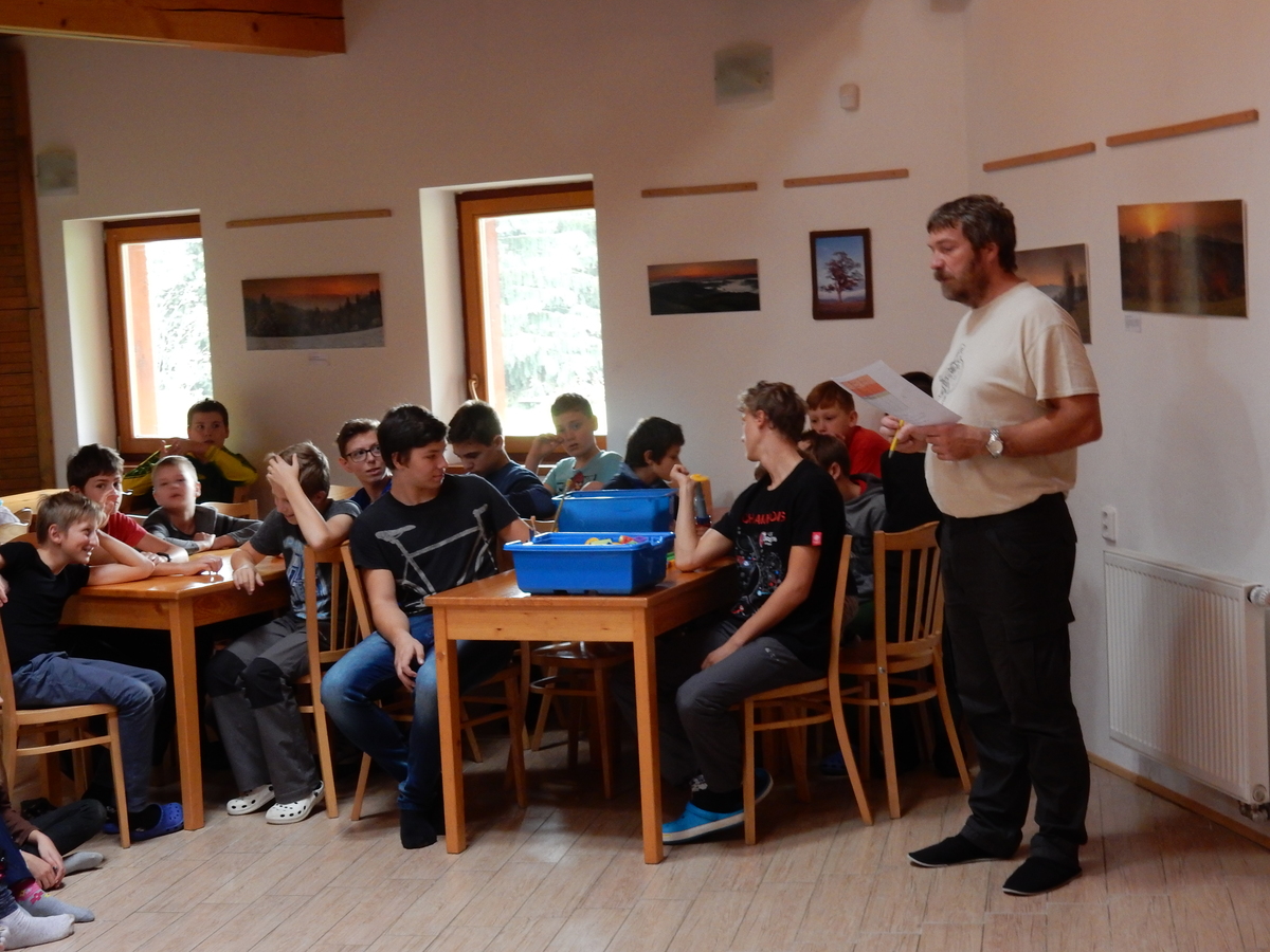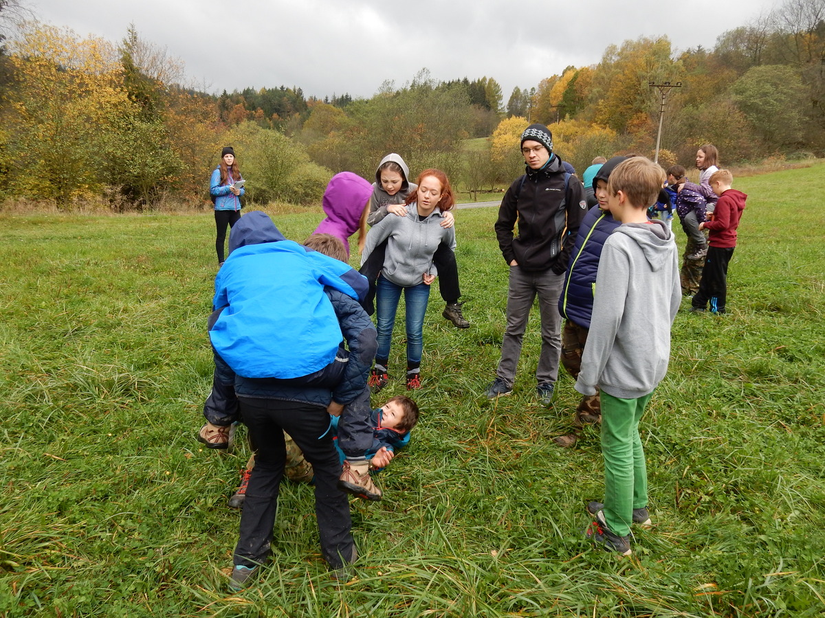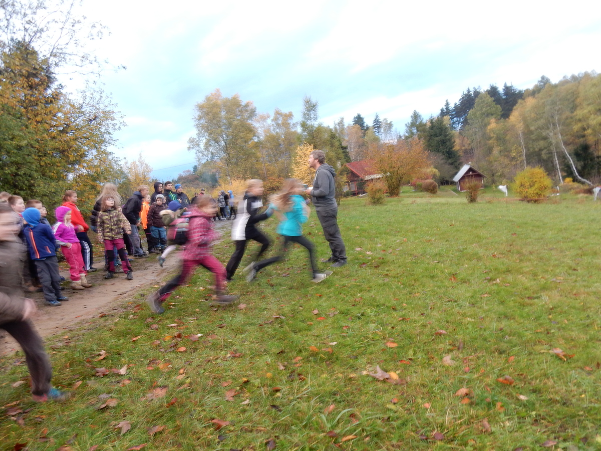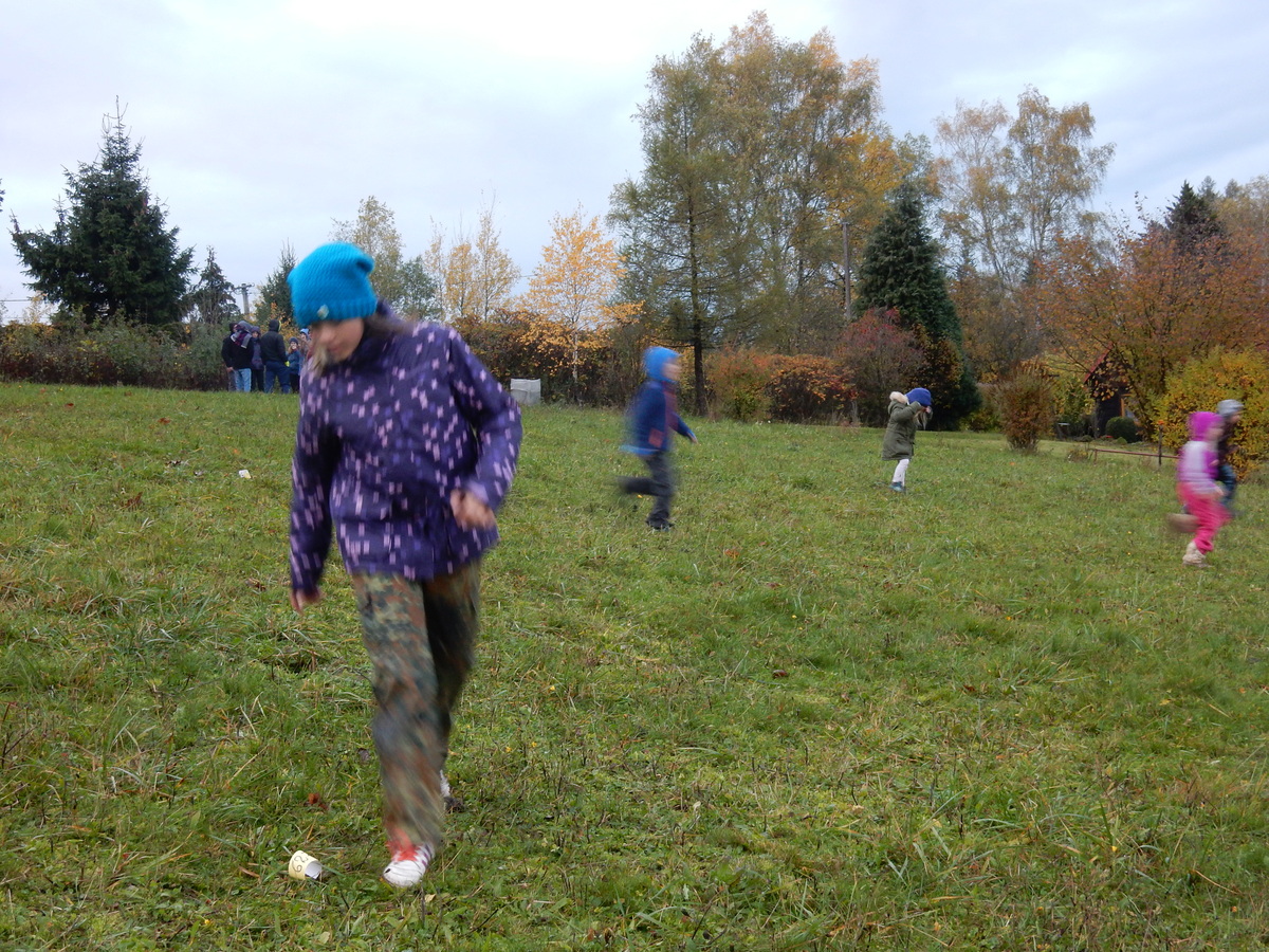 Je čtvrtek 26.10., 8:30 ráno. Zatímco dospělí míří za svými pracovními povinnostmi, školákům začíná první den podzimních prázdnin. A druhooddíláci se začínají pomalu ale jistě scházet na základně. Něco po tři čtvrtě na 9 přijíždí autobus, v tu chvíli už je na Boudě docela živo. Straší skauti skládají batohy do zavazadlového prostoru, Renča odškrtává seznam účastníků. 56 fajfek v seznamu, poslední zamávání rodičům a můžeme vyrazit směr Hostýnské vrchy. Sluníčko svítí a na palubě autobusu je (i díky "osvědčenému" řidiči Michalovi) skvělá atmosféra. V Kroměříži máme zastávku. Zatímco autobus parkuje kdesi na předměstí, my jdeme přímo do centra na historické náměstí. Petr účastníky dělí do 6 skupin po 8, každá skupina obdrží list s 8 úkoly a můžou vyrazit. Cílem zjišťovací soutěže je navštívit ta nejhezčí místa, která Kroměříž nabízí a zde něco zjistit. Je na to 45 minut a zvládají to všichni. Následuje hodinový rozchod. Cukrárna, zrcadlové bludiště, ZOOkoutek v zámecké zahradě, muzeum čokolády...to je jen několik málo z mnoha cílů, kam zvídaví členové oddílu míří. Dál pokračujeme cestou autobusem. Jedeme do Kateřinic, což je vesnice kousek od Vsetína. Nejhorší je úsek mezi Bystřicí a Hošťálkovou, kde je spousta semaforů... Na základně se všichni nejprve ubytují. Veverky v klubovně v levé části stavby, Draci s Pumami v levé zadní místnosti, Vlci s Tygry v pravé zadní místnosti, Kudlanky, Kobry a Sršni v podkroví. Následuje klasika jako vybírání účastnických poplatků, společného jídla... A protože je venku hezky, další etapa celovýpravové hry na sebe nedá dlouho čekat. Hraje se za slunečného počasí a její téma je pašování (co jiného také můžou ZBOJNÍCI dělat :-). Na večeři máme polévku s chlebem a před spaním se ještě hraje několik kol hry NA SARDELE. Kdo tu hru nezná, ten má těžkou mezeru ve vzdělání :-). V průběhu hry přijíždí autem čtveřice dalších vedoucích, kterým povinnosti neumožnily jet s námi už ráno autobusem: Brácha, Babů, Kanec a Kačka. No a kolem desáté se páše hygiena a uléhá k spánku. Někteří mladší mají trošku problém pochopit, co se skrývá pod pojmem "noční klid", hrozba noční hlídky venku ve tmě je však nakonec silnější než touha mluvit. A tak později již velkou místností zní jen tichý zpěv vedoucích a ještě později jen slastné oddechování spících skautíků a skautic. Páteční ráno začíná rozcvičkou. Petr s Kancem to berou poctivě i když se jim nad hlavou houfují temné černé mraky. Babů s Veverkami zatím chystají společnou snídaní. Po ní šestníci fasují pro svoje družiny jídlo na cestu, balíme se a připravujeme k odchodu směr Pržno a rozhledna u Holáňů. Pohled z okna nám ale plány poněkud hatí - začíná pršet a v momentě leje jako z konve. No a následný pohled na displej chytrého telefonu není o nic optimističtější než pohled z okna. Má pršet celý den. Tak se zase pěkně vybalujeme a Kloub rozjíždí další etapu celovýpravovky. Skupiny zbojníků v ní se zavázanýma očima hledají v místnosti rozmístěné předměty a skládají je do batůžku. Je zajímavé sledovat, jak o úspěchu rozhoduje nejen náhoda, ale mnohdy spíše schopnost fungovat jako tým a navzájem spolu komunikovat. V kuchyni zatím Kiki s Hihňou připravují oběd (který mel být původně večeří po návratu) a to těstoviny s omáčkou a sýrem. Po jídle se počasí malinko lepší, mraky se rozestupují a dokonce vykoukne i sluníčko. Vyrážíme tedy alespoň na necelé dva kilometry vzdálenou rozhlednu U Holáňů. Cesta vede do pěkného kopce, rozhledna je pak součástí přilehlé hospůdky, kde vládne vlídný a pohodový personál. Mrňousci se posilují sladkostmi, vedoucí jakbysmet. A rozhled je odtud opravdu skvělý. Na zpáteční cestě hrajeme na louce u lesa další etapu. I zbojnické děti musí umět počítat, podstatou hry je štafetové hledání lístků s čísly podle určitých pravidel. I zde hraje roli spolupráce, rychlá reakce a dobrá paměť. Která skupina zvítězila si už moc nepamatuju, ale co si pamatuju dobře je skutečnost, že mnohdy mladší vlčata i světlušky uspěli proti starším skautům či skautkám. Než se vrátíme zpět na základnu, začíná opět pršet. Náladu nám zlepšuje několik tácků s chleby se salámem a horký čaj. A po večeři rozjíždí Petr, Babů a Kiki další etapu AKTIVITY. Před spaním stíháme ještě jedno kolo oblíbených SARDELÍ, po hygieně a následné večerce se zpívá a radí. Sobotní ráno začíná tradičně rozcvičkou, tentokráte v režii Klouba a Kosti. Na snídani jsou buchty všeho druhu s čajem. Šestníci doplňují u Cyrila zásoby na cestu, společné foto před odchodem a může se jít. Dnes nás Pržno nemine! Cestou pozorujeme krásné barvy podzimu a taky nespočet druhů hub v lese. A někteří digitální maniaci pozorují displej svého mobilu. První (a poslední) výprava, kdy jsme vsadili na přirozenou inteligenci členů oddílu a nezakázali mobily. Výsledek? Špatná sázka. Většina je v pohodě, ale najdou se vyslovení závisláci. Když si jeden z Tygrů pustí hlasitou skřehotavou hudbu v lese, vybavím si vtipy a povídky z poloviny minulého století. Tehdy si "mastňáci" nosili do lesa pro změnu tranzistorová rádia k veliké nelibosti normálních lidí. Jak se nám ta historie opakuje... Obchůdek v Pržnu je bohužel zavřený, paní vedoucí ctí i bez Bublanova dementního zákona státní svátek. Do vzdálenější Jablůnky, kde obchodují Vietnamci, se nám nechce a tak kroky stáčíme do kopců směr Holáňovi. Cestou na louce se hraje etapa RUKA NOHA, kterou organizuje Kiki. Všichni se p