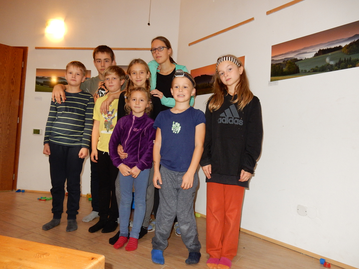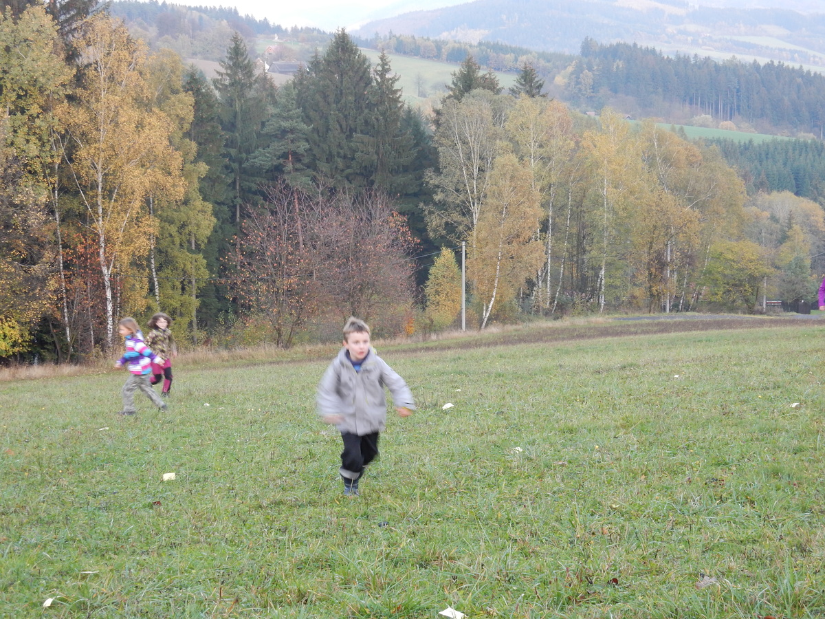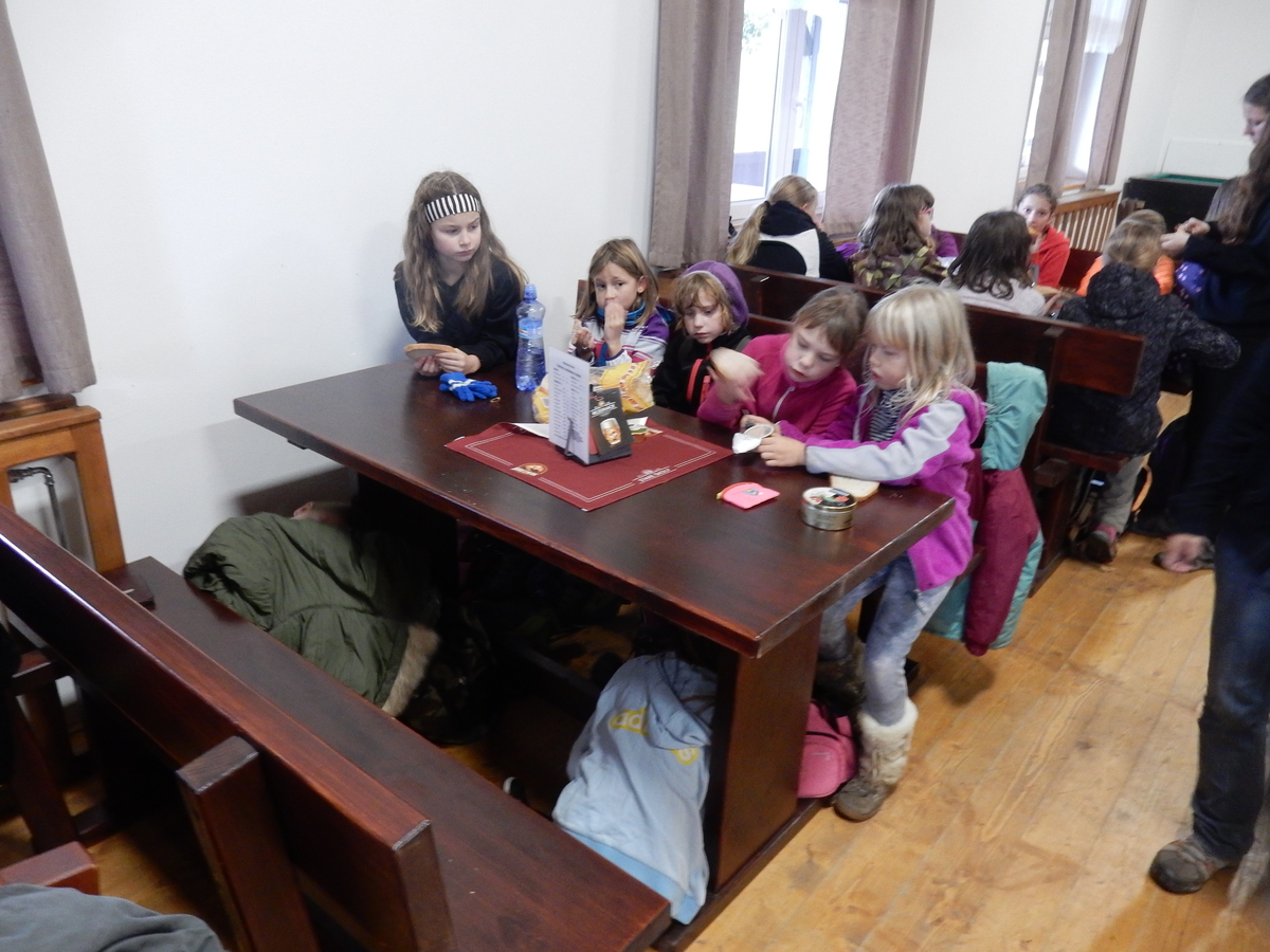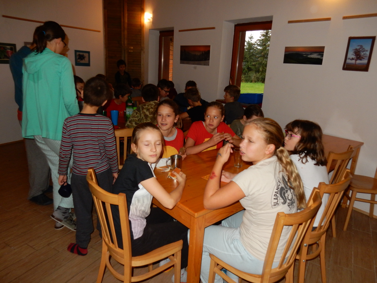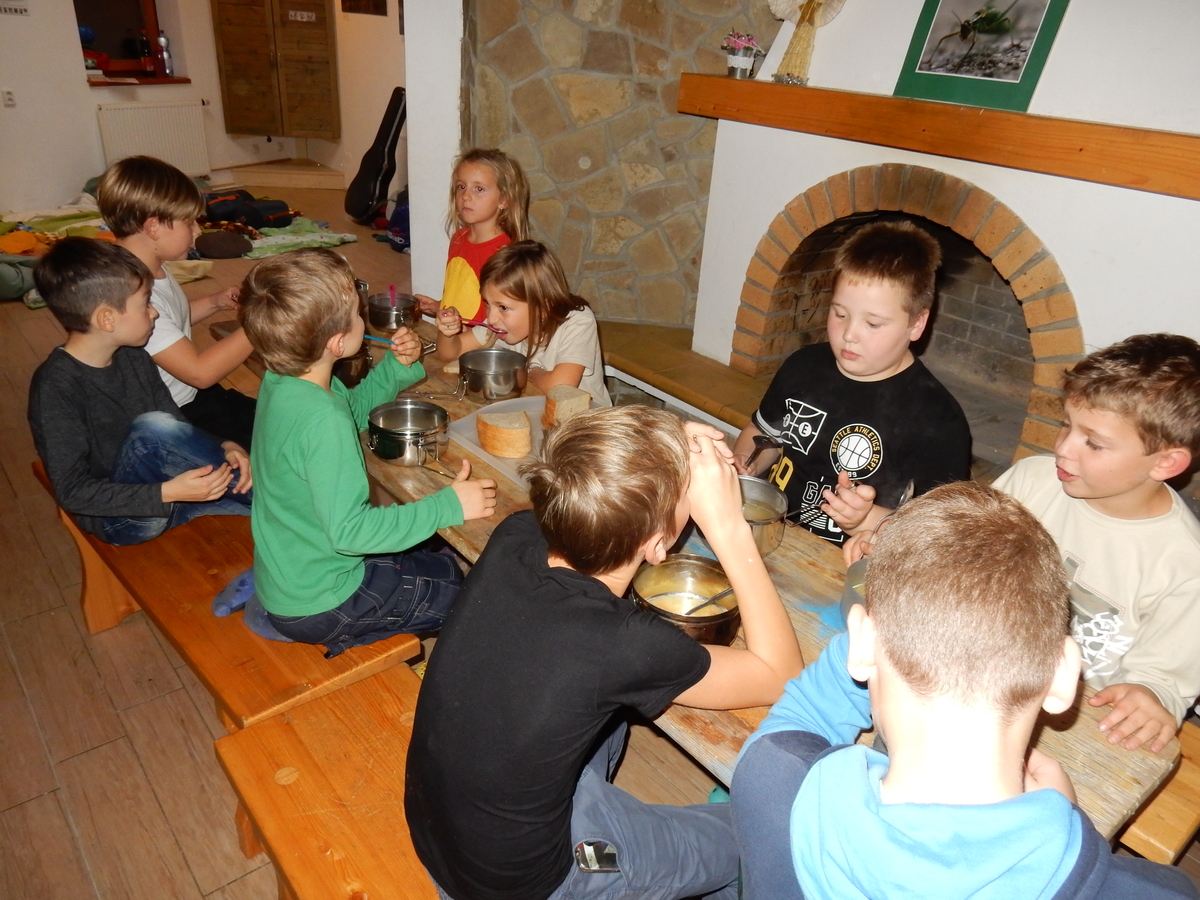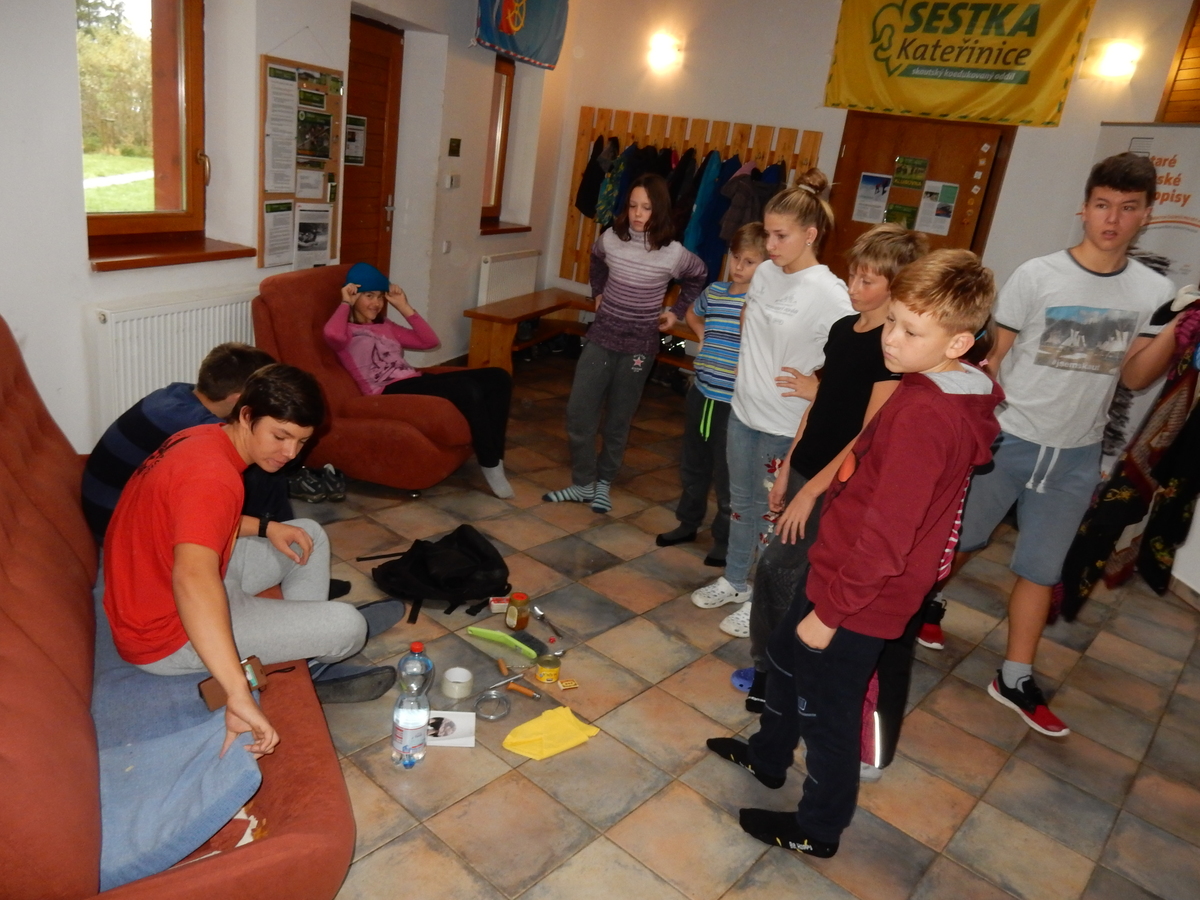 Je čtvrtek 26.10., 8:30 ráno. Zatímco dospělí míří za svými pracovními povinnostmi, školákům začíná první den podzimních prázdnin. A druhooddíláci se začínají pomalu ale jistě scházet na základně. Něco po tři čtvrtě na 9 přijíždí autobus, v tu chvíli už je na Boudě docela živo. Straší skauti skládají batohy do zavazadlového prostoru, Renča odškrtává seznam účastníků. 56 fajfek v seznamu, poslední zamávání rodičům a můžeme vyrazit směr Hostýnské vrchy. Sluníčko svítí a na palubě autobusu je (i díky "osvědčenému" řidiči Michalovi) skvělá atmosféra. V Kroměříži máme zastávku. Zatímco autobus parkuje kdesi na předměstí, my jdeme přímo do centra na historické náměstí. Petr účastníky dělí do 6 skupin po 8, každá skupina obdrží list s 8 úkoly a můžou vyrazit. Cílem zjišťovací soutěže je navštívit ta nejhezčí místa, která Kroměříž nabízí a zde něco zjistit. Je na to 45 minut a zvládají to všichni. Následuje hodinový rozchod. Cukrárna, zrcadlové bludiště, ZOOkoutek v zámecké zahradě, muzeum čokolády...to je jen několik málo z mnoha cílů, kam zvídaví členové oddílu míří. Dál pokračujeme cestou autobusem. Jedeme do Kateřinic, což je vesnice kousek od Vsetína. Nejhorší je úsek mezi Bystřicí a Hošťálkovou, kde je spousta semaforů... Na základně se všichni nejprve ubytují. Veverky v klubovně v levé části stavby, Draci s Pumami v levé zadní místnosti, Vlci s Tygry v pravé zadní místnosti, Kudlanky, Kobry a Sršni v podkroví. Následuje klasika jako vybírání účastnických poplatků, společného jídla... A protože je venku hezky, další etapa celovýpravové hry na sebe nedá dlouho čekat. Hraje se za slunečného počasí a její téma je pašování (co jiného také můžou ZBOJNÍCI dělat :-). Na večeři máme polévku s chlebem a před spaním se ještě hraje několik kol hry NA SARDELE. Kdo tu hru nezná, ten má těžkou mezeru ve vzdělání :-). V průběhu hry přijíždí autem čtveřice dalších vedoucích, kterým povinnosti neumožnily jet s námi už ráno autobusem: Brácha, Babů, Kanec a Kačka. No a kolem desáté se páše hygiena a uléhá k spánku. Někteří mladší mají trošku problém pochopit, co se skrývá pod pojmem "noční klid", hrozba noční hlídky venku ve tmě je však nakonec silnější než touha mluvit. A tak později již velkou místností zní jen tichý zpěv vedoucích a ještě později jen slastné oddechování spících skautíků a skautic. Páteční ráno začíná rozcvičkou. Petr s Kancem to berou poctivě i když se jim nad hlavou houfují temné černé mraky. Babů s Veverkami zatím chystají společnou snídaní. Po ní šestníci fasují pro svoje družiny jídlo na cestu, balíme se a připravujeme k odchodu směr Pržno a rozhledna u Holáňů. Pohled z okna nám ale plány poněkud hatí - začíná pršet a v momentě leje jako z konve. No a následný pohled na displej chytrého telefonu není o nic optimističtější než pohled z okna. Má pršet celý den. Tak se zase pěkně vybalujeme a Kloub rozjíždí další etapu celovýpravovky. Skupiny zbojníků v ní se zavázanýma očima hledají v místnosti rozmístěné předměty a skládají je do batůžku. Je zajímavé sledovat, jak o úspěchu rozhoduje nejen náhoda, ale mnohdy spíše schopnost fungovat jako tým a navzájem spolu komunikovat. V kuchyni zatím Kiki s Hihňou připravují oběd (který mel být původně večeří po návratu) a to těstoviny s omáčkou a sýrem. Po jídle se počasí malinko lepší, mraky se rozestupují a dokonce vykoukne i sluníčko. Vyrážíme tedy alespoň na necelé dva kilometry vzdálenou rozhlednu U Holáňů. Cesta vede do pěkného kopce, rozhledna je pak součástí přilehlé hospůdky, kde vládne vlídný a pohodový personál. Mrňousci se posilují sladkostmi, vedoucí jakbysmet. A rozhled je odtud opravdu skvělý. Na zpáteční cestě hrajeme na louce u lesa další etapu. I zbojnické děti musí umět počítat, podstatou hry je štafetové hledání lístků s čísly podle určitých pravidel. I zde hraje roli spolupráce, rychlá reakce a dobrá paměť. Která skupina zvítězila si už moc nepamatuju, ale co si pamatuju dobře je skutečnost, že mnohdy mladší vlčata i světlušky uspěli proti starším skautům či skautkám. Než se vrátíme zpět na základnu, začíná opět pršet. Náladu nám zlepšuje několik tácků s chleby se salámem a horký čaj. A po večeři rozjíždí Petr, Babů a Kiki další etapu AKTIVITY. Před spaním stíháme ještě jedno kolo oblíbených SARDELÍ, po hygieně a následné večerce se zpívá a radí. Sobotní ráno začíná tradičně rozcvičkou, tentokráte v režii Klouba a Kosti. Na snídani jsou buchty všeho druhu s čajem. Šestníci doplňují u Cyrila zásoby na cestu, společné foto před odchodem a může se jít. Dnes nás Pržno nemine! Cestou pozorujeme krásné barvy podzimu a taky nespočet druhů hub v lese. A někteří digitální maniaci pozorují displej svého mobilu. První (a poslední) výprava, kdy jsme vsadili na přirozenou inteligenci členů oddílu a nezakázali mobily. Výsledek? Špatná sázka. Většina je v pohodě, ale najdou se vyslovení závisláci. Když si jeden z Tygrů pustí hlasitou skřehotavou hudbu v lese, vybavím si vtipy a povídky z poloviny minulého století. Tehdy si "mastňáci" nosili do lesa pro změnu tranzistorová rádia k veliké nelibosti normálních lidí. Jak se nám ta historie opakuje... Obchůdek v Pržnu je bohužel zavřený, paní vedoucí ctí i bez Bublanova dementního zákona státní svátek. Do vzdálenější Jablůnky, kde obchodují Vietnamci, se nám nechce a tak kroky stáčíme do kopců směr Holáňovi. Cestou na louce se hraje etapa RUKA NOHA, kterou organizuje Kiki. Všichni se p