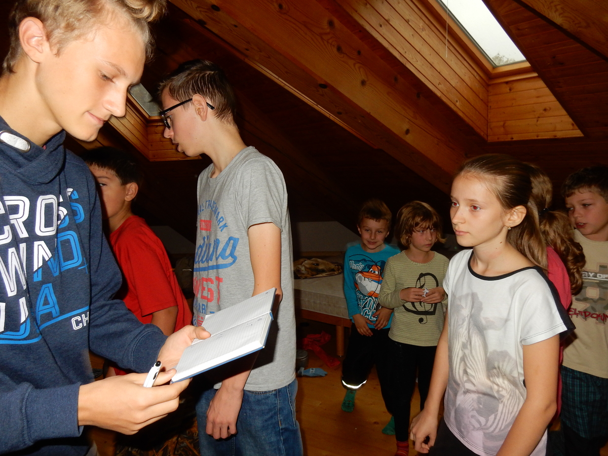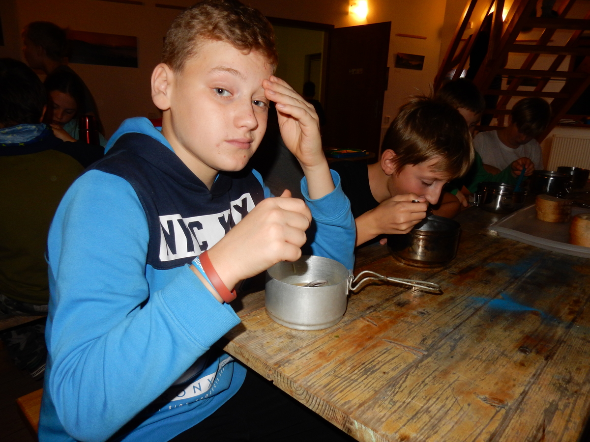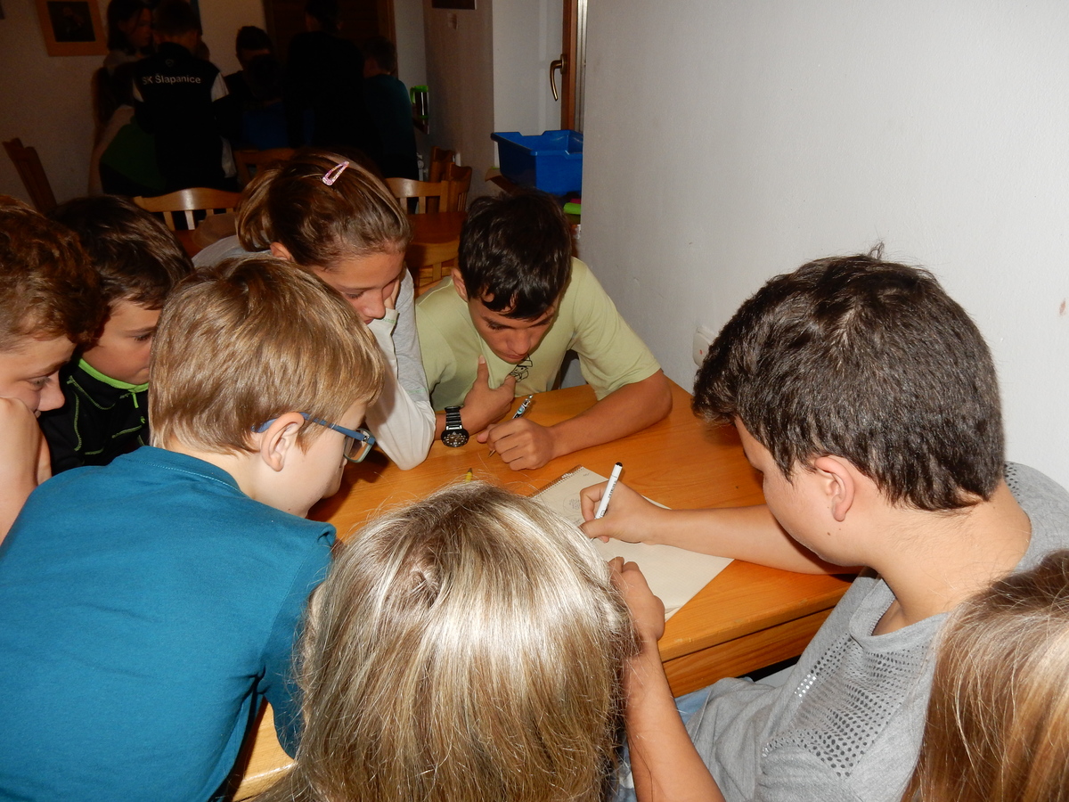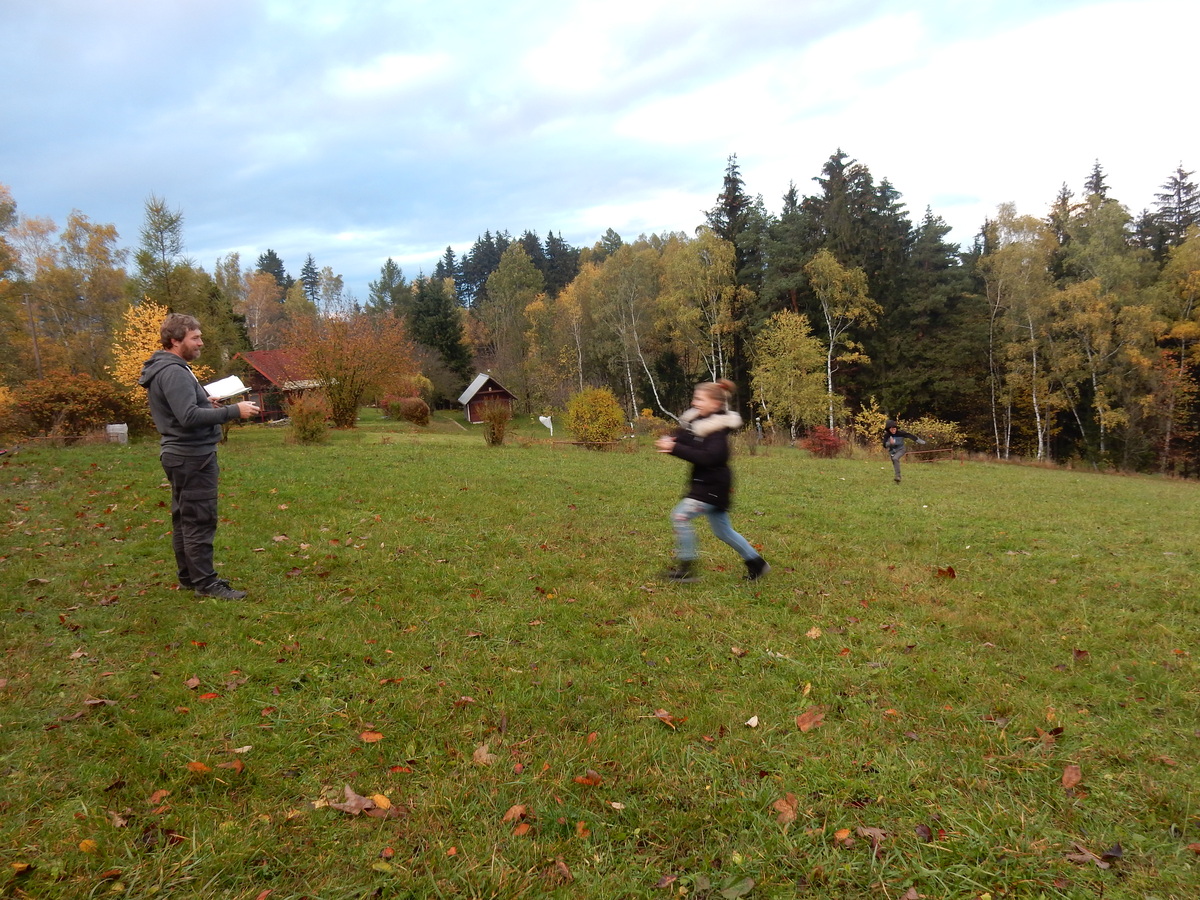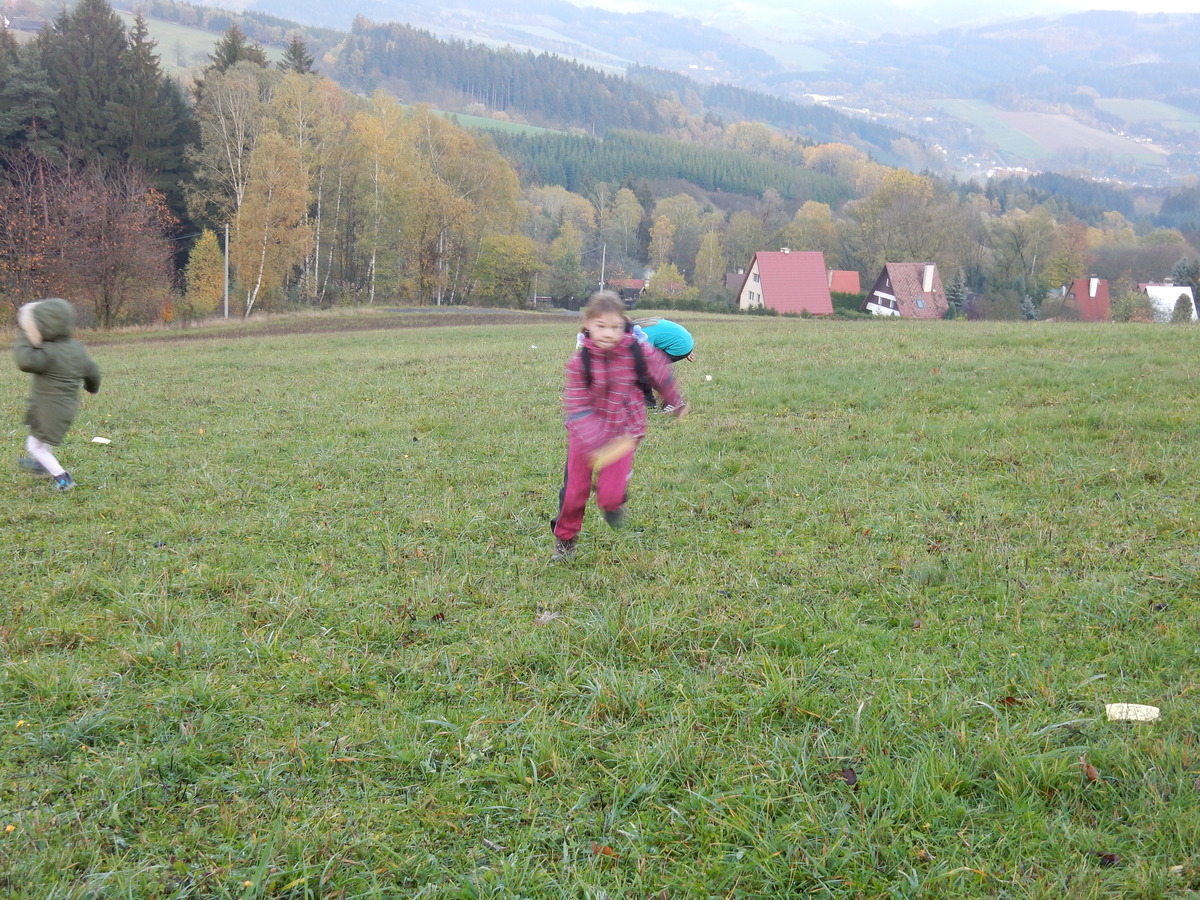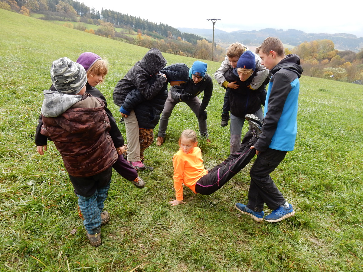 Je čtvrtek 26.10., 8:30 ráno. Zatímco dospělí míří za svými pracovními povinnostmi, školákům začíná první den podzimních prázdnin. A druhooddíláci se začínají pomalu ale jistě scházet na základně. Něco po tři čtvrtě na 9 přijíždí autobus, v tu chvíli už je na Boudě docela živo. Straší skauti skládají batohy do zavazadlového prostoru, Renča odškrtává seznam účastníků. 56 fajfek v seznamu, poslední zamávání rodičům a můžeme vyrazit směr Hostýnské vrchy. Sluníčko svítí a na palubě autobusu je (i díky "osvědčenému" řidiči Michalovi) skvělá atmosféra. V Kroměříži máme zastávku. Zatímco autobus parkuje kdesi na předměstí, my jdeme přímo do centra na historické náměstí. Petr účastníky dělí do 6 skupin po 8, každá skupina obdrží list s 8 úkoly a můžou vyrazit. Cílem zjišťovací soutěže je navštívit ta nejhezčí místa, která Kroměříž nabízí a zde něco zjistit. Je na to 45 minut a zvládají to všichni. Následuje hodinový rozchod. Cukrárna, zrcadlové bludiště, ZOOkoutek v zámecké zahradě, muzeum čokolády...to je jen několik málo z mnoha cílů, kam zvídaví členové oddílu míří. Dál pokračujeme cestou autobusem. Jedeme do Kateřinic, což je vesnice kousek od Vsetína. Nejhorší je úsek mezi Bystřicí a Hošťálkovou, kde je spousta semaforů... Na základně se všichni nejprve ubytují. Veverky v klubovně v levé části stavby, Draci s Pumami v levé zadní místnosti, Vlci s Tygry v pravé zadní místnosti, Kudlanky, Kobry a Sršni v podkroví. Následuje klasika jako vybírání účastnických poplatků, společného jídla... A protože je venku hezky, další etapa celovýpravové hry na sebe nedá dlouho čekat. Hraje se za slunečného počasí a její téma je pašování (co jiného také můžou ZBOJNÍCI dělat :-). Na večeři máme polévku s chlebem a před spaním se ještě hraje několik kol hry NA SARDELE. Kdo tu hru nezná, ten má těžkou mezeru ve vzdělání :-). V průběhu hry přijíždí autem čtveřice dalších vedoucích, kterým povinnosti neumožnily jet s námi už ráno autobusem: Brácha, Babů, Kanec a Kačka. No a kolem desáté se páše hygiena a uléhá k spánku. Někteří mladší mají trošku problém pochopit, co se skrývá pod pojmem "noční klid", hrozba noční hlídky venku ve tmě je však nakonec silnější než touha mluvit. A tak později již velkou místností zní jen tichý zpěv vedoucích a ještě později jen slastné oddechování spících skautíků a skautic. Páteční ráno začíná rozcvičkou. Petr s Kancem to berou poctivě i když se jim nad hlavou houfují temné černé mraky. Babů s Veverkami zatím chystají společnou snídaní. Po ní šestníci fasují pro svoje družiny jídlo na cestu, balíme se a připravujeme k odchodu směr Pržno a rozhledna u Holáňů. Pohled z okna nám ale plány poněkud hatí - začíná pršet a v momentě leje jako z konve. No a následný pohled na displej chytrého telefonu není o nic optimističtější než pohled z okna. Má pršet celý den. Tak se zase pěkně vybalujeme a Kloub rozjíždí další etapu celovýpravovky. Skupiny zbojníků v ní se zavázanýma očima hledají v místnosti rozmístěné předměty a skládají je do batůžku. Je zajímavé sledovat, jak o úspěchu rozhoduje nejen náhoda, ale mnohdy spíše schopnost fungovat jako tým a navzájem spolu komunikovat. V kuchyni zatím Kiki s Hihňou připravují oběd (který mel být původně večeří po návratu) a to těstoviny s omáčkou a sýrem. Po jídle se počasí malinko lepší, mraky se rozestupují a dokonce vykoukne i sluníčko. Vyrážíme tedy alespoň na necelé dva kilometry vzdálenou rozhlednu U Holáňů. Cesta vede do pěkného kopce, rozhledna je pak součástí přilehlé hospůdky, kde vládne vlídný a pohodový personál. Mrňousci se posilují sladkostmi, vedoucí jakbysmet. A rozhled je odtud opravdu skvělý. Na zpáteční cestě hrajeme na louce u lesa další etapu. I zbojnické děti musí umět počítat, podstatou hry je štafetové hledání lístků s čísly podle určitých pravidel. I zde hraje roli spolupráce, rychlá reakce a dobrá paměť. Která skupina zvítězila si už moc nepamatuju, ale co si pamatuju dobře je skutečnost, že mnohdy mladší vlčata i světlušky uspěli proti starším skautům či skautkám. Než se vrátíme zpět na základnu, začíná opět pršet. Náladu nám zlepšuje několik tácků s chleby se salámem a horký čaj. A po večeři rozjíždí Petr, Babů a Kiki další etapu AKTIVITY. Před spaním stíháme ještě jedno kolo oblíbených SARDELÍ, po hygieně a následné večerce se zpívá a radí. Sobotní ráno začíná tradičně rozcvičkou, tentokráte v režii Klouba a Kosti. Na snídani jsou buchty všeho druhu s čajem. Šestníci doplňují u Cyrila zásoby na cestu, společné foto před odchodem a může se jít. Dnes nás Pržno nemine! Cestou pozorujeme krásné barvy podzimu a taky nespočet druhů hub v lese. A někteří digitální maniaci pozorují displej svého mobilu. První (a poslední) výprava, kdy jsme vsadili na přirozenou inteligenci členů oddílu a nezakázali mobily. Výsledek? Špatná sázka. Většina je v pohodě, ale najdou se vyslovení závisláci. Když si jeden z Tygrů pustí hlasitou skřehotavou hudbu v lese, vybavím si vtipy a povídky z poloviny minulého století. Tehdy si "mastňáci" nosili do lesa pro změnu tranzistorová rádia k veliké nelibosti normálních lidí. Jak se nám ta historie opakuje... Obchůdek v Pržnu je bohužel zavřený, paní vedoucí ctí i bez Bublanova dementního zákona státní svátek. Do vzdálenější Jablůnky, kde obchodují Vietnamci, se nám nechce a tak kroky stáčíme do kopců směr Holáňovi. Cestou na louce se hraje etapa RUKA NOHA, kterou organizuje Kiki. Všichni se p