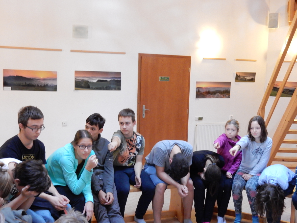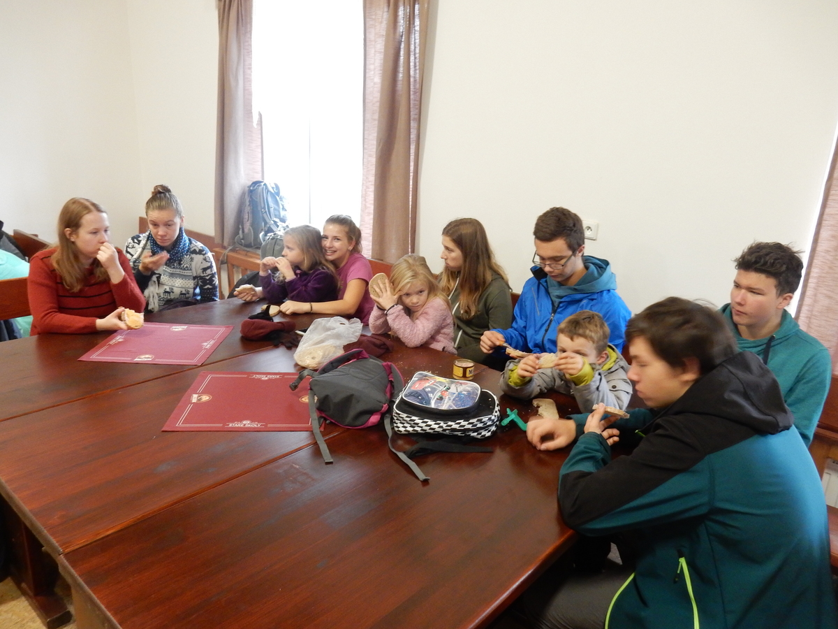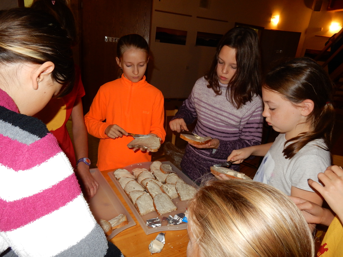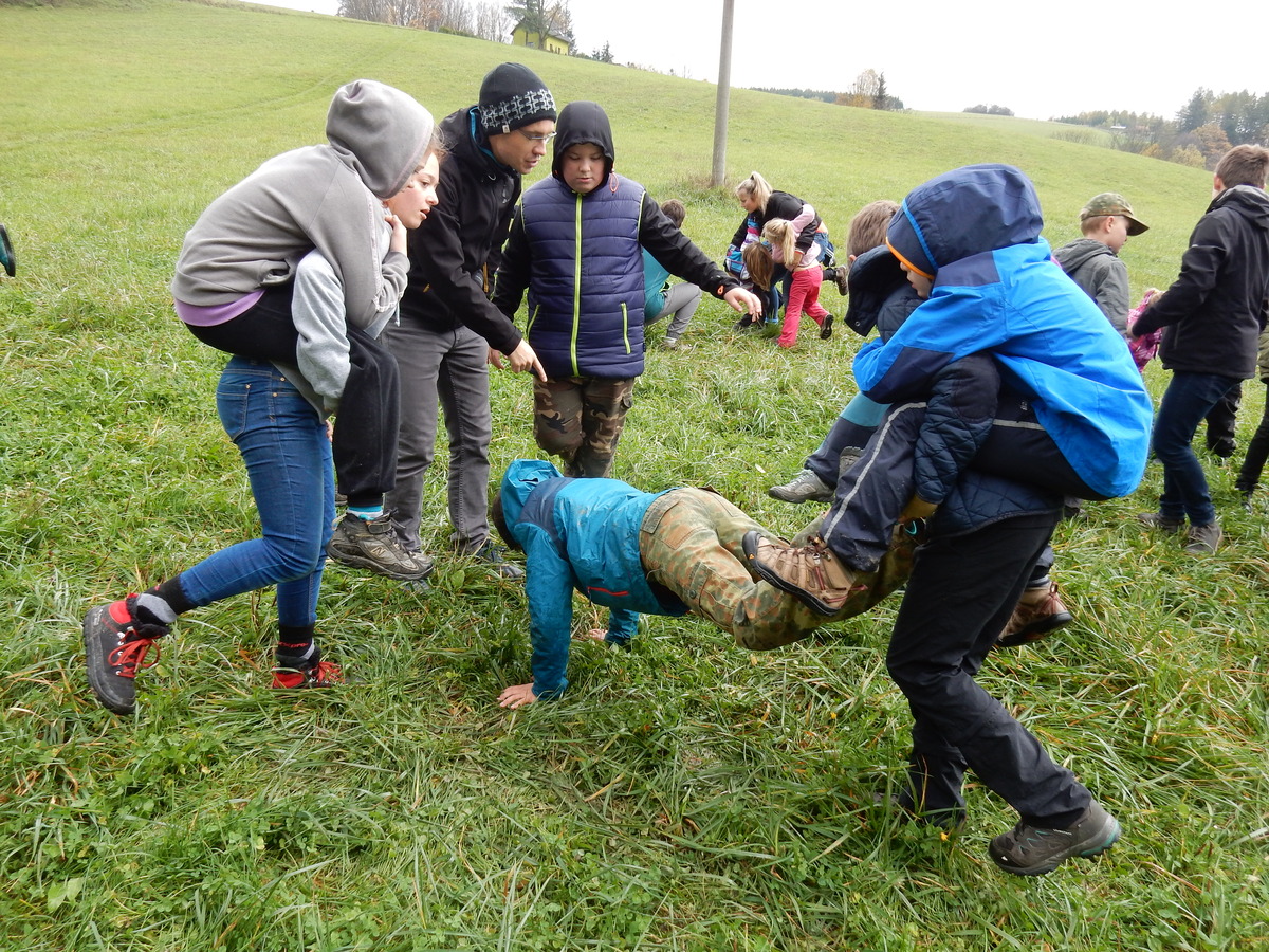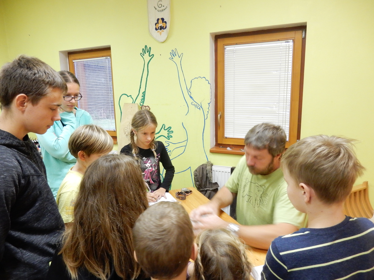 Je čtvrtek 26.10., 8:30 ráno. Zatímco dospělí míří za svými pracovními povinnostmi, školákům začíná první den podzimních prázdnin. A druhooddíláci se začínají pomalu ale jistě scházet na základně. Něco po tři čtvrtě na 9 přijíždí autobus, v tu chvíli už je na Boudě docela živo. Straší skauti skládají batohy do zavazadlového prostoru, Renča odškrtává seznam účastníků. 56 fajfek v seznamu, poslední zamávání rodičům a můžeme vyrazit směr Hostýnské vrchy. Sluníčko svítí a na palubě autobusu je (i díky "osvědčenému" řidiči Michalovi) skvělá atmosféra. V Kroměříži máme zastávku. Zatímco autobus parkuje kdesi na předměstí, my jdeme přímo do centra na historické náměstí. Petr účastníky dělí do 6 skupin po 8, každá skupina obdrží list s 8 úkoly a můžou vyrazit. Cílem zjišťovací soutěže je navštívit ta nejhezčí místa, která Kroměříž nabízí a zde něco zjistit. Je na to 45 minut a zvládají to všichni. Následuje hodinový rozchod. Cukrárna, zrcadlové bludiště, ZOOkoutek v zámecké zahradě, muzeum čokolády...to je jen několik málo z mnoha cílů, kam zvídaví členové oddílu míří. Dál pokračujeme cestou autobusem. Jedeme do Kateřinic, což je vesnice kousek od Vsetína. Nejhorší je úsek mezi Bystřicí a Hošťálkovou, kde je spousta semaforů... Na základně se všichni nejprve ubytují. Veverky v klubovně v levé části stavby, Draci s Pumami v levé zadní místnosti, Vlci s Tygry v pravé zadní místnosti, Kudlanky, Kobry a Sršni v podkroví. Následuje klasika jako vybírání účastnických poplatků, společného jídla... A protože je venku hezky, další etapa celovýpravové hry na sebe nedá dlouho čekat. Hraje se za slunečného počasí a její téma je pašování (co jiného také můžou ZBOJNÍCI dělat :-). Na večeři máme polévku s chlebem a před spaním se ještě hraje několik kol hry NA SARDELE. Kdo tu hru nezná, ten má těžkou mezeru ve vzdělání :-). V průběhu hry přijíždí autem čtveřice dalších vedoucích, kterým povinnosti neumožnily jet s námi už ráno autobusem: Brácha, Babů, Kanec a Kačka. No a kolem desáté se páše hygiena a uléhá k spánku. Někteří mladší mají trošku problém pochopit, co se skrývá pod pojmem "noční klid", hrozba noční hlídky venku ve tmě je však nakonec silnější než touha mluvit. A tak později již velkou místností zní jen tichý zpěv vedoucích a ještě později jen slastné oddechování spících skautíků a skautic. Páteční ráno začíná rozcvičkou. Petr s Kancem to berou poctivě i když se jim nad hlavou houfují temné černé mraky. Babů s Veverkami zatím chystají společnou snídaní. Po ní šestníci fasují pro svoje družiny jídlo na cestu, balíme se a připravujeme k odchodu směr Pržno a rozhledna u Holáňů. Pohled z okna nám ale plány poněkud hatí - začíná pršet a v momentě leje jako z konve. No a následný pohled na displej chytrého telefonu není o nic optimističtější než pohled z okna. Má pršet celý den. Tak se zase pěkně vybalujeme a Kloub rozjíždí další etapu celovýpravovky. Skupiny zbojníků v ní se zavázanýma očima hledají v místnosti rozmístěné předměty a skládají je do batůžku. Je zajímavé sledovat, jak o úspěchu rozhoduje nejen náhoda, ale mnohdy spíše schopnost fungovat jako tým a navzájem spolu komunikovat. V kuchyni zatím Kiki s Hihňou připravují oběd (který mel být původně večeří po návratu) a to těstoviny s omáčkou a sýrem. Po jídle se počasí malinko lepší, mraky se rozestupují a dokonce vykoukne i sluníčko. Vyrážíme tedy alespoň na necelé dva kilometry vzdálenou rozhlednu U Holáňů. Cesta vede do pěkného kopce, rozhledna je pak součástí přilehlé hospůdky, kde vládne vlídný a pohodový personál. Mrňousci se posilují sladkostmi, vedoucí jakbysmet. A rozhled je odtud opravdu skvělý. Na zpáteční cestě hrajeme na louce u lesa další etapu. I zbojnické děti musí umět počítat, podstatou hry je štafetové hledání lístků s čísly podle určitých pravidel. I zde hraje roli spolupráce, rychlá reakce a dobrá paměť. Která skupina zvítězila si už moc nepamatuju, ale co si pamatuju dobře je skutečnost, že mnohdy mladší vlčata i světlušky uspěli proti starším skautům či skautkám. Než se vrátíme zpět na základnu, začíná opět pršet. Náladu nám zlepšuje několik tácků s chleby se salámem a horký čaj. A po večeři rozjíždí Petr, Babů a Kiki další etapu AKTIVITY. Před spaním stíháme ještě jedno kolo oblíbených SARDELÍ, po hygieně a následné večerce se zpívá a radí. Sobotní ráno začíná tradičně rozcvičkou, tentokráte v režii Klouba a Kosti. Na snídani jsou buchty všeho druhu s čajem. Šestníci doplňují u Cyrila zásoby na cestu, společné foto před odchodem a může se jít. Dnes nás Pržno nemine! Cestou pozorujeme krásné barvy podzimu a taky nespočet druhů hub v lese. A někteří digitální maniaci pozorují displej svého mobilu. První (a poslední) výprava, kdy jsme vsadili na přirozenou inteligenci členů oddílu a nezakázali mobily. Výsledek? Špatná sázka. Většina je v pohodě, ale najdou se vyslovení závisláci. Když si jeden z Tygrů pustí hlasitou skřehotavou hudbu v lese, vybavím si vtipy a povídky z poloviny minulého století. Tehdy si "mastňáci" nosili do lesa pro změnu tranzistorová rádia k veliké nelibosti normálních lidí. Jak se nám ta historie opakuje... Obchůdek v Pržnu je bohužel zavřený, paní vedoucí ctí i bez Bublanova dementního zákona státní svátek. Do vzdálenější Jablůnky, kde obchodují Vietnamci, se nám nechce a tak kroky stáčíme do kopců směr Holáňovi. Cestou na louce se hraje etapa RUKA NOHA, kterou organizuje Kiki. Všichni se p