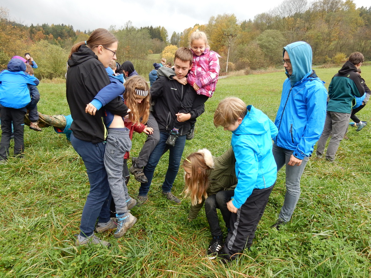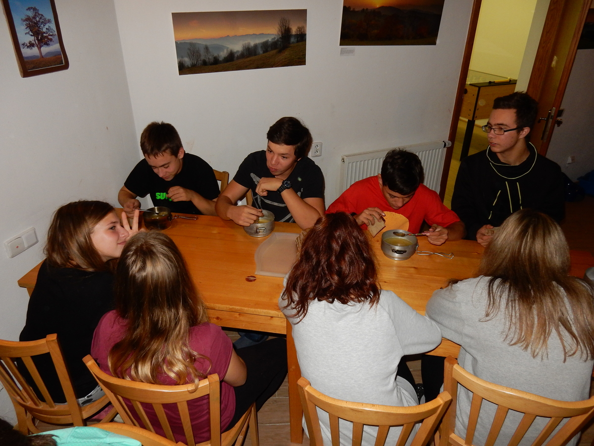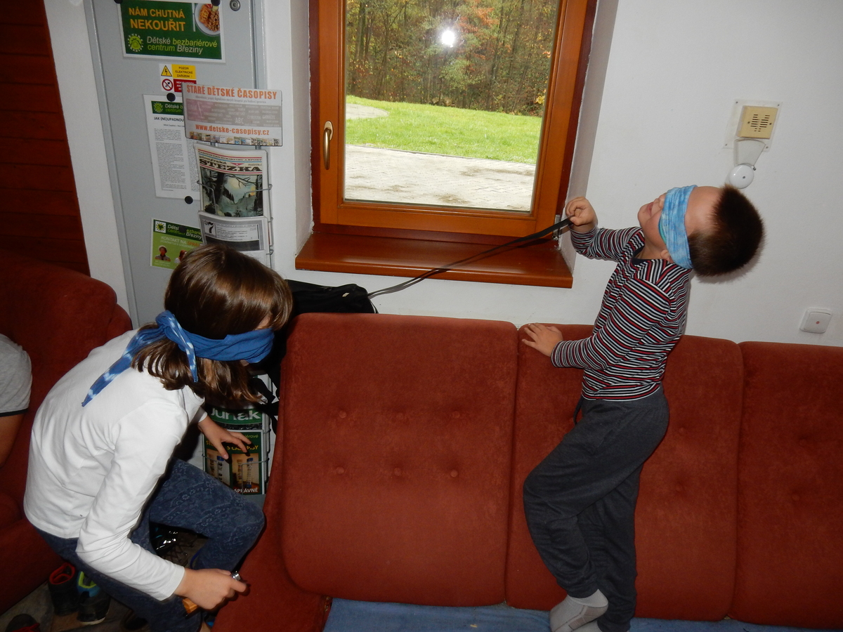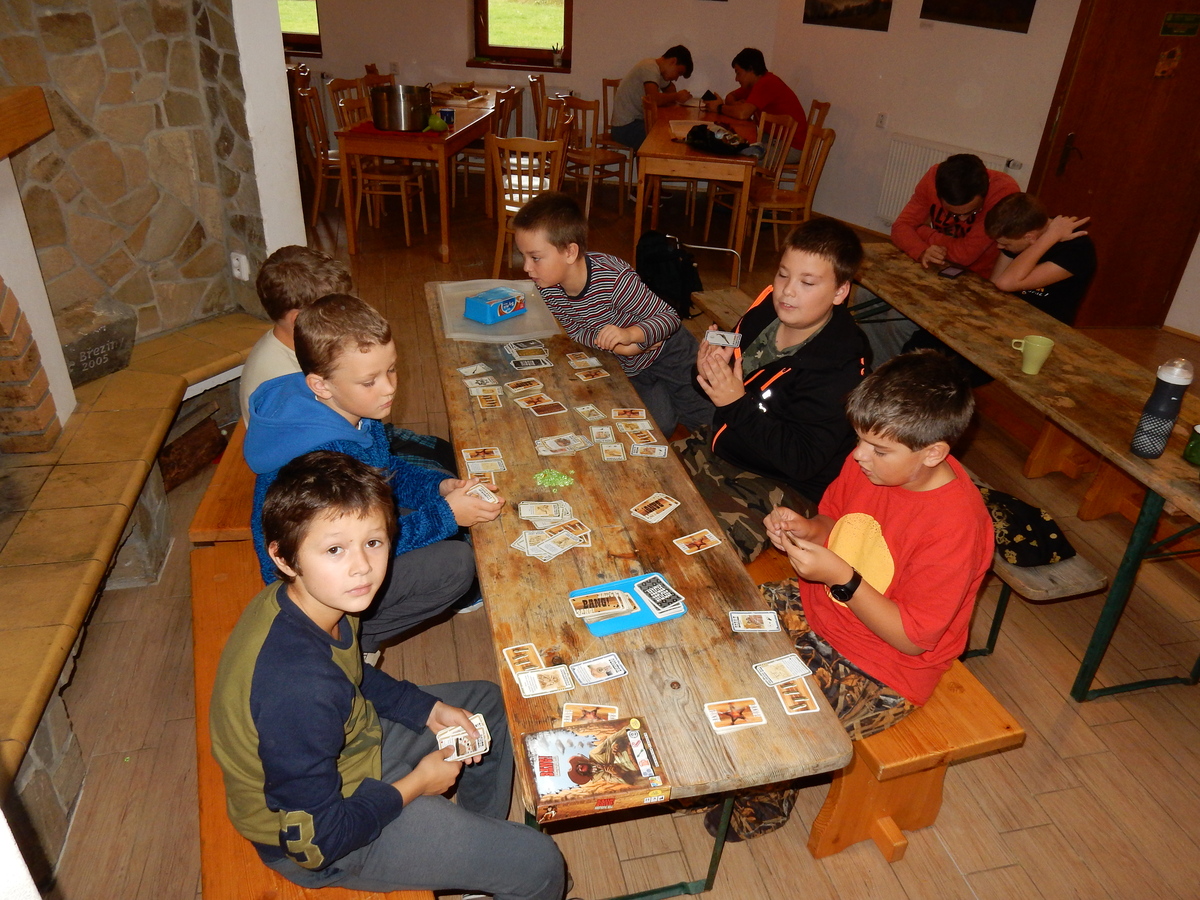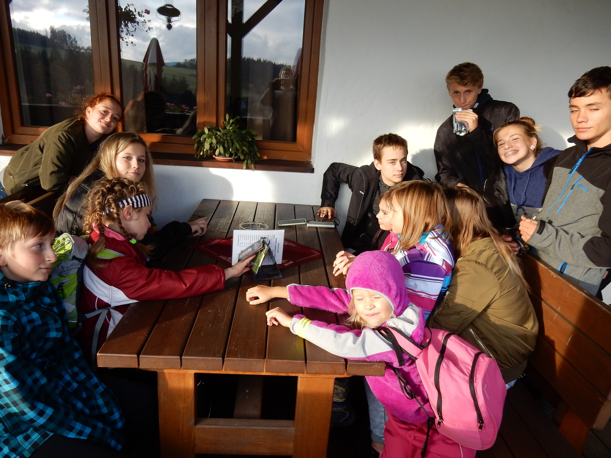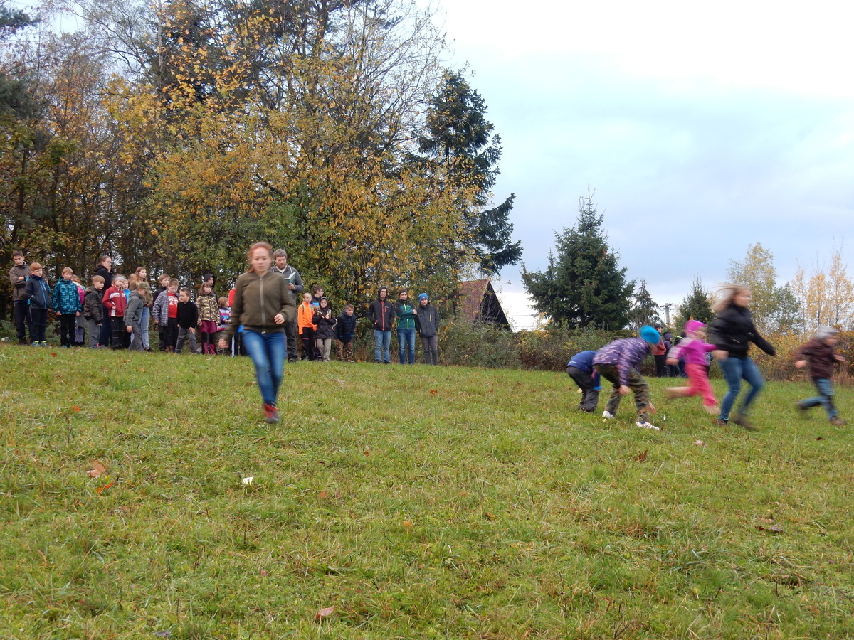 Je čtvrtek 26.10., 8:30 ráno. Zatímco dospělí míří za svými pracovními povinnostmi, školákům začíná první den podzimních prázdnin. A druhooddíláci se začínají pomalu ale jistě scházet na základně. Něco po tři čtvrtě na 9 přijíždí autobus, v tu chvíli už je na Boudě docela živo. Straší skauti skládají batohy do zavazadlového prostoru, Renča odškrtává seznam účastníků. 56 fajfek v seznamu, poslední zamávání rodičům a můžeme vyrazit směr Hostýnské vrchy. Sluníčko svítí a na palubě autobusu je (i díky "osvědčenému" řidiči Michalovi) skvělá atmosféra. V Kroměříži máme zastávku. Zatímco autobus parkuje kdesi na předměstí, my jdeme přímo do centra na historické náměstí. Petr účastníky dělí do 6 skupin po 8, každá skupina obdrží list s 8 úkoly a můžou vyrazit. Cílem zjišťovací soutěže je navštívit ta nejhezčí místa, která Kroměříž nabízí a zde něco zjistit. Je na to 45 minut a zvládají to všichni. Následuje hodinový rozchod. Cukrárna, zrcadlové bludiště, ZOOkoutek v zámecké zahradě, muzeum čokolády...to je jen několik málo z mnoha cílů, kam zvídaví členové oddílu míří. Dál pokračujeme cestou autobusem. Jedeme do Kateřinic, což je vesnice kousek od Vsetína. Nejhorší je úsek mezi Bystřicí a Hošťálkovou, kde je spousta semaforů... Na základně se všichni nejprve ubytují. Veverky v klubovně v levé části stavby, Draci s Pumami v levé zadní místnosti, Vlci s Tygry v pravé zadní místnosti, Kudlanky, Kobry a Sršni v podkroví. Následuje klasika jako vybírání účastnických poplatků, společného jídla... A protože je venku hezky, další etapa celovýpravové hry na sebe nedá dlouho čekat. Hraje se za slunečného počasí a její téma je pašování (co jiného také můžou ZBOJNÍCI dělat :-). Na večeři máme polévku s chlebem a před spaním se ještě hraje několik kol hry NA SARDELE. Kdo tu hru nezná, ten má těžkou mezeru ve vzdělání :-). V průběhu hry přijíždí autem čtveřice dalších vedoucích, kterým povinnosti neumožnily jet s námi už ráno autobusem: Brácha, Babů, Kanec a Kačka. No a kolem desáté se páše hygiena a uléhá k spánku. Někteří mladší mají trošku problém pochopit, co se skrývá pod pojmem "noční klid", hrozba noční hlídky venku ve tmě je však nakonec silnější než touha mluvit. A tak později již velkou místností zní jen tichý zpěv vedoucích a ještě později jen slastné oddechování spících skautíků a skautic. Páteční ráno začíná rozcvičkou. Petr s Kancem to berou poctivě i když se jim nad hlavou houfují temné černé mraky. Babů s Veverkami zatím chystají společnou snídaní. Po ní šestníci fasují pro svoje družiny jídlo na cestu, balíme se a připravujeme k odchodu směr Pržno a rozhledna u Holáňů. Pohled z okna nám ale plány poněkud hatí - začíná pršet a v momentě leje jako z konve. No a následný pohled na displej chytrého telefonu není o nic optimističtější než pohled z okna. Má pršet celý den. Tak se zase pěkně vybalujeme a Kloub rozjíždí další etapu celovýpravovky. Skupiny zbojníků v ní se zavázanýma očima hledají v místnosti rozmístěné předměty a skládají je do batůžku. Je zajímavé sledovat, jak o úspěchu rozhoduje nejen náhoda, ale mnohdy spíše schopnost fungovat jako tým a navzájem spolu komunikovat. V kuchyni zatím Kiki s Hihňou připravují oběd (který mel být původně večeří po návratu) a to těstoviny s omáčkou a sýrem. Po jídle se počasí malinko lepší, mraky se rozestupují a dokonce vykoukne i sluníčko. Vyrážíme tedy alespoň na necelé dva kilometry vzdálenou rozhlednu U Holáňů. Cesta vede do pěkného kopce, rozhledna je pak součástí přilehlé hospůdky, kde vládne vlídný a pohodový personál. Mrňousci se posilují sladkostmi, vedoucí jakbysmet. A rozhled je odtud opravdu skvělý. Na zpáteční cestě hrajeme na louce u lesa další etapu. I zbojnické děti musí umět počítat, podstatou hry je štafetové hledání lístků s čísly podle určitých pravidel. I zde hraje roli spolupráce, rychlá reakce a dobrá paměť. Která skupina zvítězila si už moc nepamatuju, ale co si pamatuju dobře je skutečnost, že mnohdy mladší vlčata i světlušky uspěli proti starším skautům či skautkám. Než se vrátíme zpět na základnu, začíná opět pršet. Náladu nám zlepšuje několik tácků s chleby se salámem a horký čaj. A po večeři rozjíždí Petr, Babů a Kiki další etapu AKTIVITY. Před spaním stíháme ještě jedno kolo oblíbených SARDELÍ, po hygieně a následné večerce se zpívá a radí. Sobotní ráno začíná tradičně rozcvičkou, tentokráte v režii Klouba a Kosti. Na snídani jsou buchty všeho druhu s čajem. Šestníci doplňují u Cyrila zásoby na cestu, společné foto před odchodem a může se jít. Dnes nás Pržno nemine! Cestou pozorujeme krásné barvy podzimu a taky nespočet druhů hub v lese. A někteří digitální maniaci pozorují displej svého mobilu. První (a poslední) výprava, kdy jsme vsadili na přirozenou inteligenci členů oddílu a nezakázali mobily. Výsledek? Špatná sázka. Většina je v pohodě, ale najdou se vyslovení závisláci. Když si jeden z Tygrů pustí hlasitou skřehotavou hudbu v lese, vybavím si vtipy a povídky z poloviny minulého století. Tehdy si "mastňáci" nosili do lesa pro změnu tranzistorová rádia k veliké nelibosti normálních lidí. Jak se nám ta historie opakuje... Obchůdek v Pržnu je bohužel zavřený, paní vedoucí ctí i bez Bublanova dementního zákona státní svátek. Do vzdálenější Jablůnky, kde obchodují Vietnamci, se nám nechce a tak kroky stáčíme do kopců směr Holáňovi. Cestou na louce se hraje etapa RUKA NOHA, kterou organizuje Kiki. Všichni se p