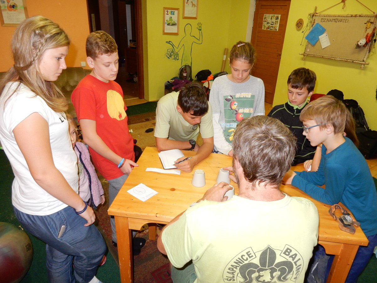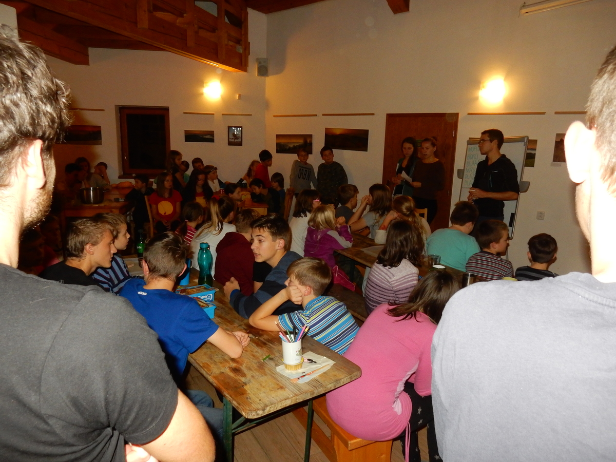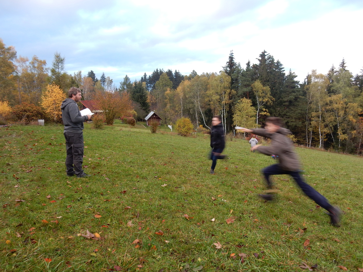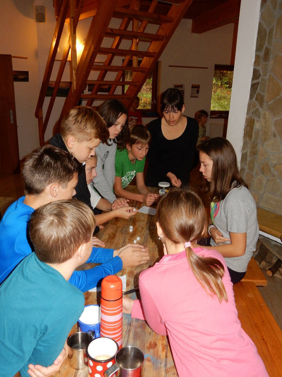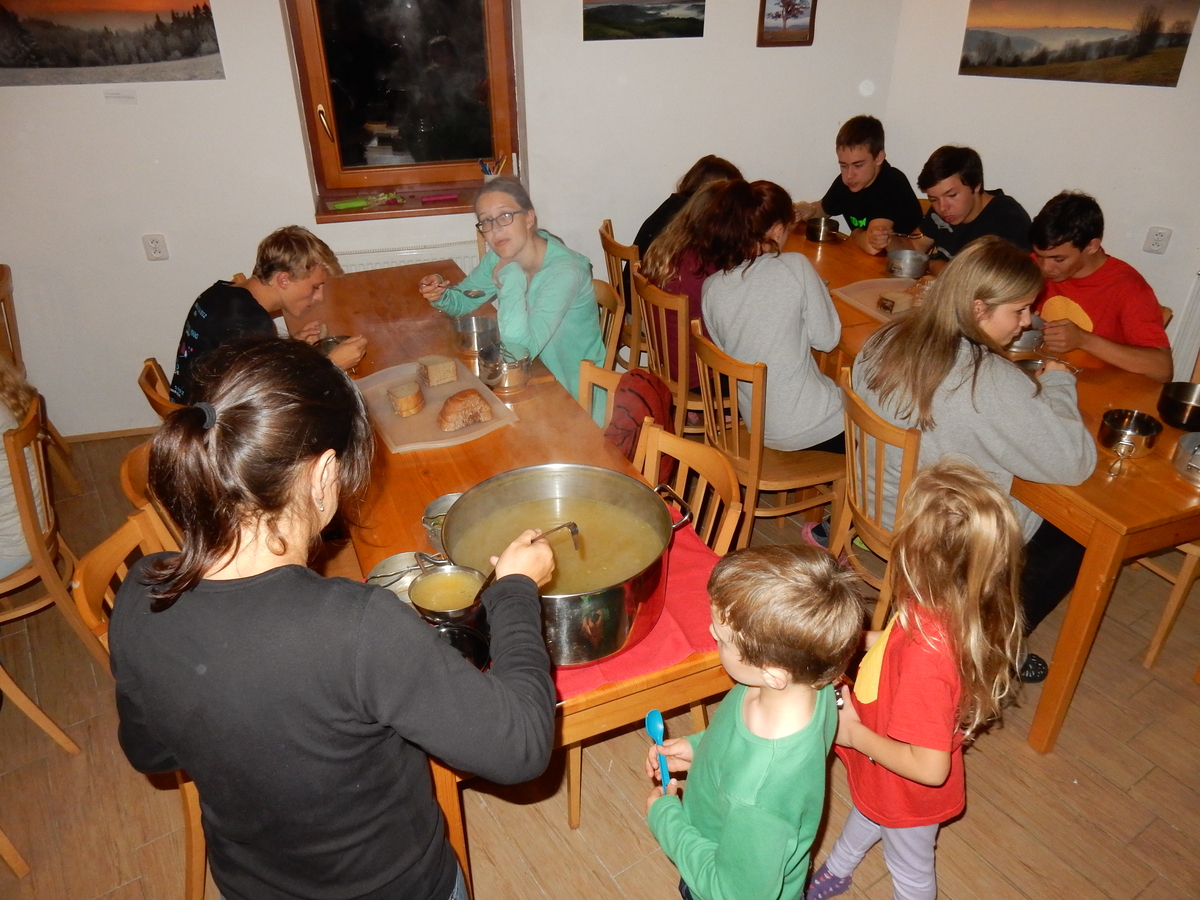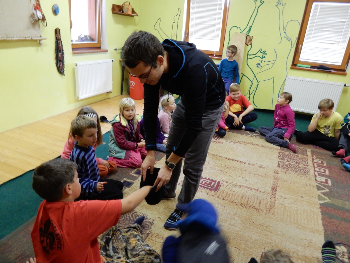 Je čtvrtek 26.10., 8:30 ráno. Zatímco dospělí míří za svými pracovními povinnostmi, školákům začíná první den podzimních prázdnin. A druhooddíláci se začínají pomalu ale jistě scházet na základně. Něco po tři čtvrtě na 9 přijíždí autobus, v tu chvíli už je na Boudě docela živo. Straší skauti skládají batohy do zavazadlového prostoru, Renča odškrtává seznam účastníků. 56 fajfek v seznamu, poslední zamávání rodičům a můžeme vyrazit směr Hostýnské vrchy. Sluníčko svítí a na palubě autobusu je (i díky "osvědčenému" řidiči Michalovi) skvělá atmosféra. V Kroměříži máme zastávku. Zatímco autobus parkuje kdesi na předměstí, my jdeme přímo do centra na historické náměstí. Petr účastníky dělí do 6 skupin po 8, každá skupina obdrží list s 8 úkoly a můžou vyrazit. Cílem zjišťovací soutěže je navštívit ta nejhezčí místa, která Kroměříž nabízí a zde něco zjistit. Je na to 45 minut a zvládají to všichni. Následuje hodinový rozchod. Cukrárna, zrcadlové bludiště, ZOOkoutek v zámecké zahradě, muzeum čokolády...to je jen několik málo z mnoha cílů, kam zvídaví členové oddílu míří. Dál pokračujeme cestou autobusem. Jedeme do Kateřinic, což je vesnice kousek od Vsetína. Nejhorší je úsek mezi Bystřicí a Hošťálkovou, kde je spousta semaforů... Na základně se všichni nejprve ubytují. Veverky v klubovně v levé části stavby, Draci s Pumami v levé zadní místnosti, Vlci s Tygry v pravé zadní místnosti, Kudlanky, Kobry a Sršni v podkroví. Následuje klasika jako vybírání účastnických poplatků, společného jídla... A protože je venku hezky, další etapa celovýpravové hry na sebe nedá dlouho čekat. Hraje se za slunečného počasí a její téma je pašování (co jiného také můžou ZBOJNÍCI dělat :-). Na večeři máme polévku s chlebem a před spaním se ještě hraje několik kol hry NA SARDELE. Kdo tu hru nezná, ten má těžkou mezeru ve vzdělání :-). V průběhu hry přijíždí autem čtveřice dalších vedoucích, kterým povinnosti neumožnily jet s námi už ráno autobusem: Brácha, Babů, Kanec a Kačka. No a kolem desáté se páše hygiena a uléhá k spánku. Někteří mladší mají trošku problém pochopit, co se skrývá pod pojmem "noční klid", hrozba noční hlídky venku ve tmě je však nakonec silnější než touha mluvit. A tak později již velkou místností zní jen tichý zpěv vedoucích a ještě později jen slastné oddechování spících skautíků a skautic. Páteční ráno začíná rozcvičkou. Petr s Kancem to berou poctivě i když se jim nad hlavou houfují temné černé mraky. Babů s Veverkami zatím chystají společnou snídaní. Po ní šestníci fasují pro svoje družiny jídlo na cestu, balíme se a připravujeme k odchodu směr Pržno a rozhledna u Holáňů. Pohled z okna nám ale plány poněkud hatí - začíná pršet a v momentě leje jako z konve. No a následný pohled na displej chytrého telefonu není o nic optimističtější než pohled z okna. Má pršet celý den. Tak se zase pěkně vybalujeme a Kloub rozjíždí další etapu celovýpravovky. Skupiny zbojníků v ní se zavázanýma očima hledají v místnosti rozmístěné předměty a skládají je do batůžku. Je zajímavé sledovat, jak o úspěchu rozhoduje nejen náhoda, ale mnohdy spíše schopnost fungovat jako tým a navzájem spolu komunikovat. V kuchyni zatím Kiki s Hihňou připravují oběd (který mel být původně večeří po návratu) a to těstoviny s omáčkou a sýrem. Po jídle se počasí malinko lepší, mraky se rozestupují a dokonce vykoukne i sluníčko. Vyrážíme tedy alespoň na necelé dva kilometry vzdálenou rozhlednu U Holáňů. Cesta vede do pěkného kopce, rozhledna je pak součástí přilehlé hospůdky, kde vládne vlídný a pohodový personál. Mrňousci se posilují sladkostmi, vedoucí jakbysmet. A rozhled je odtud opravdu skvělý. Na zpáteční cestě hrajeme na louce u lesa další etapu. I zbojnické děti musí umět počítat, podstatou hry je štafetové hledání lístků s čísly podle určitých pravidel. I zde hraje roli spolupráce, rychlá reakce a dobrá paměť. Která skupina zvítězila si už moc nepamatuju, ale co si pamatuju dobře je skutečnost, že mnohdy mladší vlčata i světlušky uspěli proti starším skautům či skautkám. Než se vrátíme zpět na základnu, začíná opět pršet. Náladu nám zlepšuje několik tácků s chleby se salámem a horký čaj. A po večeři rozjíždí Petr, Babů a Kiki další etapu AKTIVITY. Před spaním stíháme ještě jedno kolo oblíbených SARDELÍ, po hygieně a následné večerce se zpívá a radí. Sobotní ráno začíná tradičně rozcvičkou, tentokráte v režii Klouba a Kosti. Na snídani jsou buchty všeho druhu s čajem. Šestníci doplňují u Cyrila zásoby na cestu, společné foto před odchodem a může se jít. Dnes nás Pržno nemine! Cestou pozorujeme krásné barvy podzimu a taky nespočet druhů hub v lese. A někteří digitální maniaci pozorují displej svého mobilu. První (a poslední) výprava, kdy jsme vsadili na přirozenou inteligenci členů oddílu a nezakázali mobily. Výsledek? Špatná sázka. Většina je v pohodě, ale najdou se vyslovení závisláci. Když si jeden z Tygrů pustí hlasitou skřehotavou hudbu v lese, vybavím si vtipy a povídky z poloviny minulého století. Tehdy si "mastňáci" nosili do lesa pro změnu tranzistorová rádia k veliké nelibosti normálních lidí. Jak se nám ta historie opakuje... Obchůdek v Pržnu je bohužel zavřený, paní vedoucí ctí i bez Bublanova dementního zákona státní svátek. Do vzdálenější Jablůnky, kde obchodují Vietnamci, se nám nechce a tak kroky stáčíme do kopců směr Holáňovi. Cestou na louce se hraje etapa RUKA NOHA, kterou organizuje Kiki. Všichni se p