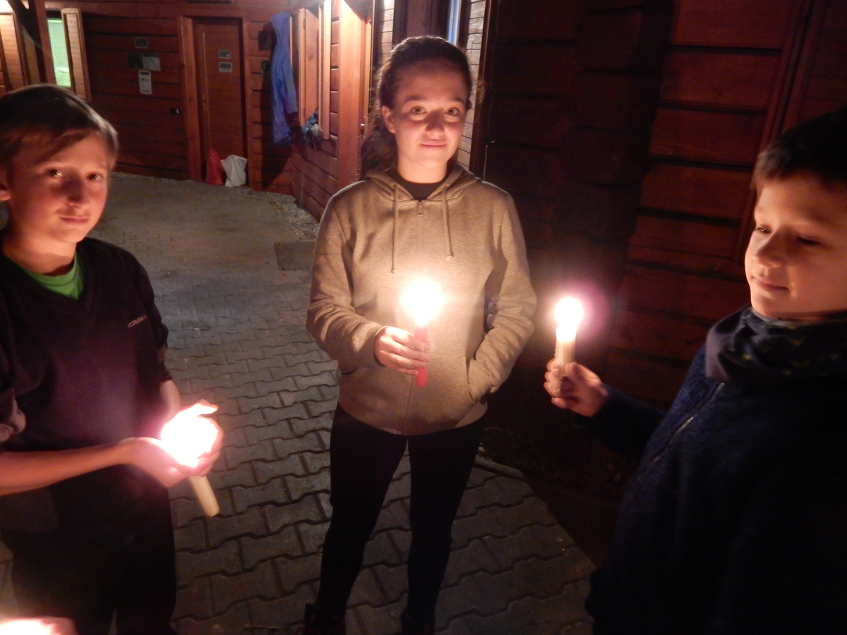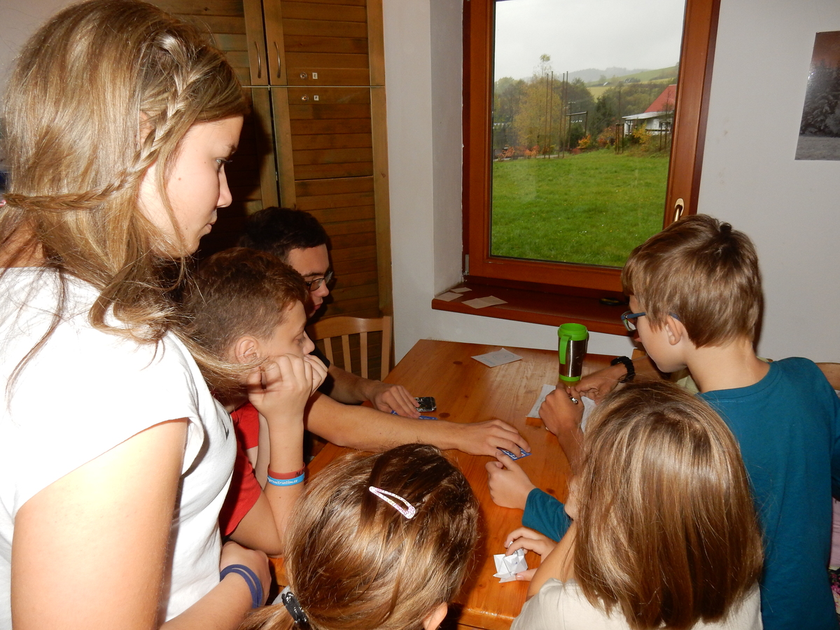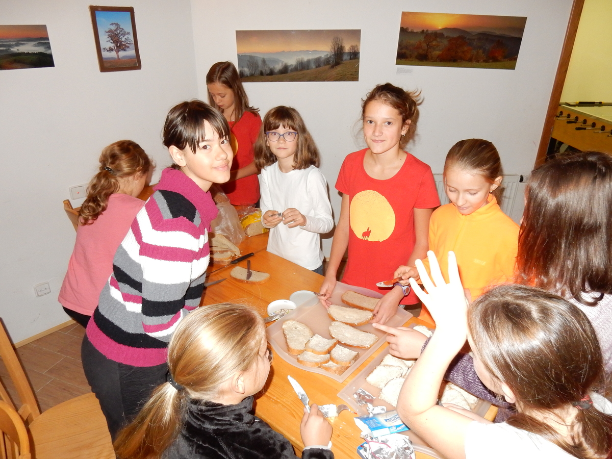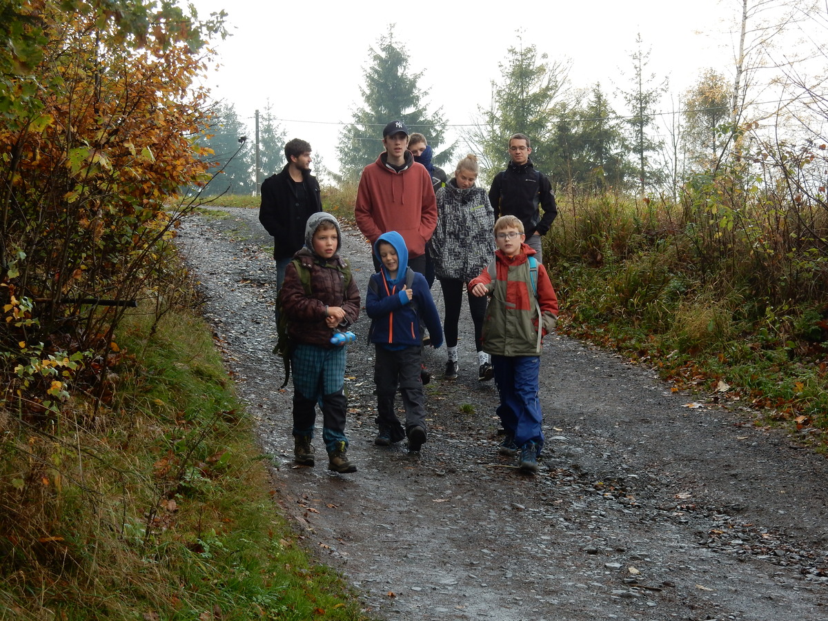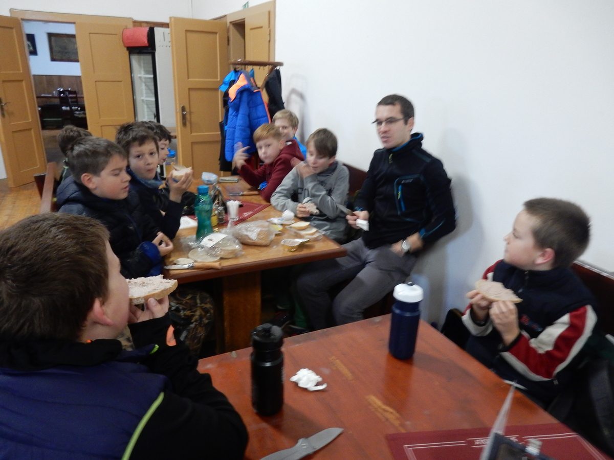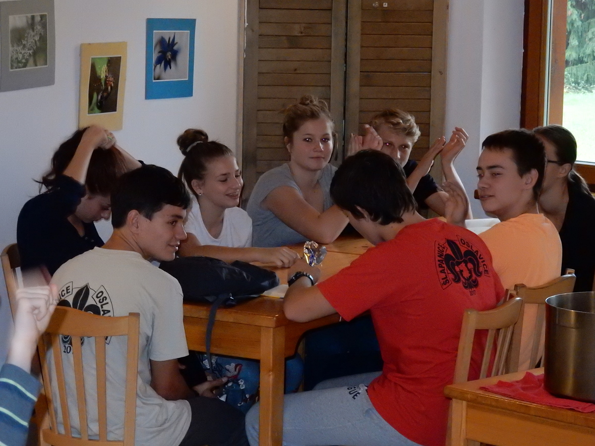 Je čtvrtek 26.10., 8:30 ráno. Zatímco dospělí míří za svými pracovními povinnostmi, školákům začíná první den podzimních prázdnin. A druhooddíláci se začínají pomalu ale jistě scházet na základně. Něco po tři čtvrtě na 9 přijíždí autobus, v tu chvíli už je na Boudě docela živo. Straší skauti skládají batohy do zavazadlového prostoru, Renča odškrtává seznam účastníků. 56 fajfek v seznamu, poslední zamávání rodičům a můžeme vyrazit směr Hostýnské vrchy. Sluníčko svítí a na palubě autobusu je (i díky "osvědčenému" řidiči Michalovi) skvělá atmosféra. V Kroměříži máme zastávku. Zatímco autobus parkuje kdesi na předměstí, my jdeme přímo do centra na historické náměstí. Petr účastníky dělí do 6 skupin po 8, každá skupina obdrží list s 8 úkoly a můžou vyrazit. Cílem zjišťovací soutěže je navštívit ta nejhezčí místa, která Kroměříž nabízí a zde něco zjistit. Je na to 45 minut a zvládají to všichni. Následuje hodinový rozchod. Cukrárna, zrcadlové bludiště, ZOOkoutek v zámecké zahradě, muzeum čokolády...to je jen několik málo z mnoha cílů, kam zvídaví členové oddílu míří. Dál pokračujeme cestou autobusem. Jedeme do Kateřinic, což je vesnice kousek od Vsetína. Nejhorší je úsek mezi Bystřicí a Hošťálkovou, kde je spousta semaforů... Na základně se všichni nejprve ubytují. Veverky v klubovně v levé části stavby, Draci s Pumami v levé zadní místnosti, Vlci s Tygry v pravé zadní místnosti, Kudlanky, Kobry a Sršni v podkroví. Následuje klasika jako vybírání účastnických poplatků, společného jídla... A protože je venku hezky, další etapa celovýpravové hry na sebe nedá dlouho čekat. Hraje se za slunečného počasí a její téma je pašování (co jiného také můžou ZBOJNÍCI dělat :-). Na večeři máme polévku s chlebem a před spaním se ještě hraje několik kol hry NA SARDELE. Kdo tu hru nezná, ten má těžkou mezeru ve vzdělání :-). V průběhu hry přijíždí autem čtveřice dalších vedoucích, kterým povinnosti neumožnily jet s námi už ráno autobusem: Brácha, Babů, Kanec a Kačka. No a kolem desáté se páše hygiena a uléhá k spánku. Někteří mladší mají trošku problém pochopit, co se skrývá pod pojmem "noční klid", hrozba noční hlídky venku ve tmě je však nakonec silnější než touha mluvit. A tak později již velkou místností zní jen tichý zpěv vedoucích a ještě později jen slastné oddechování spících skautíků a skautic. Páteční ráno začíná rozcvičkou. Petr s Kancem to berou poctivě i když se jim nad hlavou houfují temné černé mraky. Babů s Veverkami zatím chystají společnou snídaní. Po ní šestníci fasují pro svoje družiny jídlo na cestu, balíme se a připravujeme k odchodu směr Pržno a rozhledna u Holáňů. Pohled z okna nám ale plány poněkud hatí - začíná pršet a v momentě leje jako z konve. No a následný pohled na displej chytrého telefonu není o nic optimističtější než pohled z okna. Má pršet celý den. Tak se zase pěkně vybalujeme a Kloub rozjíždí další etapu celovýpravovky. Skupiny zbojníků v ní se zavázanýma očima hledají v místnosti rozmístěné předměty a skládají je do batůžku. Je zajímavé sledovat, jak o úspěchu rozhoduje nejen náhoda, ale mnohdy spíše schopnost fungovat jako tým a navzájem spolu komunikovat. V kuchyni zatím Kiki s Hihňou připravují oběd (který mel být původně večeří po návratu) a to těstoviny s omáčkou a sýrem. Po jídle se počasí malinko lepší, mraky se rozestupují a dokonce vykoukne i sluníčko. Vyrážíme tedy alespoň na necelé dva kilometry vzdálenou rozhlednu U Holáňů. Cesta vede do pěkného kopce, rozhledna je pak součástí přilehlé hospůdky, kde vládne vlídný a pohodový personál. Mrňousci se posilují sladkostmi, vedoucí jakbysmet. A rozhled je odtud opravdu skvělý. Na zpáteční cestě hrajeme na louce u lesa další etapu. I zbojnické děti musí umět počítat, podstatou hry je štafetové hledání lístků s čísly podle určitých pravidel. I zde hraje roli spolupráce, rychlá reakce a dobrá paměť. Která skupina zvítězila si už moc nepamatuju, ale co si pamatuju dobře je skutečnost, že mnohdy mladší vlčata i světlušky uspěli proti starším skautům či skautkám. Než se vrátíme zpět na základnu, začíná opět pršet. Náladu nám zlepšuje několik tácků s chleby se salámem a horký čaj. A po večeři rozjíždí Petr, Babů a Kiki další etapu AKTIVITY. Před spaním stíháme ještě jedno kolo oblíbených SARDELÍ, po hygieně a následné večerce se zpívá a radí. Sobotní ráno začíná tradičně rozcvičkou, tentokráte v režii Klouba a Kosti. Na snídani jsou buchty všeho druhu s čajem. Šestníci doplňují u Cyrila zásoby na cestu, společné foto před odchodem a může se jít. Dnes nás Pržno nemine! Cestou pozorujeme krásné barvy podzimu a taky nespočet druhů hub v lese. A někteří digitální maniaci pozorují displej svého mobilu. První (a poslední) výprava, kdy jsme vsadili na přirozenou inteligenci členů oddílu a nezakázali mobily. Výsledek? Špatná sázka. Většina je v pohodě, ale najdou se vyslovení závisláci. Když si jeden z Tygrů pustí hlasitou skřehotavou hudbu v lese, vybavím si vtipy a povídky z poloviny minulého století. Tehdy si "mastňáci" nosili do lesa pro změnu tranzistorová rádia k veliké nelibosti normálních lidí. Jak se nám ta historie opakuje... Obchůdek v Pržnu je bohužel zavřený, paní vedoucí ctí i bez Bublanova dementního zákona státní svátek. Do vzdálenější Jablůnky, kde obchodují Vietnamci, se nám nechce a tak kroky stáčíme do kopců směr Holáňovi. Cestou na louce se hraje etapa RUKA NOHA, kterou organizuje Kiki. Všichni se p