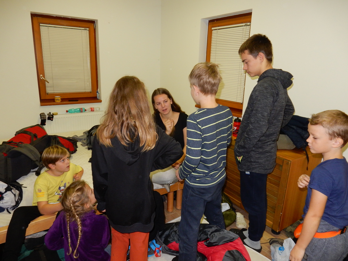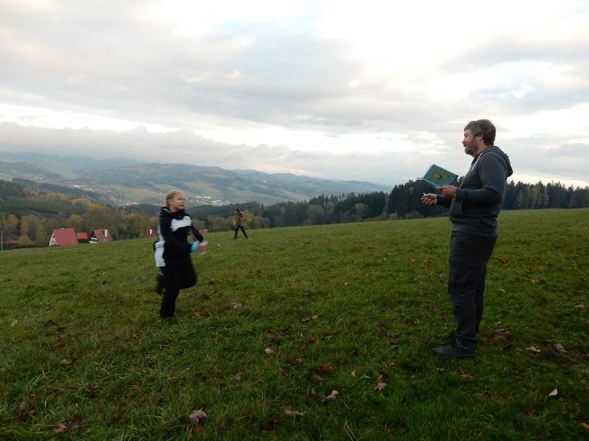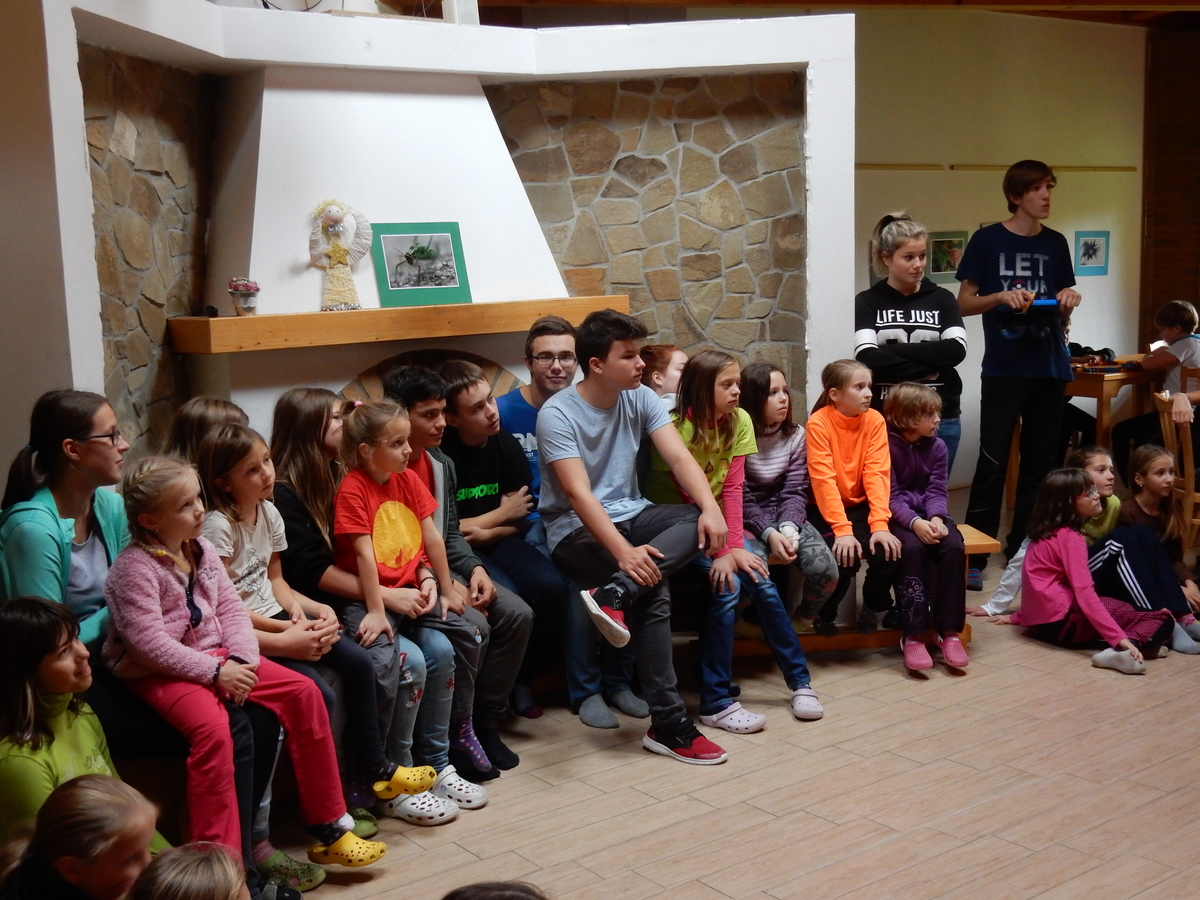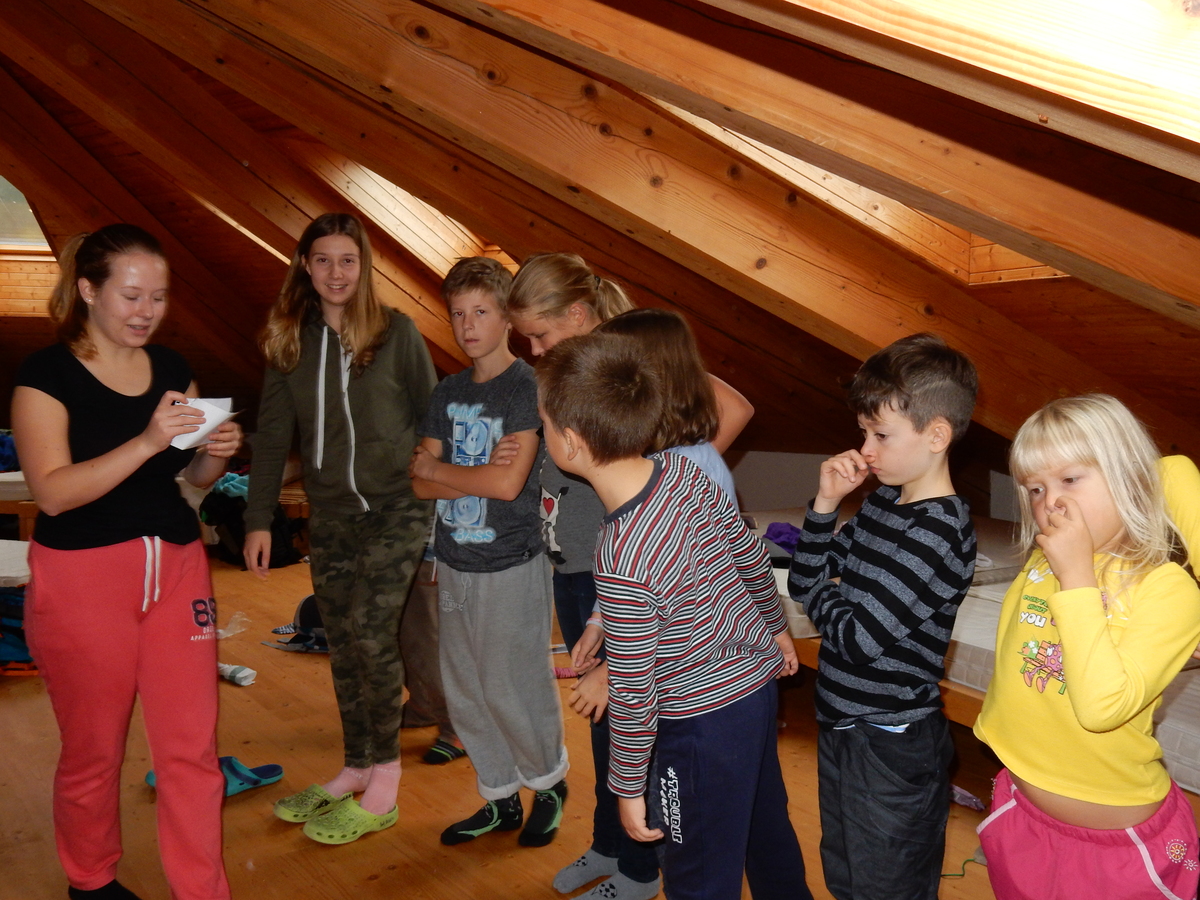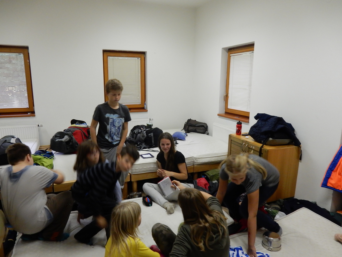 Je čtvrtek 26.10., 8:30 ráno. Zatímco dospělí míří za svými pracovními povinnostmi, školákům začíná první den podzimních prázdnin. A druhooddíláci se začínají pomalu ale jistě scházet na základně. Něco po tři čtvrtě na 9 přijíždí autobus, v tu chvíli už je na Boudě docela živo. Straší skauti skládají batohy do zavazadlového prostoru, Renča odškrtává seznam účastníků. 56 fajfek v seznamu, poslední zamávání rodičům a můžeme vyrazit směr Hostýnské vrchy. Sluníčko svítí a na palubě autobusu je (i díky "osvědčenému" řidiči Michalovi) skvělá atmosféra. V Kroměříži máme zastávku. Zatímco autobus parkuje kdesi na předměstí, my jdeme přímo do centra na historické náměstí. Petr účastníky dělí do 6 skupin po 8, každá skupina obdrží list s 8 úkoly a můžou vyrazit. Cílem zjišťovací soutěže je navštívit ta nejhezčí místa, která Kroměříž nabízí a zde něco zjistit. Je na to 45 minut a zvládají to všichni. Následuje hodinový rozchod. Cukrárna, zrcadlové bludiště, ZOOkoutek v zámecké zahradě, muzeum čokolády...to je jen několik málo z mnoha cílů, kam zvídaví členové oddílu míří. Dál pokračujeme cestou autobusem. Jedeme do Kateřinic, což je vesnice kousek od Vsetína. Nejhorší je úsek mezi Bystřicí a Hošťálkovou, kde je spousta semaforů... Na základně se všichni nejprve ubytují. Veverky v klubovně v levé části stavby, Draci s Pumami v levé zadní místnosti, Vlci s Tygry v pravé zadní místnosti, Kudlanky, Kobry a Sršni v podkroví. Následuje klasika jako vybírání účastnických poplatků, společného jídla... A protože je venku hezky, další etapa celovýpravové hry na sebe nedá dlouho čekat. Hraje se za slunečného počasí a její téma je pašování (co jiného také můžou ZBOJNÍCI dělat :-). Na večeři máme polévku s chlebem a před spaním se ještě hraje několik kol hry NA SARDELE. Kdo tu hru nezná, ten má těžkou mezeru ve vzdělání :-). V průběhu hry přijíždí autem čtveřice dalších vedoucích, kterým povinnosti neumožnily jet s námi už ráno autobusem: Brácha, Babů, Kanec a Kačka. No a kolem desáté se páše hygiena a uléhá k spánku. Někteří mladší mají trošku problém pochopit, co se skrývá pod pojmem "noční klid", hrozba noční hlídky venku ve tmě je však nakonec silnější než touha mluvit. A tak později již velkou místností zní jen tichý zpěv vedoucích a ještě později jen slastné oddechování spících skautíků a skautic. Páteční ráno začíná rozcvičkou. Petr s Kancem to berou poctivě i když se jim nad hlavou houfují temné černé mraky. Babů s Veverkami zatím chystají společnou snídaní. Po ní šestníci fasují pro svoje družiny jídlo na cestu, balíme se a připravujeme k odchodu směr Pržno a rozhledna u Holáňů. Pohled z okna nám ale plány poněkud hatí - začíná pršet a v momentě leje jako z konve. No a následný pohled na displej chytrého telefonu není o nic optimističtější než pohled z okna. Má pršet celý den. Tak se zase pěkně vybalujeme a Kloub rozjíždí další etapu celovýpravovky. Skupiny zbojníků v ní se zavázanýma očima hledají v místnosti rozmístěné předměty a skládají je do batůžku. Je zajímavé sledovat, jak o úspěchu rozhoduje nejen náhoda, ale mnohdy spíše schopnost fungovat jako tým a navzájem spolu komunikovat. V kuchyni zatím Kiki s Hihňou připravují oběd (který mel být původně večeří po návratu) a to těstoviny s omáčkou a sýrem. Po jídle se počasí malinko lepší, mraky se rozestupují a dokonce vykoukne i sluníčko. Vyrážíme tedy alespoň na necelé dva kilometry vzdálenou rozhlednu U Holáňů. Cesta vede do pěkného kopce, rozhledna je pak součástí přilehlé hospůdky, kde vládne vlídný a pohodový personál. Mrňousci se posilují sladkostmi, vedoucí jakbysmet. A rozhled je odtud opravdu skvělý. Na zpáteční cestě hrajeme na louce u lesa další etapu. I zbojnické děti musí umět počítat, podstatou hry je štafetové hledání lístků s čísly podle určitých pravidel. I zde hraje roli spolupráce, rychlá reakce a dobrá paměť. Která skupina zvítězila si už moc nepamatuju, ale co si pamatuju dobře je skutečnost, že mnohdy mladší vlčata i světlušky uspěli proti starším skautům či skautkám. Než se vrátíme zpět na základnu, začíná opět pršet. Náladu nám zlepšuje několik tácků s chleby se salámem a horký čaj. A po večeři rozjíždí Petr, Babů a Kiki další etapu AKTIVITY. Před spaním stíháme ještě jedno kolo oblíbených SARDELÍ, po hygieně a následné večerce se zpívá a radí. Sobotní ráno začíná tradičně rozcvičkou, tentokráte v režii Klouba a Kosti. Na snídani jsou buchty všeho druhu s čajem. Šestníci doplňují u Cyrila zásoby na cestu, společné foto před odchodem a může se jít. Dnes nás Pržno nemine! Cestou pozorujeme krásné barvy podzimu a taky nespočet druhů hub v lese. A někteří digitální maniaci pozorují displej svého mobilu. První (a poslední) výprava, kdy jsme vsadili na přirozenou inteligenci členů oddílu a nezakázali mobily. Výsledek? Špatná sázka. Většina je v pohodě, ale najdou se vyslovení závisláci. Když si jeden z Tygrů pustí hlasitou skřehotavou hudbu v lese, vybavím si vtipy a povídky z poloviny minulého století. Tehdy si "mastňáci" nosili do lesa pro změnu tranzistorová rádia k veliké nelibosti normálních lidí. Jak se nám ta historie opakuje... Obchůdek v Pržnu je bohužel zavřený, paní vedoucí ctí i bez Bublanova dementního zákona státní svátek. Do vzdálenější Jablůnky, kde obchodují Vietnamci, se nám nechce a tak kroky stáčíme do kopců směr Holáňovi. Cestou na louce se hraje etapa RUKA NOHA, kterou organizuje Kiki. Všichni se p