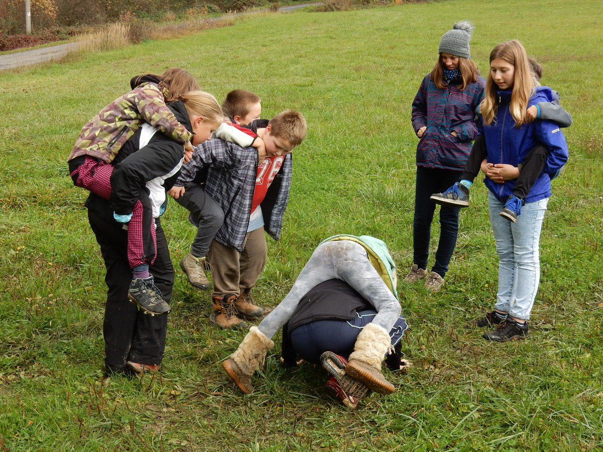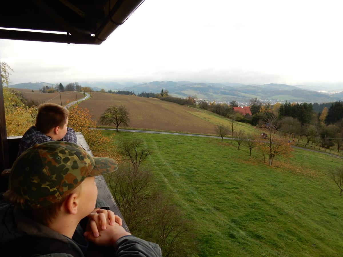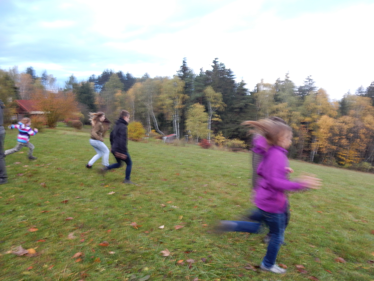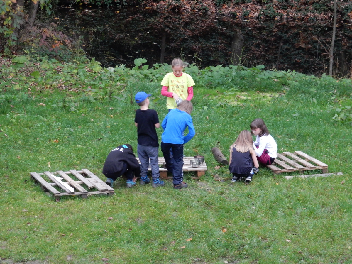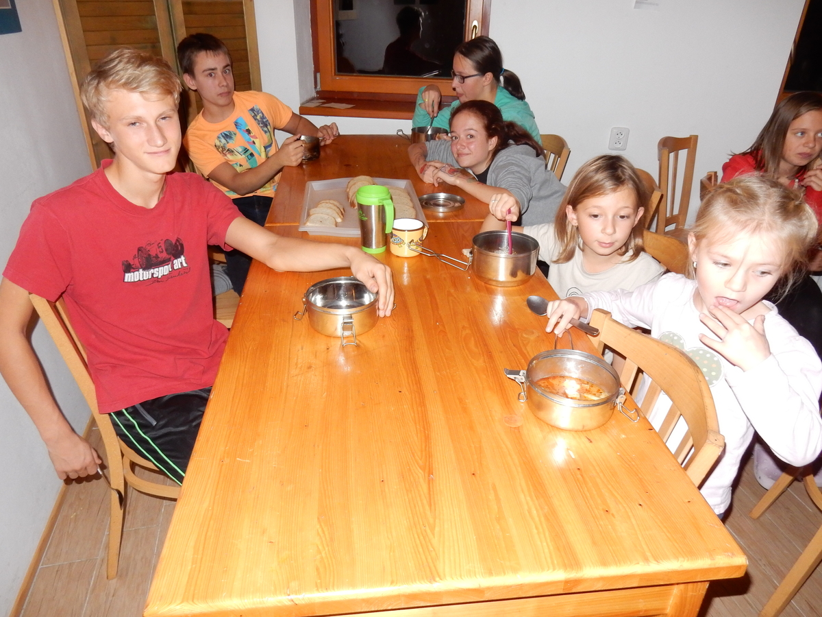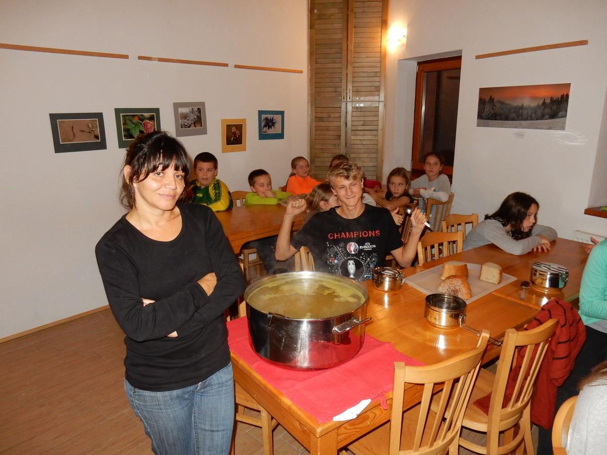 Je čtvrtek 26.10., 8:30 ráno. Zatímco dospělí míří za svými pracovními povinnostmi, školákům začíná první den podzimních prázdnin. A druhooddíláci se začínají pomalu ale jistě scházet na základně. Něco po tři čtvrtě na 9 přijíždí autobus, v tu chvíli už je na Boudě docela živo. Straší skauti skládají batohy do zavazadlového prostoru, Renča odškrtává seznam účastníků. 56 fajfek v seznamu, poslední zamávání rodičům a můžeme vyrazit směr Hostýnské vrchy. Sluníčko svítí a na palubě autobusu je (i díky "osvědčenému" řidiči Michalovi) skvělá atmosféra. V Kroměříži máme zastávku. Zatímco autobus parkuje kdesi na předměstí, my jdeme přímo do centra na historické náměstí. Petr účastníky dělí do 6 skupin po 8, každá skupina obdrží list s 8 úkoly a můžou vyrazit. Cílem zjišťovací soutěže je navštívit ta nejhezčí místa, která Kroměříž nabízí a zde něco zjistit. Je na to 45 minut a zvládají to všichni. Následuje hodinový rozchod. Cukrárna, zrcadlové bludiště, ZOOkoutek v zámecké zahradě, muzeum čokolády...to je jen několik málo z mnoha cílů, kam zvídaví členové oddílu míří. Dál pokračujeme cestou autobusem. Jedeme do Kateřinic, což je vesnice kousek od Vsetína. Nejhorší je úsek mezi Bystřicí a Hošťálkovou, kde je spousta semaforů... Na základně se všichni nejprve ubytují. Veverky v klubovně v levé části stavby, Draci s Pumami v levé zadní místnosti, Vlci s Tygry v pravé zadní místnosti, Kudlanky, Kobry a Sršni v podkroví. Následuje klasika jako vybírání účastnických poplatků, společného jídla... A protože je venku hezky, další etapa celovýpravové hry na sebe nedá dlouho čekat. Hraje se za slunečného počasí a její téma je pašování (co jiného také můžou ZBOJNÍCI dělat :-). Na večeři máme polévku s chlebem a před spaním se ještě hraje několik kol hry NA SARDELE. Kdo tu hru nezná, ten má těžkou mezeru ve vzdělání :-). V průběhu hry přijíždí autem čtveřice dalších vedoucích, kterým povinnosti neumožnily jet s námi už ráno autobusem: Brácha, Babů, Kanec a Kačka. No a kolem desáté se páše hygiena a uléhá k spánku. Někteří mladší mají trošku problém pochopit, co se skrývá pod pojmem "noční klid", hrozba noční hlídky venku ve tmě je však nakonec silnější než touha mluvit. A tak později již velkou místností zní jen tichý zpěv vedoucích a ještě později jen slastné oddechování spících skautíků a skautic. Páteční ráno začíná rozcvičkou. Petr s Kancem to berou poctivě i když se jim nad hlavou houfují temné černé mraky. Babů s Veverkami zatím chystají společnou snídaní. Po ní šestníci fasují pro svoje družiny jídlo na cestu, balíme se a připravujeme k odchodu směr Pržno a rozhledna u Holáňů. Pohled z okna nám ale plány poněkud hatí - začíná pršet a v momentě leje jako z konve. No a následný pohled na displej chytrého telefonu není o nic optimističtější než pohled z okna. Má pršet celý den. Tak se zase pěkně vybalujeme a Kloub rozjíždí další etapu celovýpravovky. Skupiny zbojníků v ní se zavázanýma očima hledají v místnosti rozmístěné předměty a skládají je do batůžku. Je zajímavé sledovat, jak o úspěchu rozhoduje nejen náhoda, ale mnohdy spíše schopnost fungovat jako tým a navzájem spolu komunikovat. V kuchyni zatím Kiki s Hihňou připravují oběd (který mel být původně večeří po návratu) a to těstoviny s omáčkou a sýrem. Po jídle se počasí malinko lepší, mraky se rozestupují a dokonce vykoukne i sluníčko. Vyrážíme tedy alespoň na necelé dva kilometry vzdálenou rozhlednu U Holáňů. Cesta vede do pěkného kopce, rozhledna je pak součástí přilehlé hospůdky, kde vládne vlídný a pohodový personál. Mrňousci se posilují sladkostmi, vedoucí jakbysmet. A rozhled je odtud opravdu skvělý. Na zpáteční cestě hrajeme na louce u lesa další etapu. I zbojnické děti musí umět počítat, podstatou hry je štafetové hledání lístků s čísly podle určitých pravidel. I zde hraje roli spolupráce, rychlá reakce a dobrá paměť. Která skupina zvítězila si už moc nepamatuju, ale co si pamatuju dobře je skutečnost, že mnohdy mladší vlčata i světlušky uspěli proti starším skautům či skautkám. Než se vrátíme zpět na základnu, začíná opět pršet. Náladu nám zlepšuje několik tácků s chleby se salámem a horký čaj. A po večeři rozjíždí Petr, Babů a Kiki další etapu AKTIVITY. Před spaním stíháme ještě jedno kolo oblíbených SARDELÍ, po hygieně a následné večerce se zpívá a radí. Sobotní ráno začíná tradičně rozcvičkou, tentokráte v režii Klouba a Kosti. Na snídani jsou buchty všeho druhu s čajem. Šestníci doplňují u Cyrila zásoby na cestu, společné foto před odchodem a může se jít. Dnes nás Pržno nemine! Cestou pozorujeme krásné barvy podzimu a taky nespočet druhů hub v lese. A někteří digitální maniaci pozorují displej svého mobilu. První (a poslední) výprava, kdy jsme vsadili na přirozenou inteligenci členů oddílu a nezakázali mobily. Výsledek? Špatná sázka. Většina je v pohodě, ale najdou se vyslovení závisláci. Když si jeden z Tygrů pustí hlasitou skřehotavou hudbu v lese, vybavím si vtipy a povídky z poloviny minulého století. Tehdy si "mastňáci" nosili do lesa pro změnu tranzistorová rádia k veliké nelibosti normálních lidí. Jak se nám ta historie opakuje... Obchůdek v Pržnu je bohužel zavřený, paní vedoucí ctí i bez Bublanova dementního zákona státní svátek. Do vzdálenější Jablůnky, kde obchodují Vietnamci, se nám nechce a tak kroky stáčíme do kopců směr Holáňovi. Cestou na louce se hraje etapa RUKA NOHA, kterou organizuje Kiki. Všichni se p