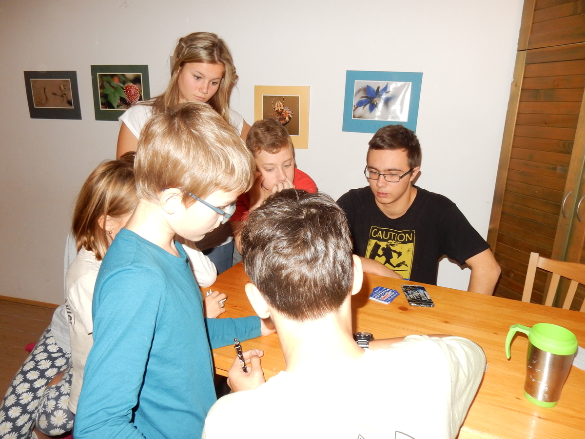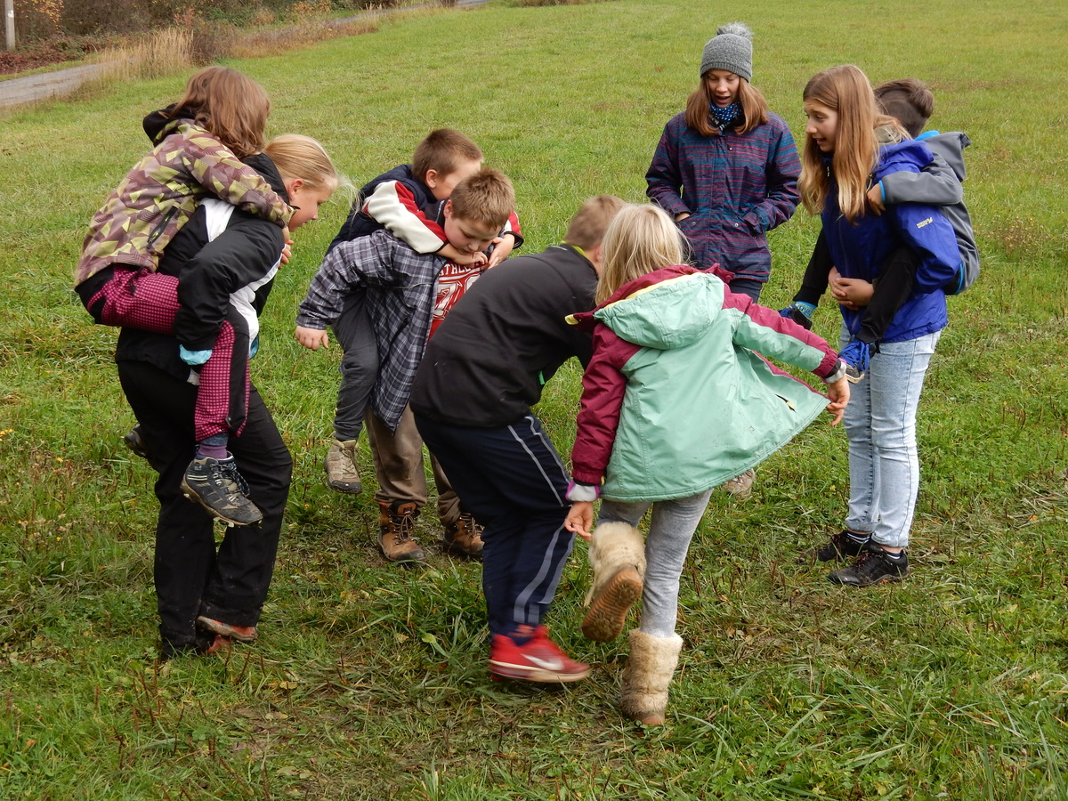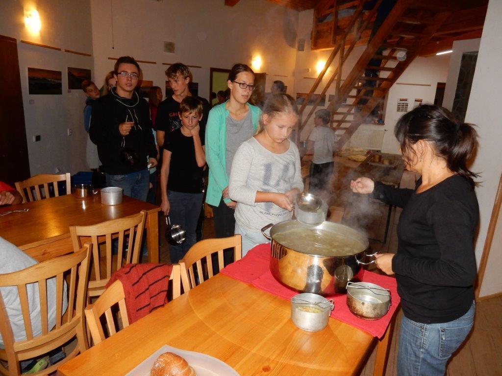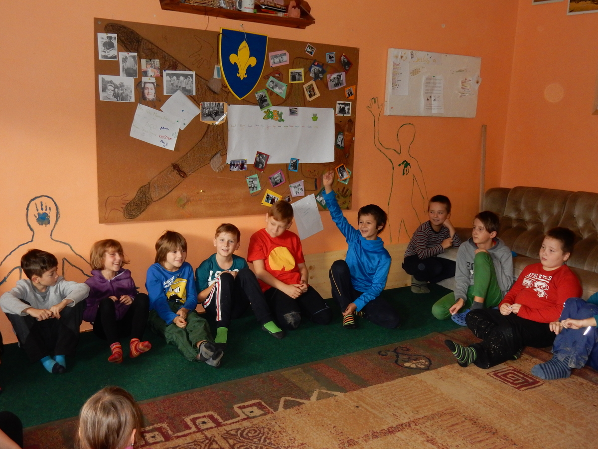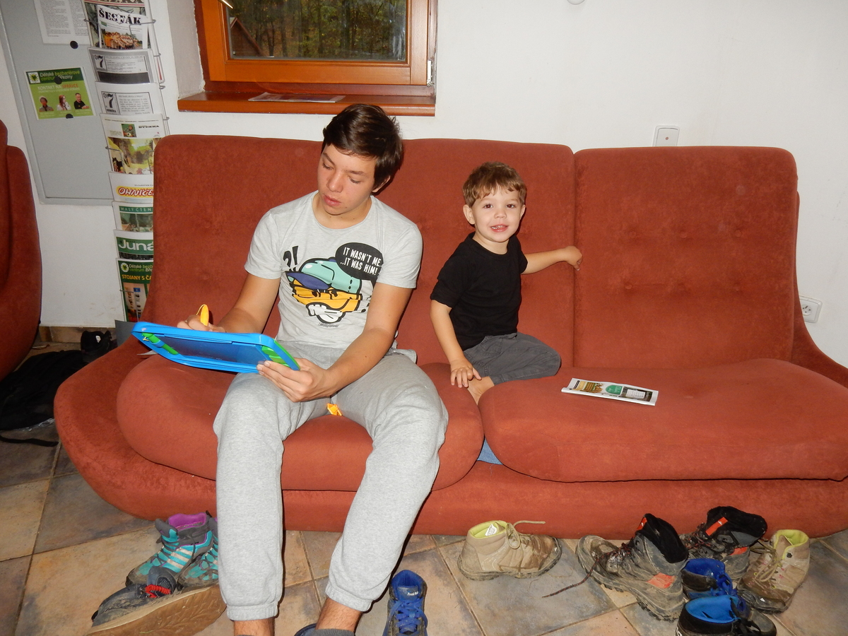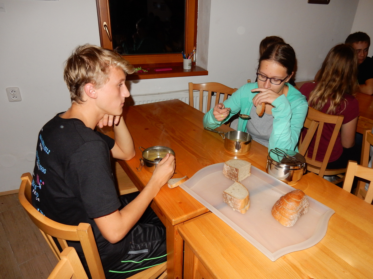 Je čtvrtek 26.10., 8:30 ráno. Zatímco dospělí míří za svými pracovními povinnostmi, školákům začíná první den podzimních prázdnin. A druhooddíláci se začínají pomalu ale jistě scházet na základně. Něco po tři čtvrtě na 9 přijíždí autobus, v tu chvíli už je na Boudě docela živo. Straší skauti skládají batohy do zavazadlového prostoru, Renča odškrtává seznam účastníků. 56 fajfek v seznamu, poslední zamávání rodičům a můžeme vyrazit směr Hostýnské vrchy. Sluníčko svítí a na palubě autobusu je (i díky "osvědčenému" řidiči Michalovi) skvělá atmosféra. V Kroměříži máme zastávku. Zatímco autobus parkuje kdesi na předměstí, my jdeme přímo do centra na historické náměstí. Petr účastníky dělí do 6 skupin po 8, každá skupina obdrží list s 8 úkoly a můžou vyrazit. Cílem zjišťovací soutěže je navštívit ta nejhezčí místa, která Kroměříž nabízí a zde něco zjistit. Je na to 45 minut a zvládají to všichni. Následuje hodinový rozchod. Cukrárna, zrcadlové bludiště, ZOOkoutek v zámecké zahradě, muzeum čokolády...to je jen několik málo z mnoha cílů, kam zvídaví členové oddílu míří. Dál pokračujeme cestou autobusem. Jedeme do Kateřinic, což je vesnice kousek od Vsetína. Nejhorší je úsek mezi Bystřicí a Hošťálkovou, kde je spousta semaforů... Na základně se všichni nejprve ubytují. Veverky v klubovně v levé části stavby, Draci s Pumami v levé zadní místnosti, Vlci s Tygry v pravé zadní místnosti, Kudlanky, Kobry a Sršni v podkroví. Následuje klasika jako vybírání účastnických poplatků, společného jídla... A protože je venku hezky, další etapa celovýpravové hry na sebe nedá dlouho čekat. Hraje se za slunečného počasí a její téma je pašování (co jiného také můžou ZBOJNÍCI dělat :-). Na večeři máme polévku s chlebem a před spaním se ještě hraje několik kol hry NA SARDELE. Kdo tu hru nezná, ten má těžkou mezeru ve vzdělání :-). V průběhu hry přijíždí autem čtveřice dalších vedoucích, kterým povinnosti neumožnily jet s námi už ráno autobusem: Brácha, Babů, Kanec a Kačka. No a kolem desáté se páše hygiena a uléhá k spánku. Někteří mladší mají trošku problém pochopit, co se skrývá pod pojmem "noční klid", hrozba noční hlídky venku ve tmě je však nakonec silnější než touha mluvit. A tak později již velkou místností zní jen tichý zpěv vedoucích a ještě později jen slastné oddechování spících skautíků a skautic. Páteční ráno začíná rozcvičkou. Petr s Kancem to berou poctivě i když se jim nad hlavou houfují temné černé mraky. Babů s Veverkami zatím chystají společnou snídaní. Po ní šestníci fasují pro svoje družiny jídlo na cestu, balíme se a připravujeme k odchodu směr Pržno a rozhledna u Holáňů. Pohled z okna nám ale plány poněkud hatí - začíná pršet a v momentě leje jako z konve. No a následný pohled na displej chytrého telefonu není o nic optimističtější než pohled z okna. Má pršet celý den. Tak se zase pěkně vybalujeme a Kloub rozjíždí další etapu celovýpravovky. Skupiny zbojníků v ní se zavázanýma očima hledají v místnosti rozmístěné předměty a skládají je do batůžku. Je zajímavé sledovat, jak o úspěchu rozhoduje nejen náhoda, ale mnohdy spíše schopnost fungovat jako tým a navzájem spolu komunikovat. V kuchyni zatím Kiki s Hihňou připravují oběd (který mel být původně večeří po návratu) a to těstoviny s omáčkou a sýrem. Po jídle se počasí malinko lepší, mraky se rozestupují a dokonce vykoukne i sluníčko. Vyrážíme tedy alespoň na necelé dva kilometry vzdálenou rozhlednu U Holáňů. Cesta vede do pěkného kopce, rozhledna je pak součástí přilehlé hospůdky, kde vládne vlídný a pohodový personál. Mrňousci se posilují sladkostmi, vedoucí jakbysmet. A rozhled je odtud opravdu skvělý. Na zpáteční cestě hrajeme na louce u lesa další etapu. I zbojnické děti musí umět počítat, podstatou hry je štafetové hledání lístků s čísly podle určitých pravidel. I zde hraje roli spolupráce, rychlá reakce a dobrá paměť. Která skupina zvítězila si už moc nepamatuju, ale co si pamatuju dobře je skutečnost, že mnohdy mladší vlčata i světlušky uspěli proti starším skautům či skautkám. Než se vrátíme zpět na základnu, začíná opět pršet. Náladu nám zlepšuje několik tácků s chleby se salámem a horký čaj. A po večeři rozjíždí Petr, Babů a Kiki další etapu AKTIVITY. Před spaním stíháme ještě jedno kolo oblíbených SARDELÍ, po hygieně a následné večerce se zpívá a radí. Sobotní ráno začíná tradičně rozcvičkou, tentokráte v režii Klouba a Kosti. Na snídani jsou buchty všeho druhu s čajem. Šestníci doplňují u Cyrila zásoby na cestu, společné foto před odchodem a může se jít. Dnes nás Pržno nemine! Cestou pozorujeme krásné barvy podzimu a taky nespočet druhů hub v lese. A někteří digitální maniaci pozorují displej svého mobilu. První (a poslední) výprava, kdy jsme vsadili na přirozenou inteligenci členů oddílu a nezakázali mobily. Výsledek? Špatná sázka. Většina je v pohodě, ale najdou se vyslovení závisláci. Když si jeden z Tygrů pustí hlasitou skřehotavou hudbu v lese, vybavím si vtipy a povídky z poloviny minulého století. Tehdy si "mastňáci" nosili do lesa pro změnu tranzistorová rádia k veliké nelibosti normálních lidí. Jak se nám ta historie opakuje... Obchůdek v Pržnu je bohužel zavřený, paní vedoucí ctí i bez Bublanova dementního zákona státní svátek. Do vzdálenější Jablůnky, kde obchodují Vietnamci, se nám nechce a tak kroky stáčíme do kopců směr Holáňovi. Cestou na louce se hraje etapa RUKA NOHA, kterou organizuje Kiki. Všichni se p