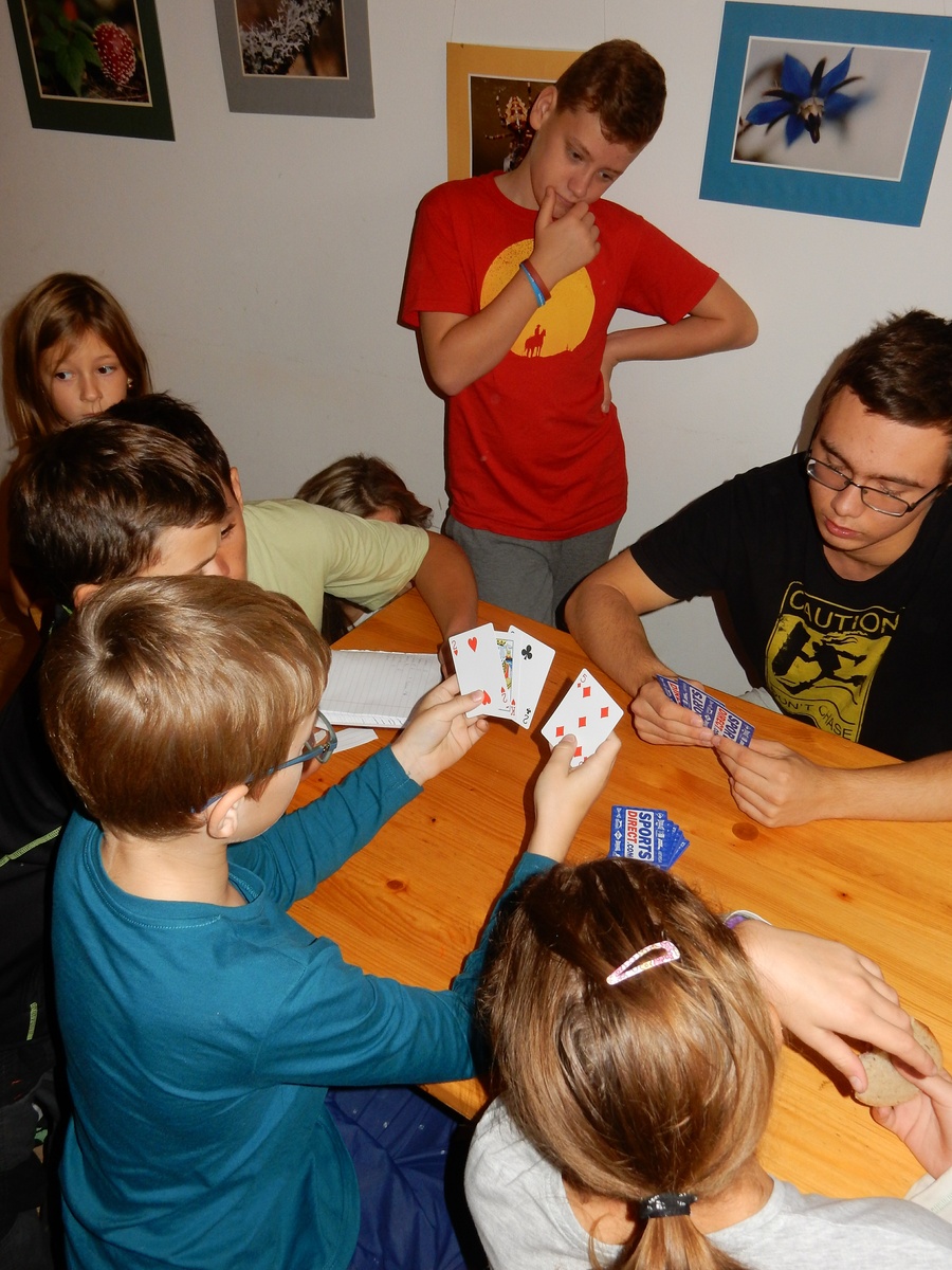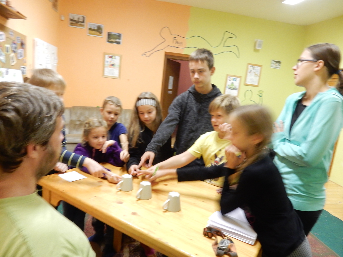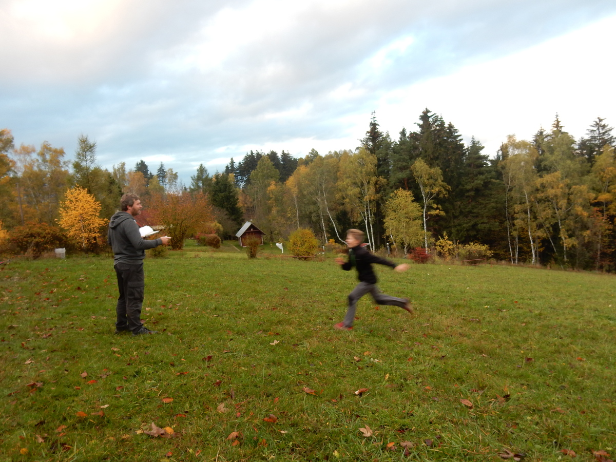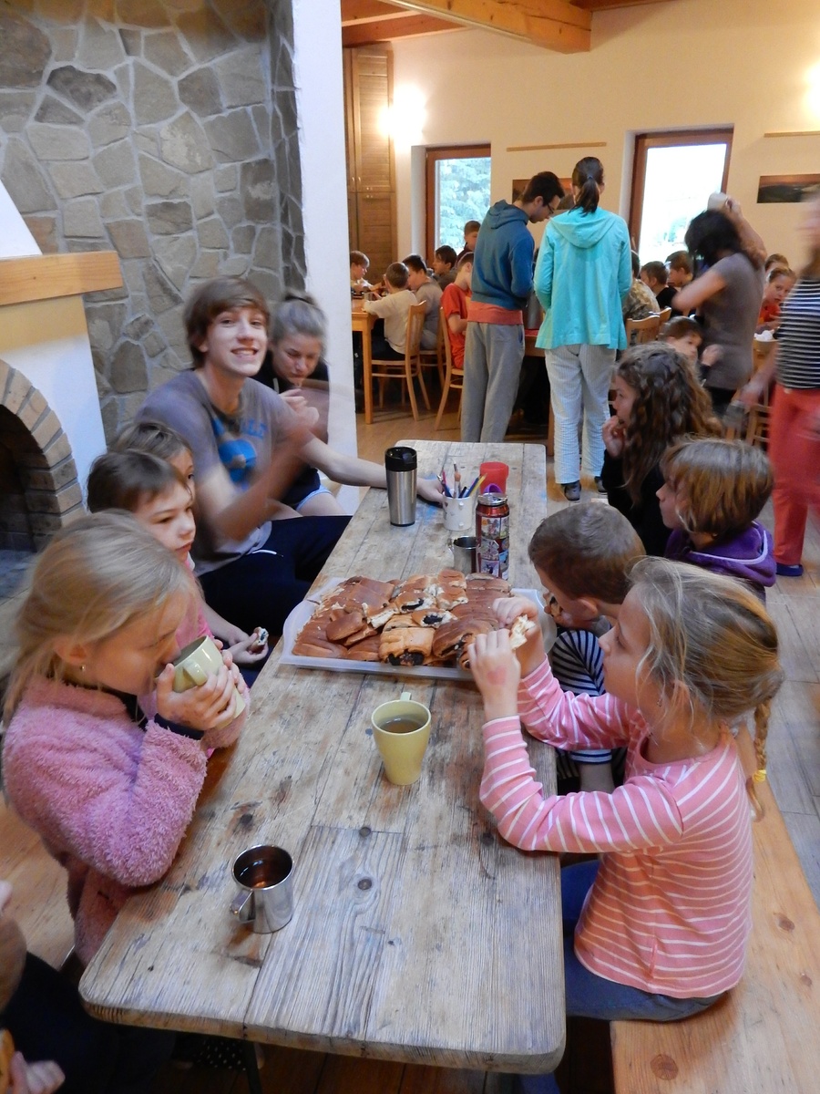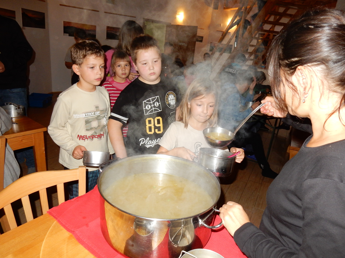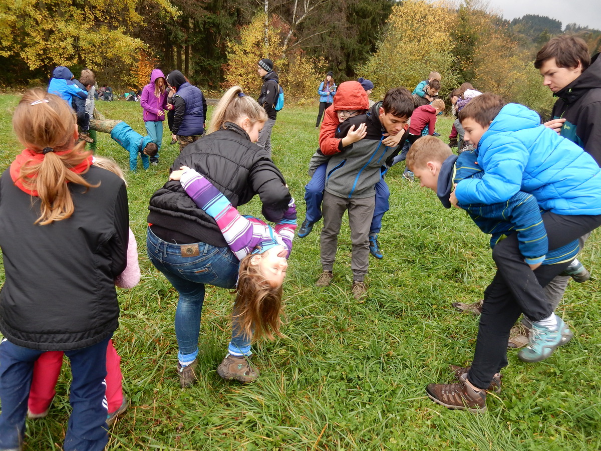 Je čtvrtek 26.10., 8:30 ráno. Zatímco dospělí míří za svými pracovními povinnostmi, školákům začíná první den podzimních prázdnin. A druhooddíláci se začínají pomalu ale jistě scházet na základně. Něco po tři čtvrtě na 9 přijíždí autobus, v tu chvíli už je na Boudě docela živo. Straší skauti skládají batohy do zavazadlového prostoru, Renča odškrtává seznam účastníků. 56 fajfek v seznamu, poslední zamávání rodičům a můžeme vyrazit směr Hostýnské vrchy. Sluníčko svítí a na palubě autobusu je (i díky "osvědčenému" řidiči Michalovi) skvělá atmosféra. V Kroměříži máme zastávku. Zatímco autobus parkuje kdesi na předměstí, my jdeme přímo do centra na historické náměstí. Petr účastníky dělí do 6 skupin po 8, každá skupina obdrží list s 8 úkoly a můžou vyrazit. Cílem zjišťovací soutěže je navštívit ta nejhezčí místa, která Kroměříž nabízí a zde něco zjistit. Je na to 45 minut a zvládají to všichni. Následuje hodinový rozchod. Cukrárna, zrcadlové bludiště, ZOOkoutek v zámecké zahradě, muzeum čokolády...to je jen několik málo z mnoha cílů, kam zvídaví členové oddílu míří. Dál pokračujeme cestou autobusem. Jedeme do Kateřinic, což je vesnice kousek od Vsetína. Nejhorší je úsek mezi Bystřicí a Hošťálkovou, kde je spousta semaforů... Na základně se všichni nejprve ubytují. Veverky v klubovně v levé části stavby, Draci s Pumami v levé zadní místnosti, Vlci s Tygry v pravé zadní místnosti, Kudlanky, Kobry a Sršni v podkroví. Následuje klasika jako vybírání účastnických poplatků, společného jídla... A protože je venku hezky, další etapa celovýpravové hry na sebe nedá dlouho čekat. Hraje se za slunečného počasí a její téma je pašování (co jiného také můžou ZBOJNÍCI dělat :-). Na večeři máme polévku s chlebem a před spaním se ještě hraje několik kol hry NA SARDELE. Kdo tu hru nezná, ten má těžkou mezeru ve vzdělání :-). V průběhu hry přijíždí autem čtveřice dalších vedoucích, kterým povinnosti neumožnily jet s námi už ráno autobusem: Brácha, Babů, Kanec a Kačka. No a kolem desáté se páše hygiena a uléhá k spánku. Někteří mladší mají trošku problém pochopit, co se skrývá pod pojmem "noční klid", hrozba noční hlídky venku ve tmě je však nakonec silnější než touha mluvit. A tak později již velkou místností zní jen tichý zpěv vedoucích a ještě později jen slastné oddechování spících skautíků a skautic. Páteční ráno začíná rozcvičkou. Petr s Kancem to berou poctivě i když se jim nad hlavou houfují temné černé mraky. Babů s Veverkami zatím chystají společnou snídaní. Po ní šestníci fasují pro svoje družiny jídlo na cestu, balíme se a připravujeme k odchodu směr Pržno a rozhledna u Holáňů. Pohled z okna nám ale plány poněkud hatí - začíná pršet a v momentě leje jako z konve. No a následný pohled na displej chytrého telefonu není o nic optimističtější než pohled z okna. Má pršet celý den. Tak se zase pěkně vybalujeme a Kloub rozjíždí další etapu celovýpravovky. Skupiny zbojníků v ní se zavázanýma očima hledají v místnosti rozmístěné předměty a skládají je do batůžku. Je zajímavé sledovat, jak o úspěchu rozhoduje nejen náhoda, ale mnohdy spíše schopnost fungovat jako tým a navzájem spolu komunikovat. V kuchyni zatím Kiki s Hihňou připravují oběd (který mel být původně večeří po návratu) a to těstoviny s omáčkou a sýrem. Po jídle se počasí malinko lepší, mraky se rozestupují a dokonce vykoukne i sluníčko. Vyrážíme tedy alespoň na necelé dva kilometry vzdálenou rozhlednu U Holáňů. Cesta vede do pěkného kopce, rozhledna je pak součástí přilehlé hospůdky, kde vládne vlídný a pohodový personál. Mrňousci se posilují sladkostmi, vedoucí jakbysmet. A rozhled je odtud opravdu skvělý. Na zpáteční cestě hrajeme na louce u lesa další etapu. I zbojnické děti musí umět počítat, podstatou hry je štafetové hledání lístků s čísly podle určitých pravidel. I zde hraje roli spolupráce, rychlá reakce a dobrá paměť. Která skupina zvítězila si už moc nepamatuju, ale co si pamatuju dobře je skutečnost, že mnohdy mladší vlčata i světlušky uspěli proti starším skautům či skautkám. Než se vrátíme zpět na základnu, začíná opět pršet. Náladu nám zlepšuje několik tácků s chleby se salámem a horký čaj. A po večeři rozjíždí Petr, Babů a Kiki další etapu AKTIVITY. Před spaním stíháme ještě jedno kolo oblíbených SARDELÍ, po hygieně a následné večerce se zpívá a radí. Sobotní ráno začíná tradičně rozcvičkou, tentokráte v režii Klouba a Kosti. Na snídani jsou buchty všeho druhu s čajem. Šestníci doplňují u Cyrila zásoby na cestu, společné foto před odchodem a může se jít. Dnes nás Pržno nemine! Cestou pozorujeme krásné barvy podzimu a taky nespočet druhů hub v lese. A někteří digitální maniaci pozorují displej svého mobilu. První (a poslední) výprava, kdy jsme vsadili na přirozenou inteligenci členů oddílu a nezakázali mobily. Výsledek? Špatná sázka. Většina je v pohodě, ale najdou se vyslovení závisláci. Když si jeden z Tygrů pustí hlasitou skřehotavou hudbu v lese, vybavím si vtipy a povídky z poloviny minulého století. Tehdy si "mastňáci" nosili do lesa pro změnu tranzistorová rádia k veliké nelibosti normálních lidí. Jak se nám ta historie opakuje... Obchůdek v Pržnu je bohužel zavřený, paní vedoucí ctí i bez Bublanova dementního zákona státní svátek. Do vzdálenější Jablůnky, kde obchodují Vietnamci, se nám nechce a tak kroky stáčíme do kopců směr Holáňovi. Cestou na louce se hraje etapa RUKA NOHA, kterou organizuje Kiki. Všichni se p