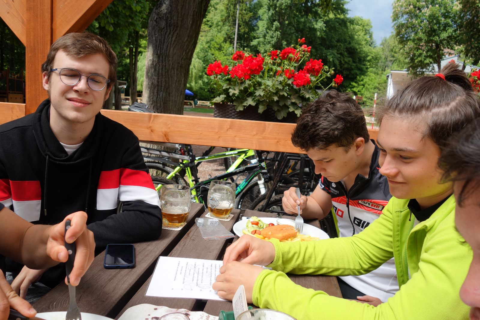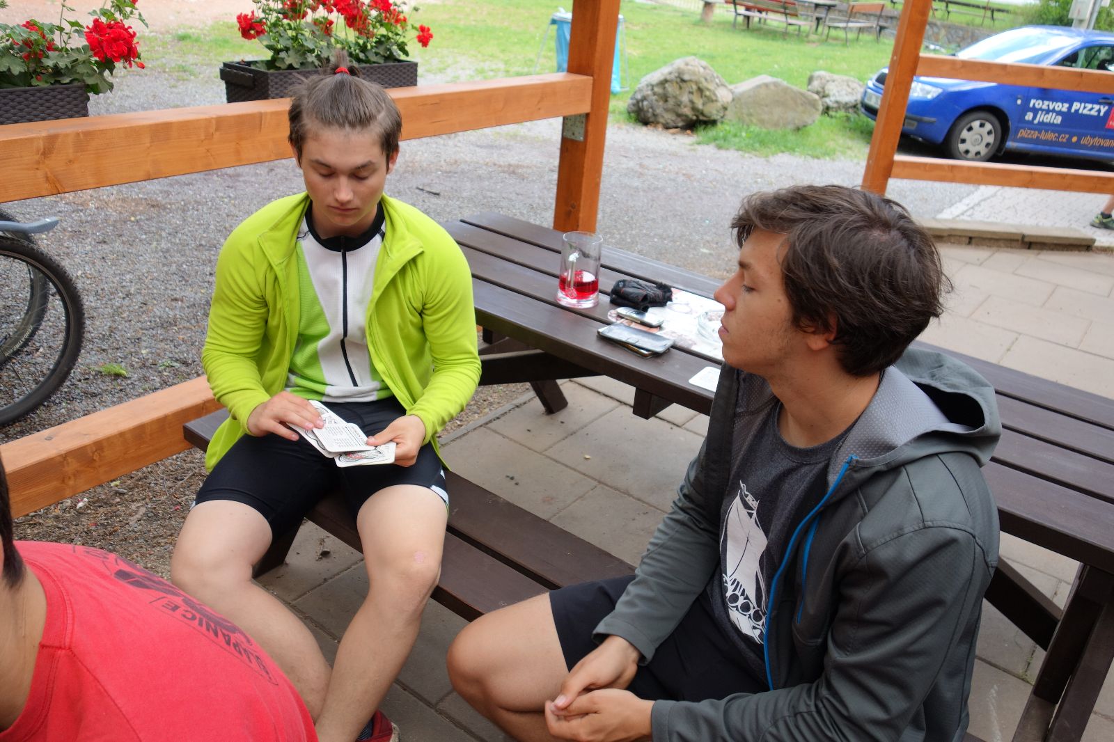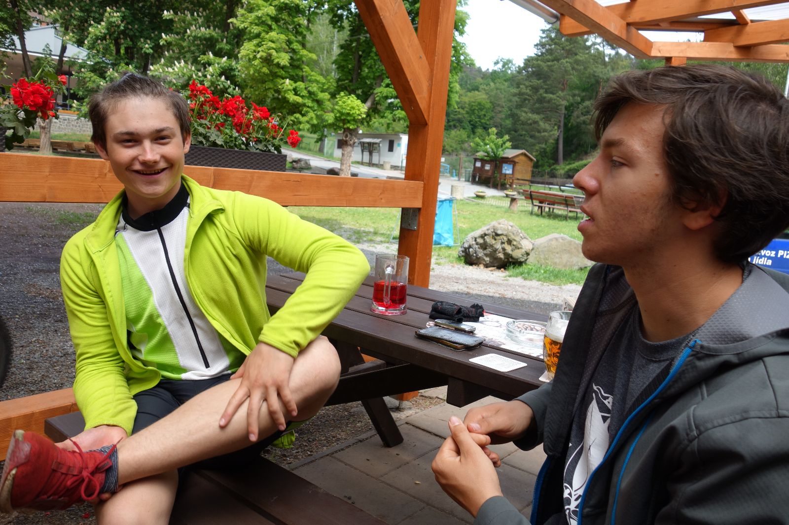 Dál jedeme asfaltkou směr Tučapy a odtud už je to jen kousek do Lulče. Pohodová cesta. Usedáme do hospůdky, dáváme nějaké to pivko a jídlo. Taky Macháčka, v němž exceluje Kloub. Přichází první dešťová přeháňka, ale zahrádka, kde sedíme, má naštěstí střechu. Když zase vyleze sluníčko, pokračujeme v cestě. Ta vede do kopce kolem hotelu G (jmenuje se po bývalém majiteli prvoligového Drnovického týmu) a kluci docela žasnou, když jim vyprávím příběh z 90. let, kdy v 1. Fotbalové lize byly kromě Drnovic (malá dědinka u Vyškova) třeba taky Blšany (ještě menší dědinka kdesi v Čechách).