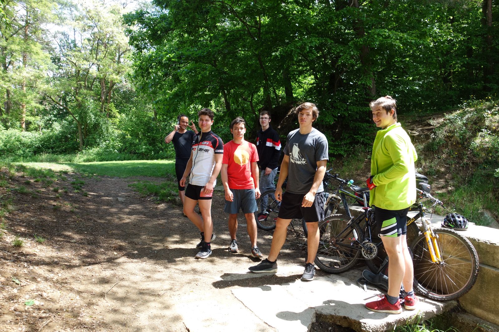 V 9:00 se nás na Boudě sešlo 7. Svítilo sluníčko, ale všude mokro. Původní plány projet se polňačkami až na Hartlovku jsme tedy museli pozměnit. Vyrazili jsme tedy po silnici směrem na Jiřky a Blažky, už v první dědině se stihli Roxy a Kloubem zatoulat. Setkali jsme se zase až v Blažovicích u kostela. V Holubicích jsme zahnuli na „Haškovu autostrádu“ směr Velešovice (kdo neznáte, projeďte se tam, super tankodrom J) a pak jsme jeli směr Rousínov. Ten jsme objeli po různých bočních uličkách a cyklostezkách a dojeli až do Podbřežic. Pěkná, zapomenutá dědinka s trampolínou a posezením. Svačíme a diskutujeme o historii. Zajímavé, jak se mění zájmy. Dřív kluci plkali hlavně o jídle a počítačových hrách…