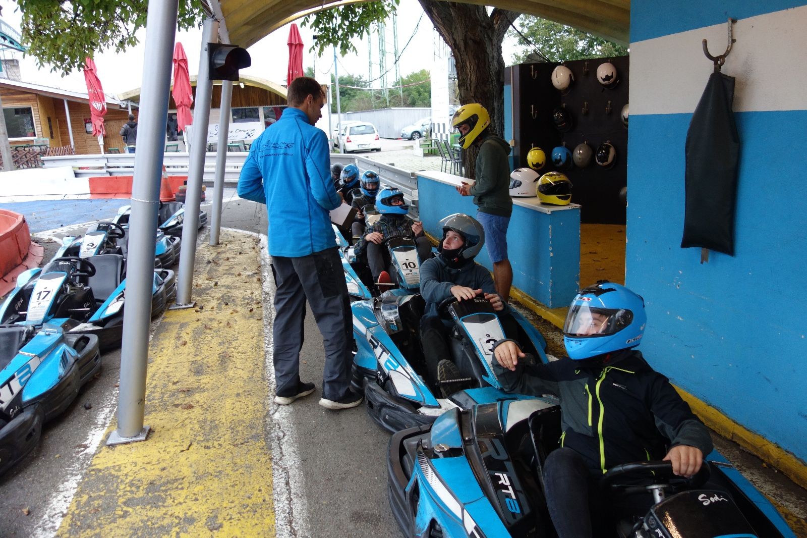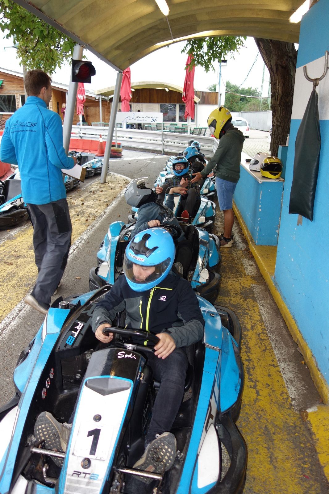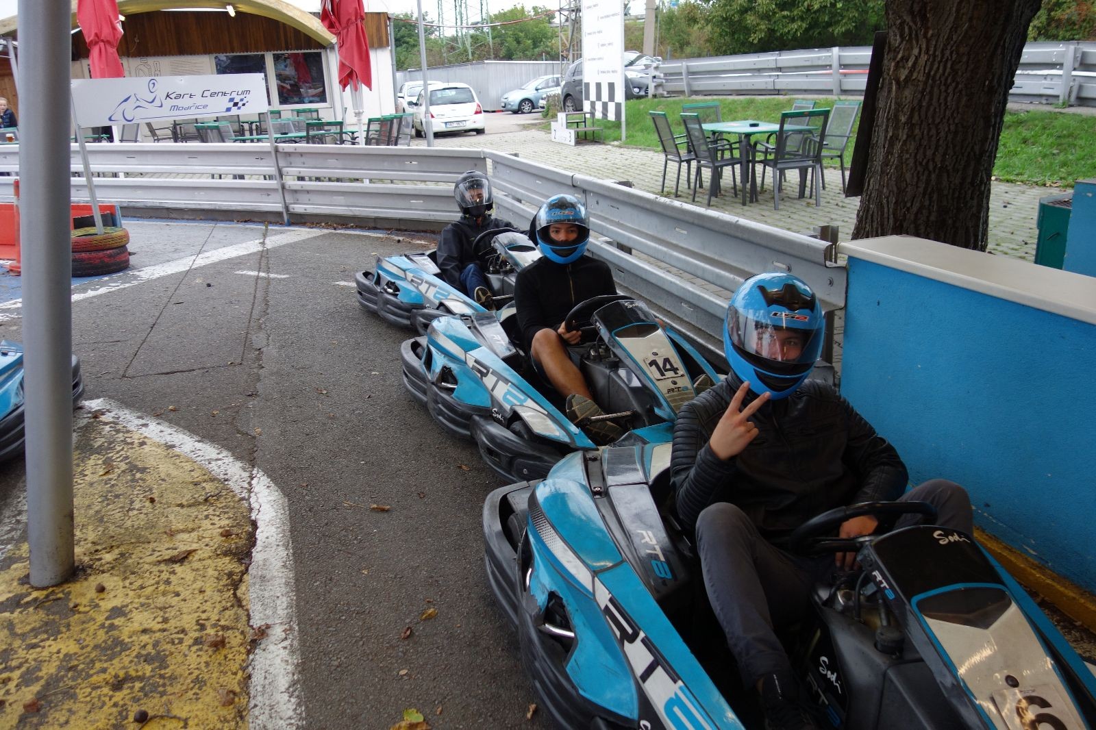V pátek 2.10.2020 se Draci sešli o něco dříve, již v 15:30 na Boudě. Odsud se frčelo rovnou do Modřic na motokáry. Roxy cestou naložil opozdilce ve Slatině, my zase Vítka ve Šlapkách, takže nakonec se nás sešlo u motokár 8. Na úvod jsme dostali nějaké instrukce co dělat a co radši ne, nafasovali jsme přilby a vyrazili na 15 minut testovací jízdy. Už od prvního protůrování motoru jsme nebyli na pochybách, kdo dnes obsadí v závodě první místo. Roxy totiž ostatní bral „o parník“. Já obsadil v testovačce krásné sedmé místo a jen našemu hostovi můžu vděčit za to, že jsem nebyl úplně poslední. Po jízdě jsme dostali zpětnou vazbu od organizátorů.