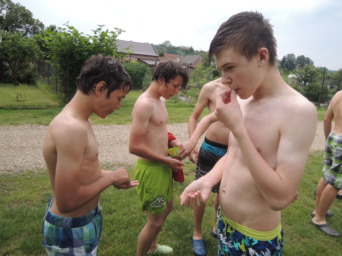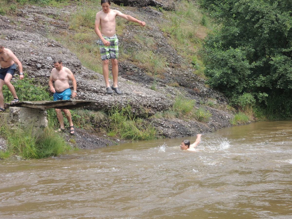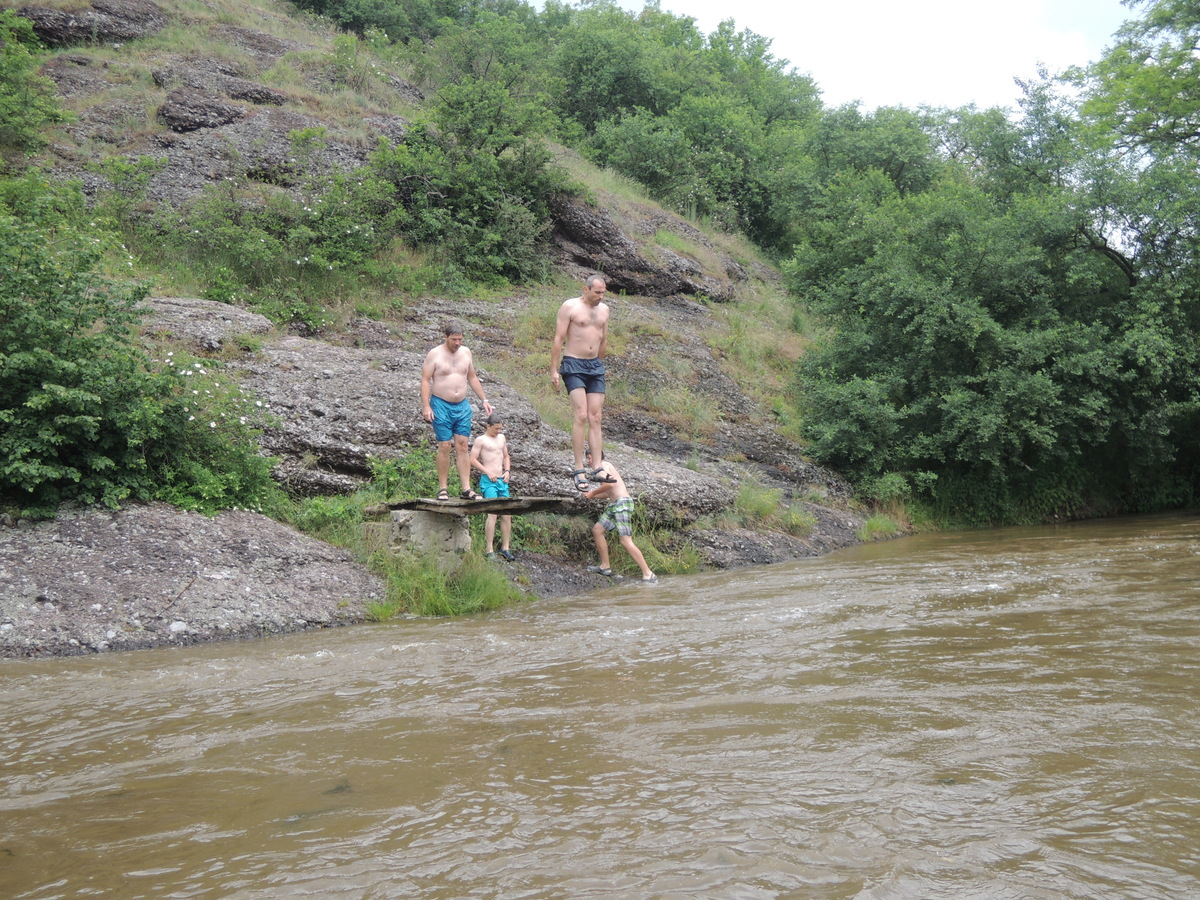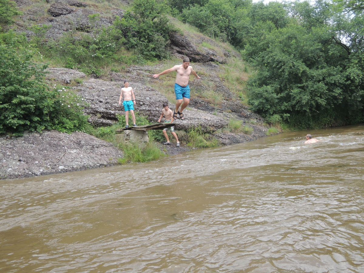 O prvním červnovém víkendu jsme se rozhodli vyrazit na vodáckou výpravu. Pohled do kalendáře nás navedl - bude se pouštět voda z přehrady Mohleno. Bylo tedy rozhodnuto. V sobotu kolem sedmé večer se sešlo na Boudě 12 Draků: Kloub, Filíš, Tobík, Petarda, Jára, Lukin, Vítek, Amád, Krysařík, Kostra a Honza + já. Připravili jsme vesty a další věci, chvíli si dali fotbálek a pak se tlupa hladových odsunula doplnit zásoby jídla do Alberta. Po večeři (převážně zmrzlinové :-)) jsem si dali Aktivity a docela se při tom pobavili. Přál bych vám vidět, jak gymnaziální mládež předvádí pantomimicky slovo "řeholnice" nebo "větrný mlýn". Spát jsme šli docela brzo, i když kravál, šířící se z Velkého parku, byl ukrutný... Ráno v 7:00 přijíždí nejprve červená oktávka s Kosťovic rodiči a sestřičkou, pak přijíždí Lukinův táta a jako poslední rozšiřuje naše řady Amádův táta. Tím je dán konečný počet účastníků zájezdu na 17. Malinko přerozdělujeme ekvipmenty do ostatních aut (večer jsem přivezl oba rafty, všechny tři Pálavy a pádla v jednom autě já), pak naskakují do aut i Draci a můžeme jet. V Ivančicích provádíme reorganizaci, suneme se do trojice aut a Amádovic stroj zůstává na břehu u mostu. To je luxus, nemusíme s auty složitě šachovat. A kluci jsou skladní... U Mohenského mostu asi 20 km proti proudu to vypadá jako v mraveništi. Parkujeme každý kde se dá a posádky se ujímají svých plavidel. Kosťovic family si fučí jednu Pálavu, Lukin s Vítkem druhou a Petarda s Tobíkem třetí. Raft Colorado si chystají Karel (jinak Lukinův táta), Jára, Kosťa a Kloub a raft Robfin připravujeme my s Radkem (jinak Amádovým tátou), Krysaříkem, Amádem, Honzou a Filíšem. Na vodu vyrážíme netradičně brzy a vypadá to tam skoro jako na břehu - všude samí vodáci. Míjíme několik pěkných peřejnatých úseků a jeden jez. Občas nám jízdu zpestřují kameny v řece a jindy zase spadané stromy a nízké větve. Je to super. Když na jednom kamenu uváznou Vítek s Lukinem a při vyprošťování se otočí, bavíme se přímo královsky. Naštěstí se blíží tábořiště pod Templštýnem a tam kromě stánků s občerstvením mají i oheň. Cpeme se grilovanými cigáry a dva mokrouši se trošku suší. To ještě netuší, že pár stovek metrů dál po proudu vypuknou takové líté boje mezi posádkami, že mokří budou úplně všichni a všechno... Boje začaly docela nevinně. Kdosi z některé Pálavy po nás z legrace stříknul a ujel. Oprášili jsme tudíž staré mušketýrské heslo "Jeden za všechny všichni za jednoho" s tím, že příště se do opovážlivce pustíme všichni. Netrvalo dlouho a komusi z naší posádky přistál na hlavě chomáč řas. Viník? Jako kobyly se chlámající pálaváři Tobík s Petardou. Přibližujeme se k nim a zahajujeme vodní útok. Řeknu vám, 6 pádel, to je obrovská palebná síla! Voda létá vzduchem, Tobík s Petradou se chabě brání a v tom jim připlouvá na pomoc posádka Colorada! Během chviličky jsme všichni durch, obzvláště když se do bojů zapojuje i druhá Pálava, na které se mezi tím ocitli Kloub s Kosťou. Ovšem i my máme trumf v rukávu v podobě živé střely Amád I. Občas jsme se tak zabrali do bojů, že jsme si nevšimli nízkých větví a málem došlo k tragédii! Ovšem taky jsme se výborně bavili a k tomu i spousta přihlížejících vodáků. Když nás boje omrzely, jeli jsme chvíli jen tak a najednou se na obzoru objevil legendární skokanský můstek. Přirazili jsme vpravo na mělčině, rozložili mokré věci, něco málo posvačili a padla otázka, kdo si jde zaskákat. Ruce se zvedly čtyři, moje, Karlova, Kloubova a Lukinova. Ostatní se hájili, že nemůžou, že voda je studená a oni měli předloni rýmu, nebo že se obávají lidožravých žab co tu prý určitě jsou a tak všelijak podobně. K protějšímu břehu jsem tedy vyrazili ve čtyřech. Do půlky řeky mělčina, pak dno strmě klesá a proud sílí. Ale zvládli jsme to. Karel jde příkladem a skáče první. Kolem projíždějící posádky na nás nevěřícně čumí, zbytek tlupy na břehu taky, jen Honza neúnavně fotí. Když jsem si dostatečně zaskákali, jelo se dál. Projeli jsme provalený jez, opodál zvládli i ten další (vody bylo hodně, mlýn žádnou nebral) a mysleli si,že už nás čeká jen klidný dojezd. To jsme se ale šeredně spletli. Nízké větve a silný proud nám připravily několik adrenalinových chvilek, z nichž jednu zakončili Kosťa s Kloubem v nánosu popadaných větví. Ještě že jim Radek pomohl vyprostit uvízlou Pálavu a Robfináři zatím zablokovali příjezd dalších plavidel do nebezpečného místa. Ale nebyli jsme v tom sami, koupalo se i dost jiných vodáků. Když jsme vypluli z vrbiček a olší, rozevřela se krajina a před námi byly Ivančice. Zleva se do Jihlavy vlila Oslava a o kousek dál už byl most. Zde naše plavba končí. Tátové se sunou pro auta, Draci čistí, vypouštějí a skládají plavidla. Ty pak na Boudě pěkně rozvěsíme, aby dokonale vyschly. Super akce, kdo nejel, může jenom litovat! Jura