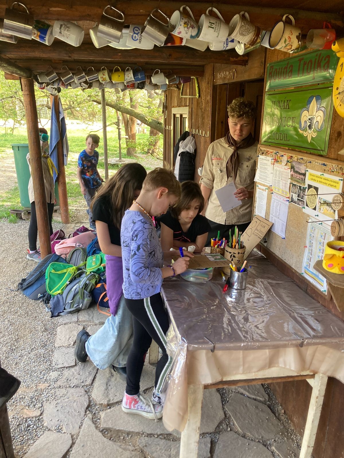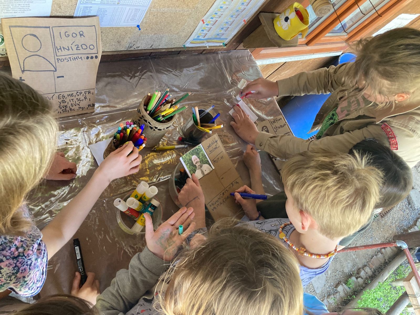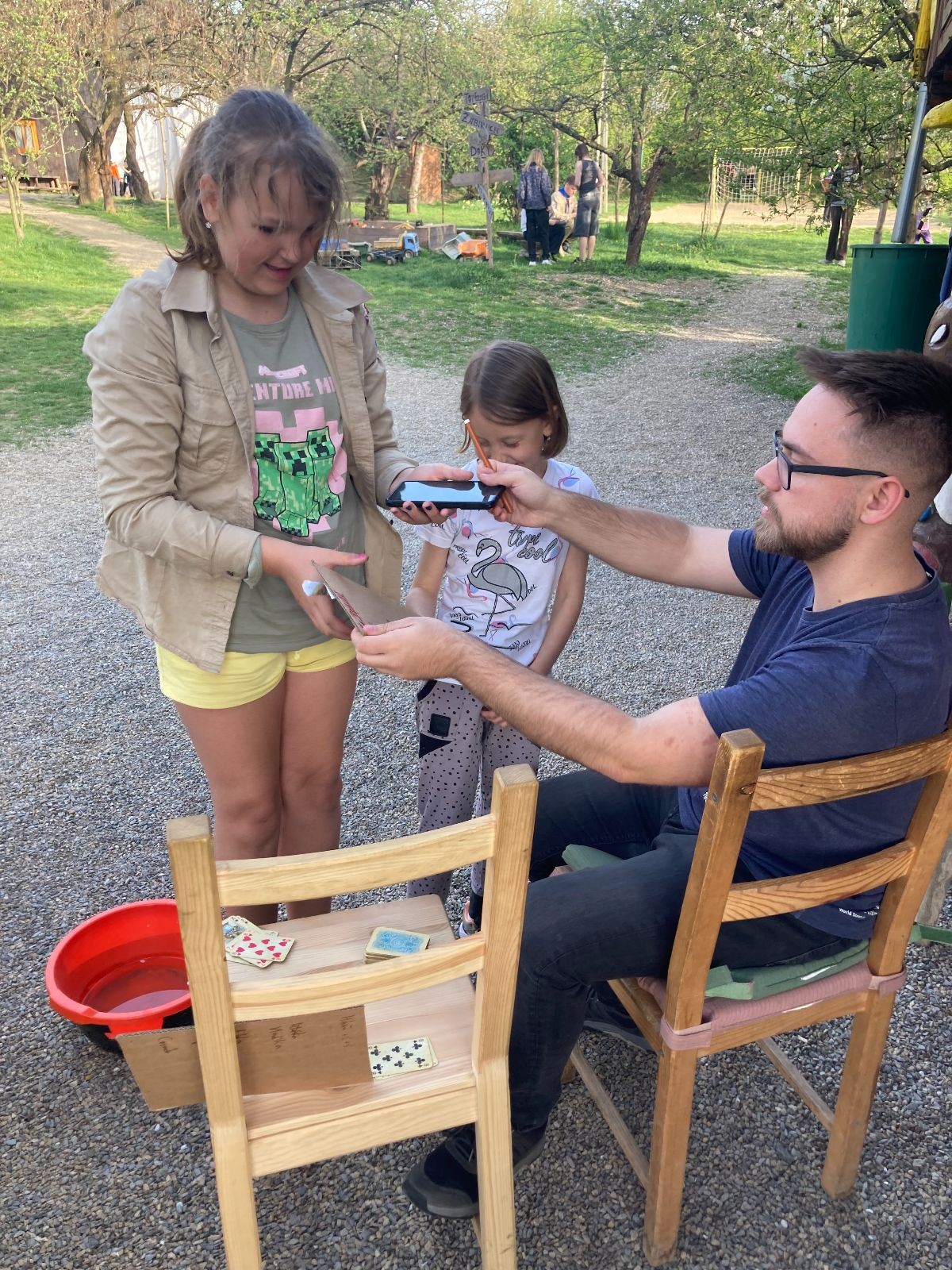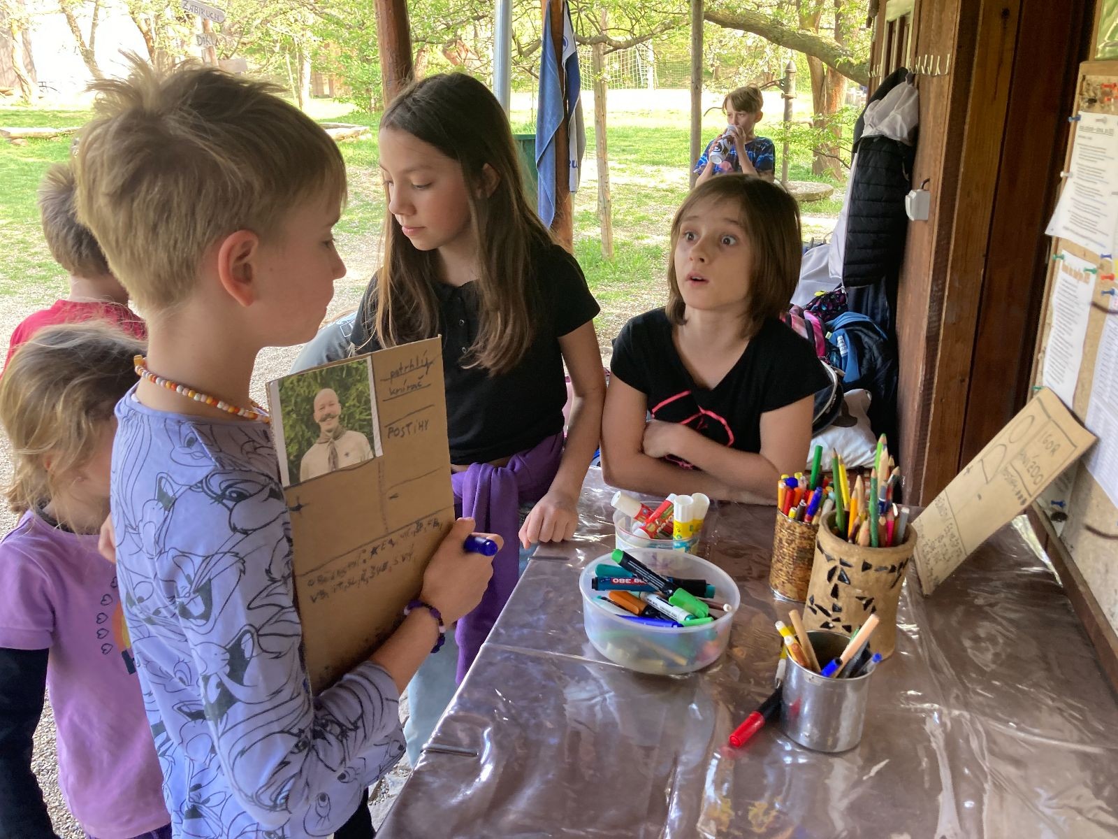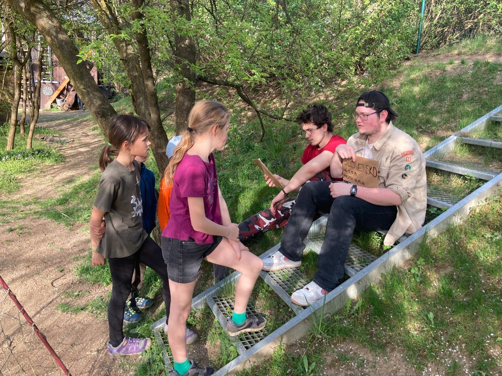 Poté co děti přišli rozdělili jsme si je do týmů ve kterých poté budou hrát velkou hru, nejdříve jsme si je ale rozdělili na mladší a starší. Mladší se s Kládou vydali pracovat na výzdobě svého člověka za kterého budou v následující hře hrát a starší si mezitím zahráli hru na znalost českého jazyka. To by ale musel ten, kdo ji vymýšlel, nejdřív znát český pravopis sám. :/