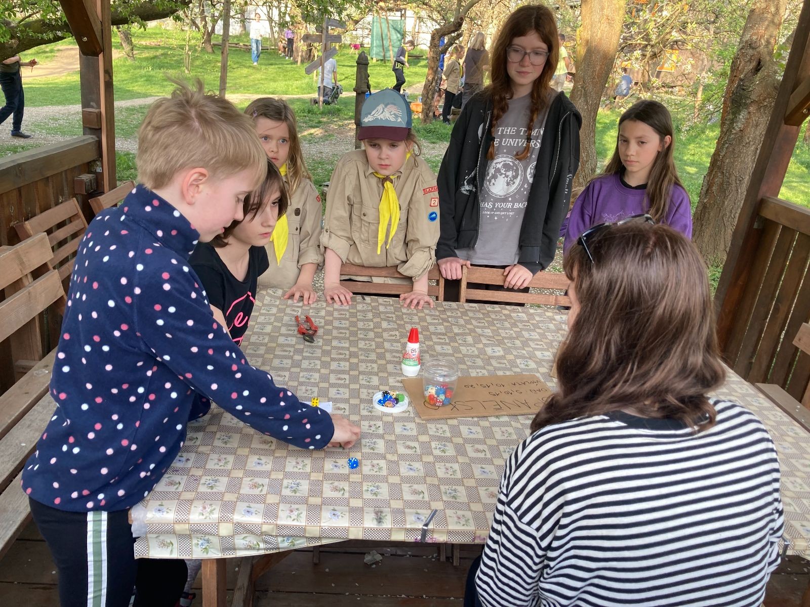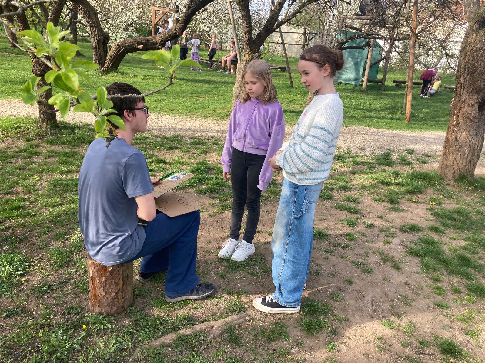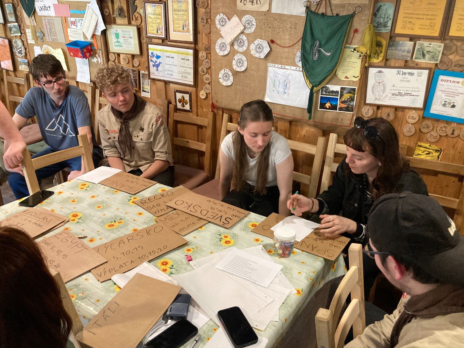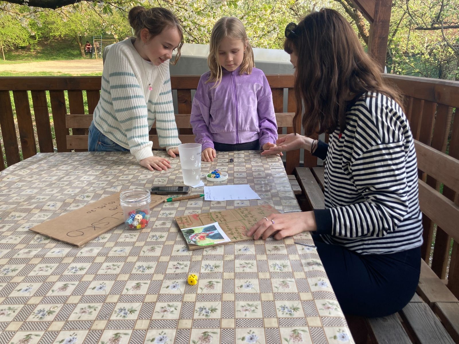 Poté co děti přišli rozdělili jsme si je do týmů ve kterých poté budou hrát velkou hru, nejdříve jsme si je ale rozdělili na mladší a starší. Mladší se s Kládou vydali pracovat na výzdobě svého člověka za kterého budou v následující hře hrát a starší si mezitím zahráli hru na znalost českého jazyka. To by ale musel ten, kdo ji vymýšlel, nejdřív znát český pravopis sám. :/