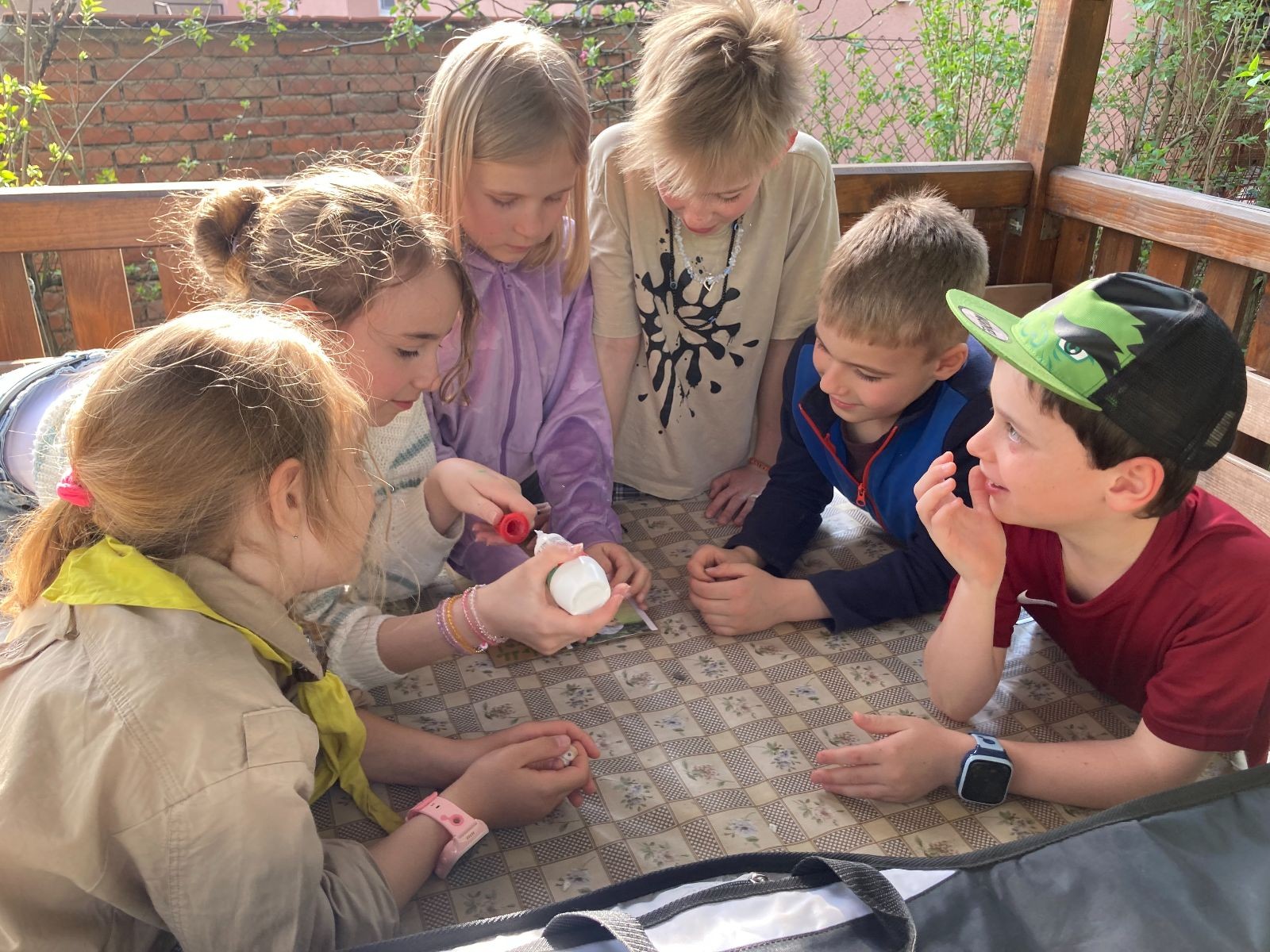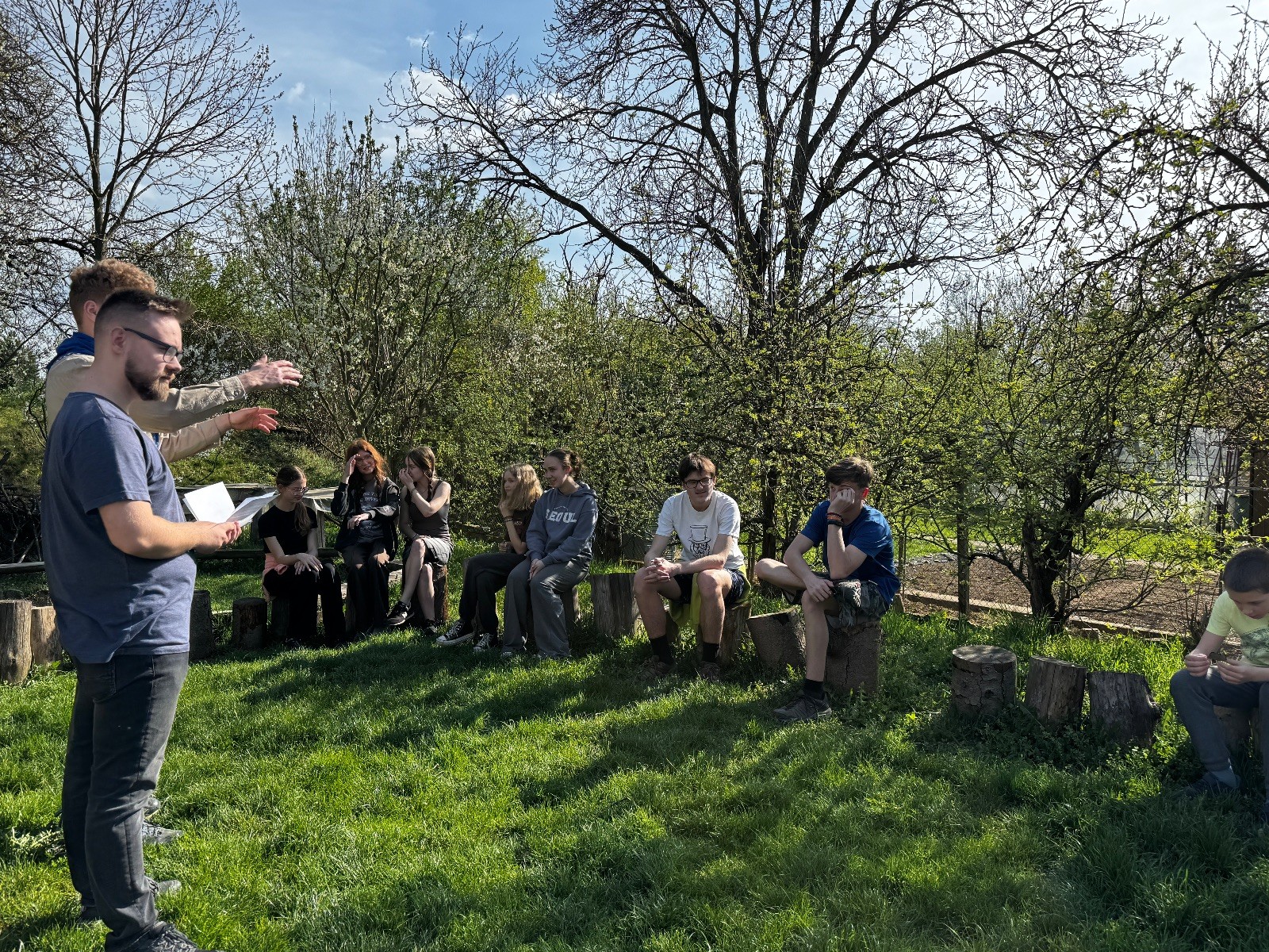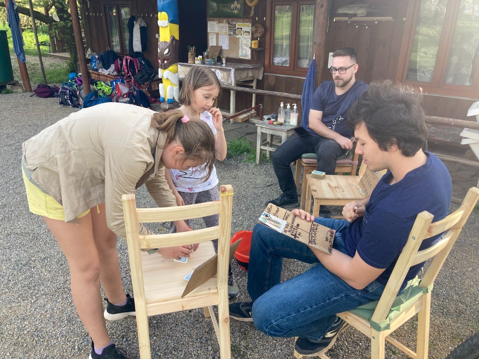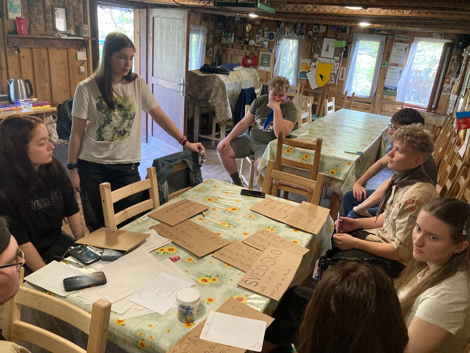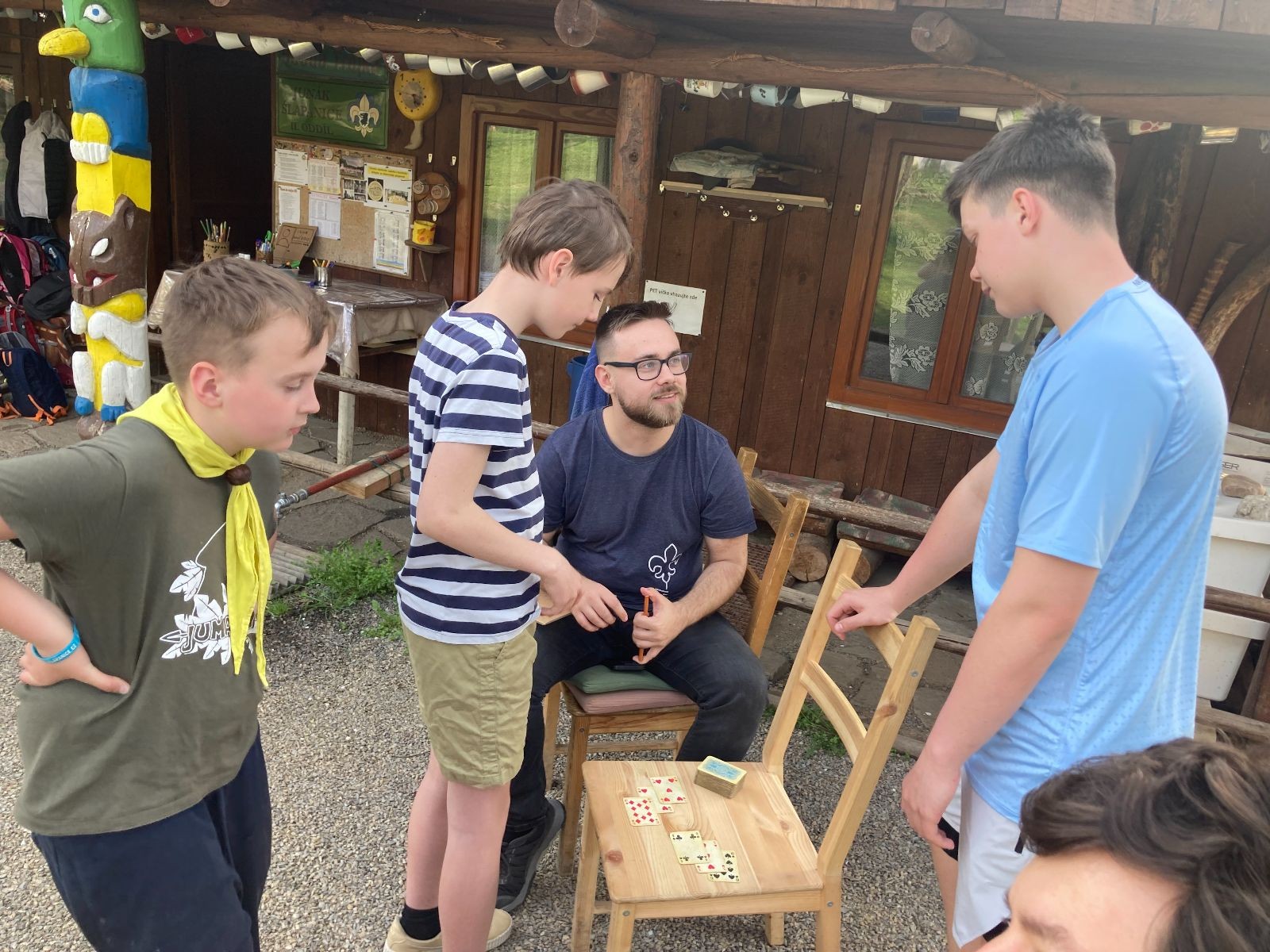 Poté co děti přišli rozdělili jsme si je do týmů ve kterých poté budou hrát velkou hru, nejdříve jsme si je ale rozdělili na mladší a starší. Mladší se s Kládou vydali pracovat na výzdobě svého člověka za kterého budou v následující hře hrát a starší si mezitím zahráli hru na znalost českého jazyka. To by ale musel ten, kdo ji vymýšlel, nejdřív znát český pravopis sám. :/