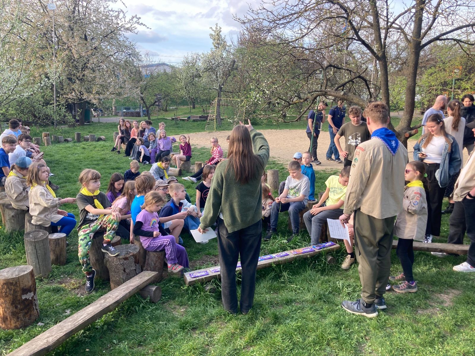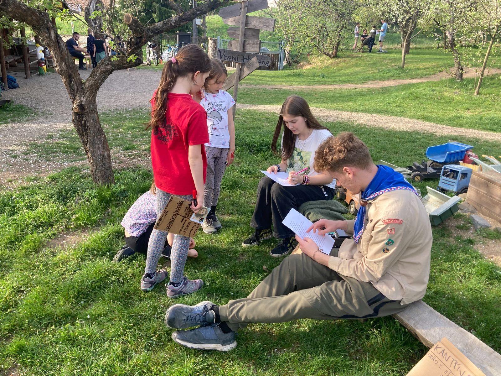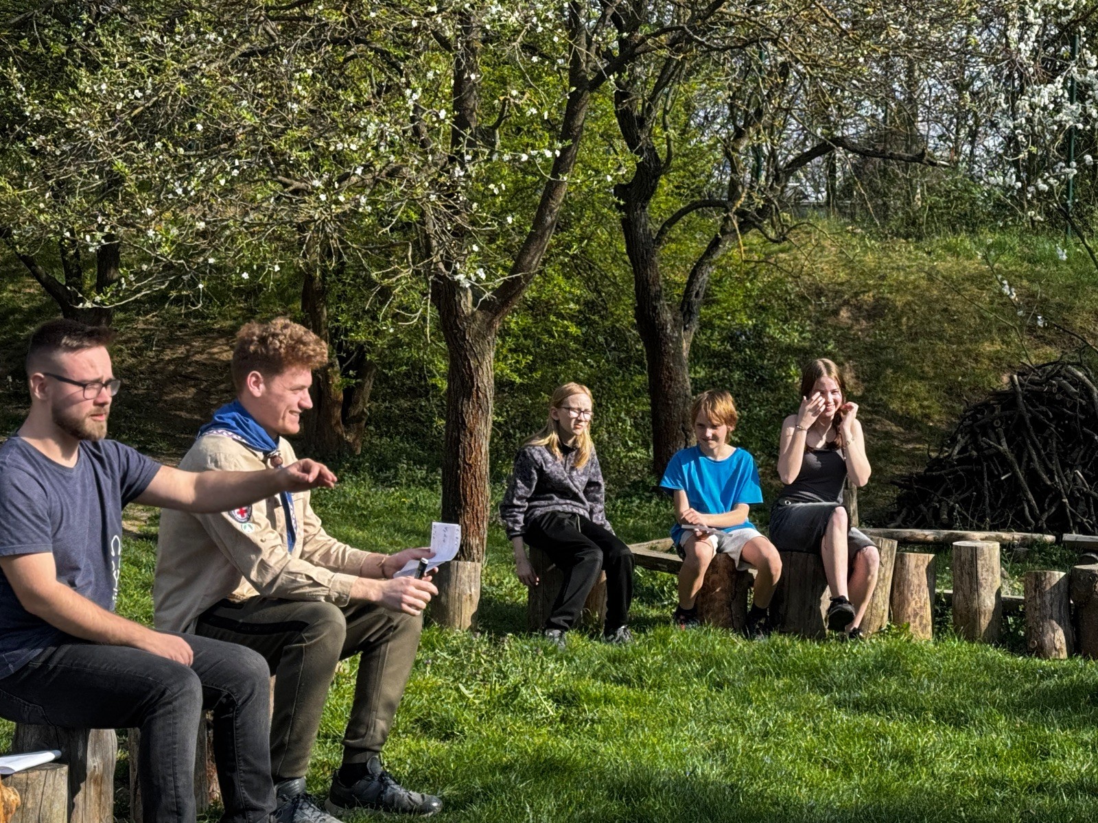 V pondělí 14.4. jsme se sešli na boudě na letošní pondělní oddílové schůzce. Na starost ji tedy měli pondělní vedoucí a taky to podle toho vypadalo. :D Vzhledem k opravdu pěknému počasí jsme měli velkou účast.