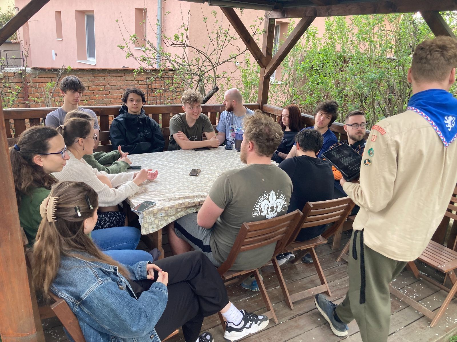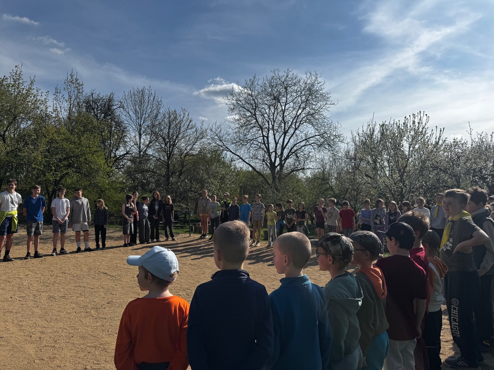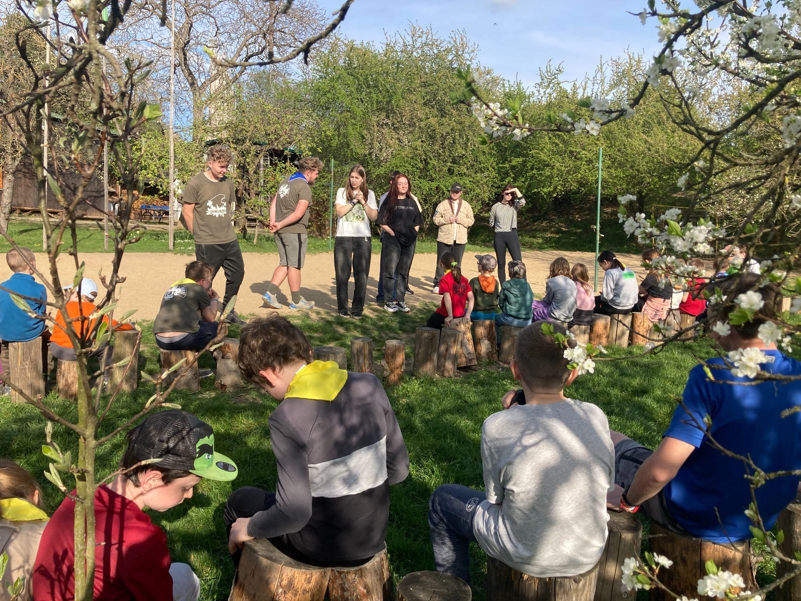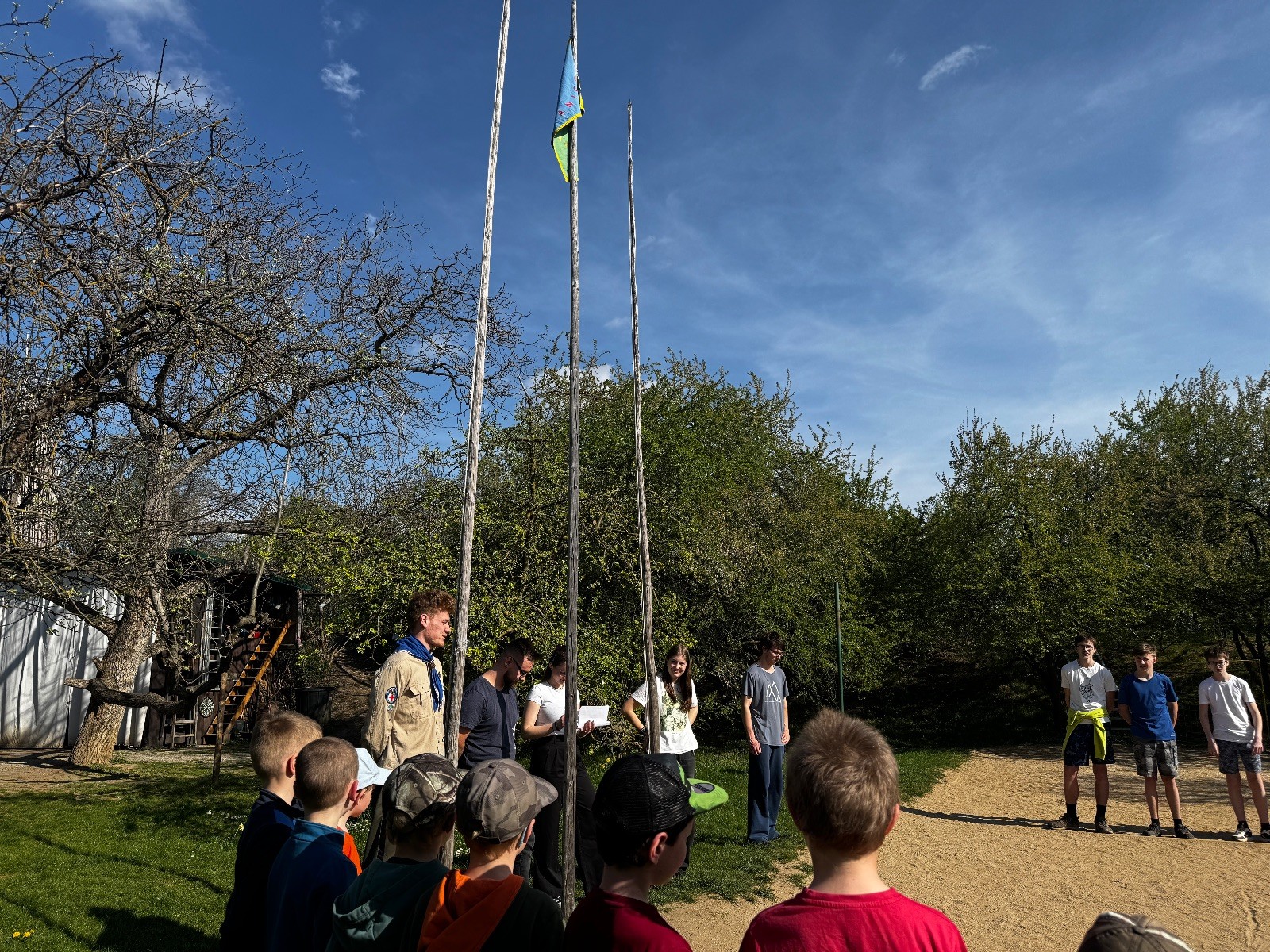 V pondělí 14.4. jsme se sešli na boudě na letošní pondělní oddílové schůzce. Na starost ji tedy měli pondělní vedoucí a taky to podle toho vypadalo. :D Vzhledem k opravdu pěknému počasí jsme měli velkou účast.