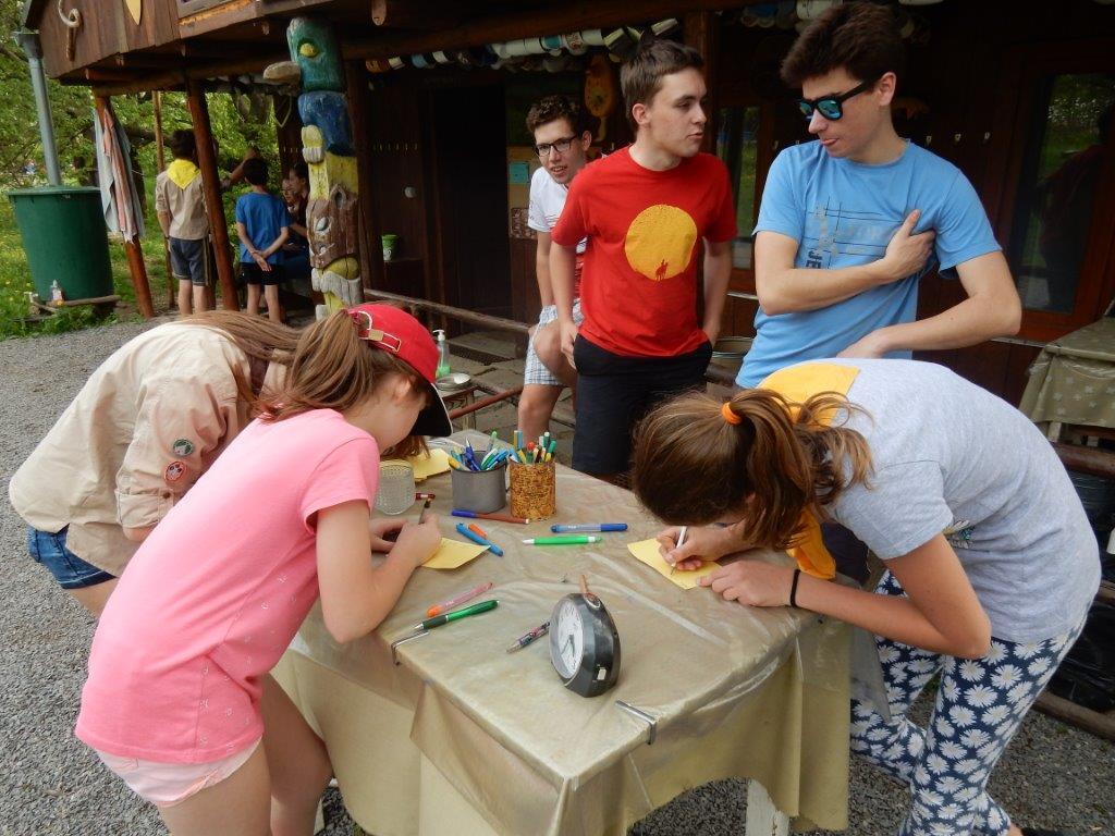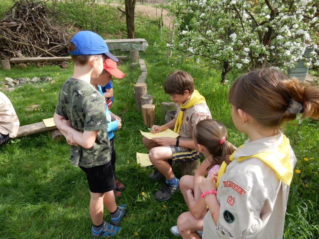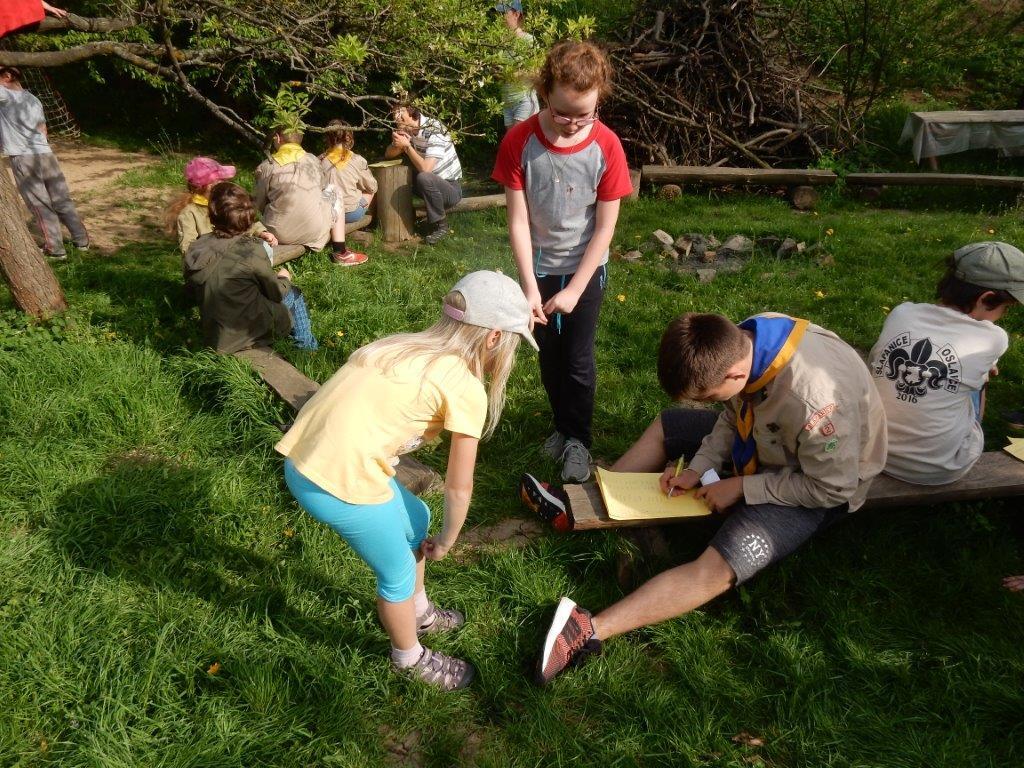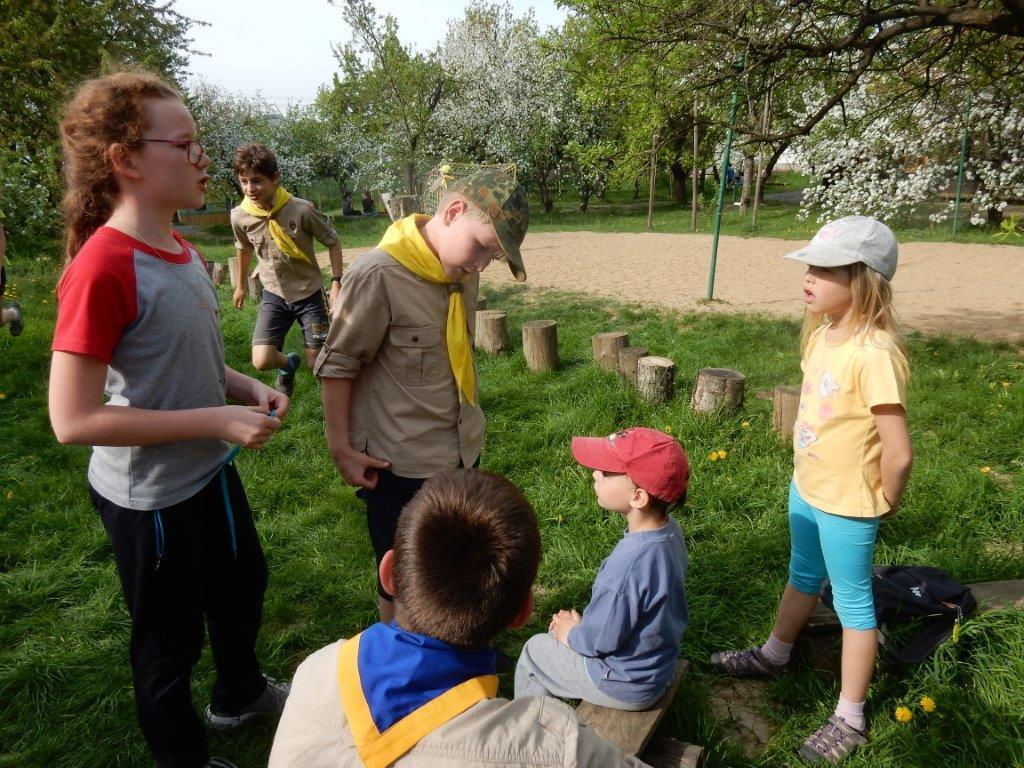 Dne 24.4., tedy v úterý jsme se sešli na dubnové oddílovce. Sešlo se nás asi 40 dětí plus pár vedoucích. Hned na začátku byly děti rozděleny do týmů, ve kterých se společně snažily odletět z letiště. To jim však komplikovala nefunkční odletová cedule, proto si informace musely sehnat samy. Zkrátka a dobře, vypukl chaos jako na opravdovém letišti a trvalo okolo hodiny a půl, než zase ustal. Po vyhlášení výsledků následovalo vyhlášení soutěže Vyznáte se? a k tomu ještě jedné otázky ohledně sv. Jiří, který je mimo jiné patronem skautů. A to už bylo 18:00 a děti se začaly rozcházet domů… Kosťa