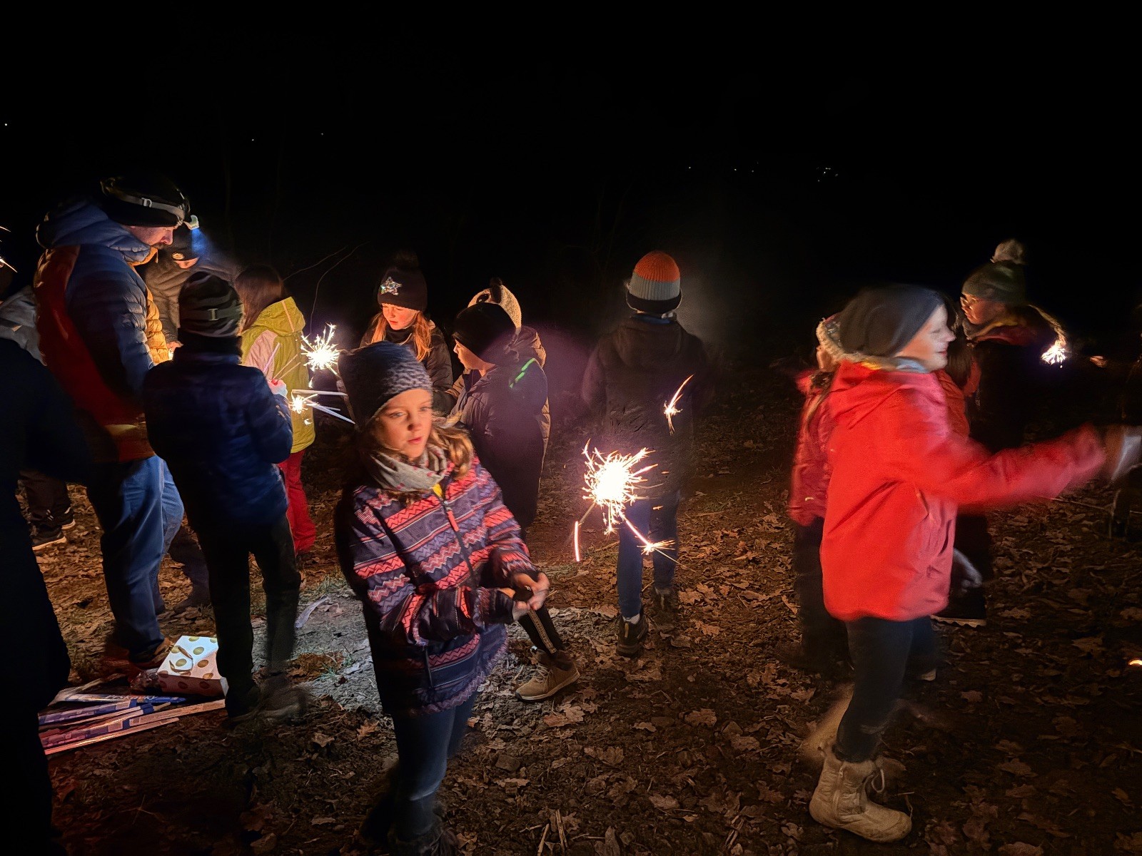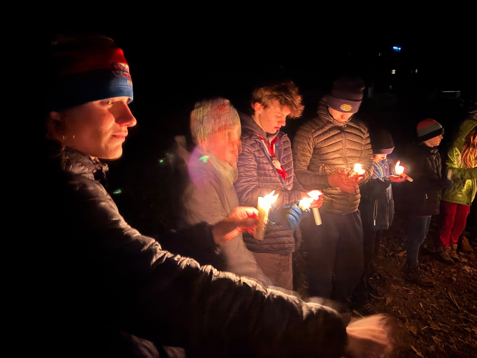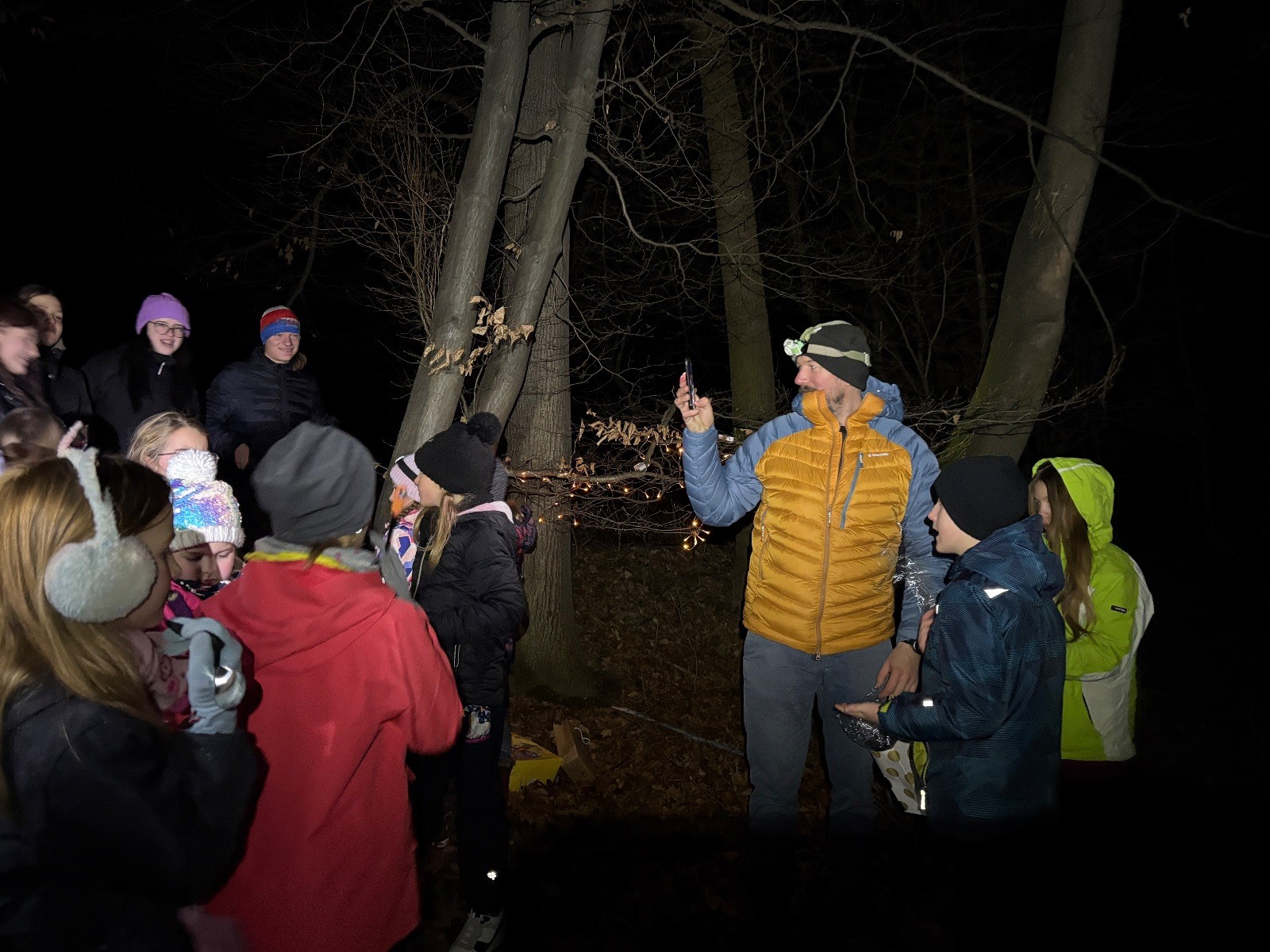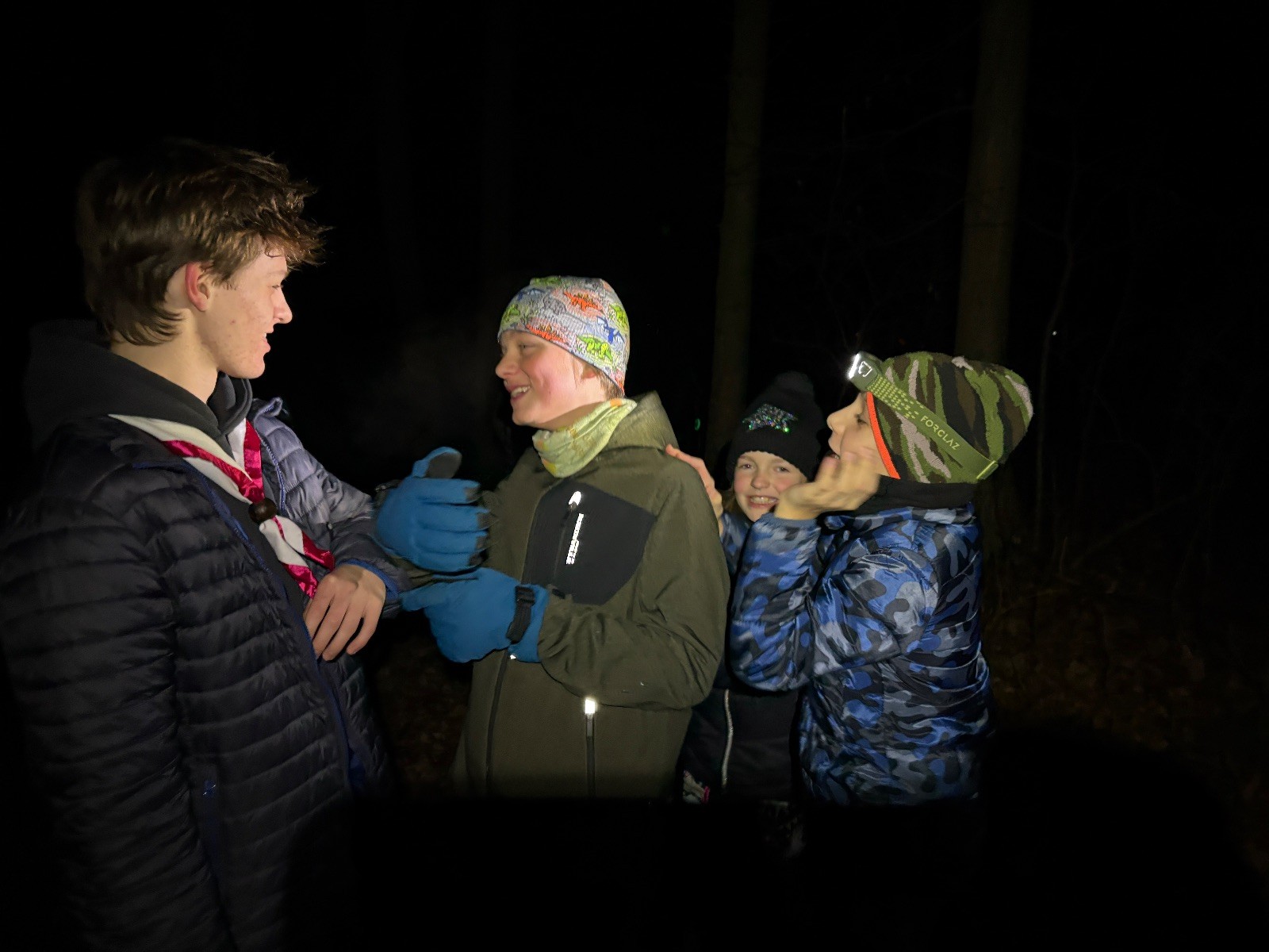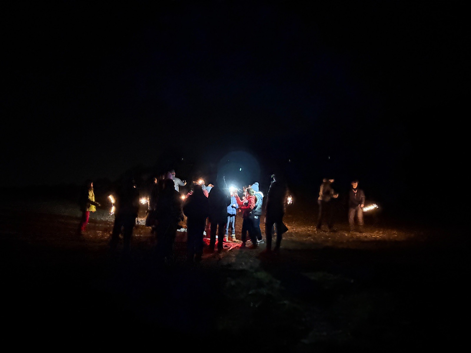 Okolo 17. hodiny se začínají slízat i ostatní členové družin. Setkáváme se v hojném počtu. Tak hojném, že bylo nad mé síly spočítat, kolik nás to vlastně bylo. I s vedoucími nás mohlo být přes 30, což je fajn účast. Mj. koukám i na svůj loňský zápis a zjišťuji, že jsem měl problém všechny sečíst i loni. Ne že bych měl problém se součty nad 30, ale vězte, že při stanovení počtu neustále se hemžící bandy skautů si nevystačíte s běžnou aritmetikou – tohle je spíš záležitost kvantové fyziky. Na rozjezd dáváme sfoukávanou. Docela to odsejpá, protože poměrně brzy zhasínají i ohnivci, kteří jako jediní mají pravomoc ostatním spoluhráčům odpalovat sfouknuté svíčky. Konečné skóre je 2:1 pro červené, kteří poslední kolo vyhrávají se slušnou přesilou. Pak se jdeme vyhřát do vytopené myslivny, kde nás čeká i cukroví od rodičů, babiček, dědečků a všech těch, co pečou. Obzvlášť velký dík patří paní Tončové, která nám tradičně poslala nálož skvělého medovníku s ořechy (OK, nevím, jestli to byl medovník, ale ořechy tam byly určitě a je to sakramentsky dobrý). A taky nevím, jestli je to tradice, ale rádi bychom z toho tradici udělali (mrk, mrk 🙂). Vyhlašujeme top účast a bodování, rozdáváme diplomy a ceny. Pak na sebe hážeme teplé oblečení a po světýlkách jdeme k vánočnímu stromku, kde každého člena čeká nějaký drobný dárek. Na poli zapalujeme prskavky a se svíčkami si dáváme kolečko přání, kde se nám daří být docela zticha, což je vzácný moment hodný zaznamenání. Pak zvedáme kotvy, míříme zpět k myslivně a rozprcháváme se domů.