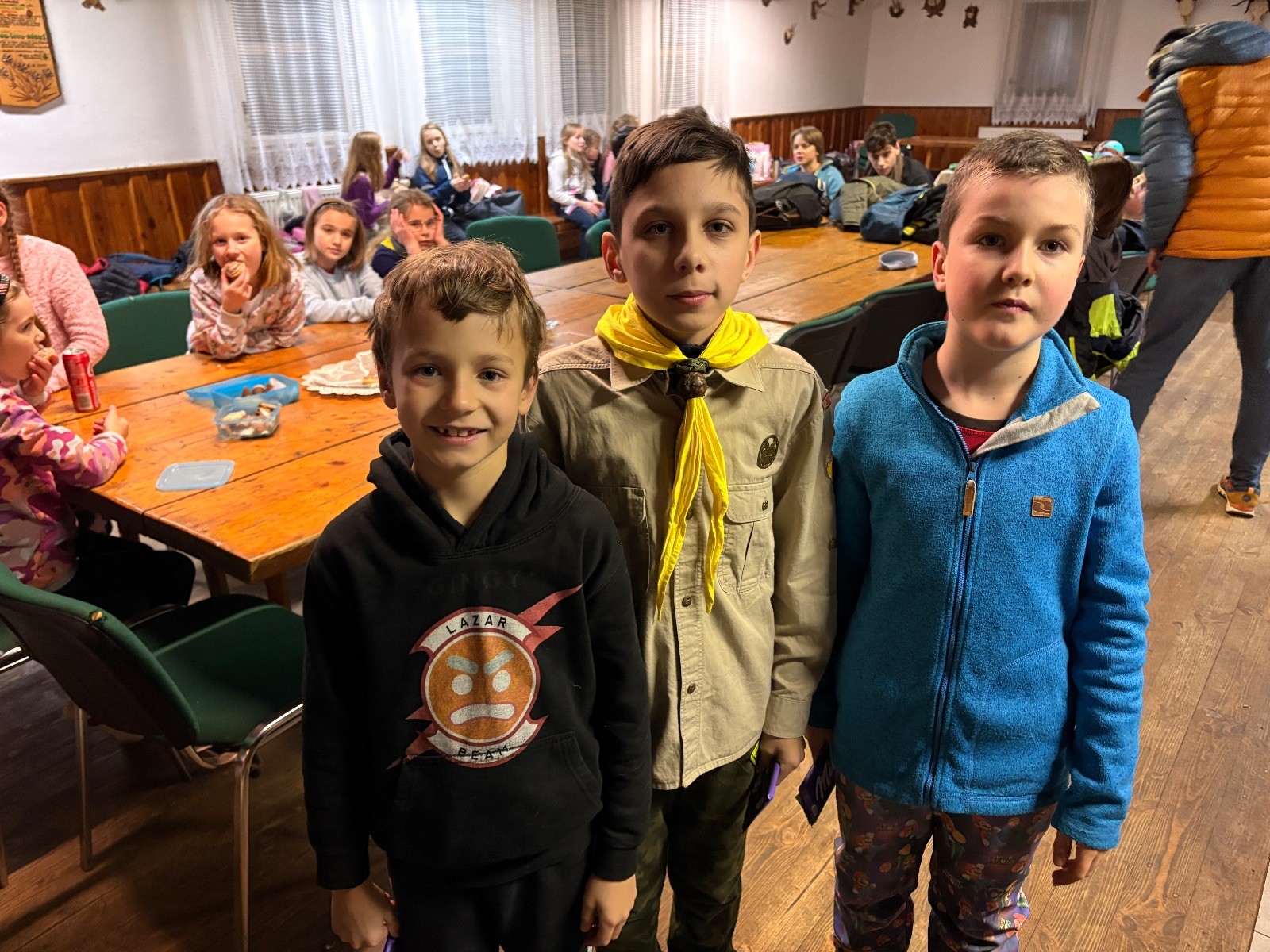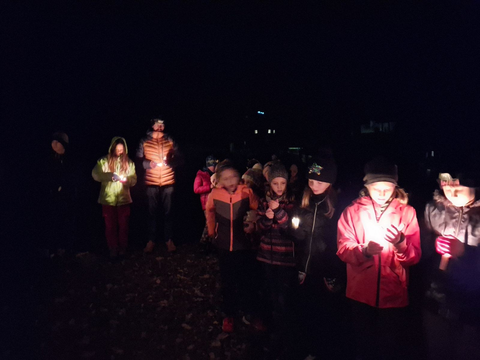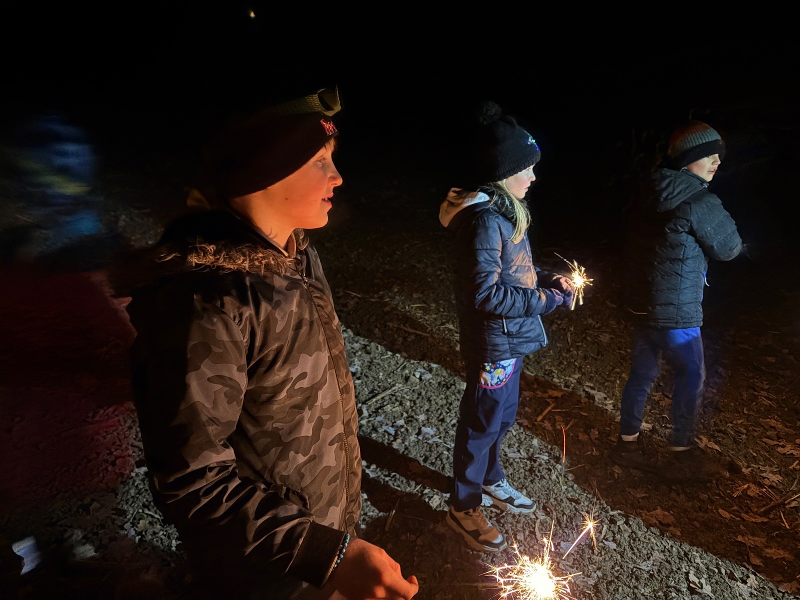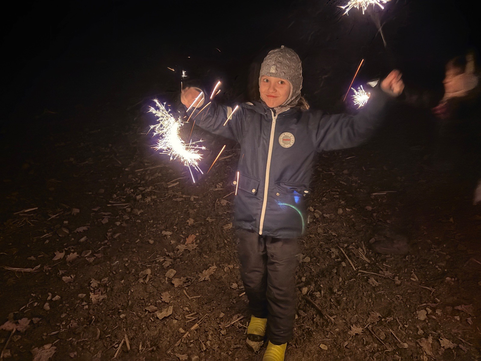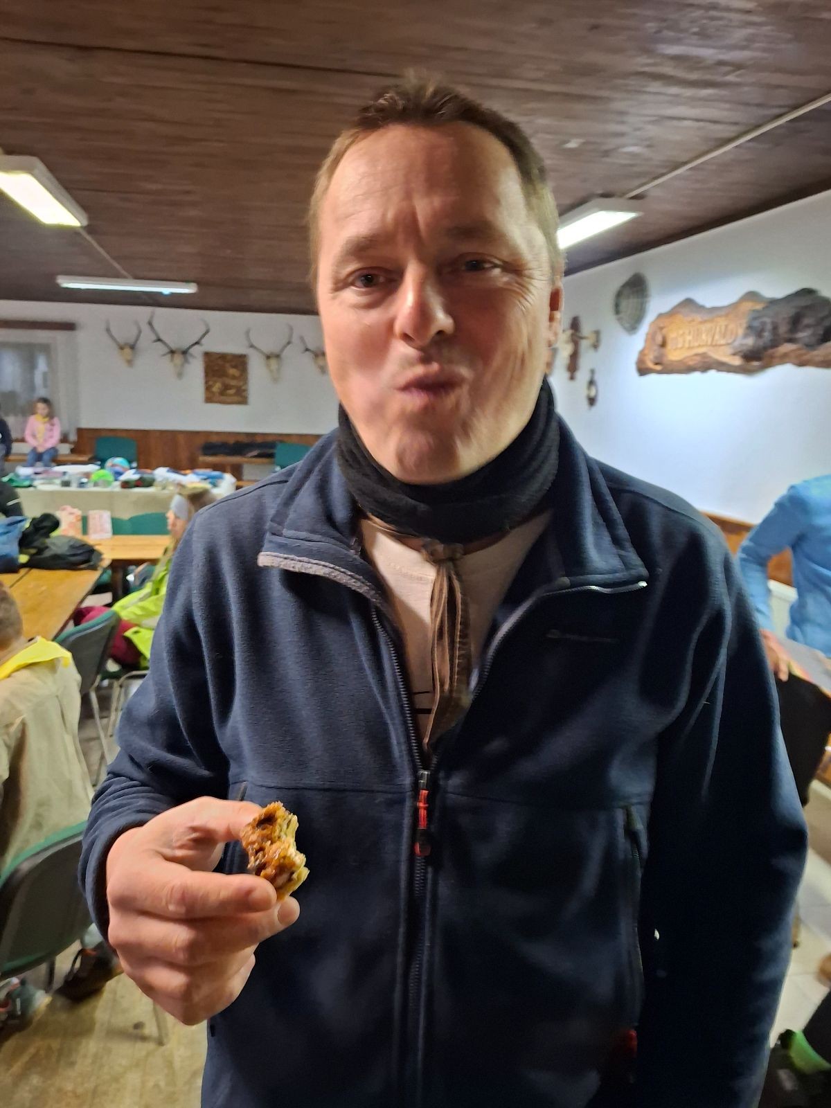 Okolo 17. hodiny se začínají slízat i ostatní členové družin. Setkáváme se v hojném počtu. Tak hojném, že bylo nad mé síly spočítat, kolik nás to vlastně bylo. I s vedoucími nás mohlo být přes 30, což je fajn účast. Mj. koukám i na svůj loňský zápis a zjišťuji, že jsem měl problém všechny sečíst i loni. Ne že bych měl problém se součty nad 30, ale vězte, že při stanovení počtu neustále se hemžící bandy skautů si nevystačíte s běžnou aritmetikou – tohle je spíš záležitost kvantové fyziky. Na rozjezd dáváme sfoukávanou. Docela to odsejpá, protože poměrně brzy zhasínají i ohnivci, kteří jako jediní mají pravomoc ostatním spoluhráčům odpalovat sfouknuté svíčky. Konečné skóre je 2:1 pro červené, kteří poslední kolo vyhrávají se slušnou přesilou. Pak se jdeme vyhřát do vytopené myslivny, kde nás čeká i cukroví od rodičů, babiček, dědečků a všech těch, co pečou. Obzvlášť velký dík patří paní Tončové, která nám tradičně poslala nálož skvělého medovníku s ořechy (OK, nevím, jestli to byl medovník, ale ořechy tam byly určitě a je to sakramentsky dobrý). A taky nevím, jestli je to tradice, ale rádi bychom z toho tradici udělali (mrk, mrk 🙂). Vyhlašujeme top účast a bodování, rozdáváme diplomy a ceny. Pak na sebe hážeme teplé oblečení a po světýlkách jdeme k vánočnímu stromku, kde každého člena čeká nějaký drobný dárek. Na poli zapalujeme prskavky a se svíčkami si dáváme kolečko přání, kde se nám daří být docela zticha, což je vzácný moment hodný zaznamenání. Pak zvedáme kotvy, míříme zpět k myslivně a rozprcháváme se domů.
