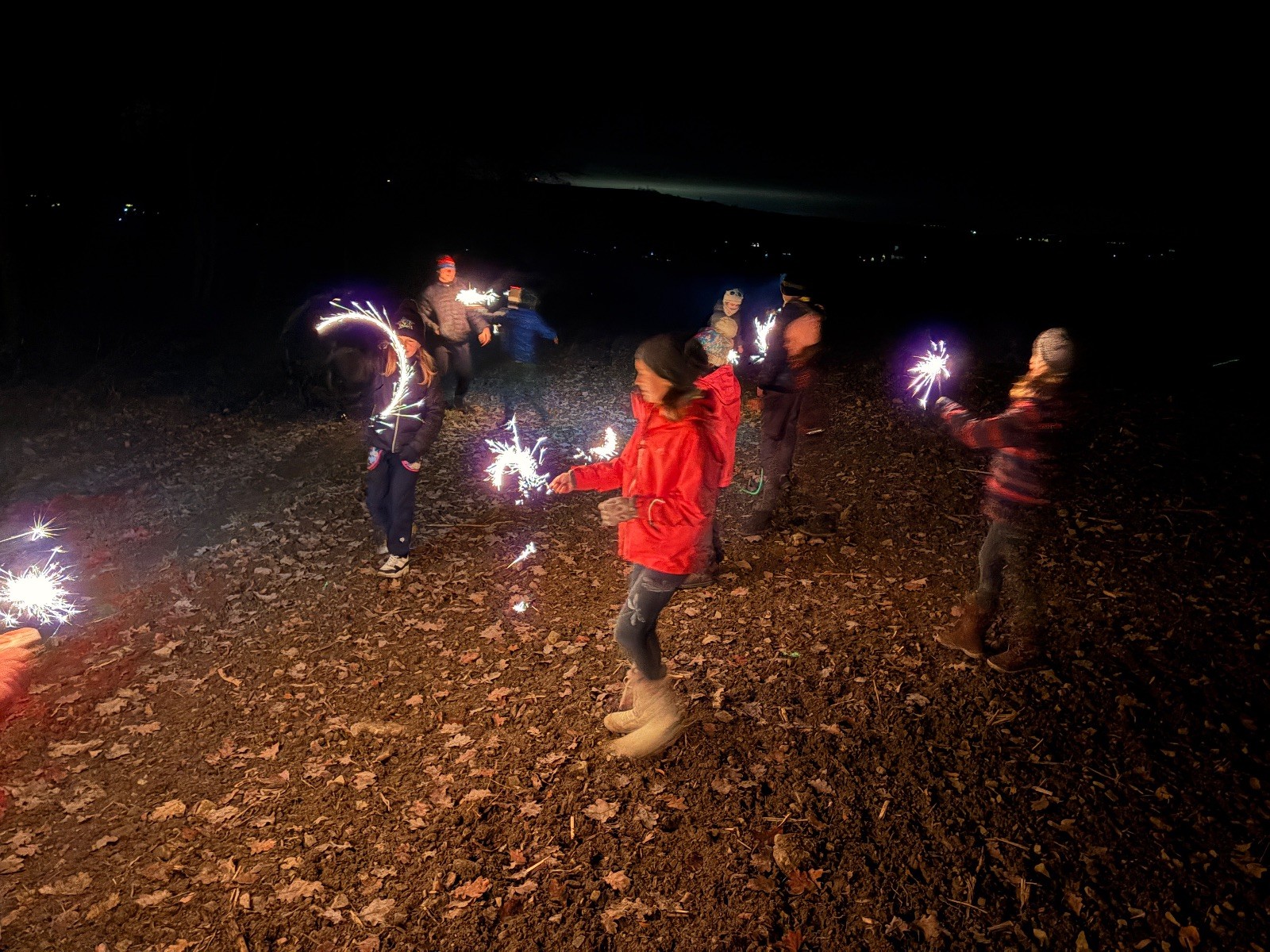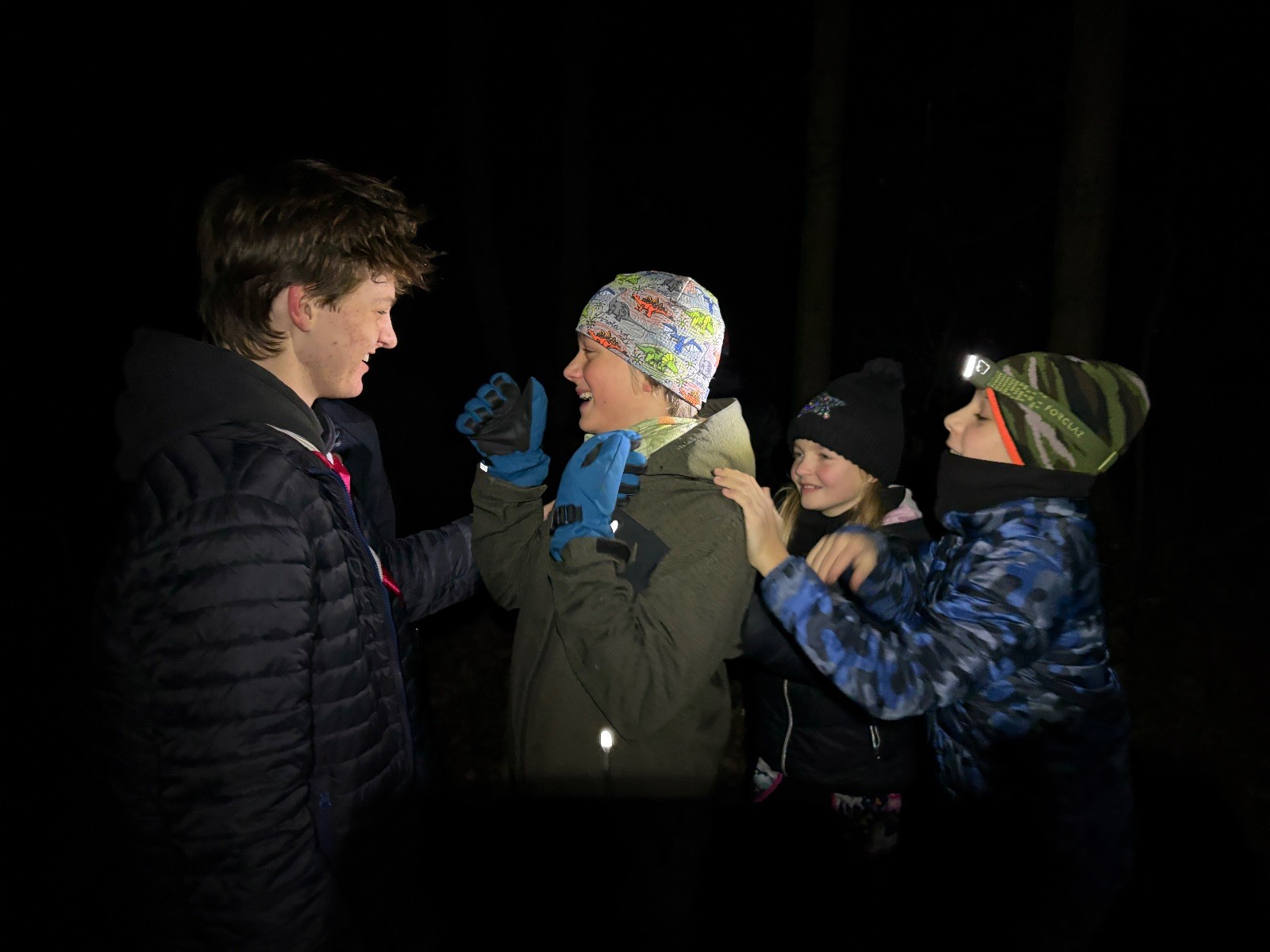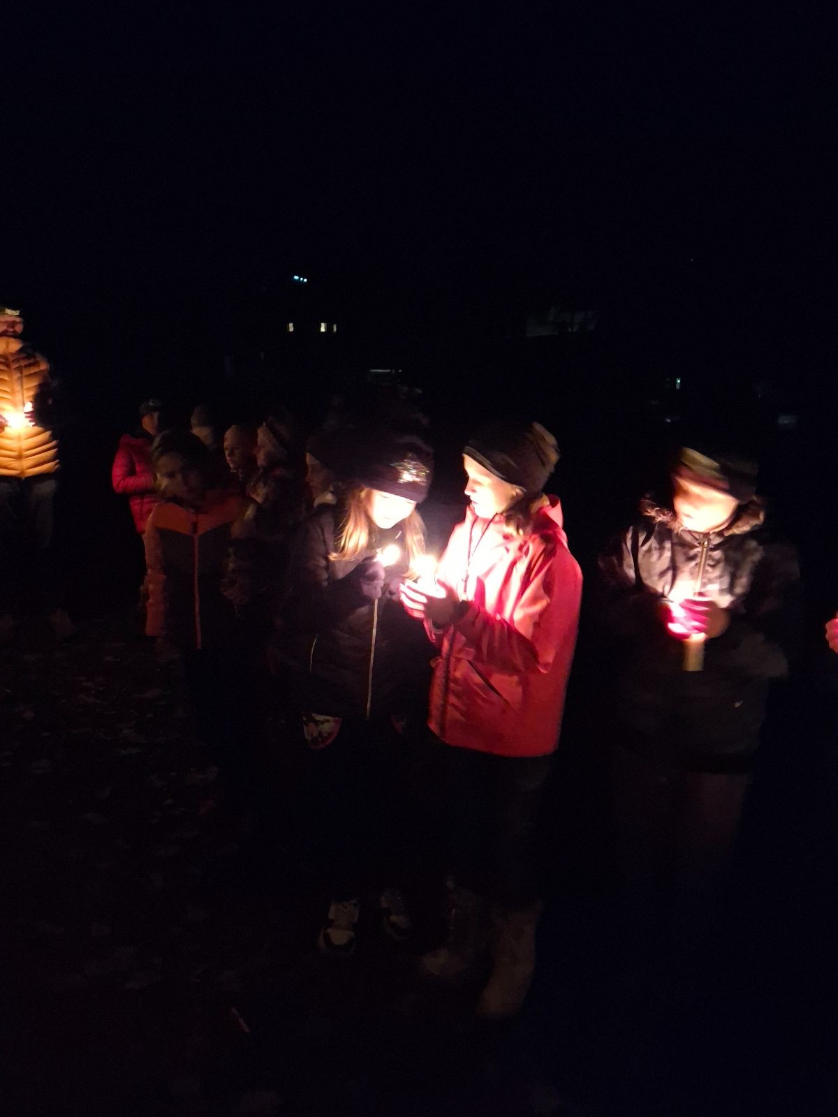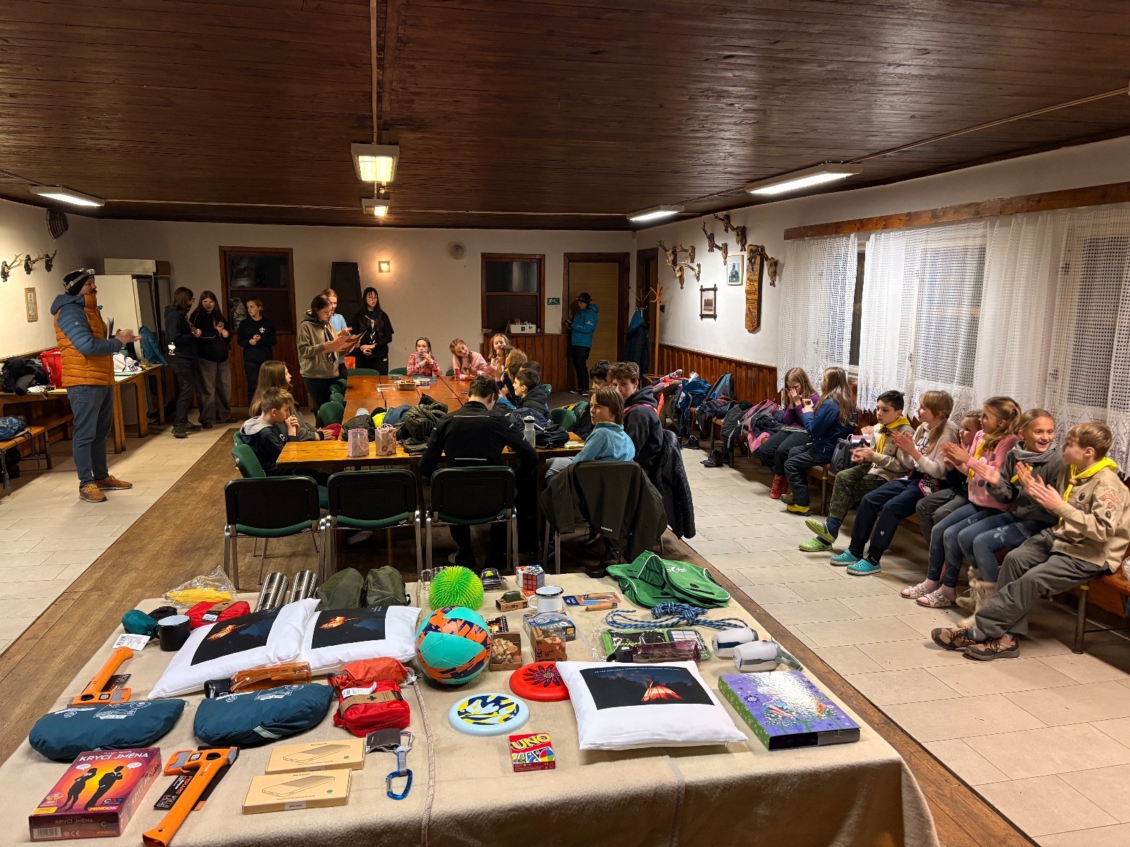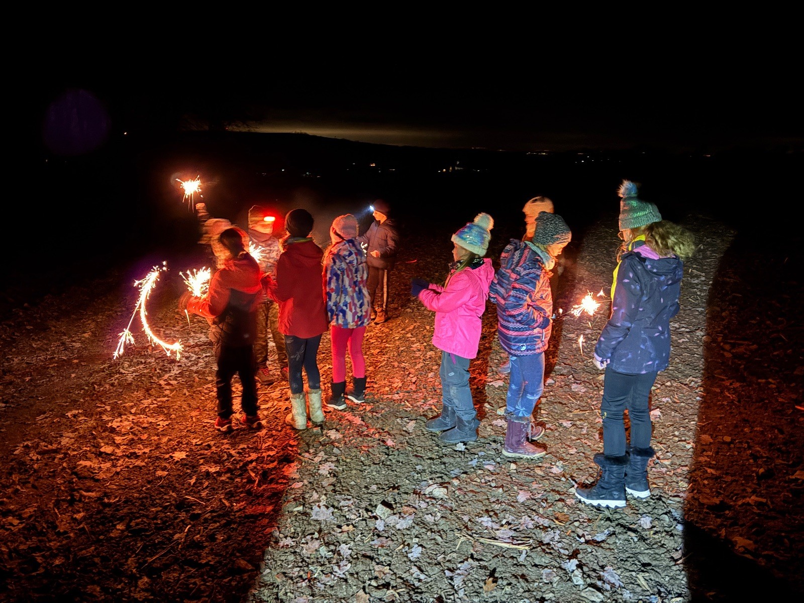 Okolo 17. hodiny se začínají slízat i ostatní členové družin. Setkáváme se v hojném počtu. Tak hojném, že bylo nad mé síly spočítat, kolik nás to vlastně bylo. I s vedoucími nás mohlo být přes 30, což je fajn účast. Mj. koukám i na svůj loňský zápis a zjišťuji, že jsem měl problém všechny sečíst i loni. Ne že bych měl problém se součty nad 30, ale vězte, že při stanovení počtu neustále se hemžící bandy skautů si nevystačíte s běžnou aritmetikou – tohle je spíš záležitost kvantové fyziky. Na rozjezd dáváme sfoukávanou. Docela to odsejpá, protože poměrně brzy zhasínají i ohnivci, kteří jako jediní mají pravomoc ostatním spoluhráčům odpalovat sfouknuté svíčky. Konečné skóre je 2:1 pro červené, kteří poslední kolo vyhrávají se slušnou přesilou. Pak se jdeme vyhřát do vytopené myslivny, kde nás čeká i cukroví od rodičů, babiček, dědečků a všech těch, co pečou. Obzvlášť velký dík patří paní Tončové, která nám tradičně poslala nálož skvělého medovníku s ořechy (OK, nevím, jestli to byl medovník, ale ořechy tam byly určitě a je to sakramentsky dobrý). A taky nevím, jestli je to tradice, ale rádi bychom z toho tradici udělali (mrk, mrk 🙂). Vyhlašujeme top účast a bodování, rozdáváme diplomy a ceny. Pak na sebe hážeme teplé oblečení a po světýlkách jdeme k vánočnímu stromku, kde každého člena čeká nějaký drobný dárek. Na poli zapalujeme prskavky a se svíčkami si dáváme kolečko přání, kde se nám daří být docela zticha, což je vzácný moment hodný zaznamenání. Pak zvedáme kotvy, míříme zpět k myslivně a rozprcháváme se domů.