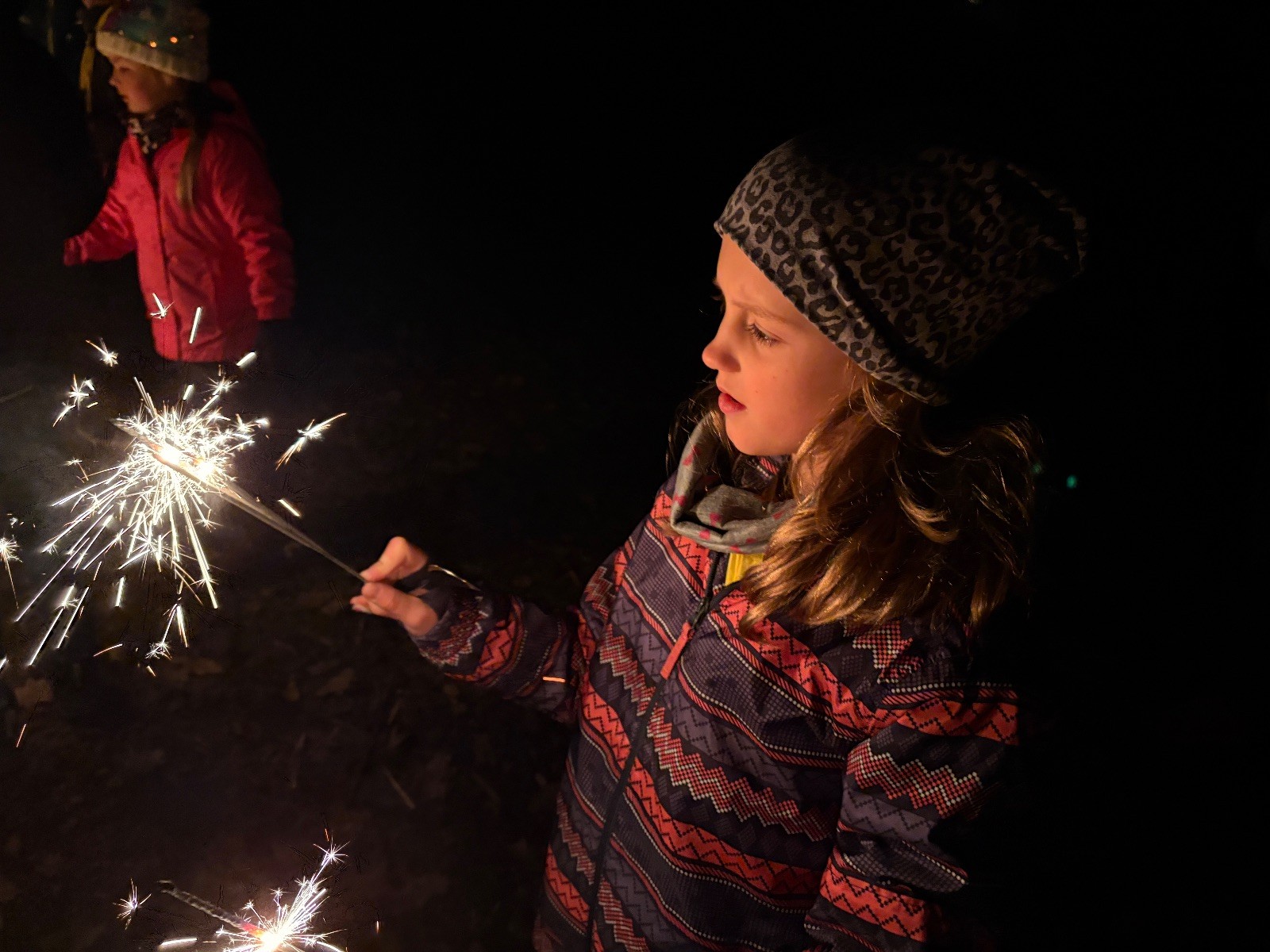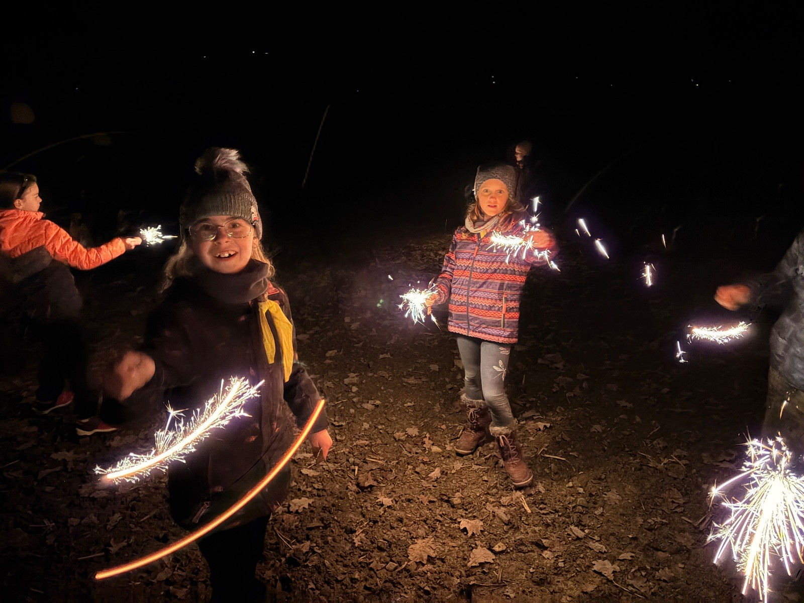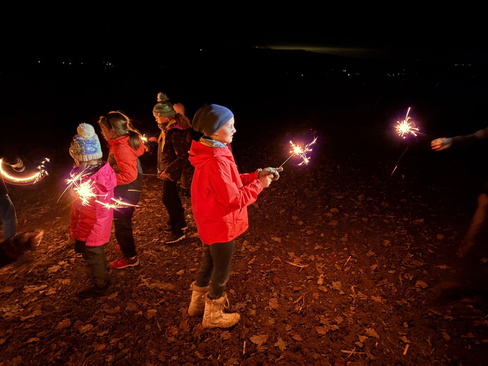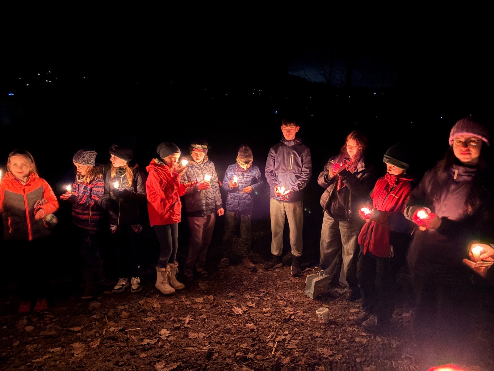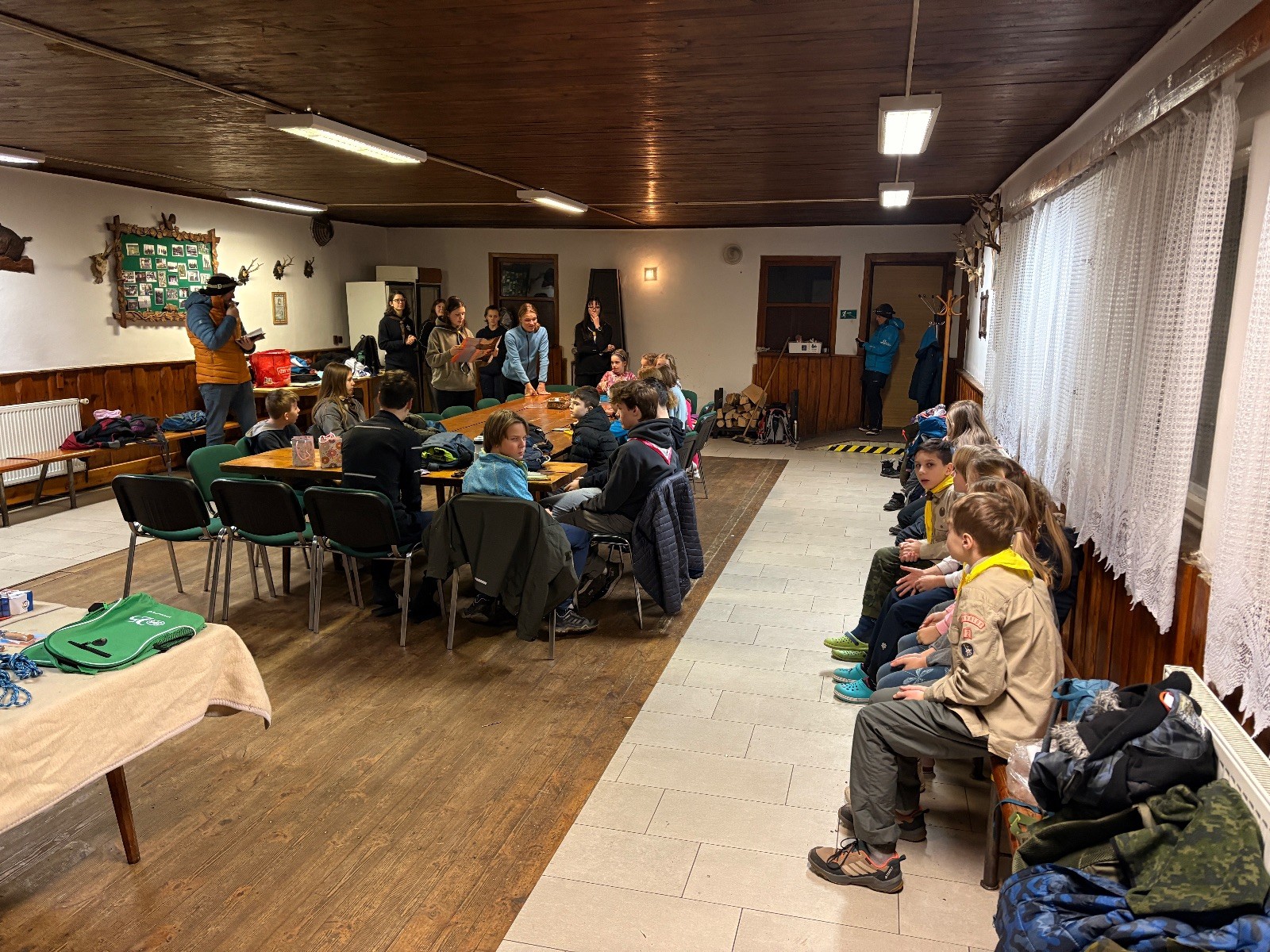 Okolo 17. hodiny se začínají slízat i ostatní členové družin. Setkáváme se v hojném počtu. Tak hojném, že bylo nad mé síly spočítat, kolik nás to vlastně bylo. I s vedoucími nás mohlo být přes 30, což je fajn účast. Mj. koukám i na svůj loňský zápis a zjišťuji, že jsem měl problém všechny sečíst i loni. Ne že bych měl problém se součty nad 30, ale vězte, že při stanovení počtu neustále se hemžící bandy skautů si nevystačíte s běžnou aritmetikou – tohle je spíš záležitost kvantové fyziky. Na rozjezd dáváme sfoukávanou. Docela to odsejpá, protože poměrně brzy zhasínají i ohnivci, kteří jako jediní mají pravomoc ostatním spoluhráčům odpalovat sfouknuté svíčky. Konečné skóre je 2:1 pro červené, kteří poslední kolo vyhrávají se slušnou přesilou. Pak se jdeme vyhřát do vytopené myslivny, kde nás čeká i cukroví od rodičů, babiček, dědečků a všech těch, co pečou. Obzvlášť velký dík patří paní Tončové, která nám tradičně poslala nálož skvělého medovníku s ořechy (OK, nevím, jestli to byl medovník, ale ořechy tam byly určitě a je to sakramentsky dobrý). A taky nevím, jestli je to tradice, ale rádi bychom z toho tradici udělali (mrk, mrk 🙂). Vyhlašujeme top účast a bodování, rozdáváme diplomy a ceny. Pak na sebe hážeme teplé oblečení a po světýlkách jdeme k vánočnímu stromku, kde každého člena čeká nějaký drobný dárek. Na poli zapalujeme prskavky a se svíčkami si dáváme kolečko přání, kde se nám daří být docela zticha, což je vzácný moment hodný zaznamenání. Pak zvedáme kotvy, míříme zpět k myslivně a rozprcháváme se domů.