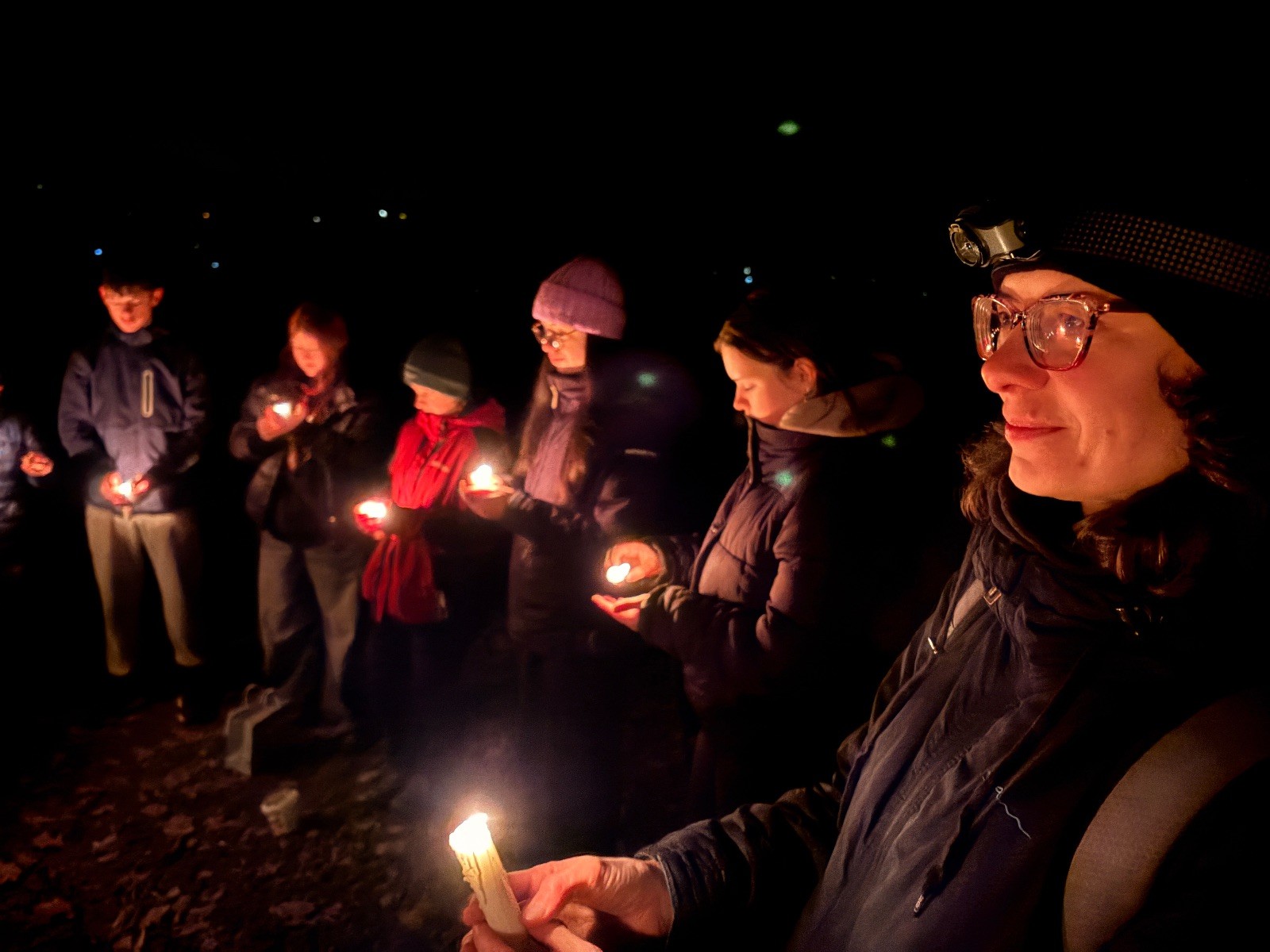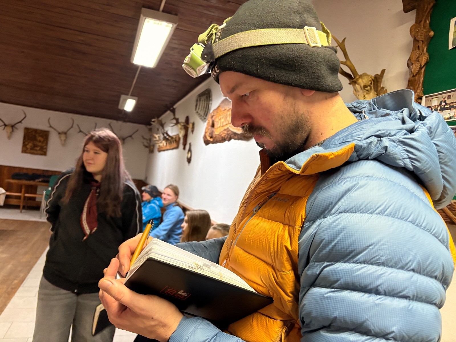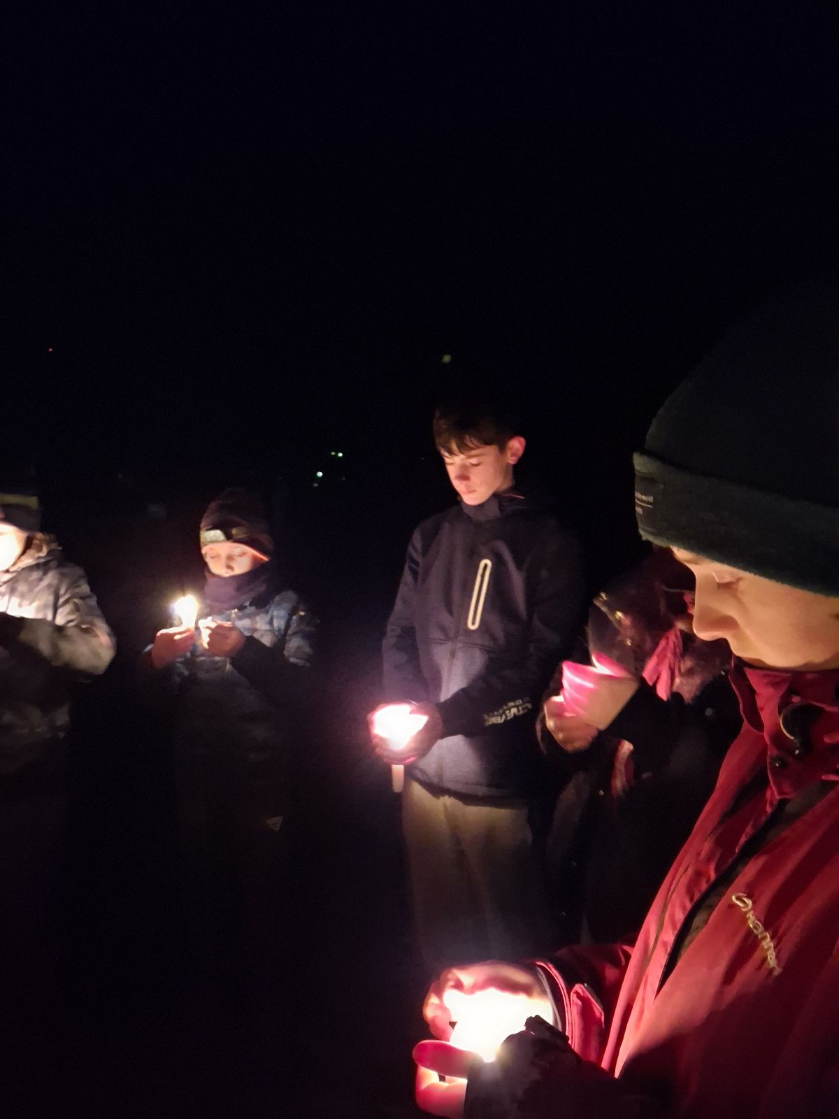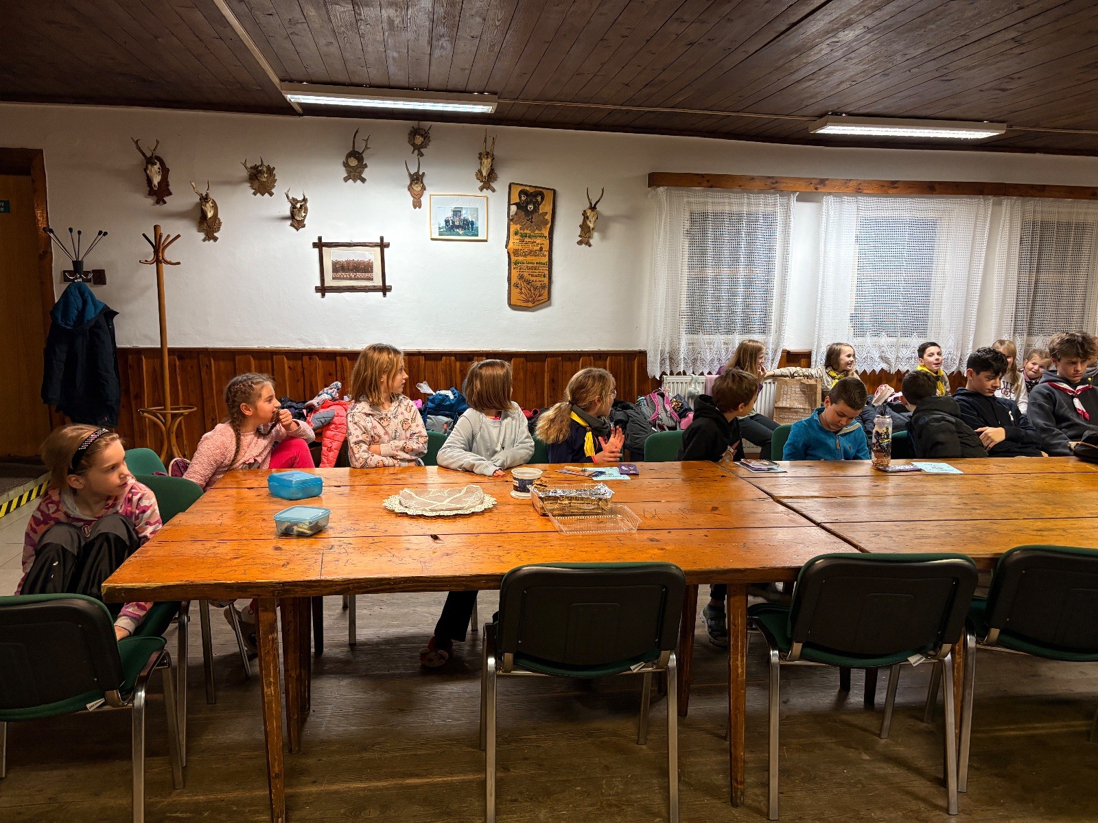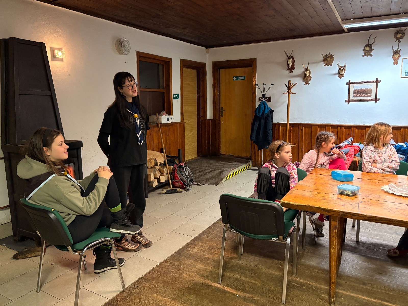 Okolo 17. hodiny se začínají slízat i ostatní členové družin. Setkáváme se v hojném počtu. Tak hojném, že bylo nad mé síly spočítat, kolik nás to vlastně bylo. I s vedoucími nás mohlo být přes 30, což je fajn účast. Mj. koukám i na svůj loňský zápis a zjišťuji, že jsem měl problém všechny sečíst i loni. Ne že bych měl problém se součty nad 30, ale vězte, že při stanovení počtu neustále se hemžící bandy skautů si nevystačíte s běžnou aritmetikou – tohle je spíš záležitost kvantové fyziky. Na rozjezd dáváme sfoukávanou. Docela to odsejpá, protože poměrně brzy zhasínají i ohnivci, kteří jako jediní mají pravomoc ostatním spoluhráčům odpalovat sfouknuté svíčky. Konečné skóre je 2:1 pro červené, kteří poslední kolo vyhrávají se slušnou přesilou. Pak se jdeme vyhřát do vytopené myslivny, kde nás čeká i cukroví od rodičů, babiček, dědečků a všech těch, co pečou. Obzvlášť velký dík patří paní Tončové, která nám tradičně poslala nálož skvělého medovníku s ořechy (OK, nevím, jestli to byl medovník, ale ořechy tam byly určitě a je to sakramentsky dobrý). A taky nevím, jestli je to tradice, ale rádi bychom z toho tradici udělali (mrk, mrk 🙂). Vyhlašujeme top účast a bodování, rozdáváme diplomy a ceny. Pak na sebe hážeme teplé oblečení a po světýlkách jdeme k vánočnímu stromku, kde každého člena čeká nějaký drobný dárek. Na poli zapalujeme prskavky a se svíčkami si dáváme kolečko přání, kde se nám daří být docela zticha, což je vzácný moment hodný zaznamenání. Pak zvedáme kotvy, míříme zpět k myslivně a rozprcháváme se domů.