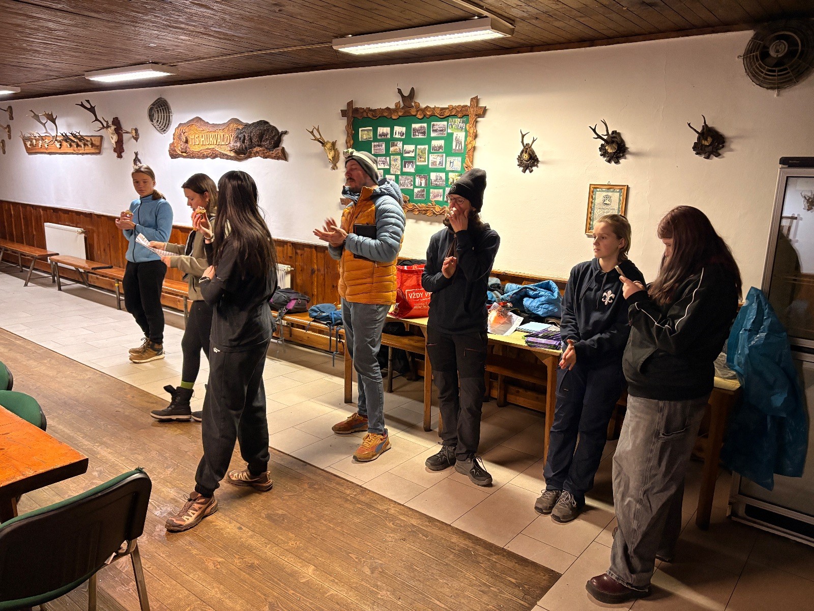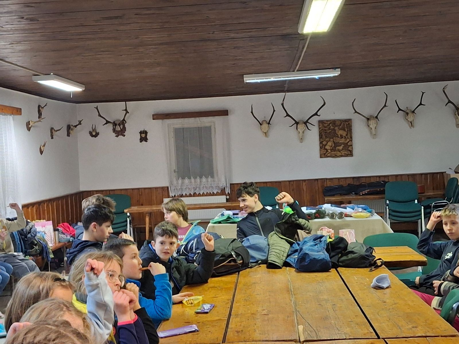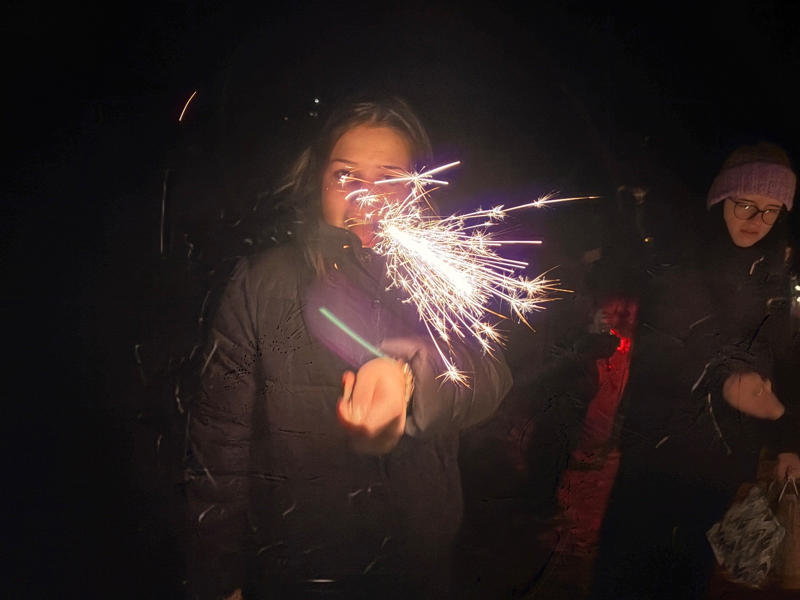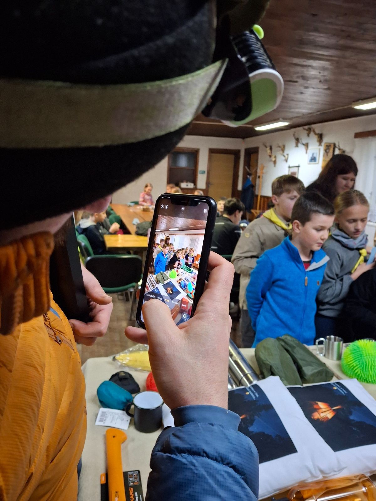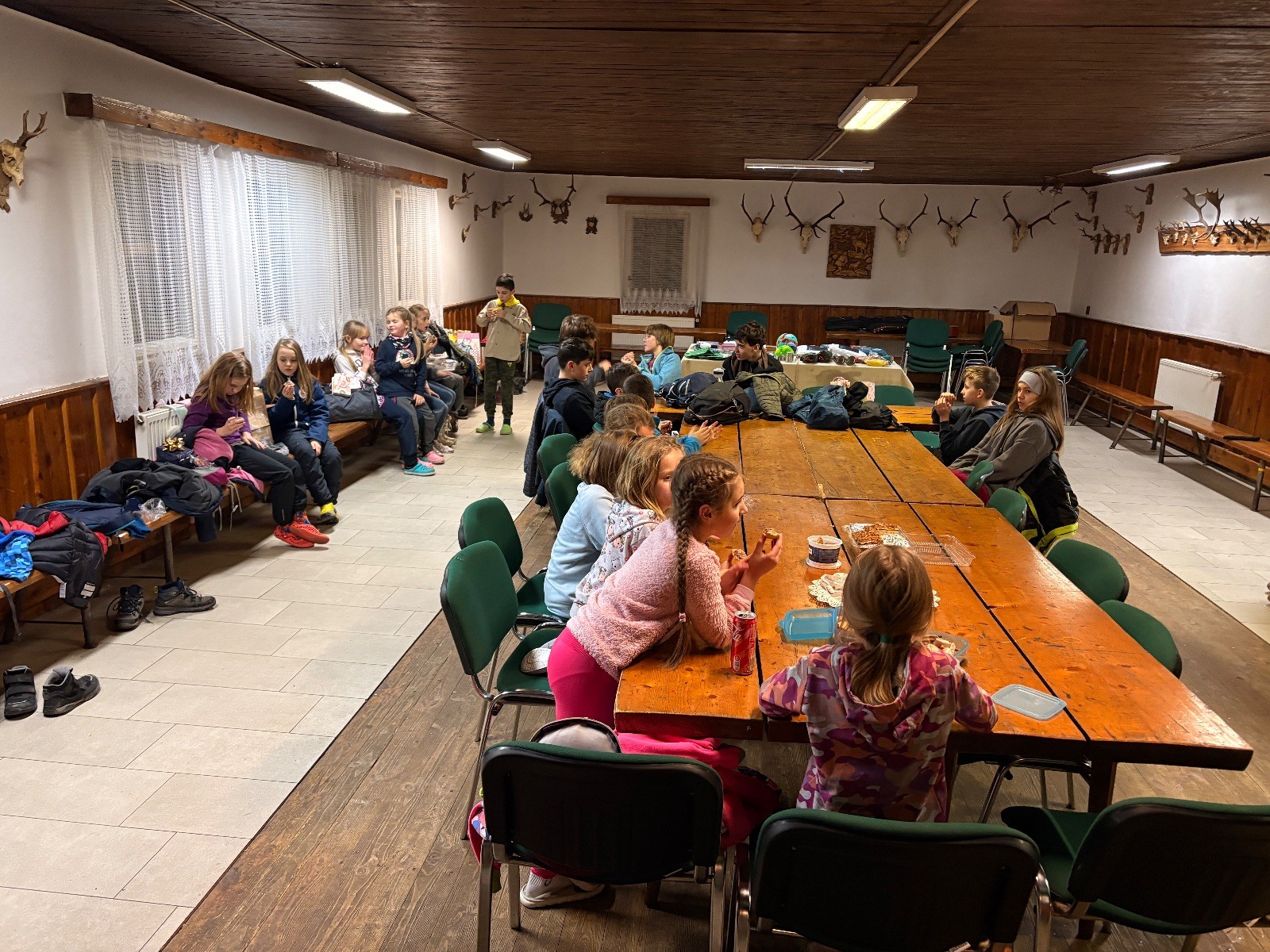 Okolo 17. hodiny se začínají slízat i ostatní členové družin. Setkáváme se v hojném počtu. Tak hojném, že bylo nad mé síly spočítat, kolik nás to vlastně bylo. I s vedoucími nás mohlo být přes 30, což je fajn účast. Mj. koukám i na svůj loňský zápis a zjišťuji, že jsem měl problém všechny sečíst i loni. Ne že bych měl problém se součty nad 30, ale vězte, že při stanovení počtu neustále se hemžící bandy skautů si nevystačíte s běžnou aritmetikou – tohle je spíš záležitost kvantové fyziky. Na rozjezd dáváme sfoukávanou. Docela to odsejpá, protože poměrně brzy zhasínají i ohnivci, kteří jako jediní mají pravomoc ostatním spoluhráčům odpalovat sfouknuté svíčky. Konečné skóre je 2:1 pro červené, kteří poslední kolo vyhrávají se slušnou přesilou. Pak se jdeme vyhřát do vytopené myslivny, kde nás čeká i cukroví od rodičů, babiček, dědečků a všech těch, co pečou. Obzvlášť velký dík patří paní Tončové, která nám tradičně poslala nálož skvělého medovníku s ořechy (OK, nevím, jestli to byl medovník, ale ořechy tam byly určitě a je to sakramentsky dobrý). A taky nevím, jestli je to tradice, ale rádi bychom z toho tradici udělali (mrk, mrk 🙂). Vyhlašujeme top účast a bodování, rozdáváme diplomy a ceny. Pak na sebe hážeme teplé oblečení a po světýlkách jdeme k vánočnímu stromku, kde každého člena čeká nějaký drobný dárek. Na poli zapalujeme prskavky a se svíčkami si dáváme kolečko přání, kde se nám daří být docela zticha, což je vzácný moment hodný zaznamenání. Pak zvedáme kotvy, míříme zpět k myslivně a rozprcháváme se domů.