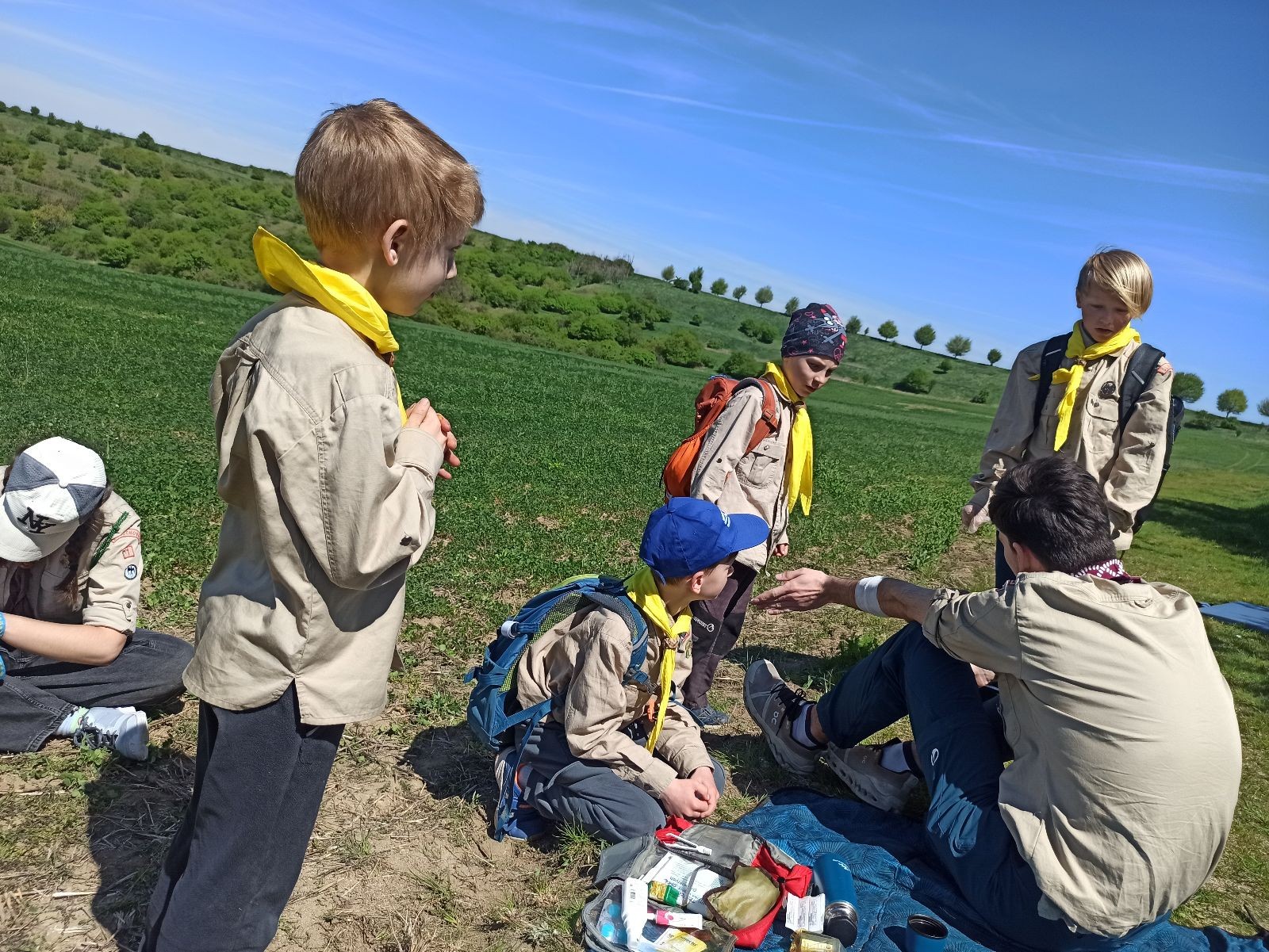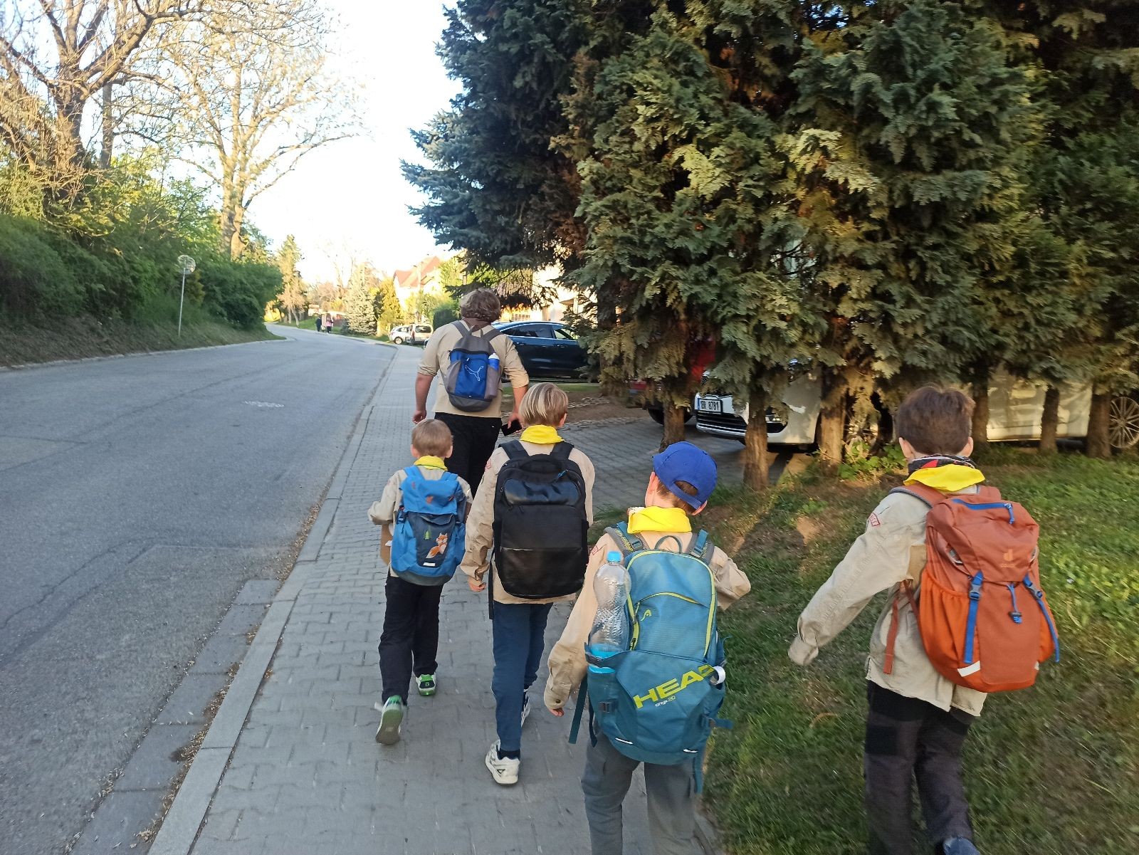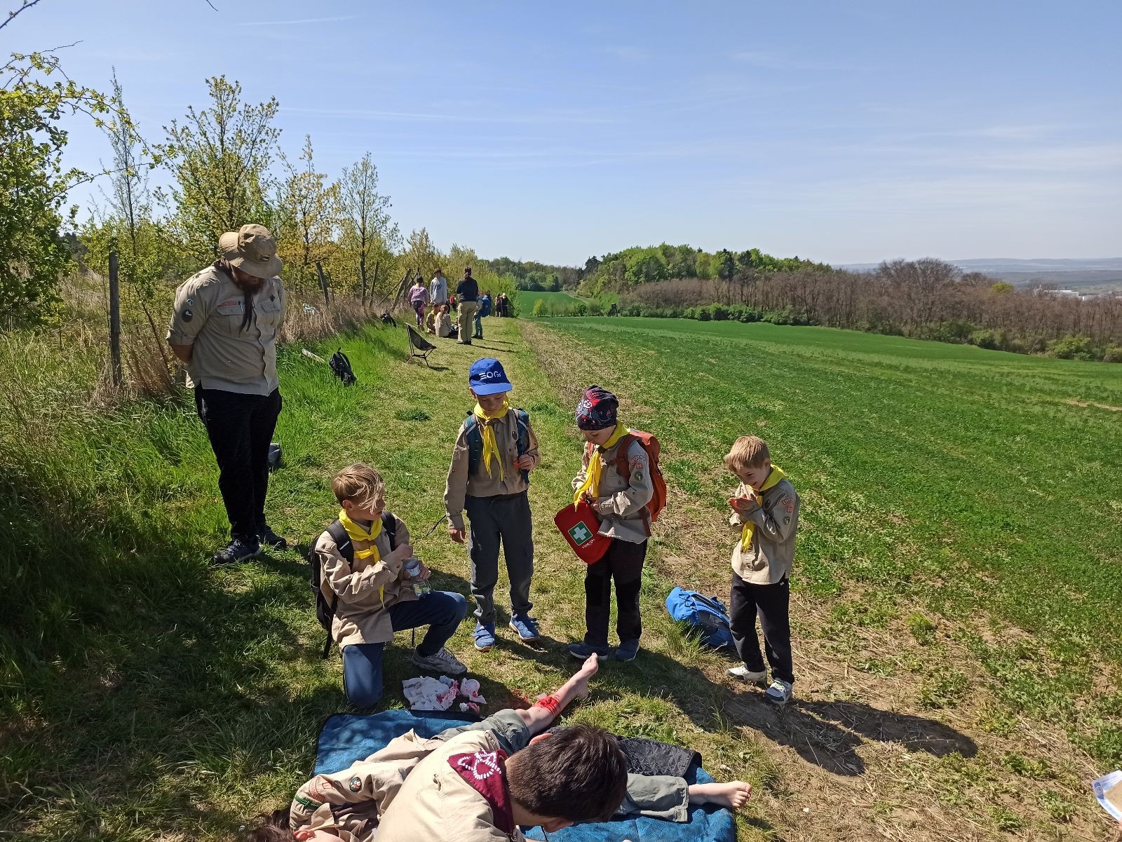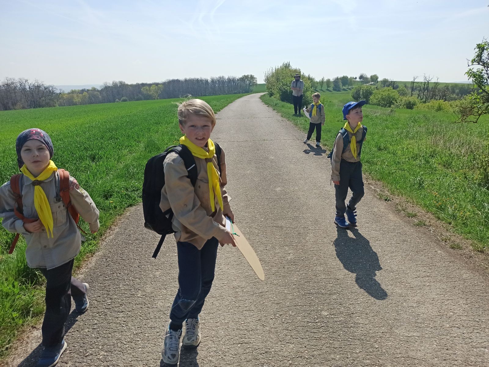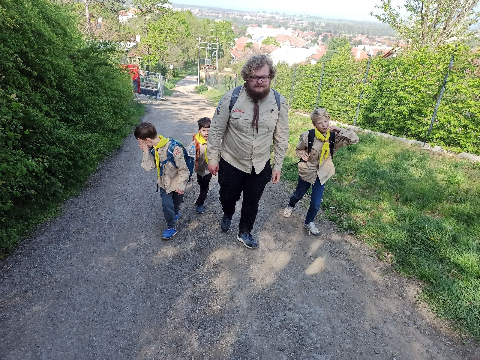 Ráno jsme vstali o půl sedmé a kupodivu nikdo předčasně nevstával, což se nám na výpravě stalo poprvé. Po balení jsme se nasnídali, vyčistili zoubky a šup na zastávku. V buse jsme jeli také s našimi bratry a sestrami z oddílu, a to s Vážky a Lachtany. V Brně se k nám připojili také Havrani, a jeli jsme společně do Židlochovic. Po výstupu nás čekala kratší cesta na startovní místo. Na louce jsme se registrovali, ale jak jsme již zmínili, kluci byli pouze 4 a tudíž jsme byli nesoutěžní šestkou. To nám ale nebránilo se zapojit, kluci se vydali k rytíři a získali mapu se svojí průvodkou a svůj štít. Následně proběhlo zahájení a vystartovali jsme. Před 2. stanovištěm jsme si dali oběd, neboť před námi byla menší fronta. Na následujících stanovištích jsme už svištěli rychleji, panovala jen a jen lepší nálada a nadšení do závodu. Po dokončení závodu jsme dostali za odměnu lízátka a párky v rohlíku. Došlo na vyhlášení, kde jsme se tedy neumístili, ale všichni jsme si závod užili a byli plní radosti a nových zážitků i znalostí. Zpáteční cesta už byla klidnější a během ní nám Golem všem koupil zmrzlinu za odměnu. Na boudě jsme ještě poklidili, vzali si všechny věci a šli domů. V 19:20 jsme tak zakončili letošní závod vlčat a světlušek.