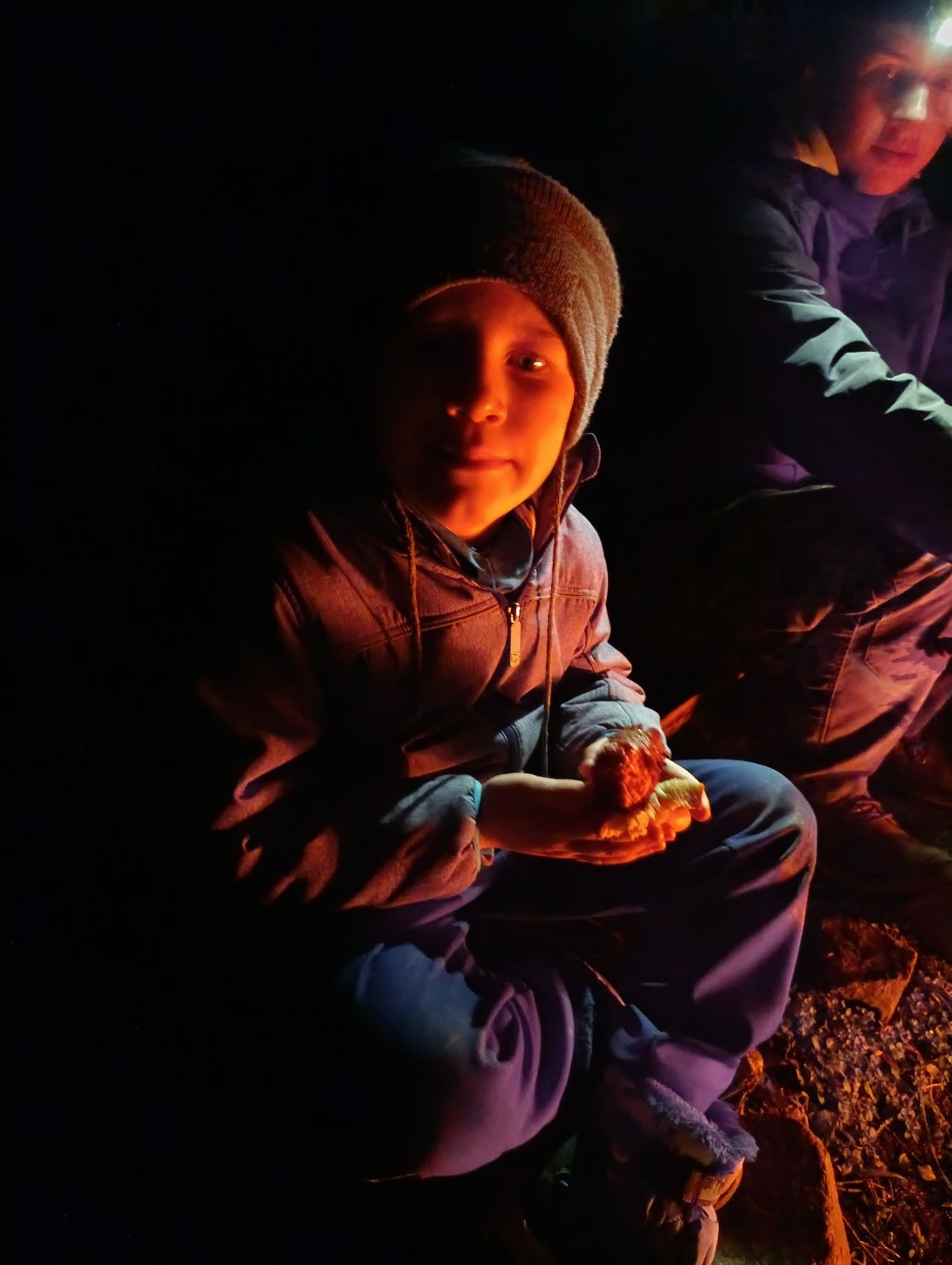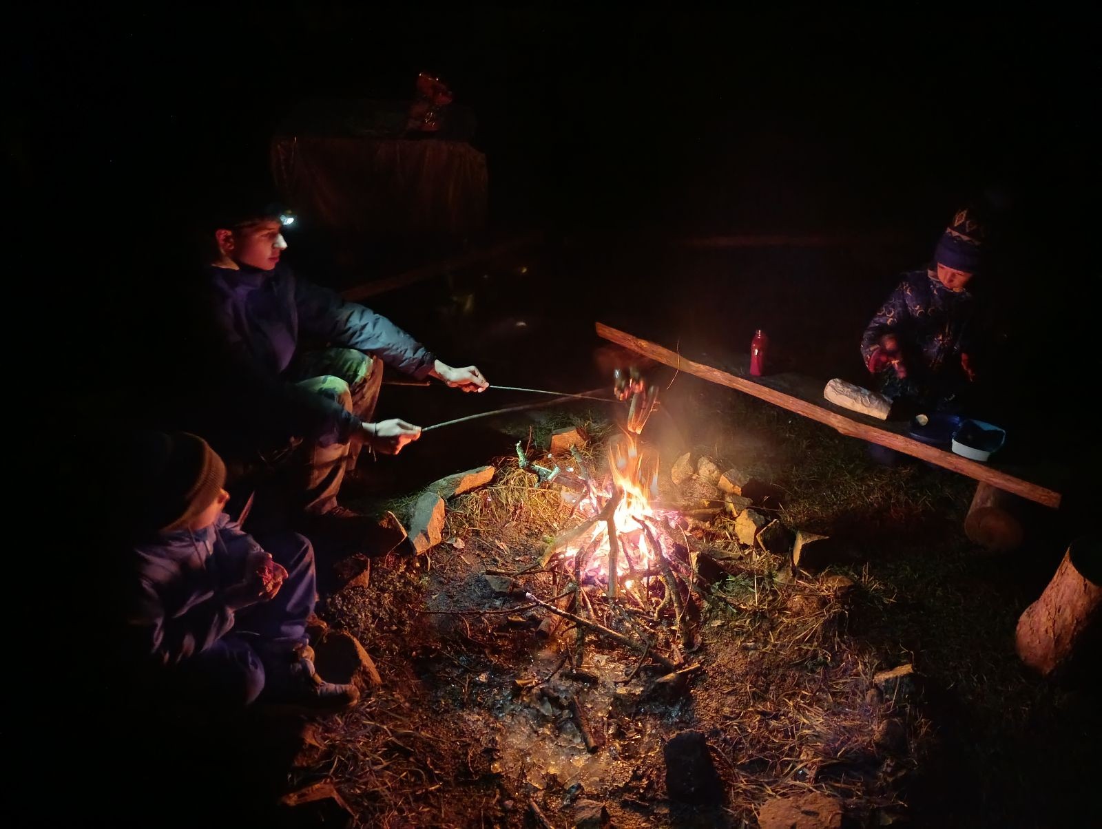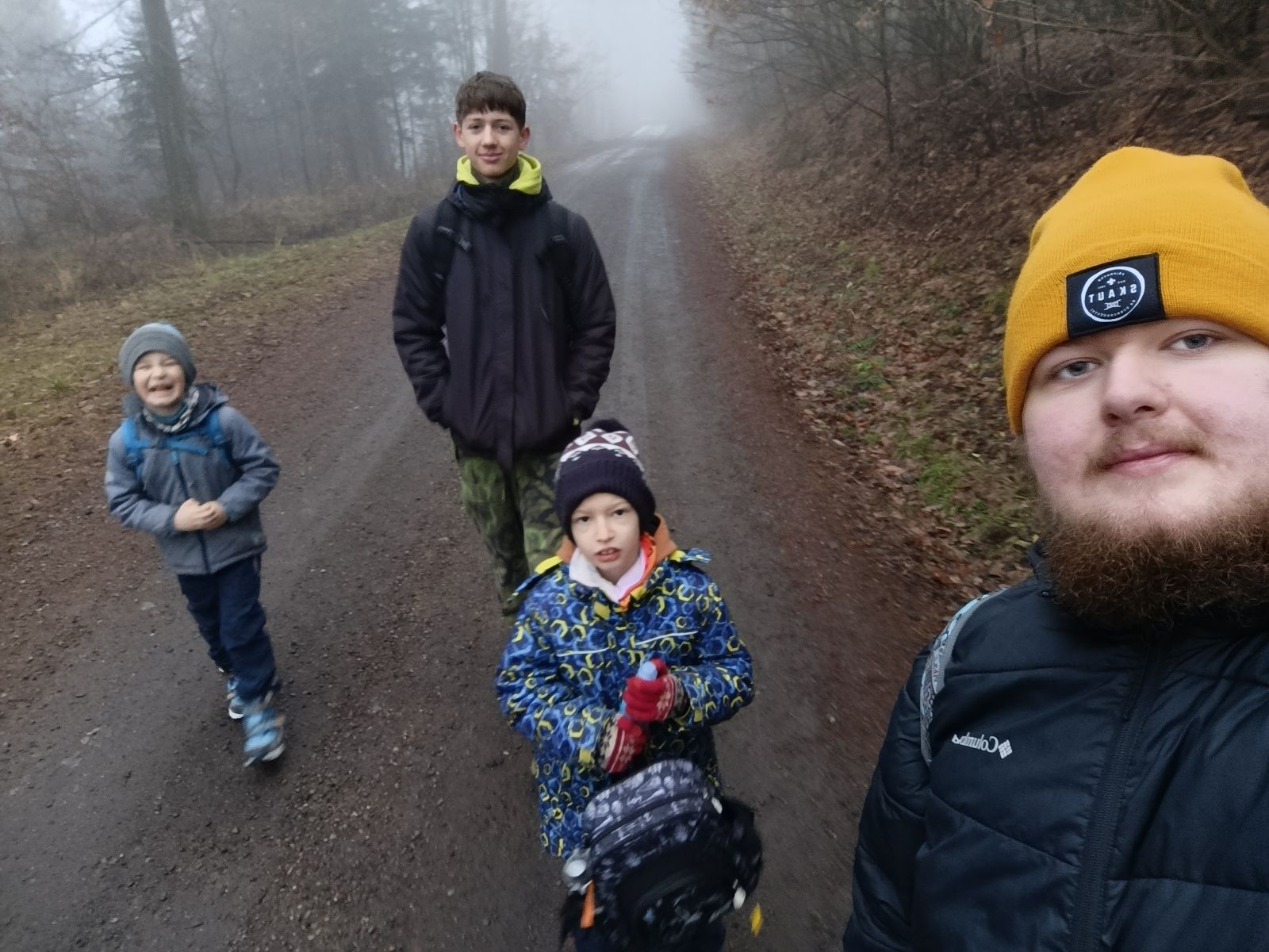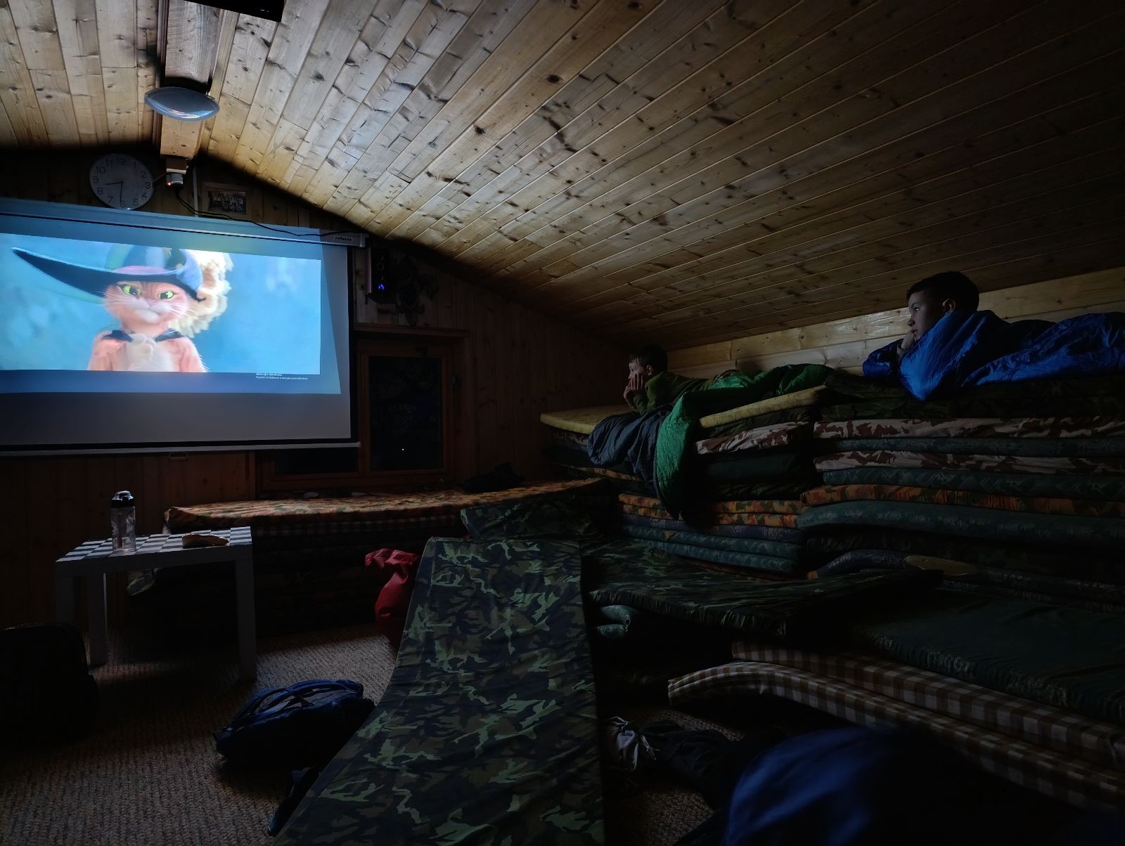 Po schůzce 24.1.2025 jsme na Boudě zbyli jenom čtyři. To nám však nijak nebránilo v provedení výpravy a brzy jsme se pustili do přípravy ohniště na opékání špekáčků. Poté, co jsme se najedli do syta a vyčistili zuby, jsme se vydali do podkoroví, a pustili si film, po kterém kluci rychle usnuli.
