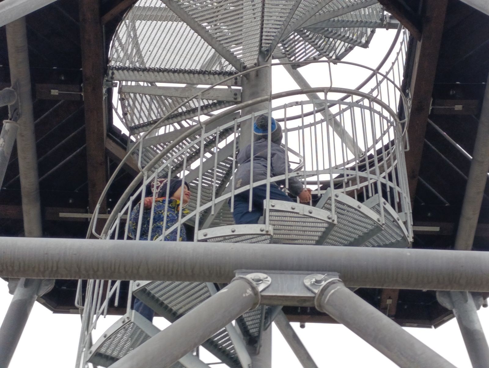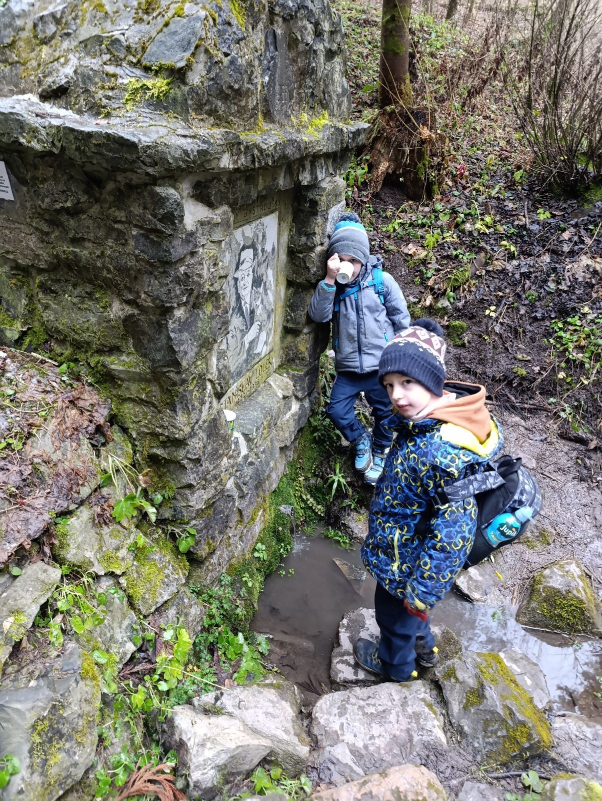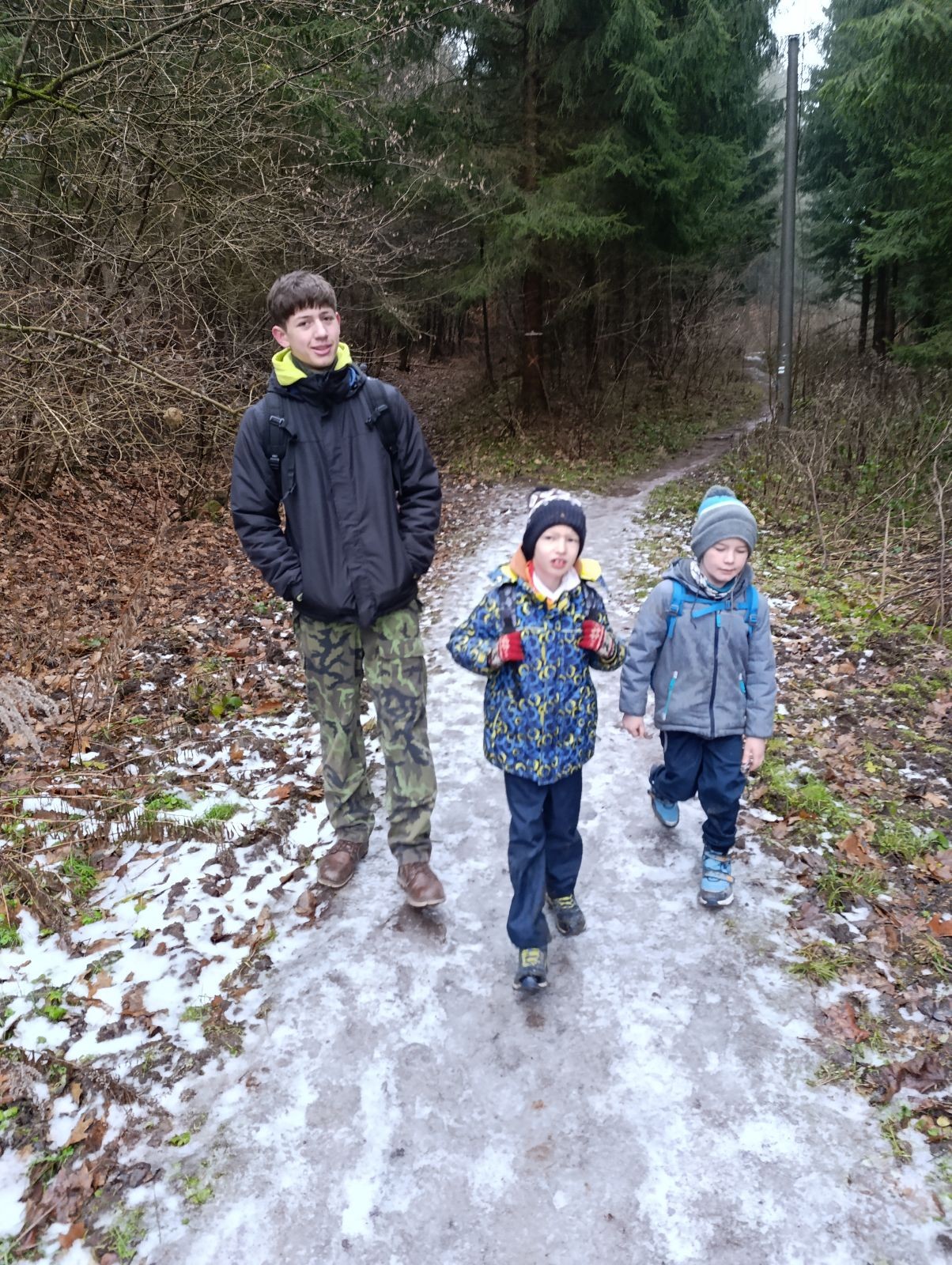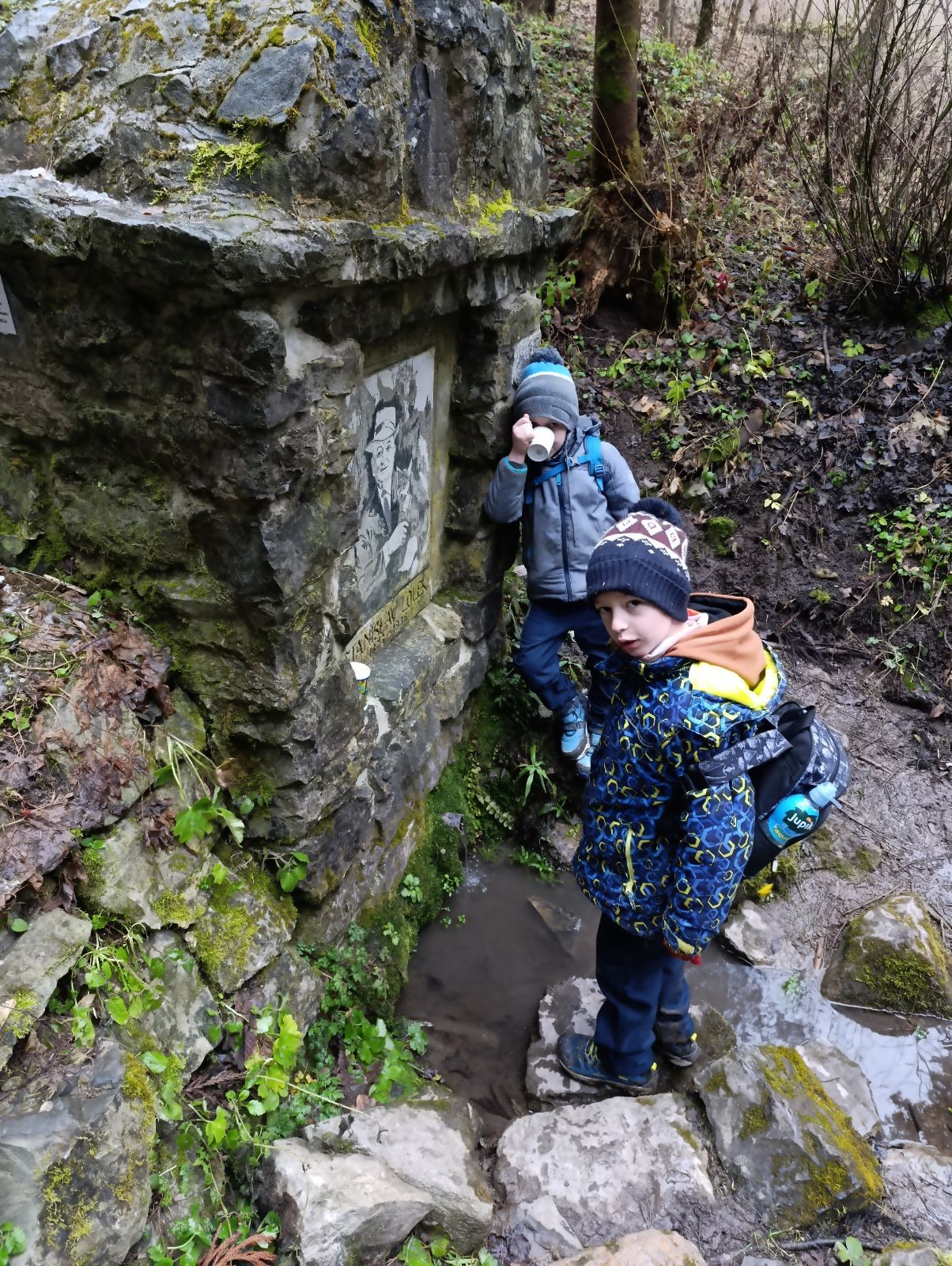 Ráno jsme se rychle sbalili, převlekli, nasnídali a vyrazili na trolejbus. Cesta trolejbusem uběhla rychle a hned jak jsme vystoupili tak jsme začali počítat, okolo kolika turistických značek projdeme. Před rozhlednou jsme měli jednu zastávku u studánky a druhou u altánku kde jsme měli svačinu. Když jsme dorazili na rozhlednu tak Ondra svižně vyběhl navrch. Jindra se ze začátku bál ale po obědě a mnoha pokusech vystoupal až do druhého patra. Jindra zdolal 46 schodů a Ondra celých 131. Na cestě zpátky nás čekala zřícenina hradu, od které kluci očekávali více, a před kterým poprvé za cestu zaznělo "bolí mě nohy". Poslední atrakce naší cesty byl vysílač Hády a poté jsme se vydali zpátky na zastávku, kde kluci záhadně zase měli plno energie. Když jsme dorazili tak jsme se sbalili a uklidili Boudu právě včas, protože zrovna přicházeli rodiče.