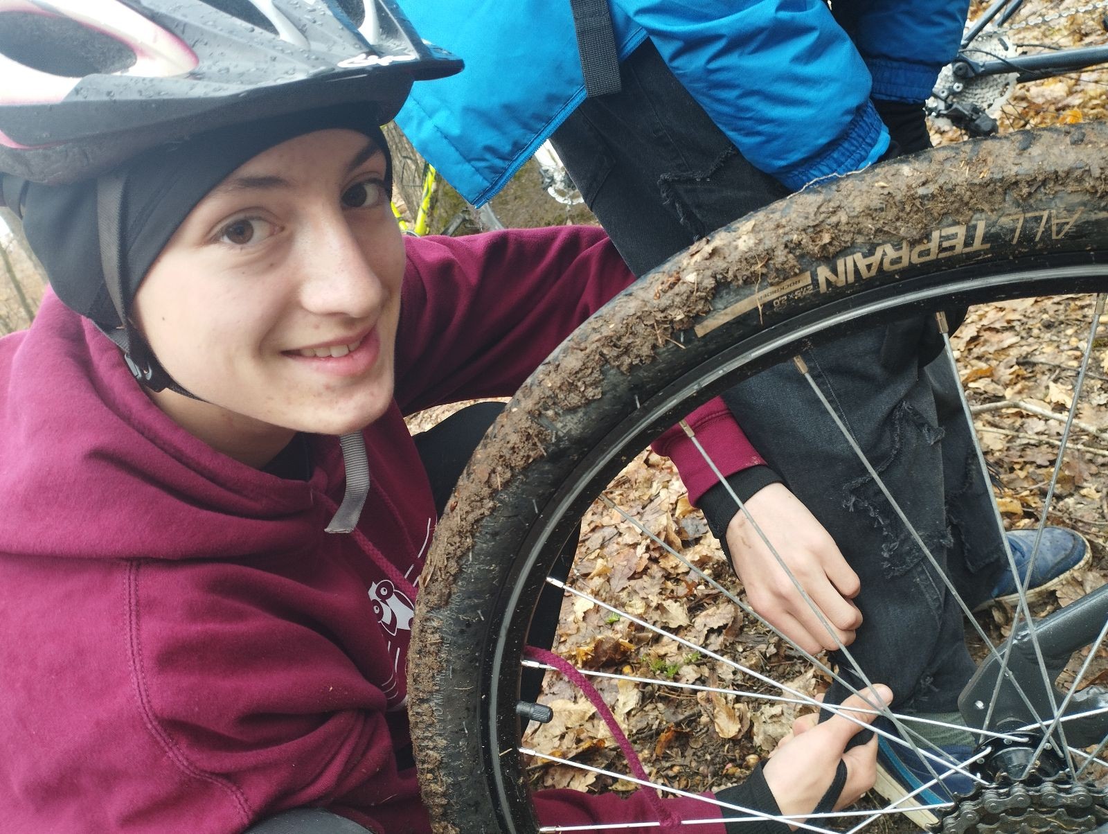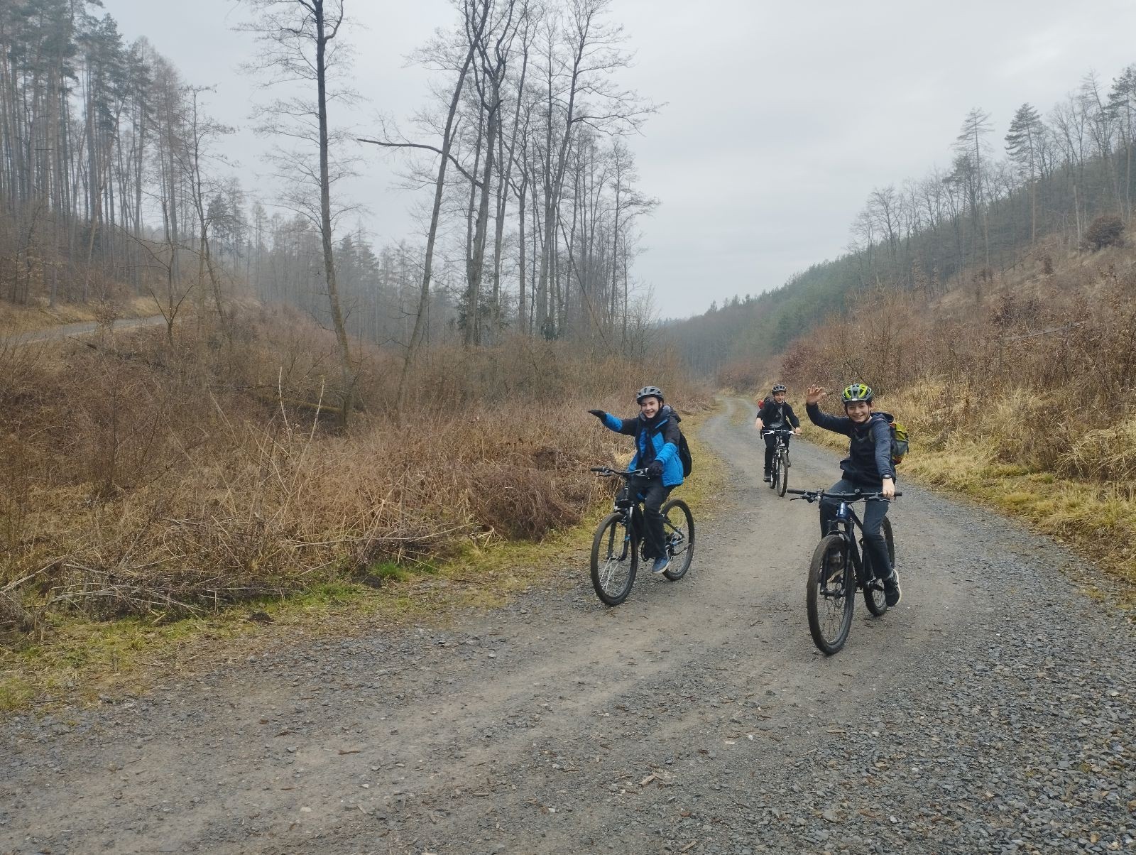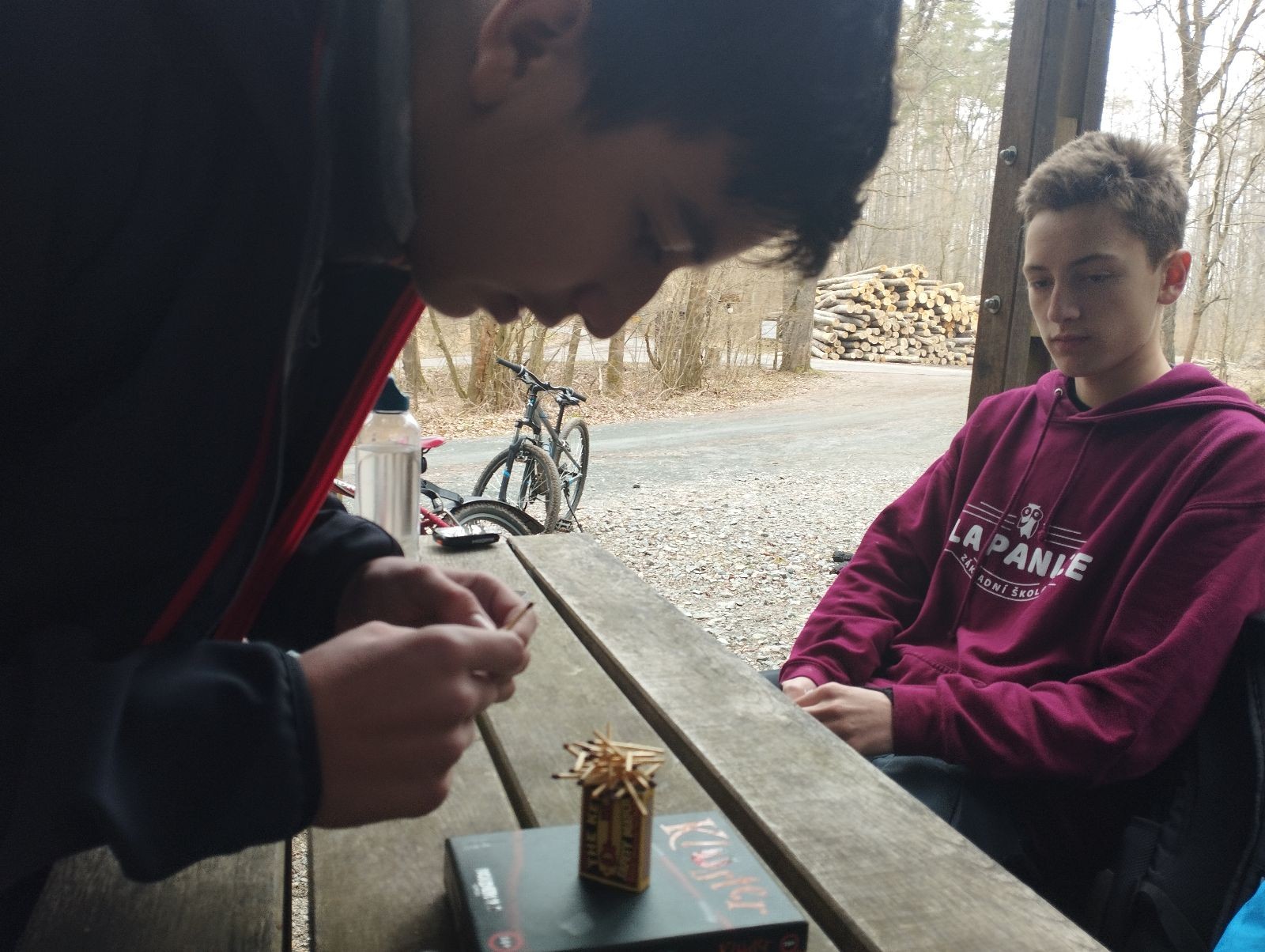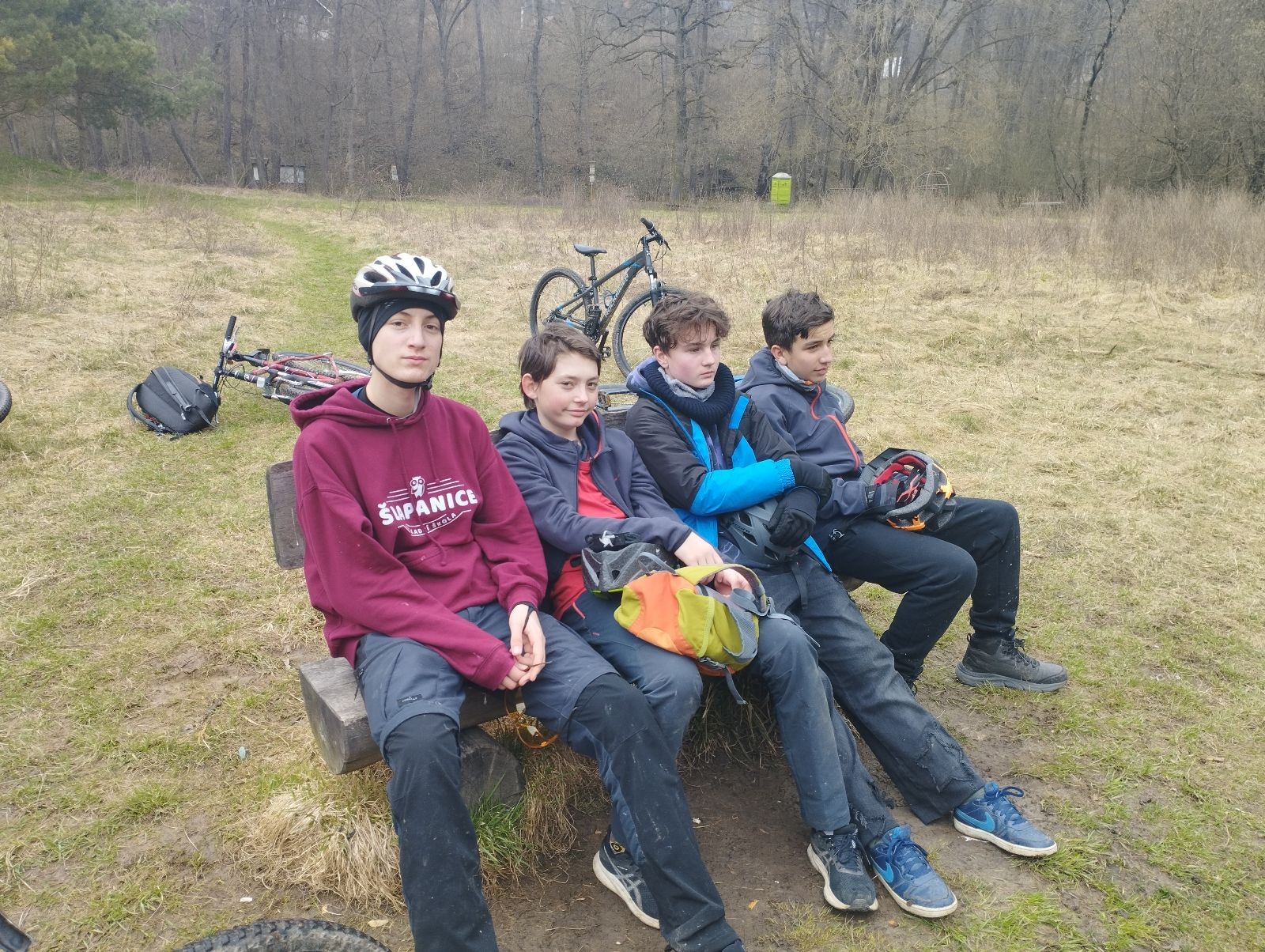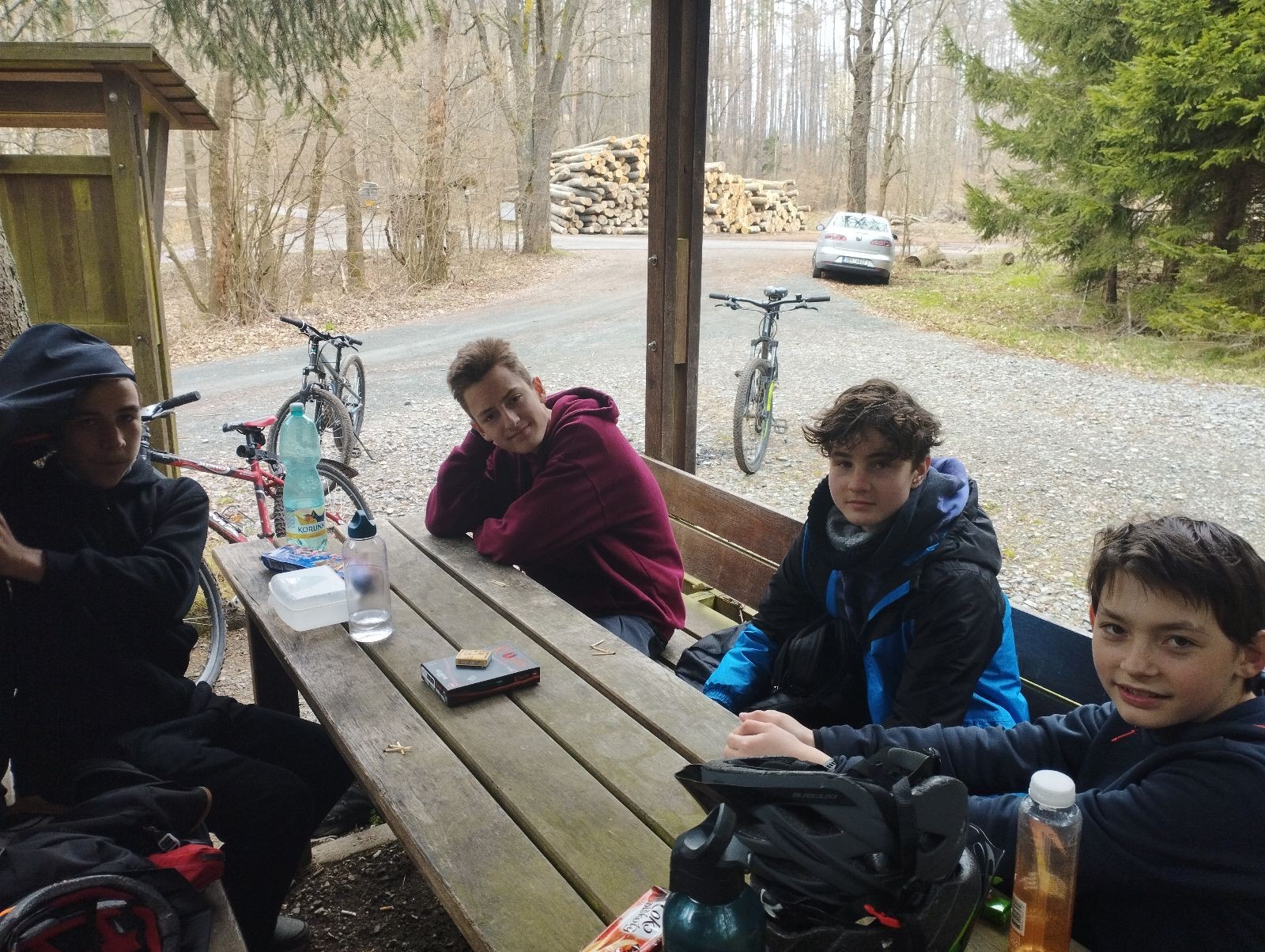 Dne 31.3. jsme se setkali na Boudě v sestavě Venda, Dave, Tade, Ondra a Kloub. Prohlédli jsme si kola, počkali jsme než odejdou skauti, co šli uklidit Česko a vyrazili jsme. Cestou jsme si povídali a stavili se na hřiště, kde Dave zjistil, že mu lezou rifle do kola, a tak je s pomocí Ondry utáhli eska páskou. Jenže pak byla Davidovi zima a sundal si to. Jak jsma jeli do těch kopců, tak jsme špatně zabočili a udělali jsme nevědomky kolečko po cestě rozryté od kanců a koní. Cestou nám pak Kloub řekl, že narazíme na nějaký Z. kámen a jednoho nejmenovaného člena napadl Zrnův kámen, ale bohužel, když jsme k tomu přijeli, tak jsme zjistili, že to je Žalmanův kámen. A o pár kilometrů dál byl náš cíl Kalečník, kde jsme si dali oběd, dostali odměnu od Klouba (čokopiškoty), zahráli Macháčka a stavění věže ze sirek. Následovala cesta domů (z kopce), ve které se ve zkratce stalo: lození přes spadlé stromy, pár zastávek (jedna i na dopuštění vody a utáhnutí blatníku), občerstvení ve stánku u bobovky v Mariánu (kde se opět hrál Macháček) a rozhodlo se, že na trail nepojedeme a následná cesta domů.